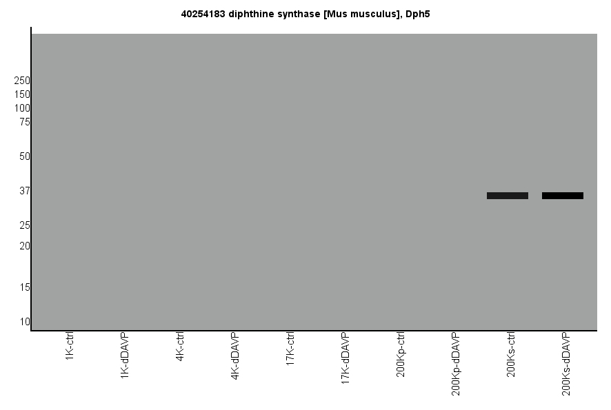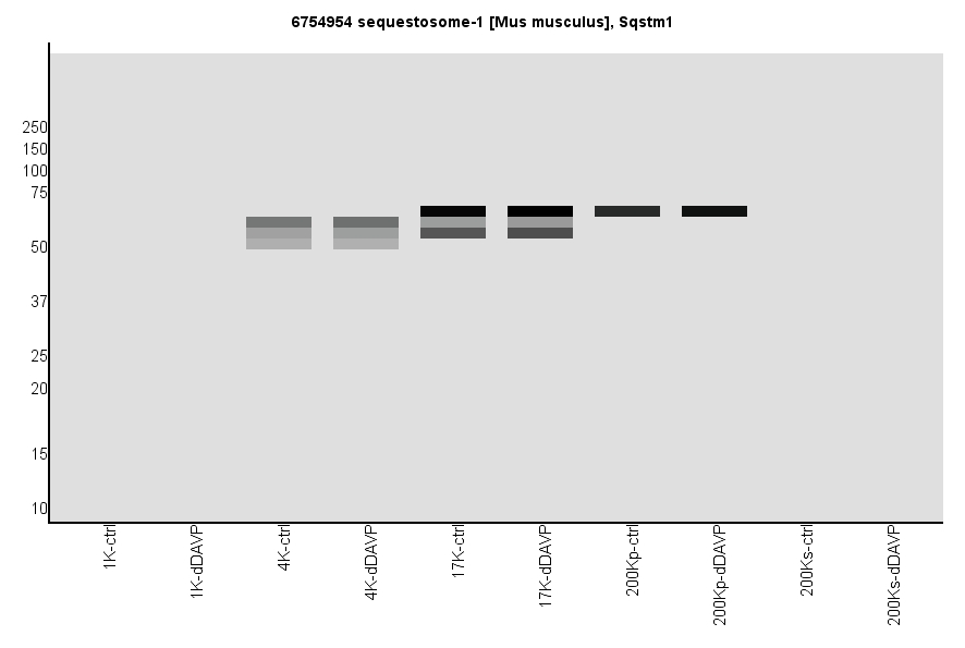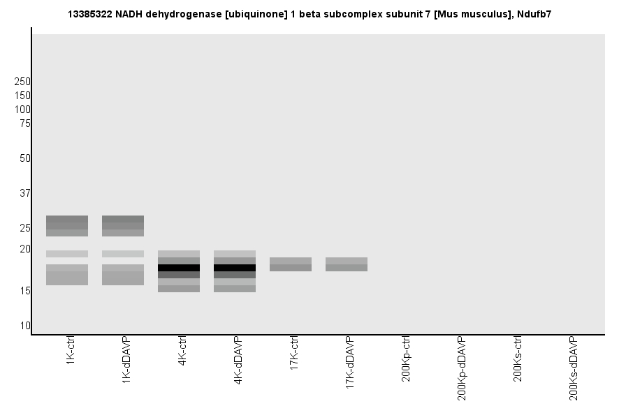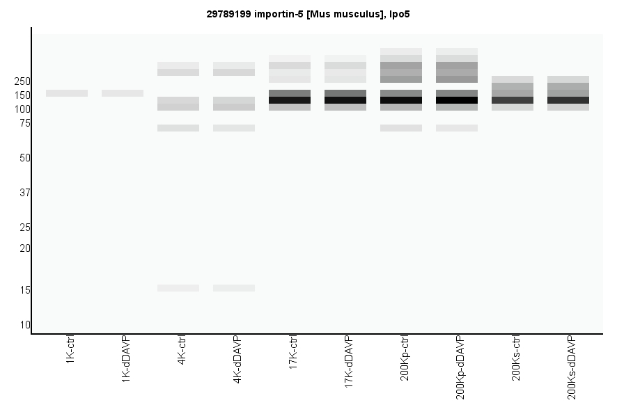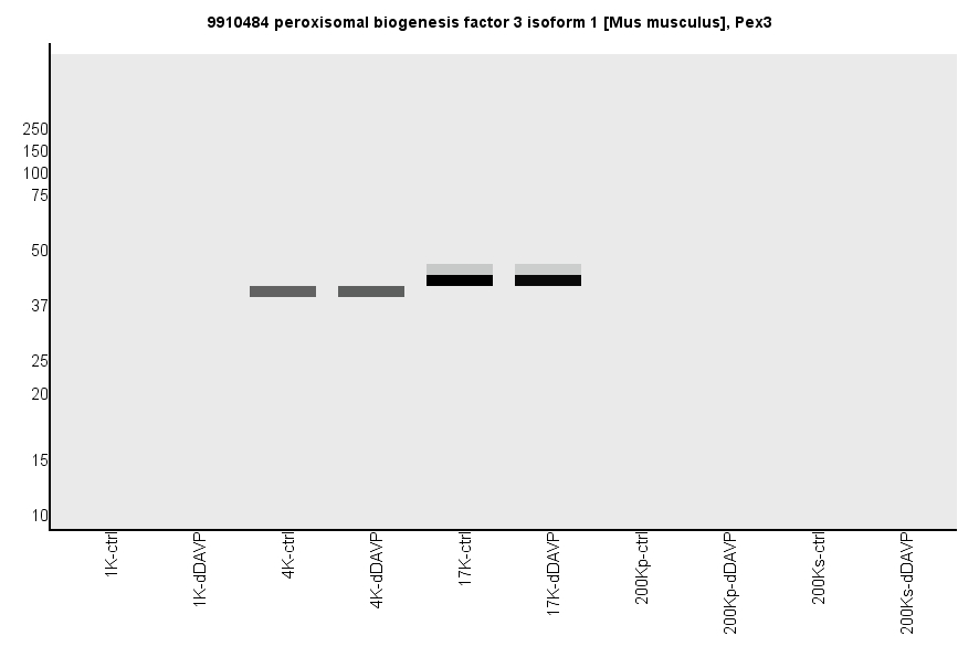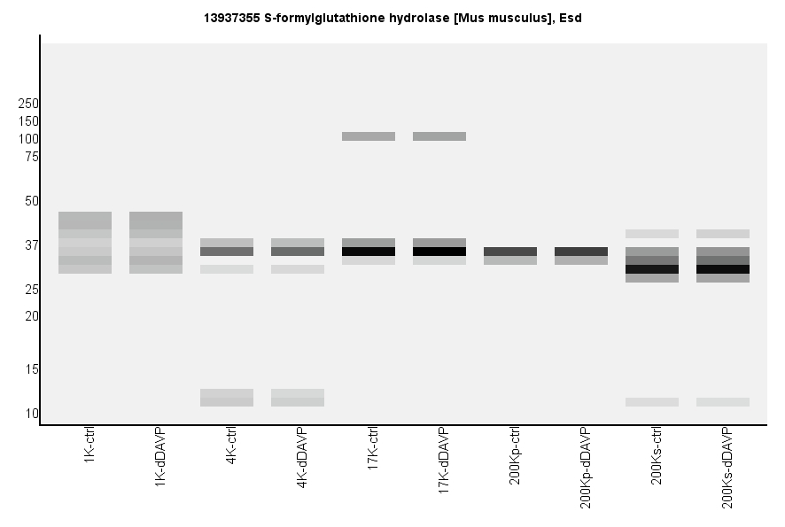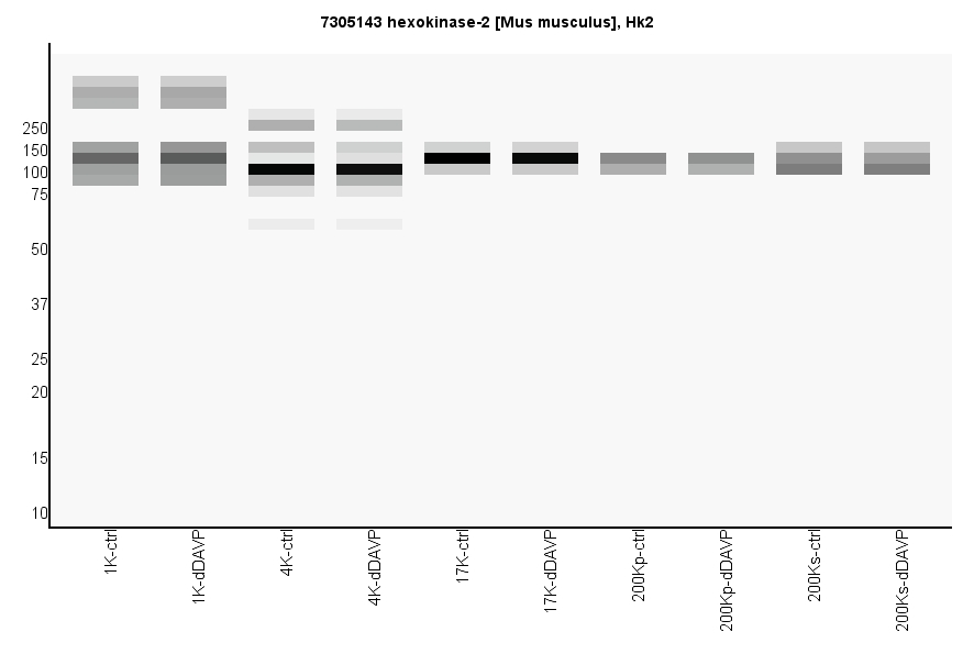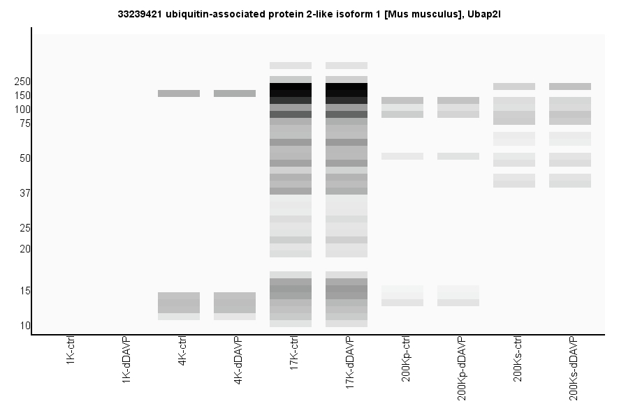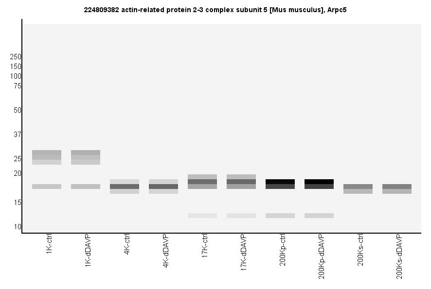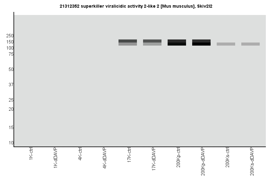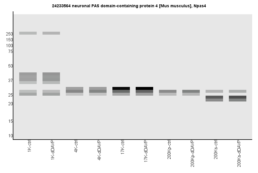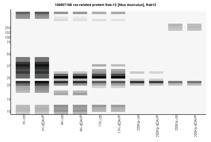 The virtual western blot images show data normalized using a logarithmic conversion scale to map peptide intensities to gray-scale levels. Using this conversion method, low-abundance peptides are generally visible in the blot images. Switch back to the default linear conversion scale database page.