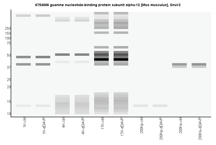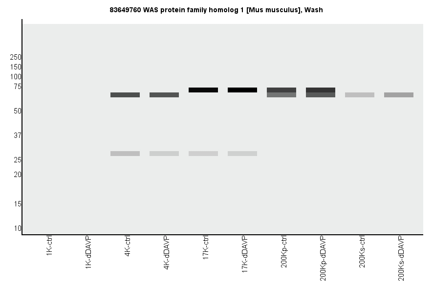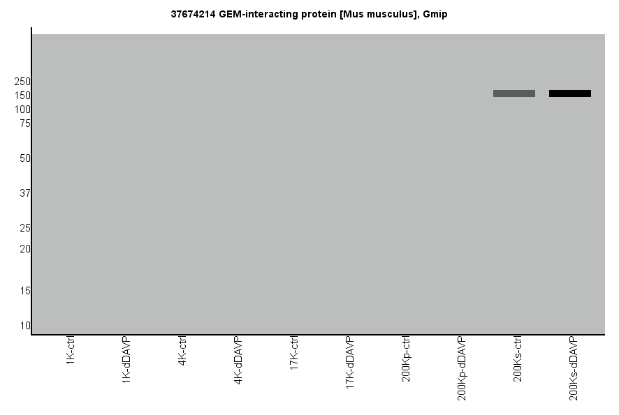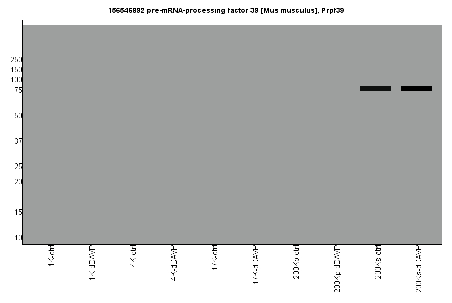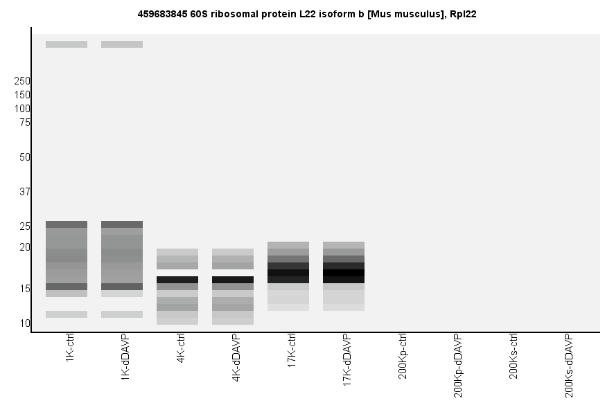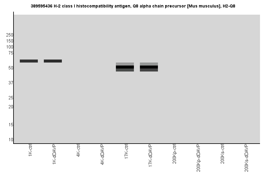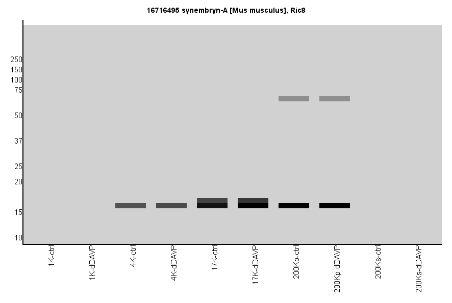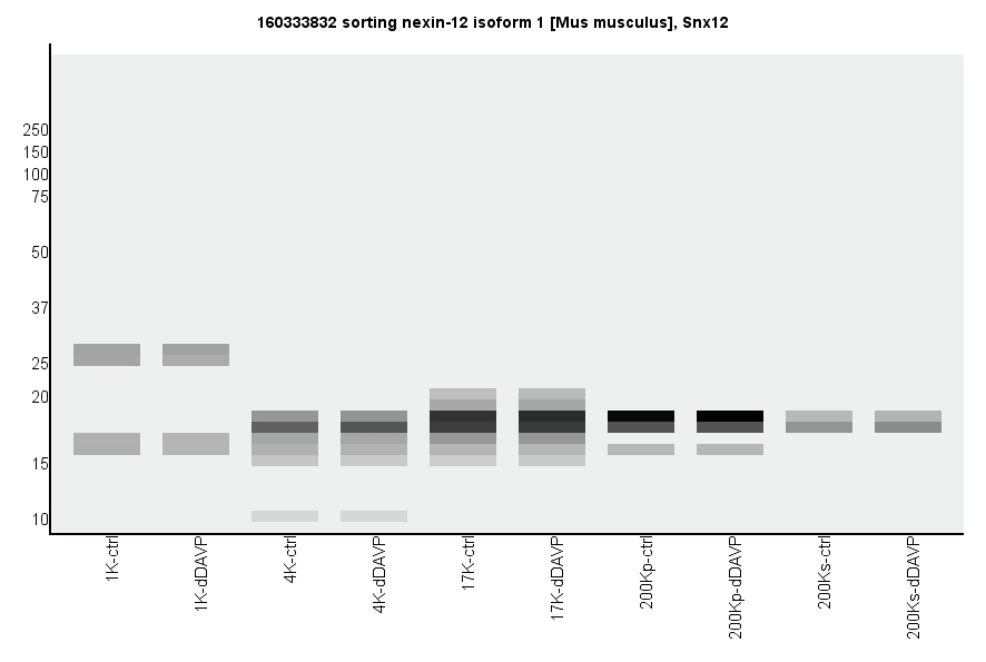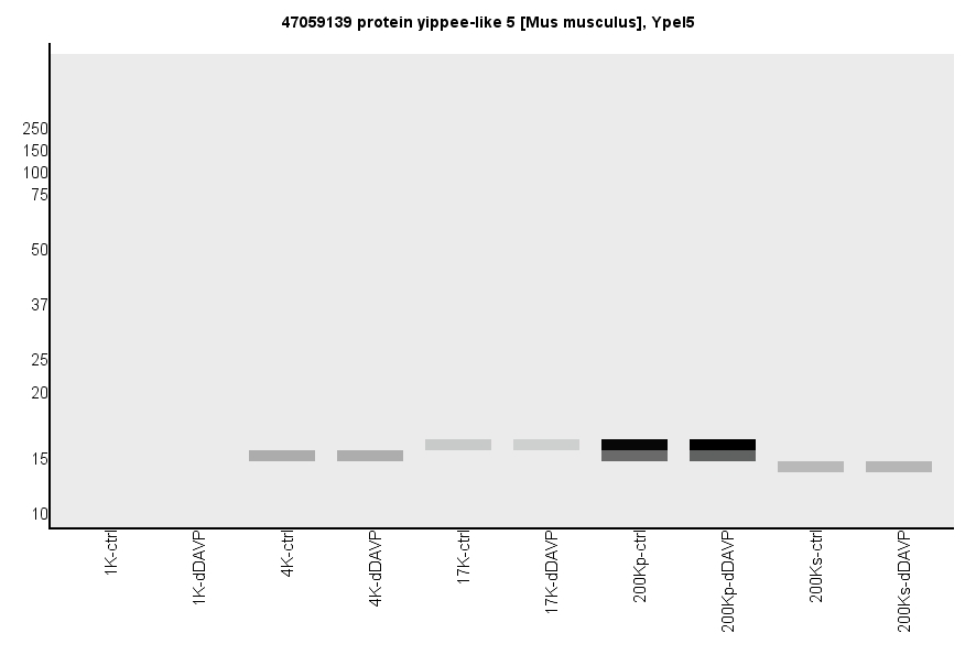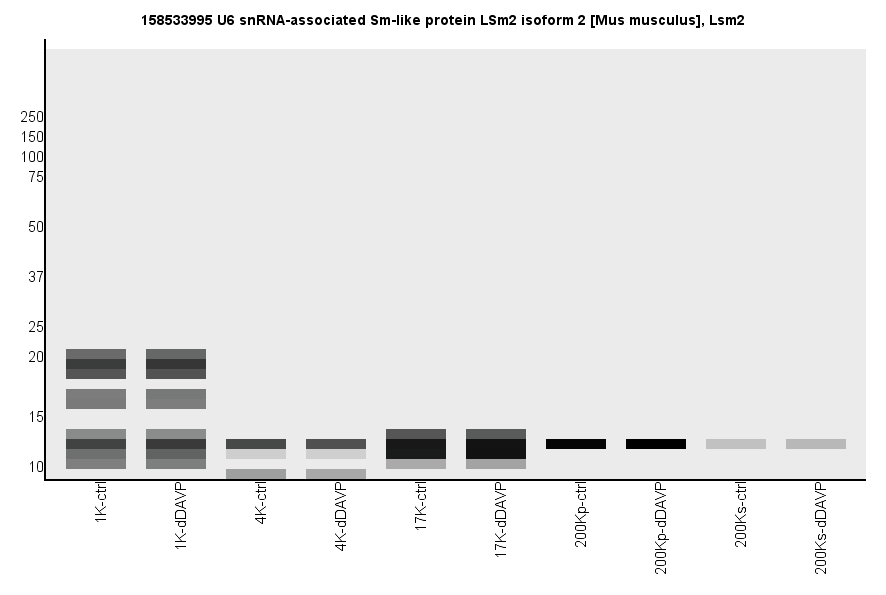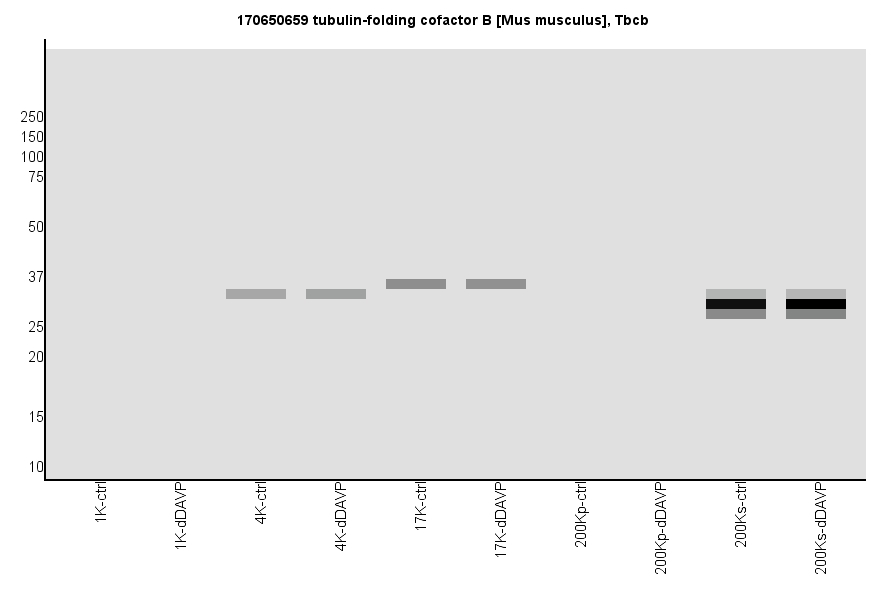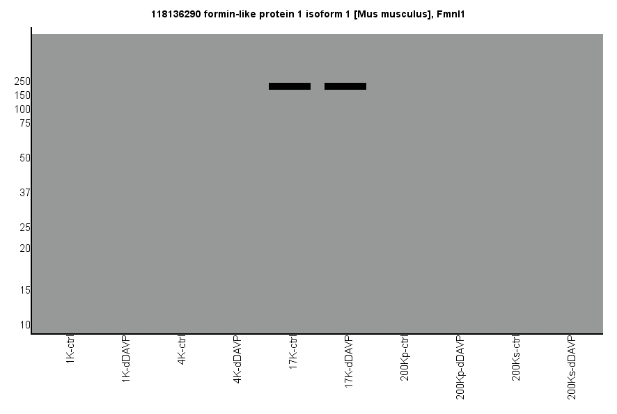 The virtual western blot images show data normalized using a logarithmic conversion scale to map peptide intensities to gray-scale levels. Using this conversion method, low-abundance peptides are generally visible in the blot images. Switch back to the default linear conversion scale database page.