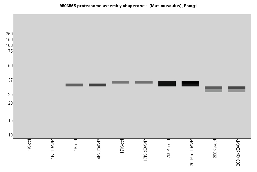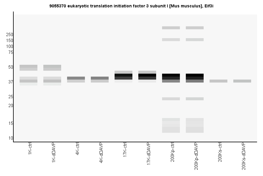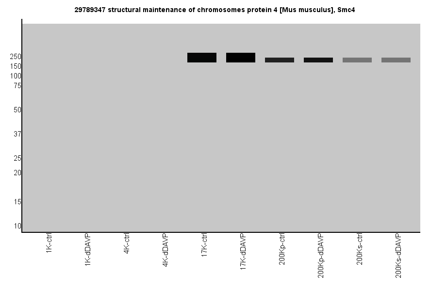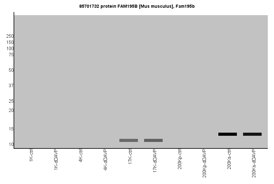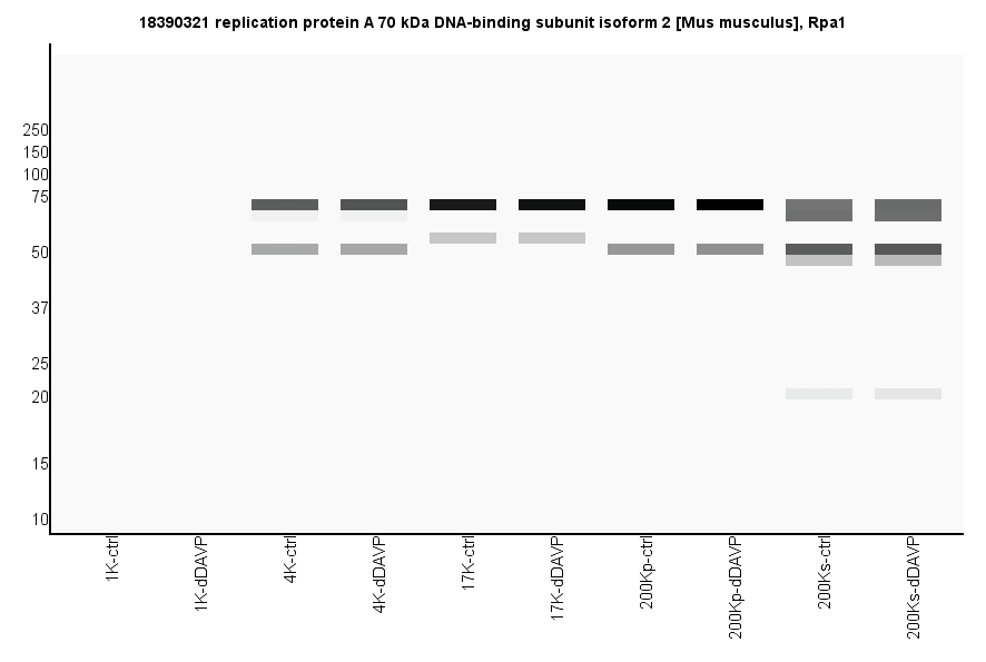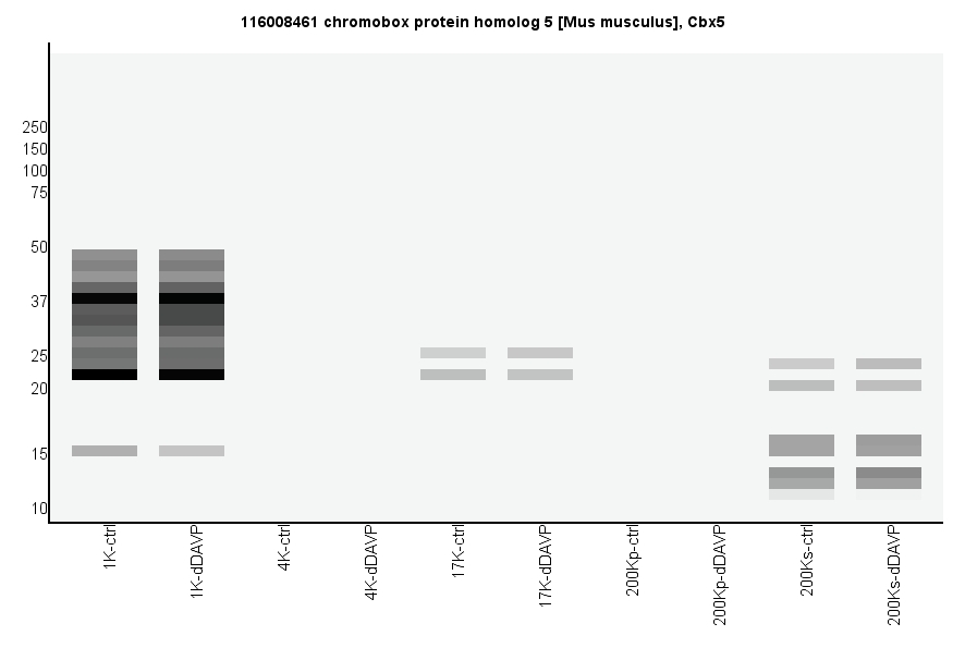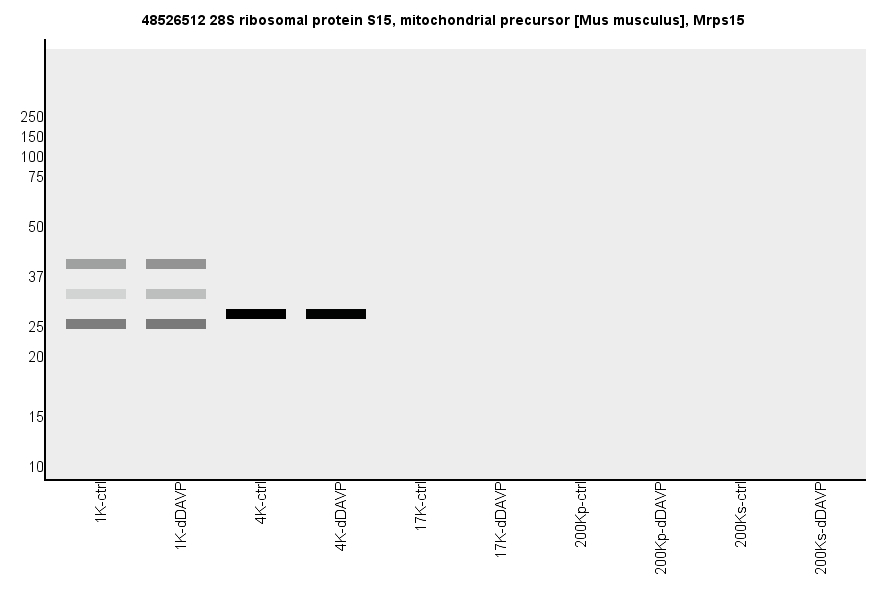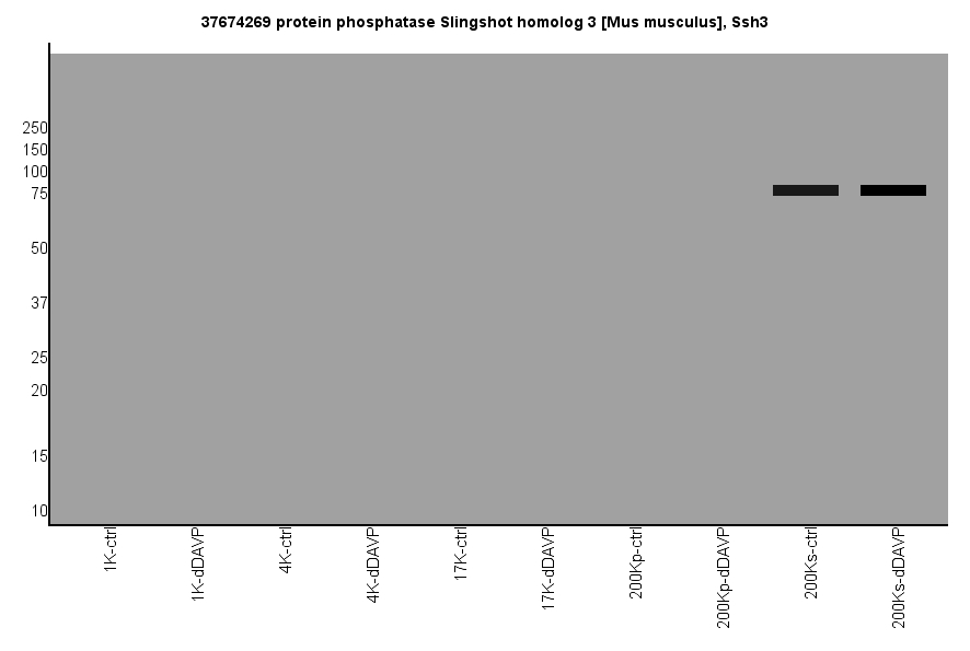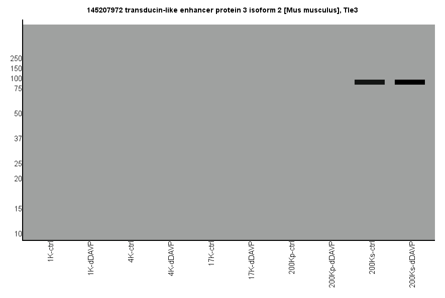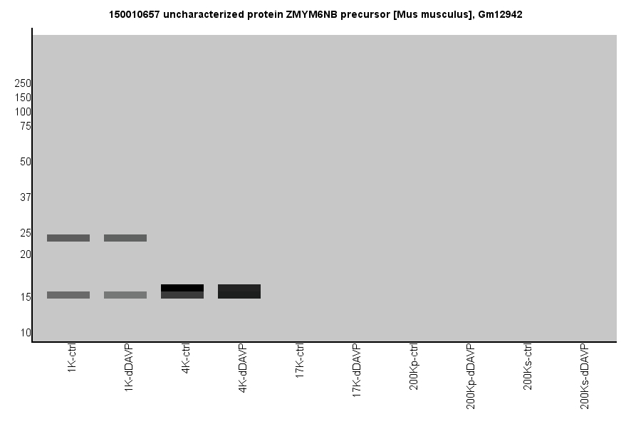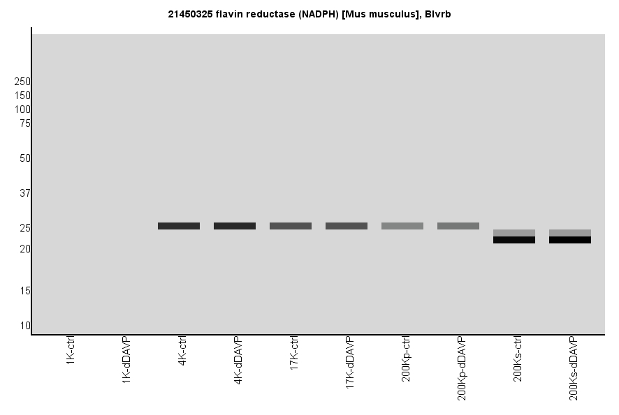 The virtual western blot images show data normalized using a logarithmic conversion scale to map peptide intensities to gray-scale levels. Using this conversion method, low-abundance peptides are generally visible in the blot images. Switch back to the default linear conversion scale database page.