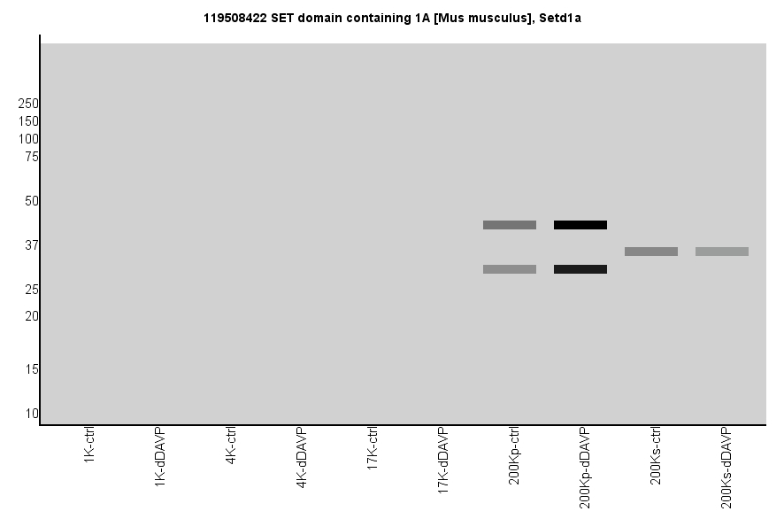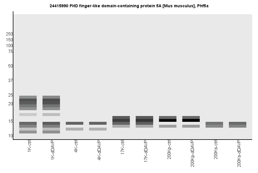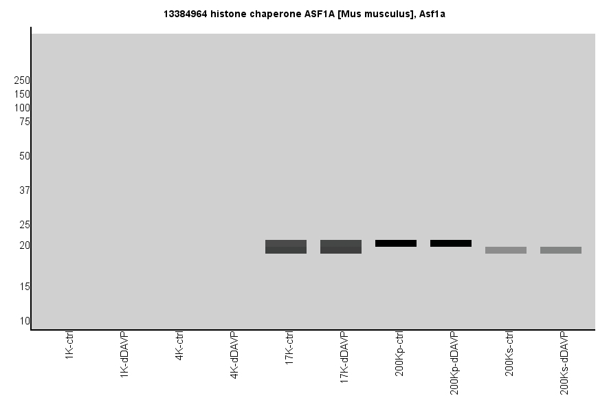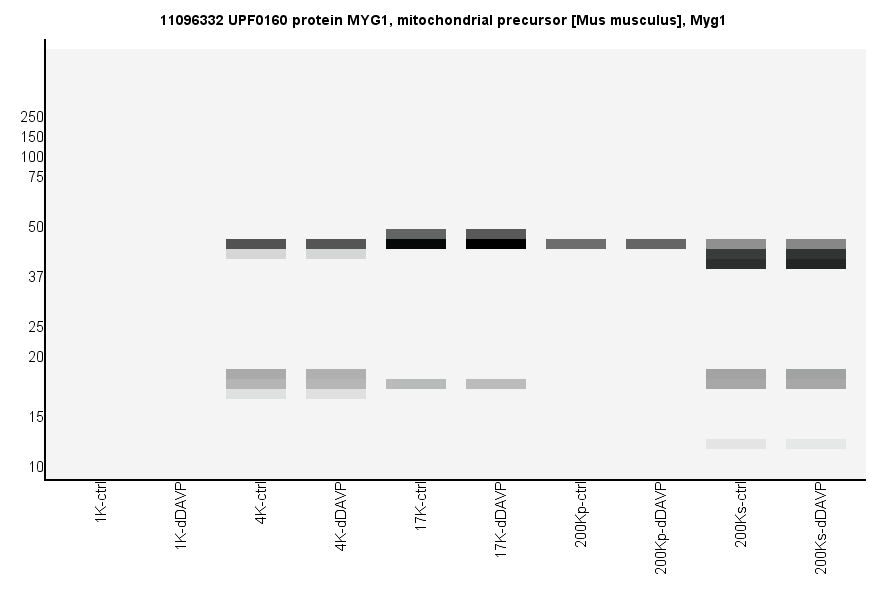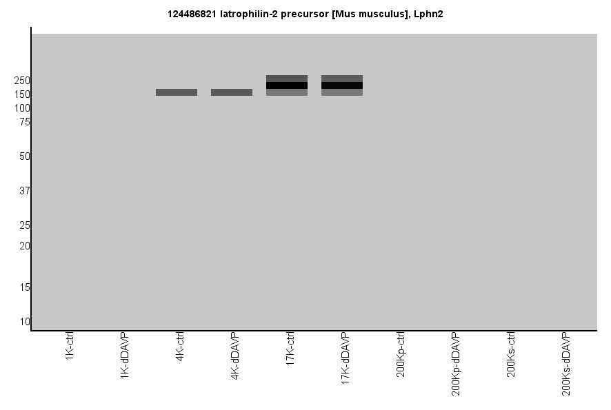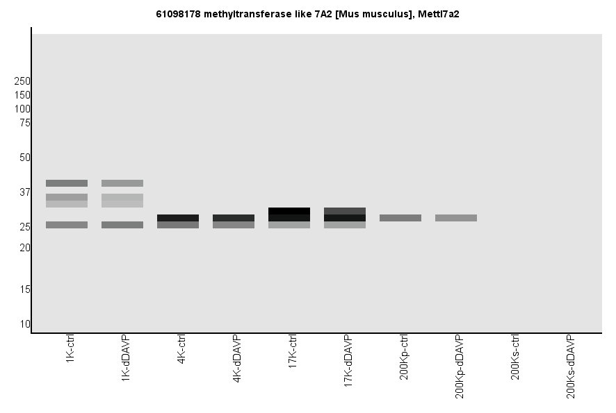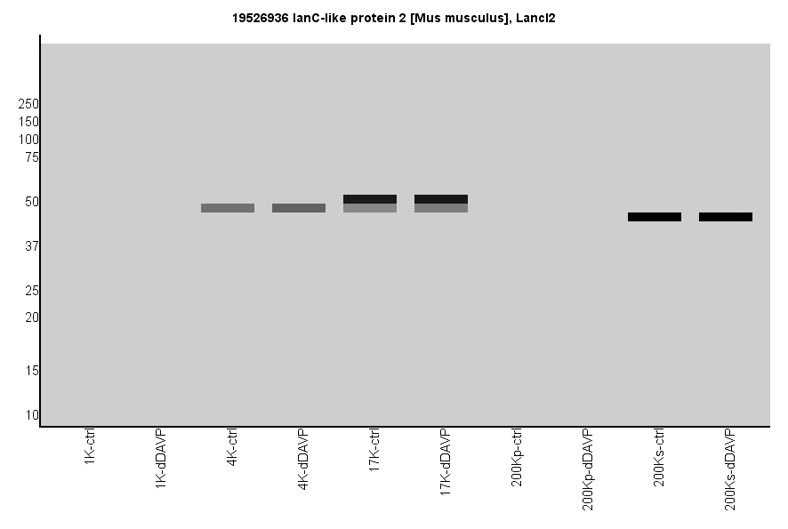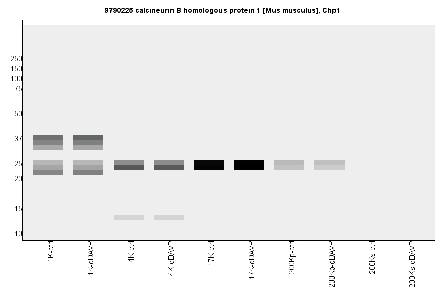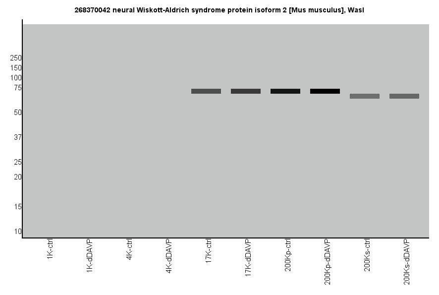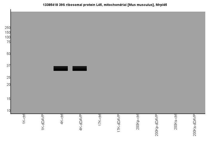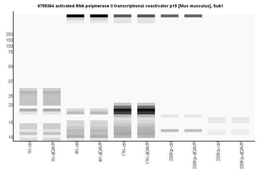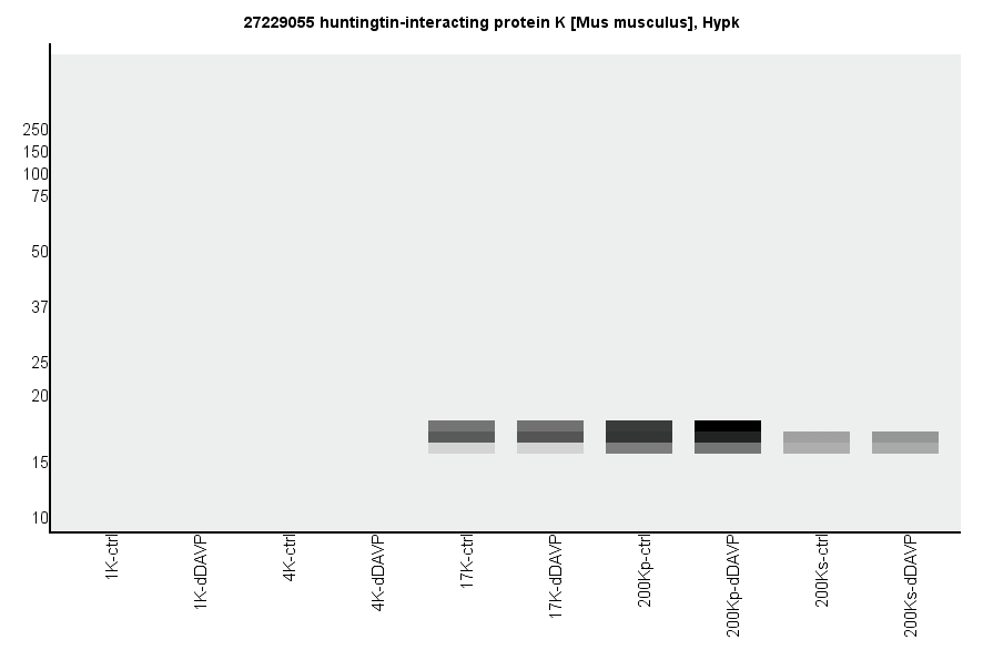 The virtual western blot images show data normalized using a logarithmic conversion scale to map peptide intensities to gray-scale levels. Using this conversion method, low-abundance peptides are generally visible in the blot images. Switch back to the default linear conversion scale database page.