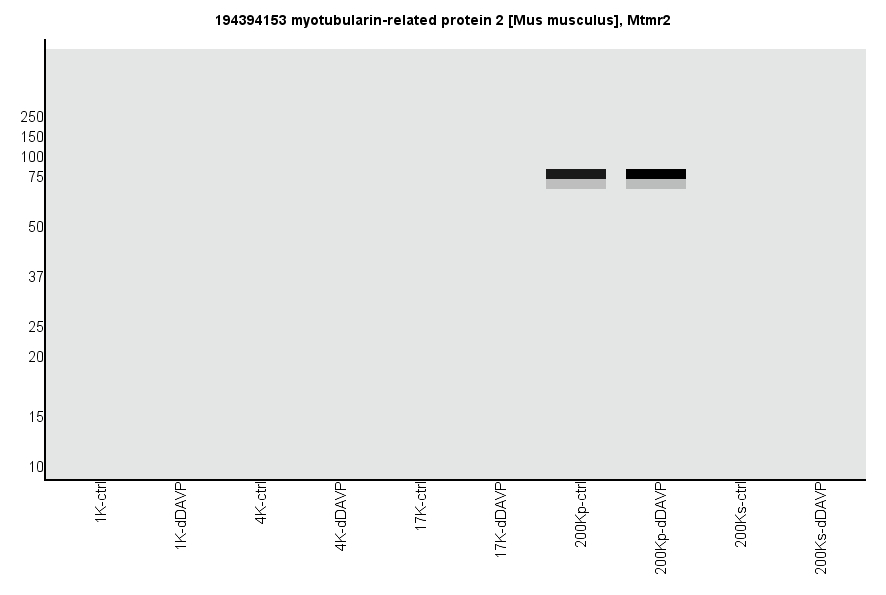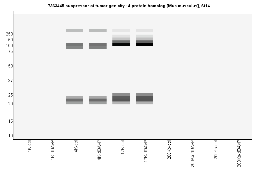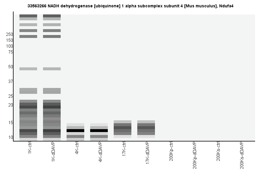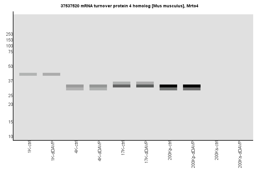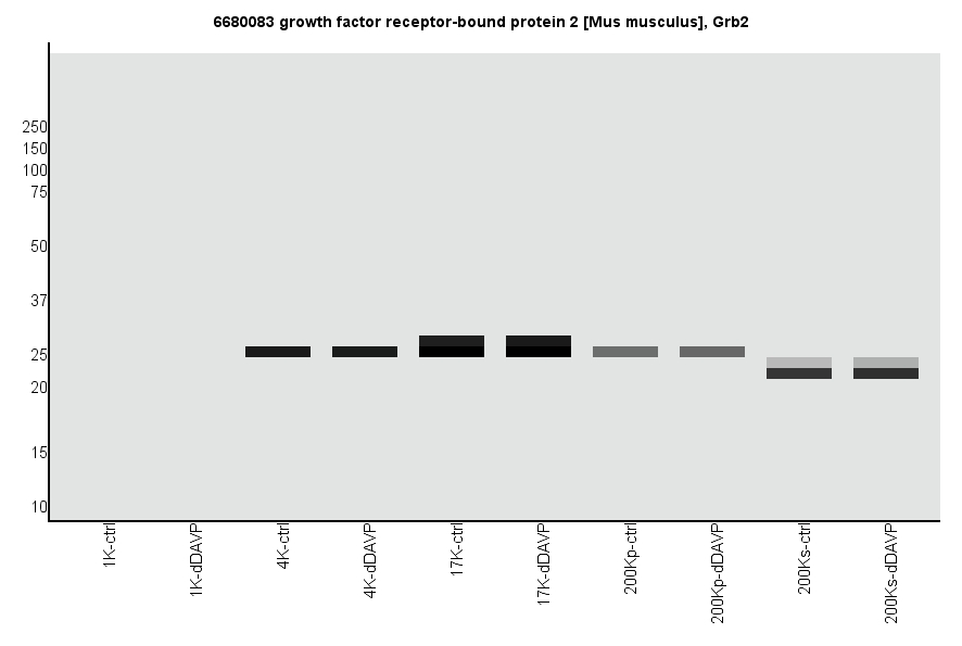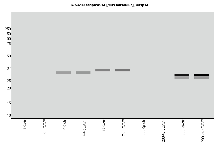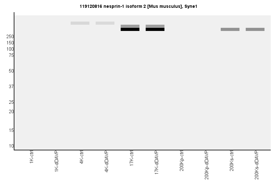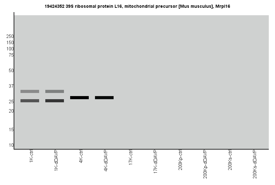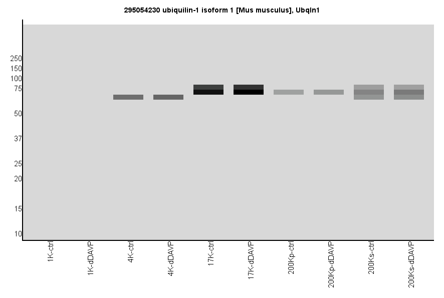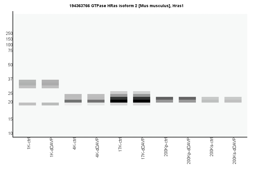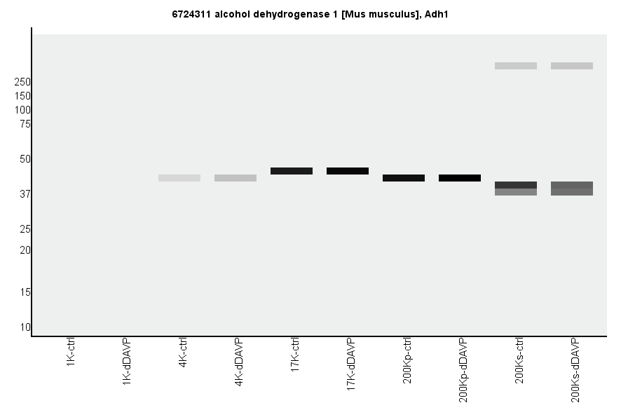 The virtual western blot images show data normalized using a logarithmic conversion scale to map peptide intensities to gray-scale levels. Using this conversion method, low-abundance peptides are generally visible in the blot images. Switch back to the default linear conversion scale database page.