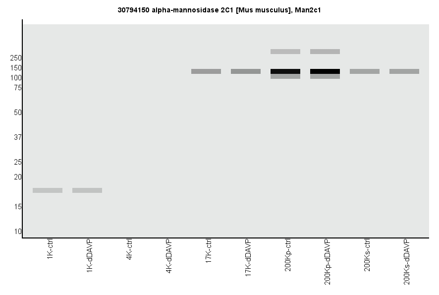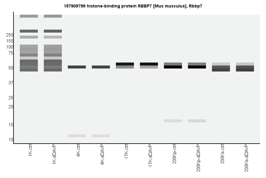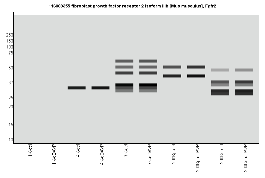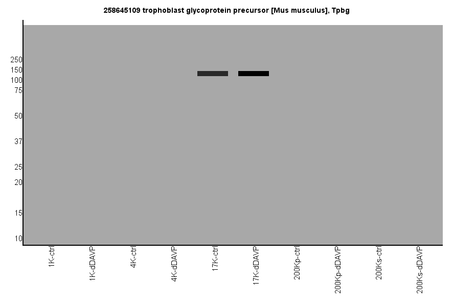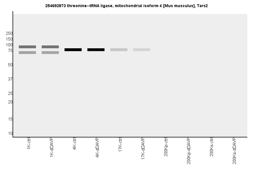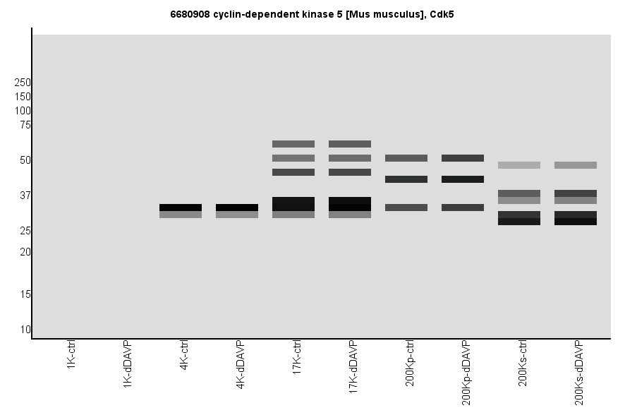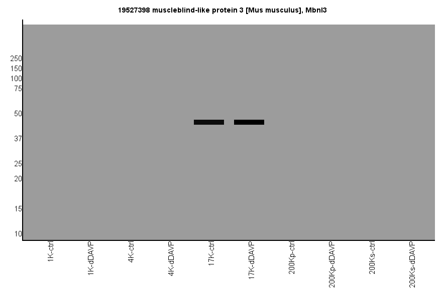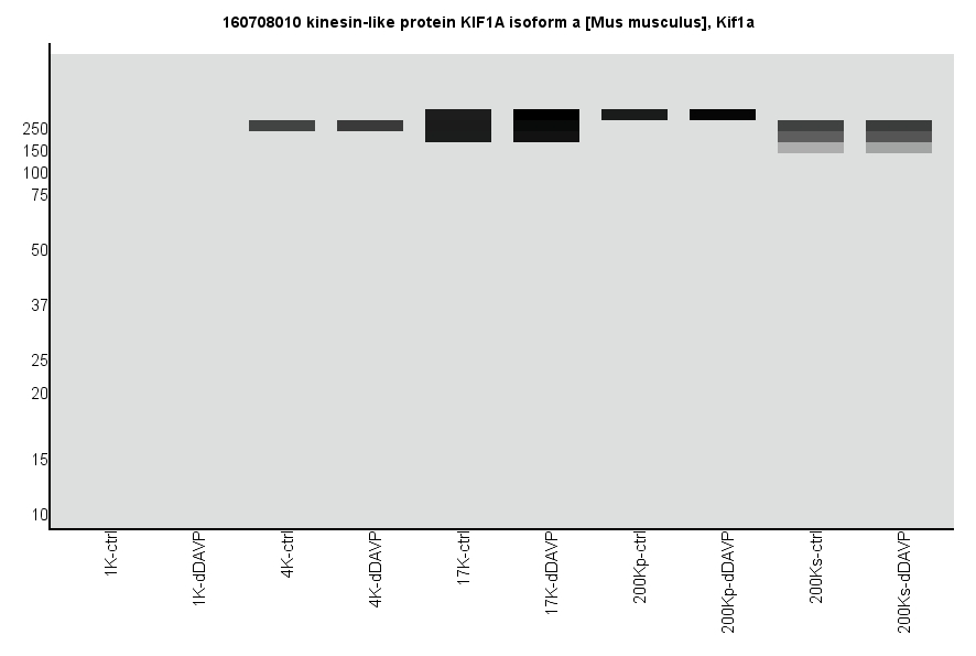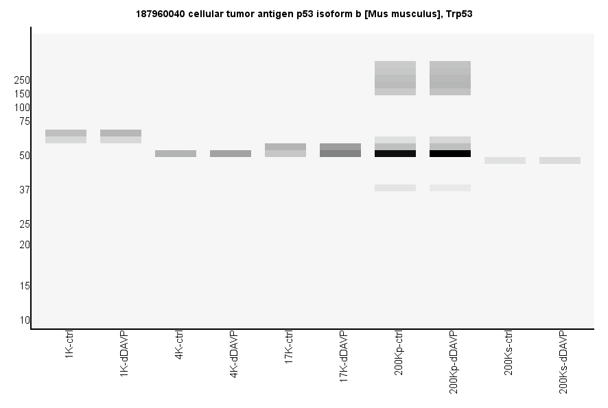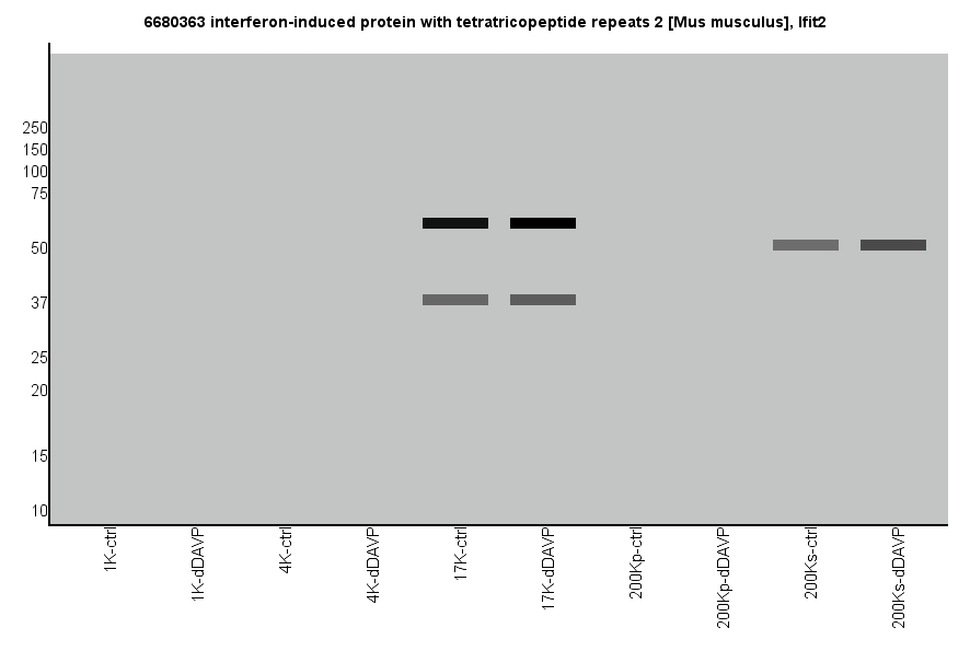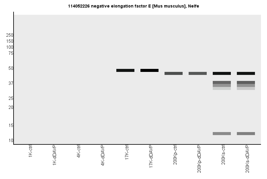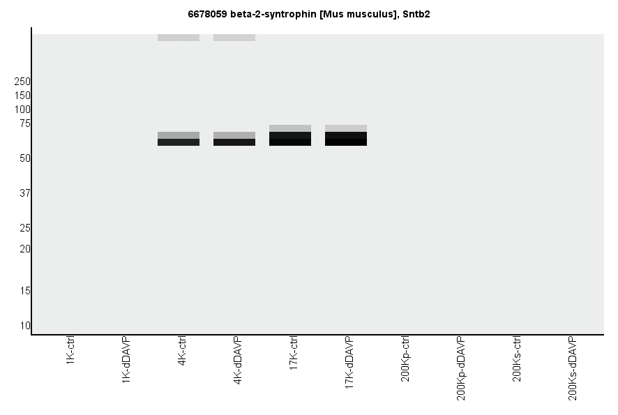 The virtual western blot images show data normalized using a logarithmic conversion scale to map peptide intensities to gray-scale levels. Using this conversion method, low-abundance peptides are generally visible in the blot images. Switch back to the default linear conversion scale database page.