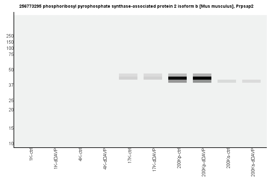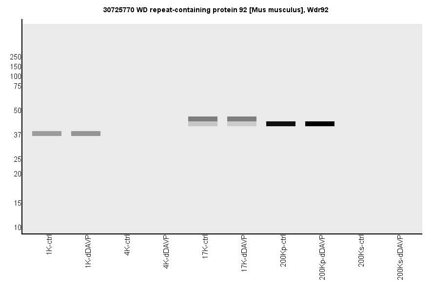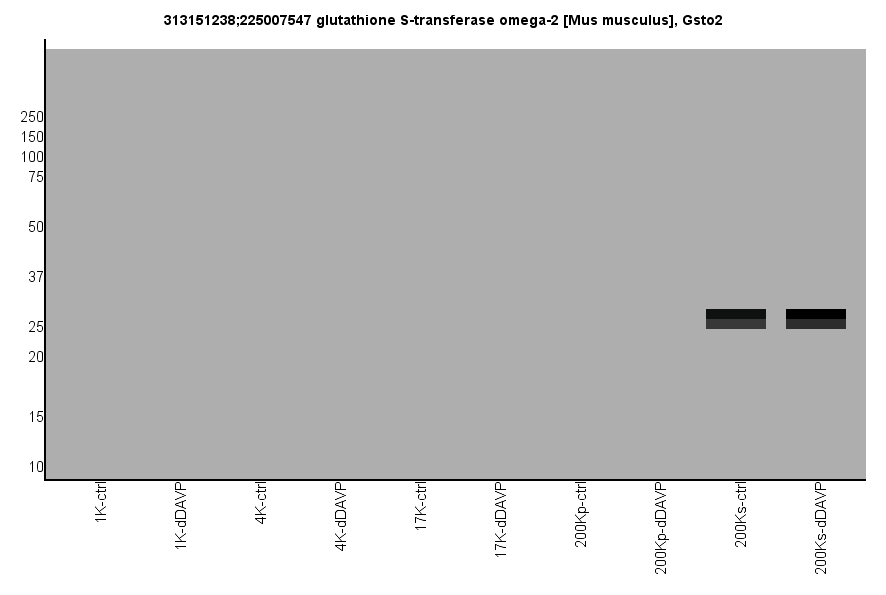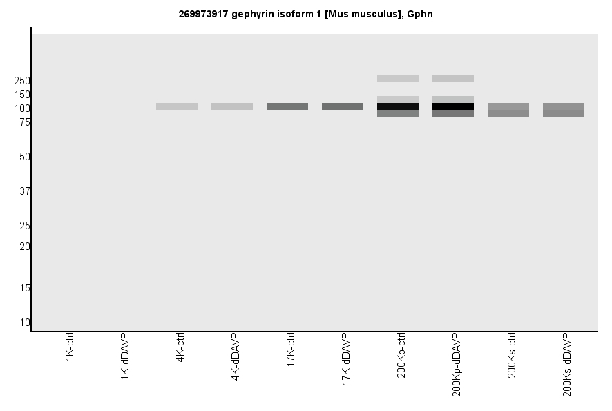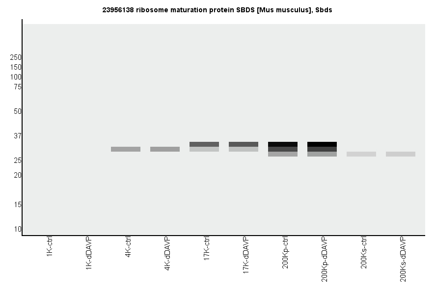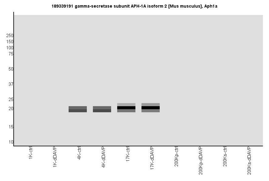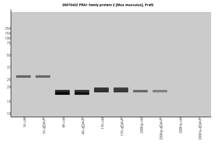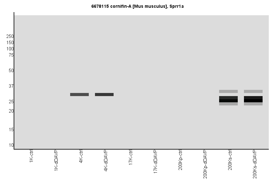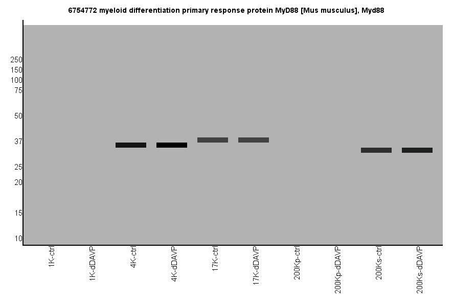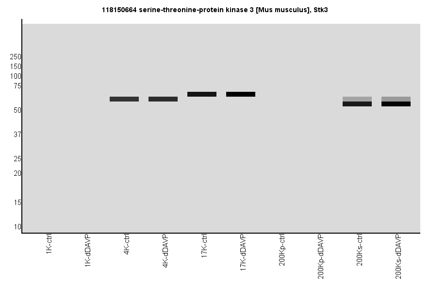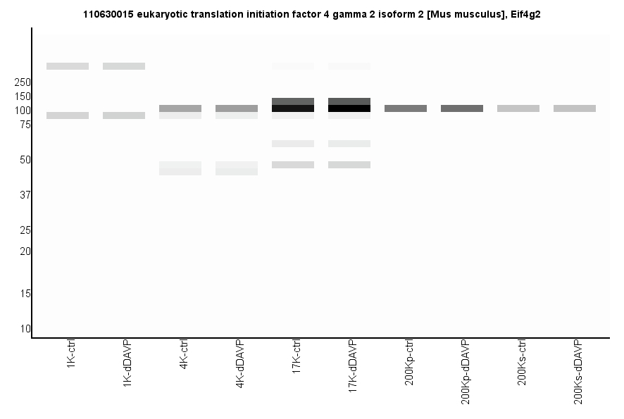 The virtual western blot images show data normalized using a logarithmic conversion scale to map peptide intensities to gray-scale levels. Using this conversion method, low-abundance peptides are generally visible in the blot images. Switch back to the default linear conversion scale database page.