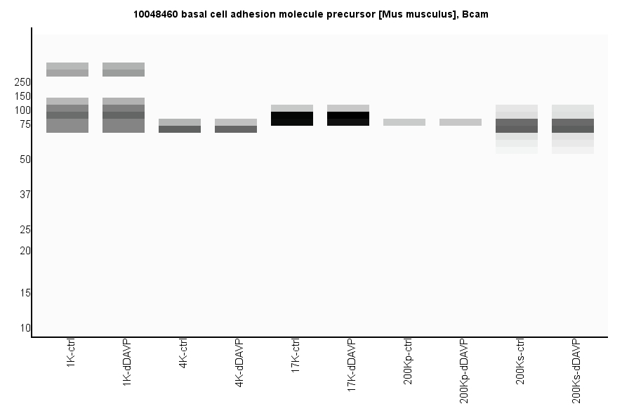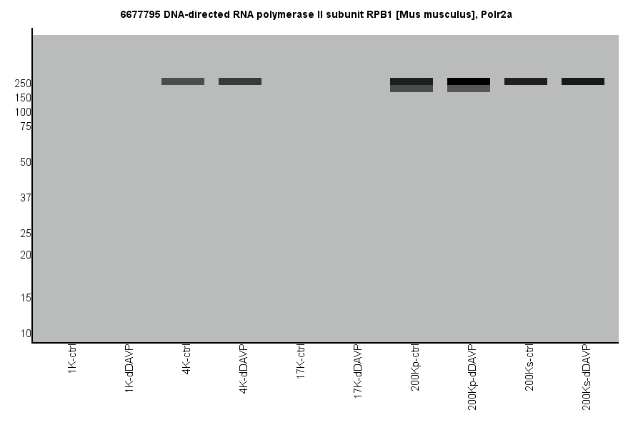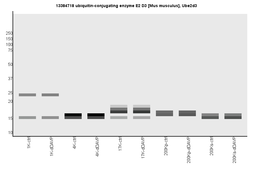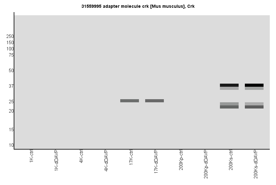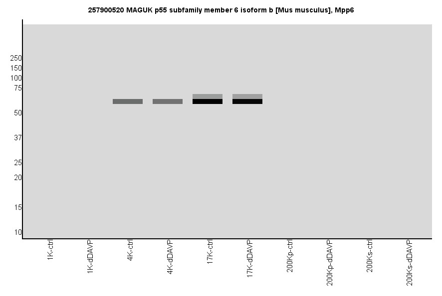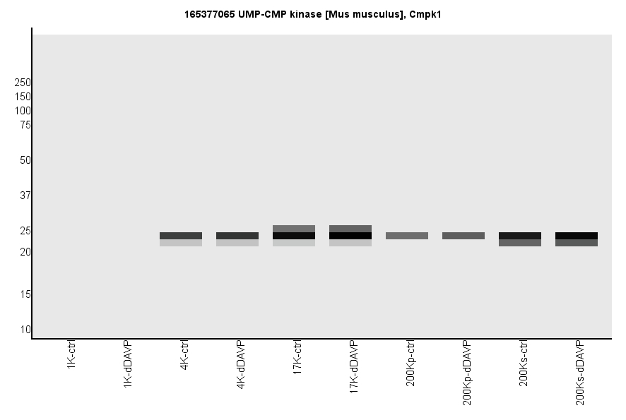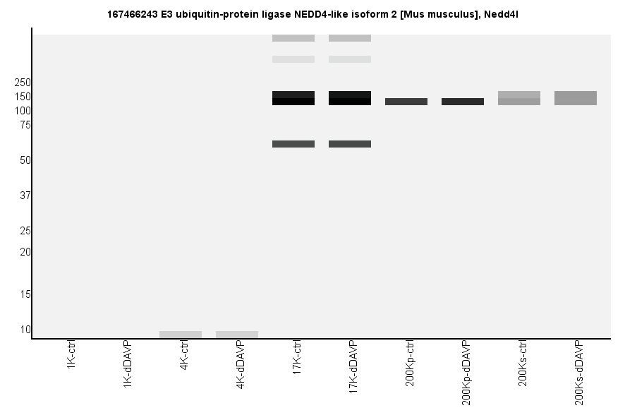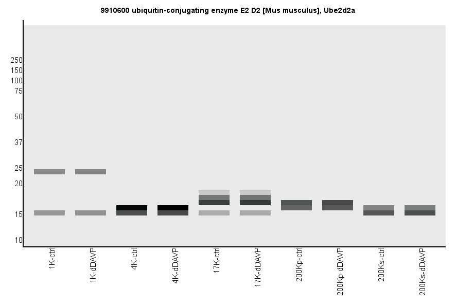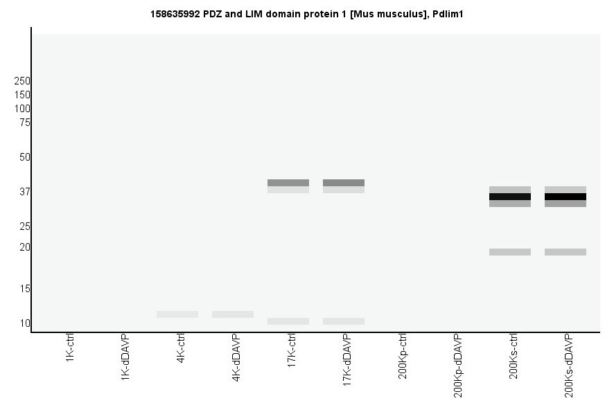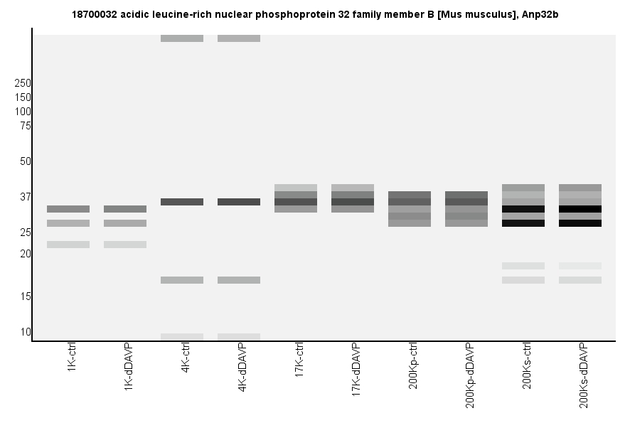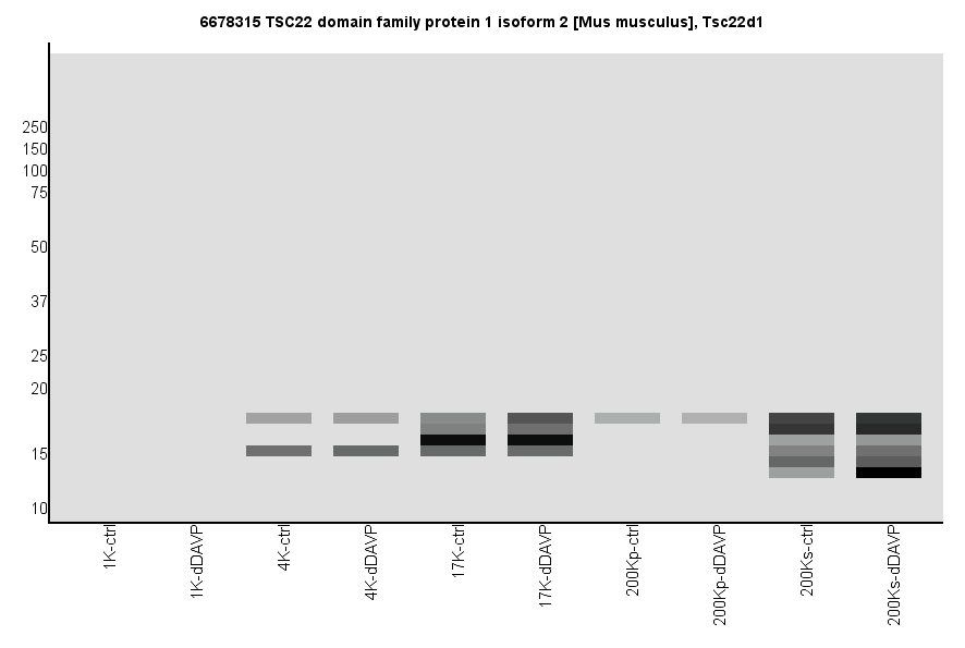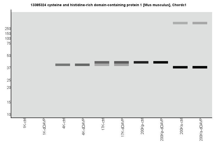 The virtual western blot images show data normalized using a logarithmic conversion scale to map peptide intensities to gray-scale levels. Using this conversion method, low-abundance peptides are generally visible in the blot images. Switch back to the default linear conversion scale database page.