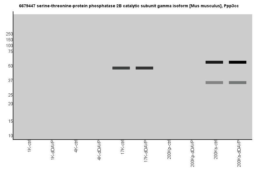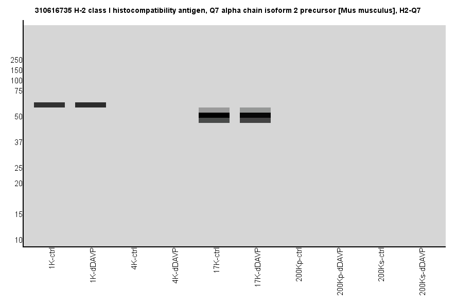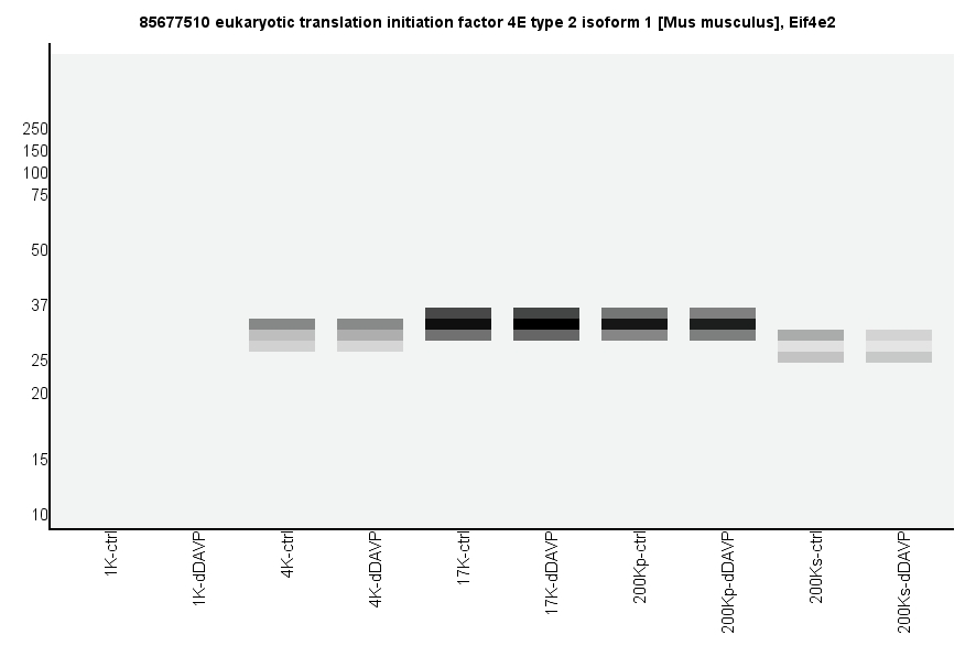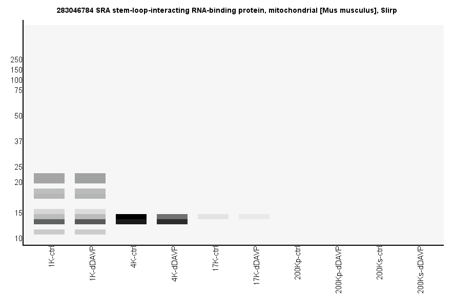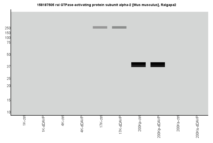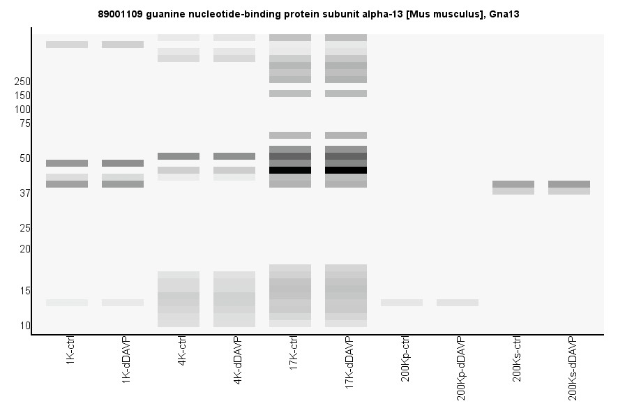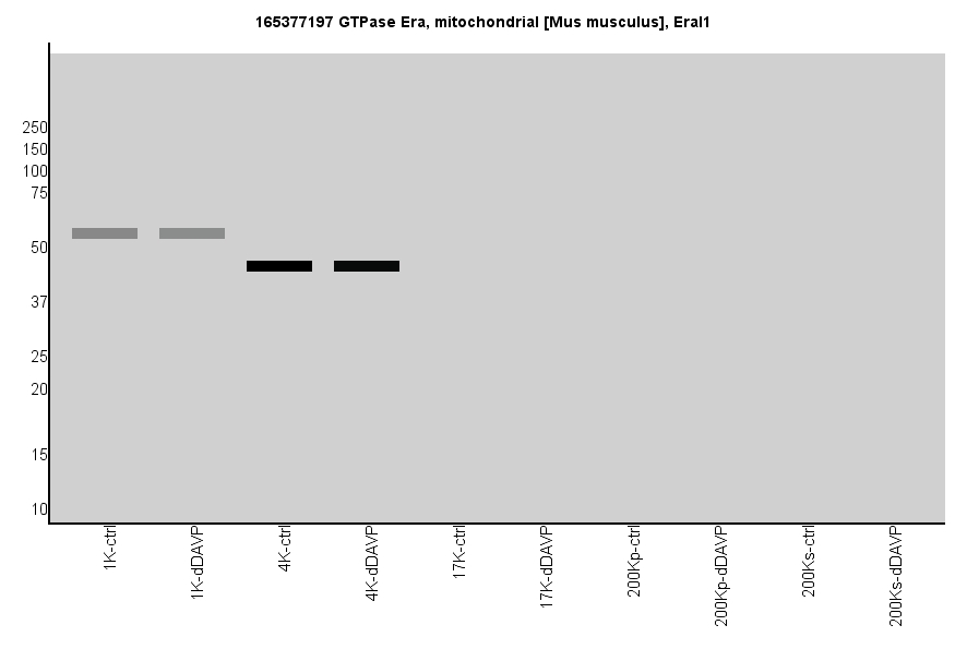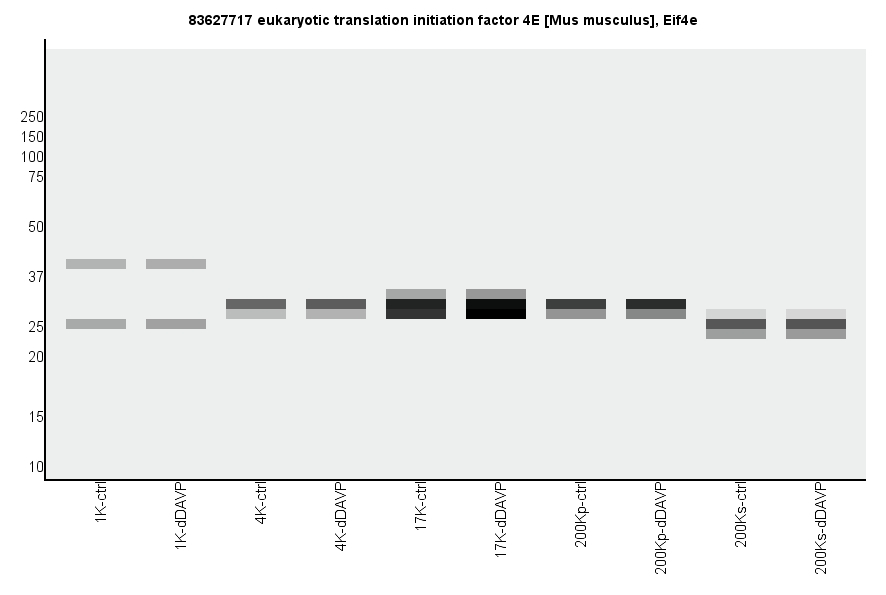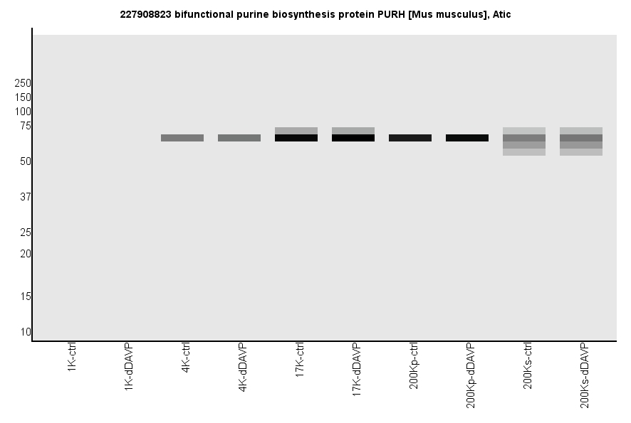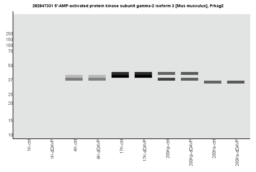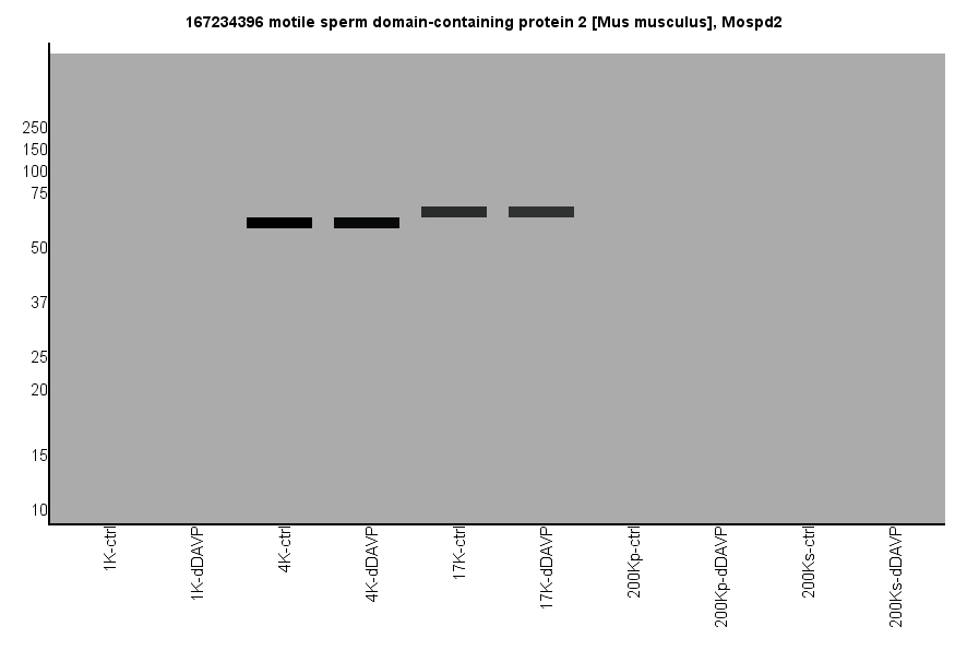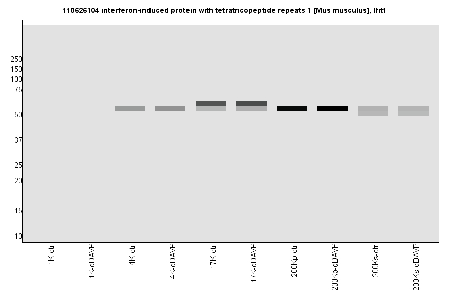 The virtual western blot images show data normalized using a logarithmic conversion scale to map peptide intensities to gray-scale levels. Using this conversion method, low-abundance peptides are generally visible in the blot images. Switch back to the default linear conversion scale database page.