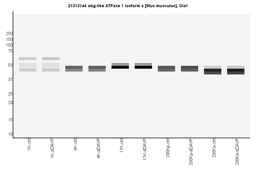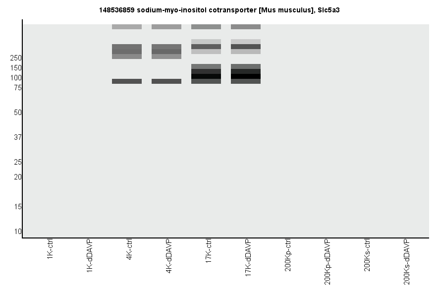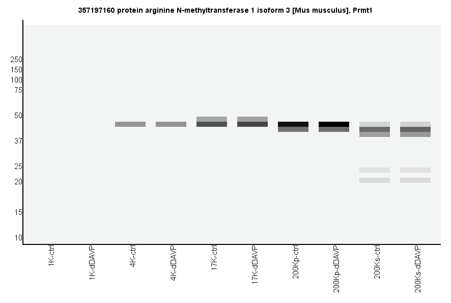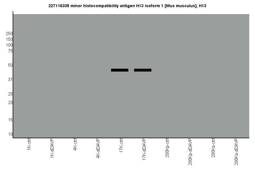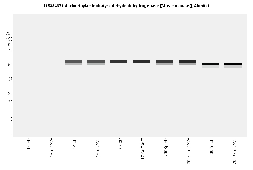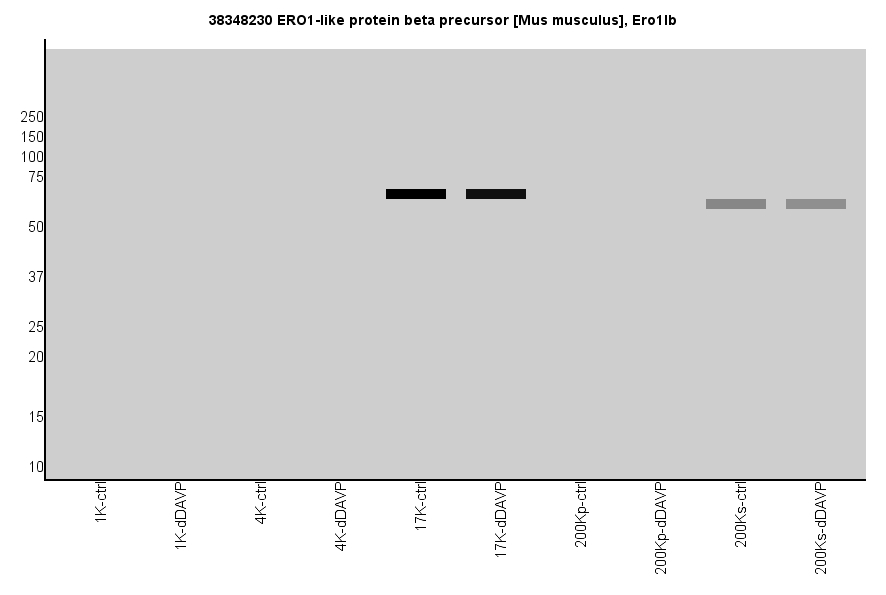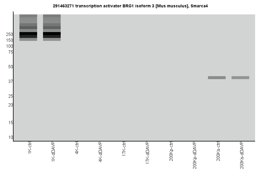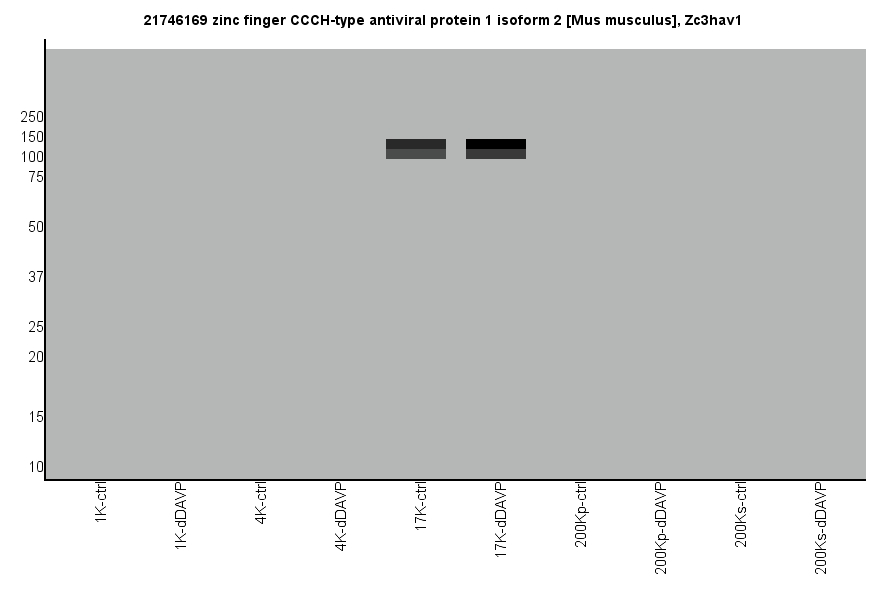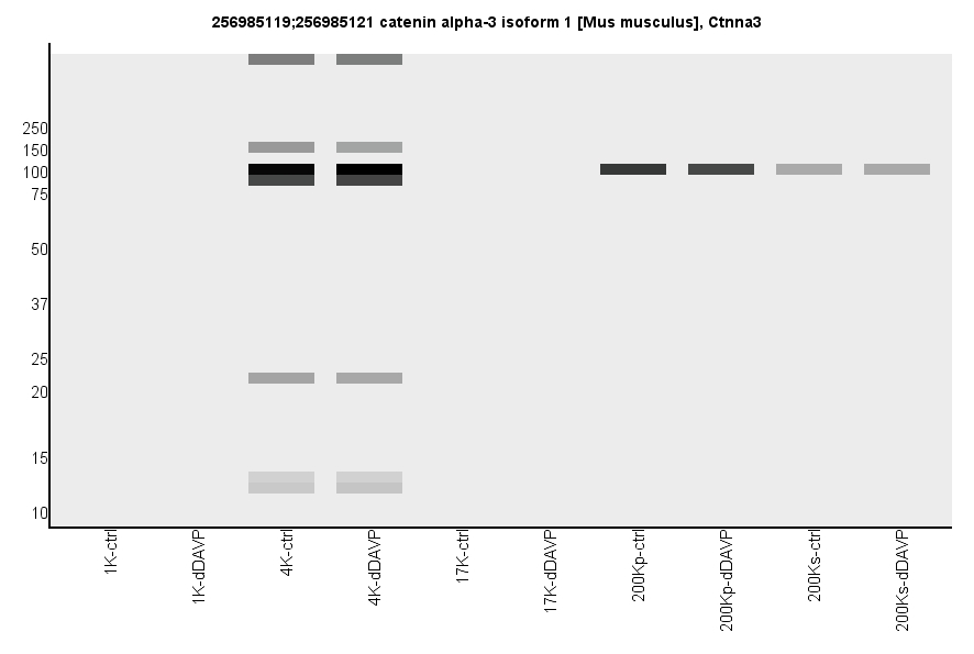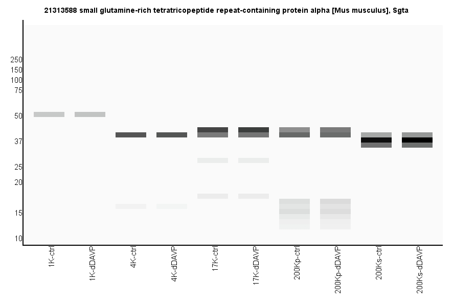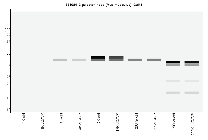 The virtual western blot images show data normalized using a logarithmic conversion scale to map peptide intensities to gray-scale levels. Using this conversion method, low-abundance peptides are generally visible in the blot images. Switch back to the default linear conversion scale database page.