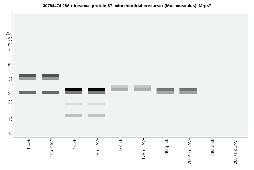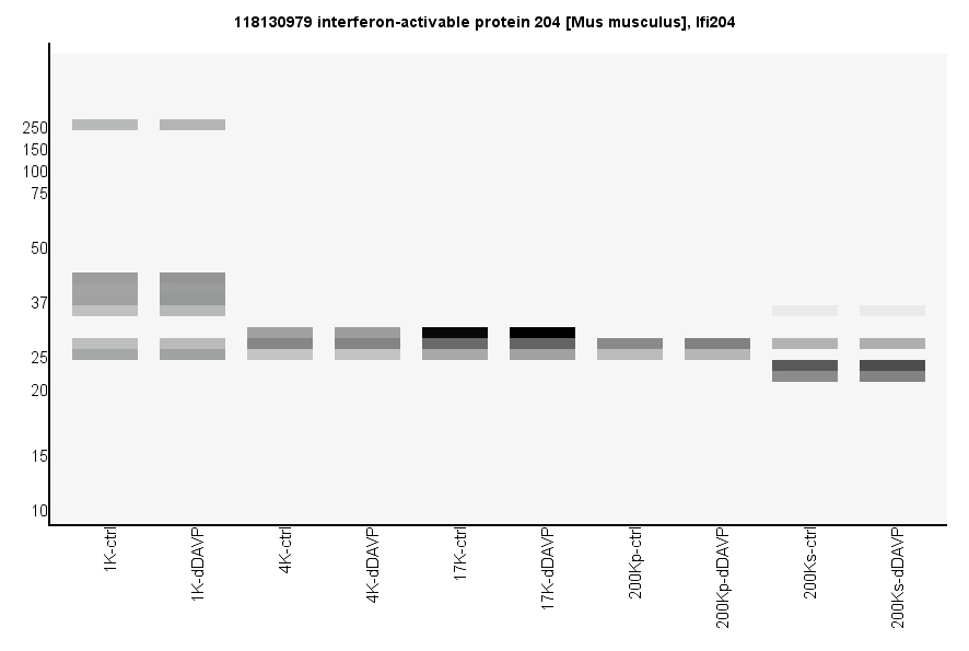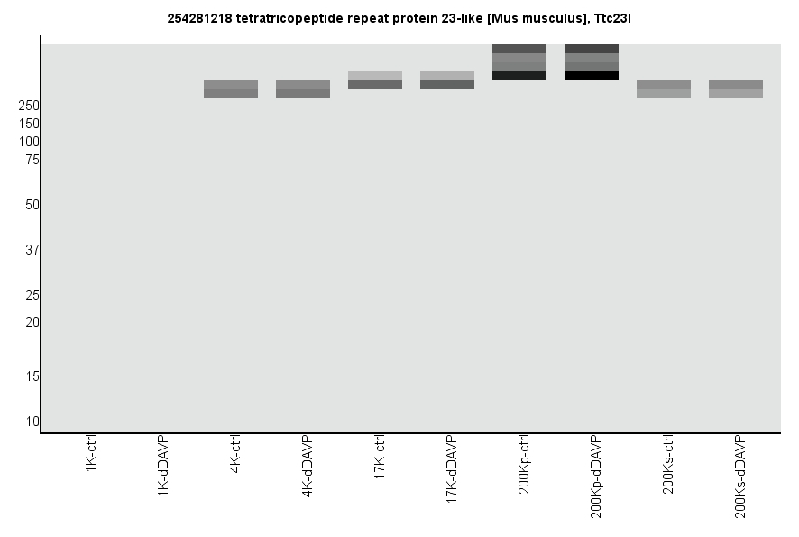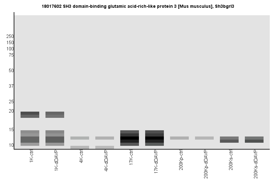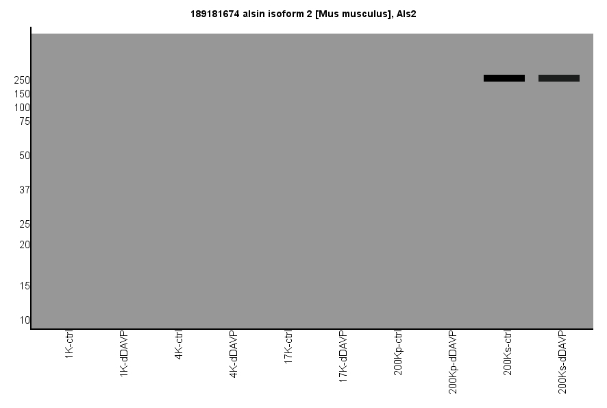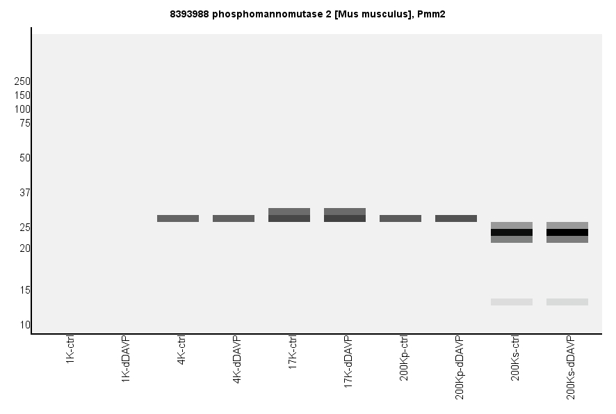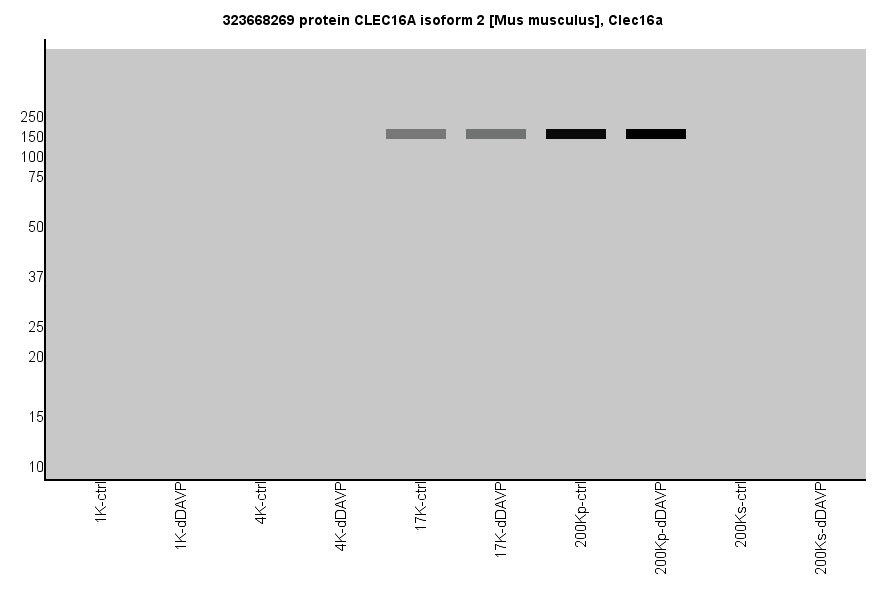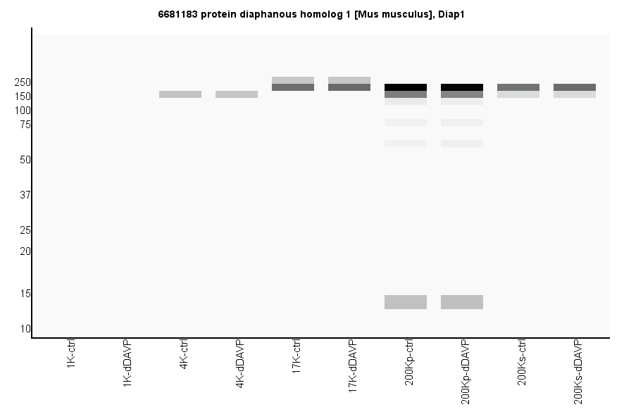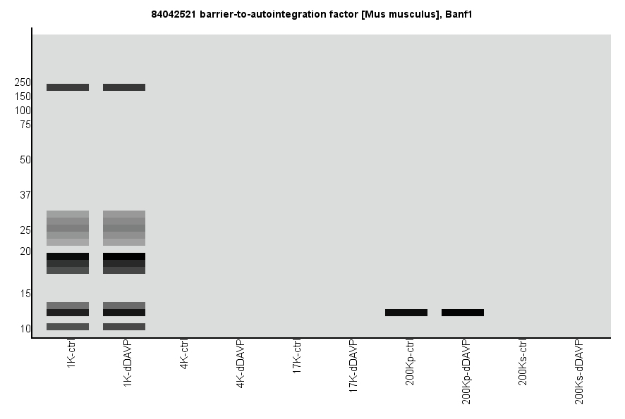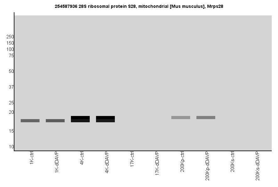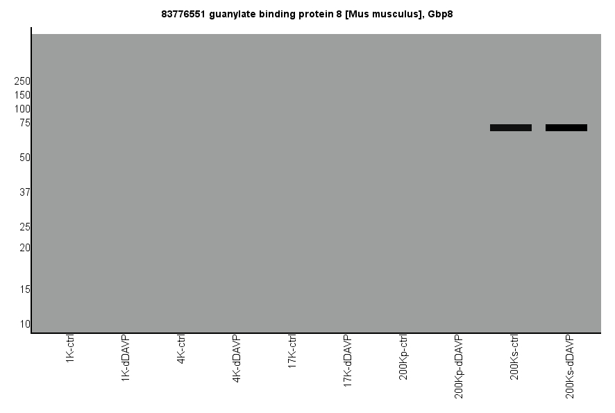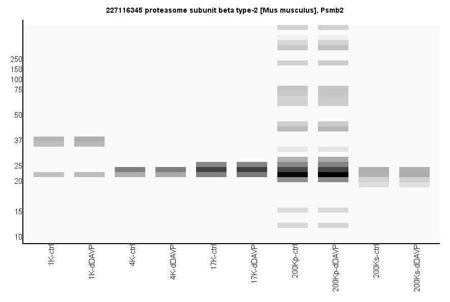 The virtual western blot images show data normalized using a logarithmic conversion scale to map peptide intensities to gray-scale levels. Using this conversion method, low-abundance peptides are generally visible in the blot images. Switch back to the default linear conversion scale database page.