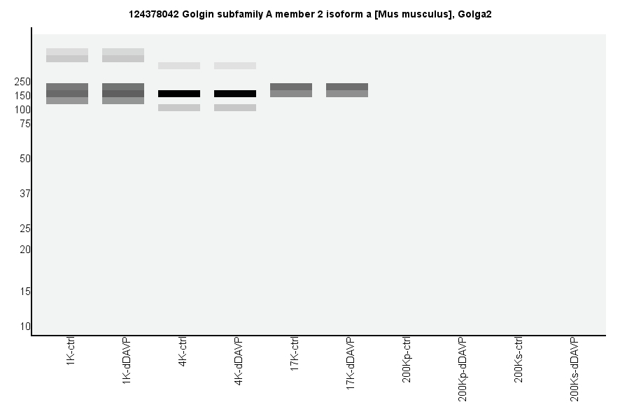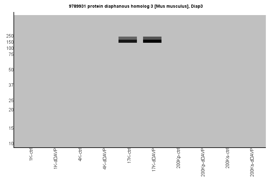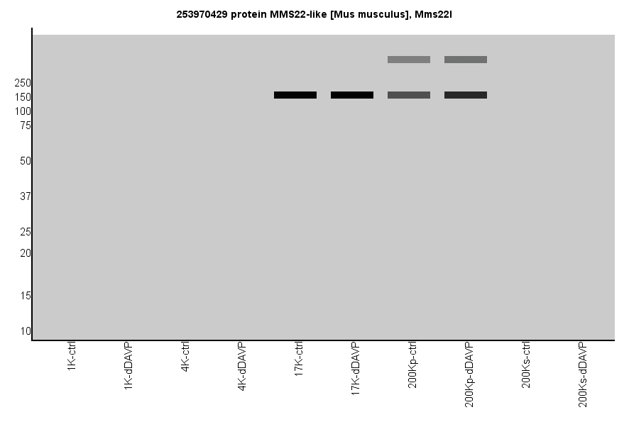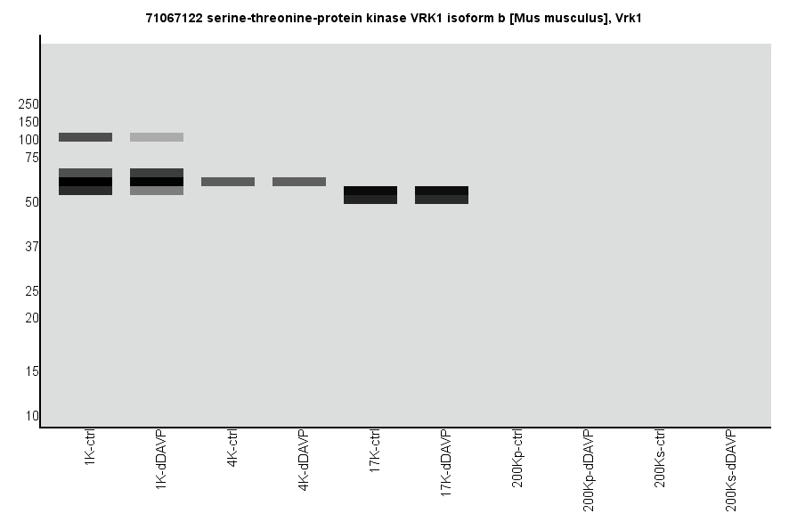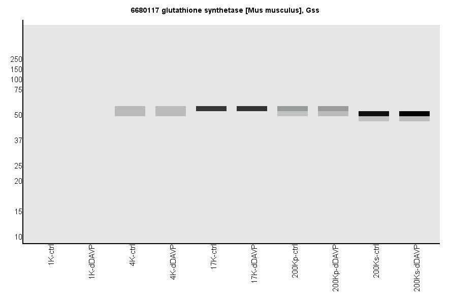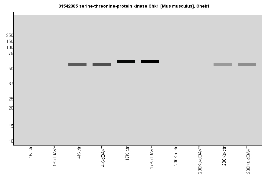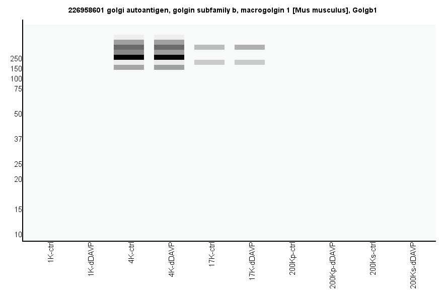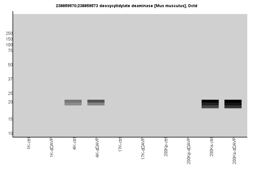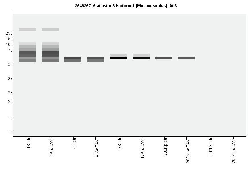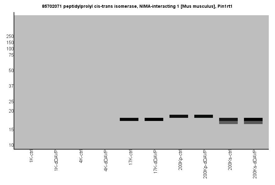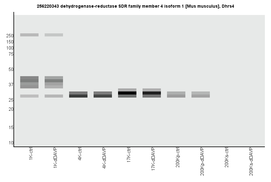 The virtual western blot images show data normalized using a logarithmic conversion scale to map peptide intensities to gray-scale levels. Using this conversion method, low-abundance peptides are generally visible in the blot images. Switch back to the default linear conversion scale database page.