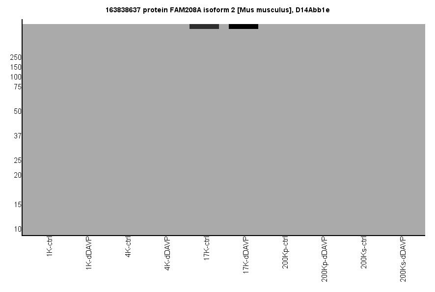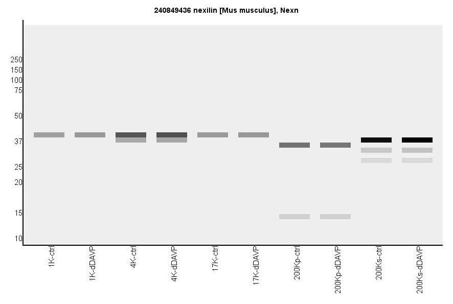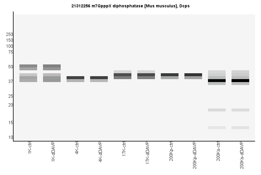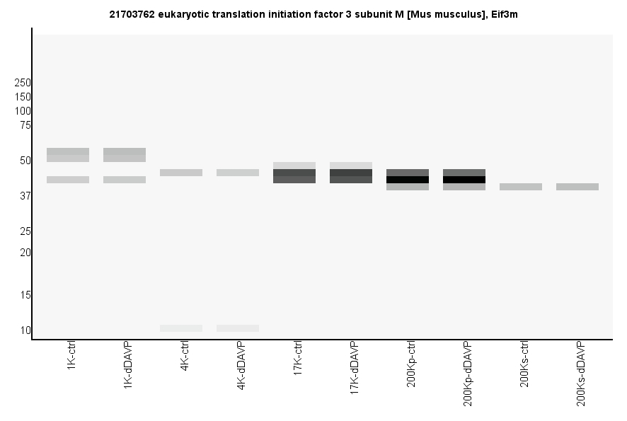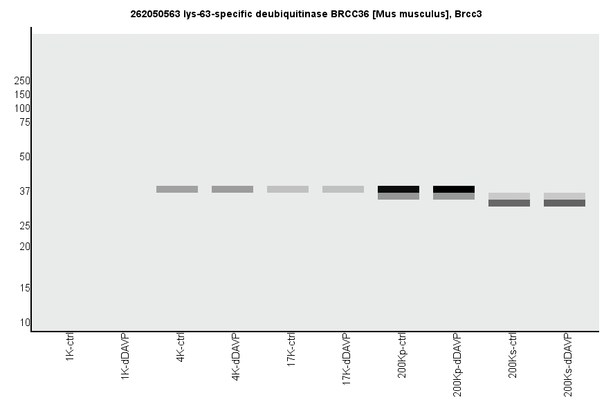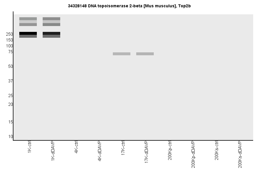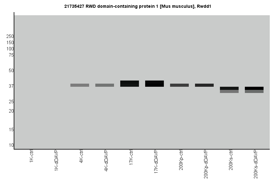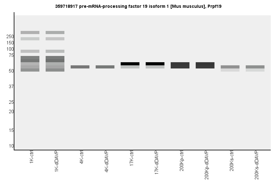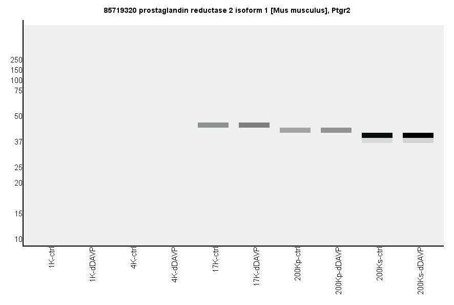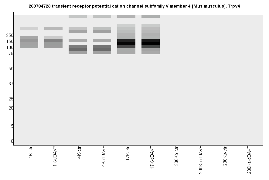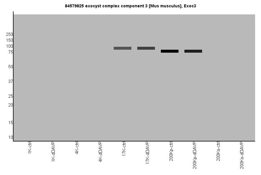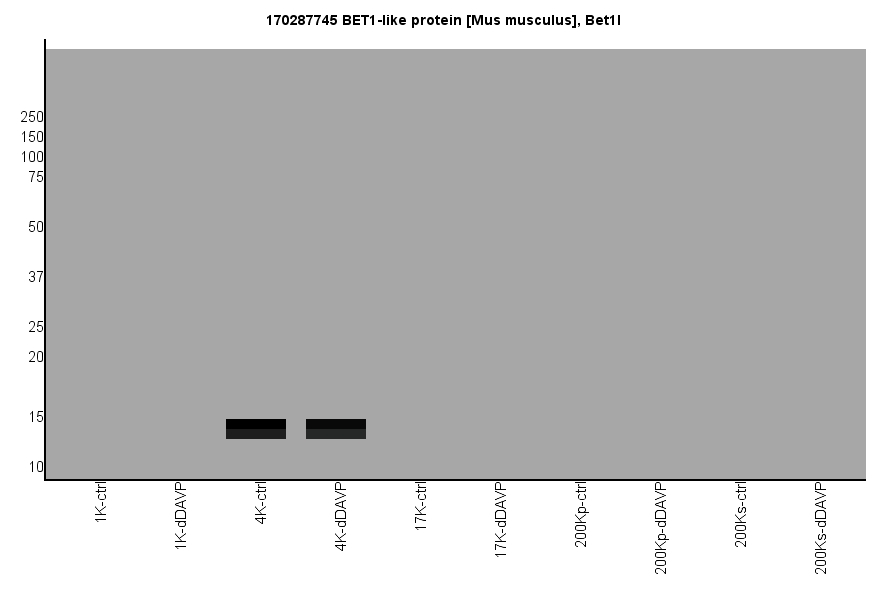 The virtual western blot images show data normalized using a logarithmic conversion scale to map peptide intensities to gray-scale levels. Using this conversion method, low-abundance peptides are generally visible in the blot images. Switch back to the default linear conversion scale database page.