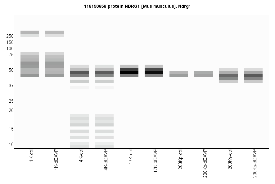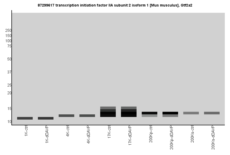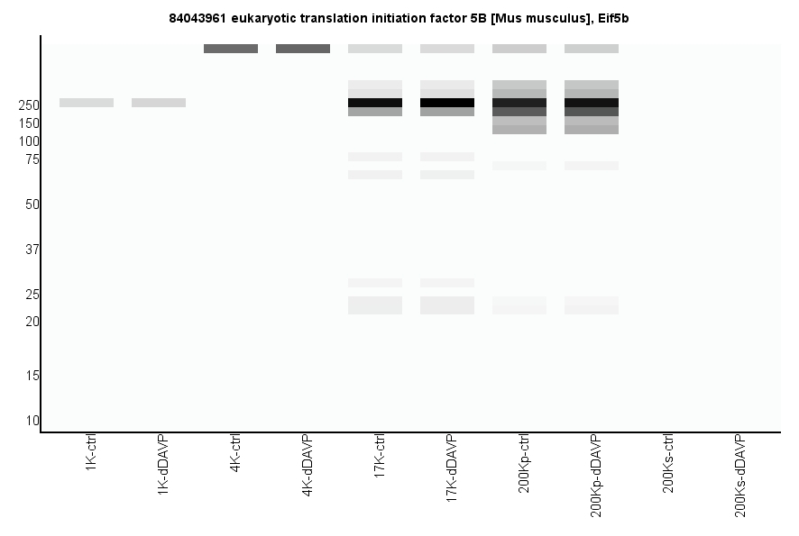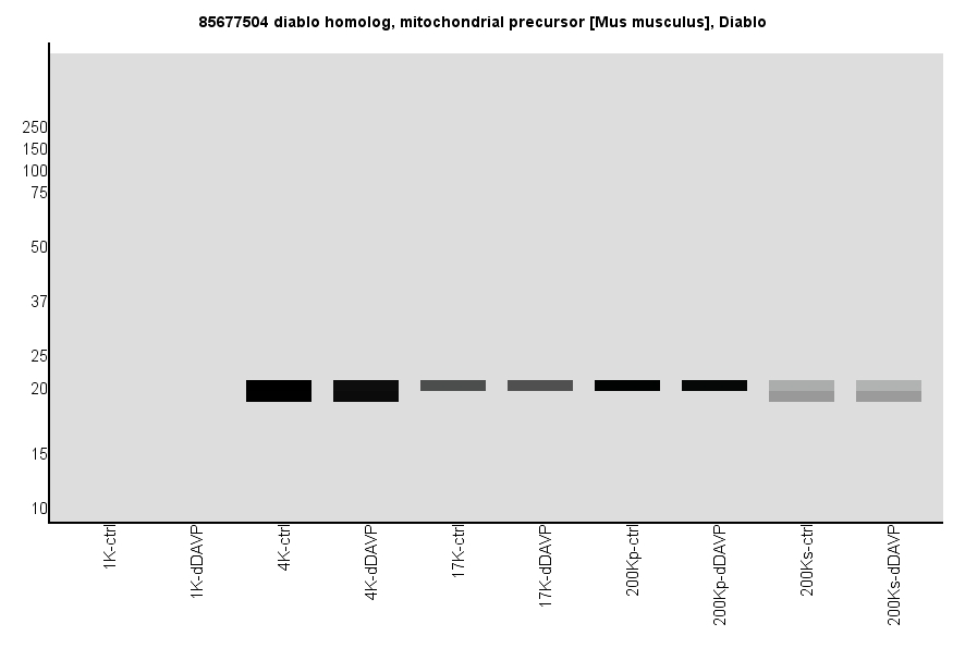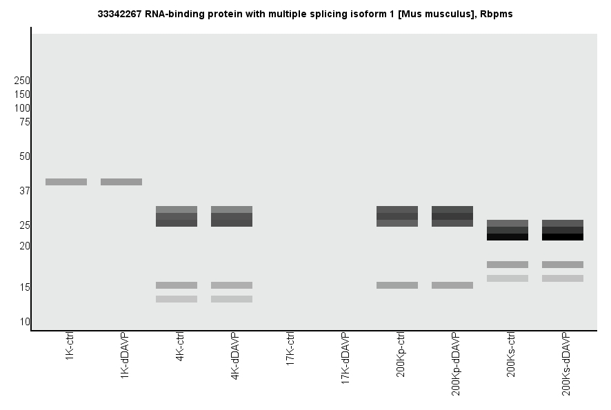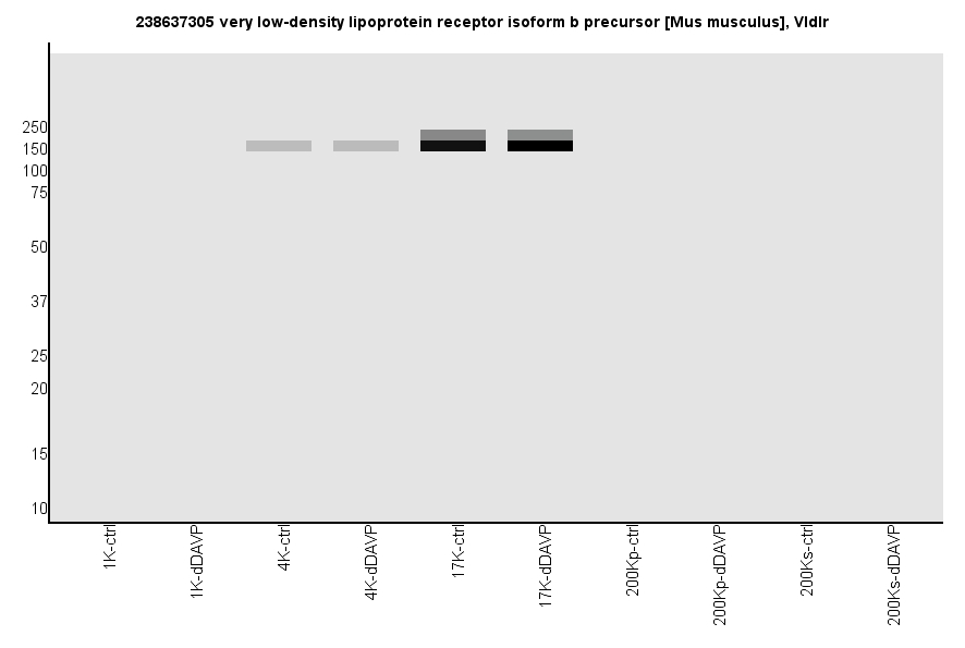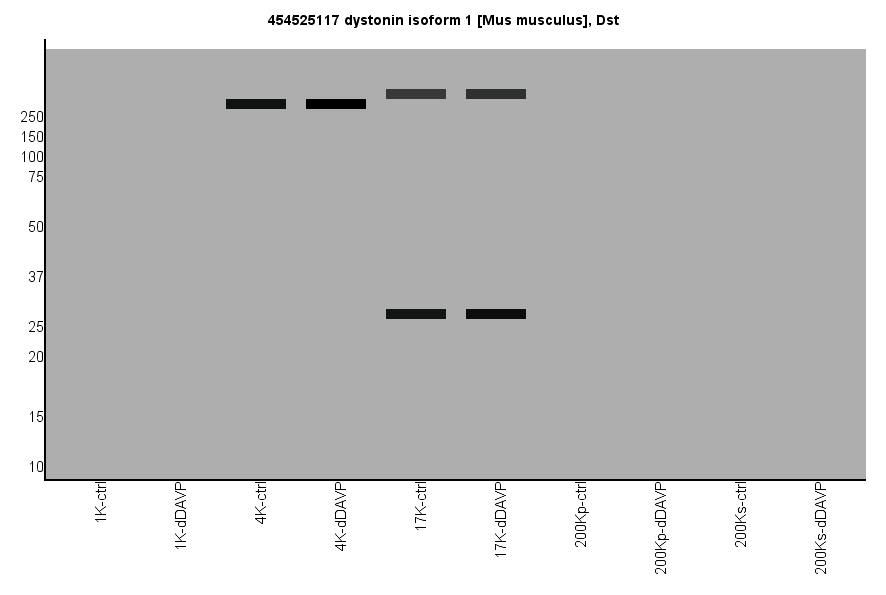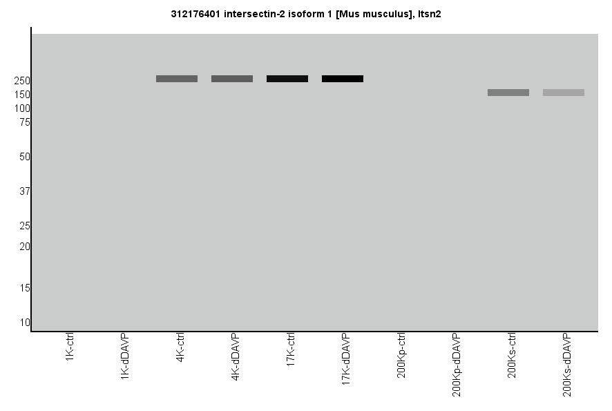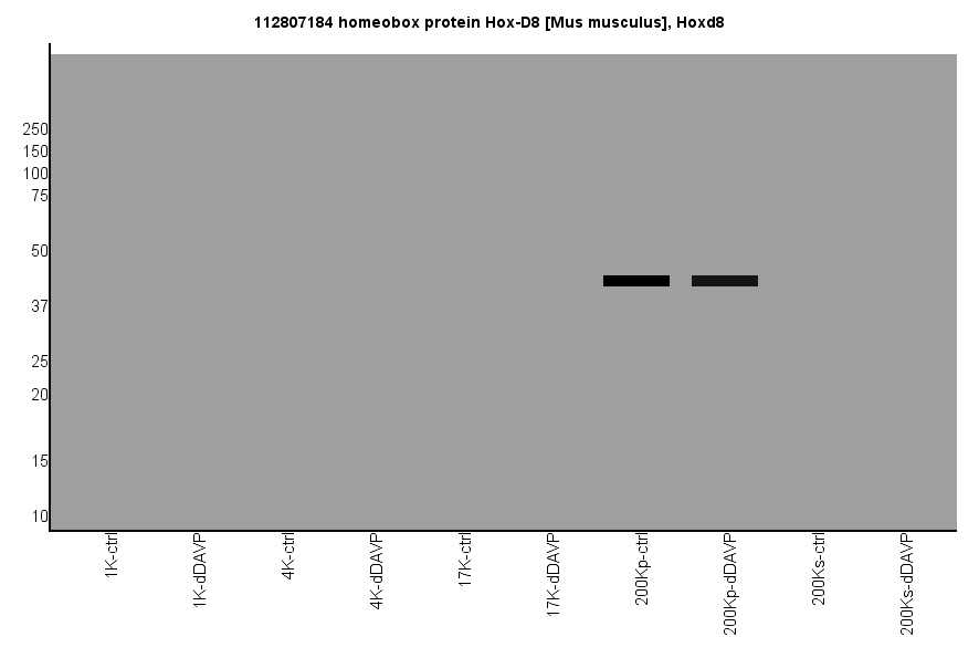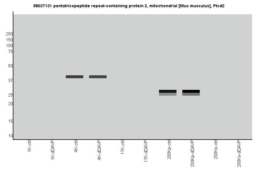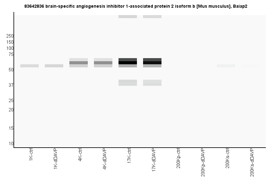 The virtual western blot images show data normalized using a logarithmic conversion scale to map peptide intensities to gray-scale levels. Using this conversion method, low-abundance peptides are generally visible in the blot images. Switch back to the default linear conversion scale database page.
