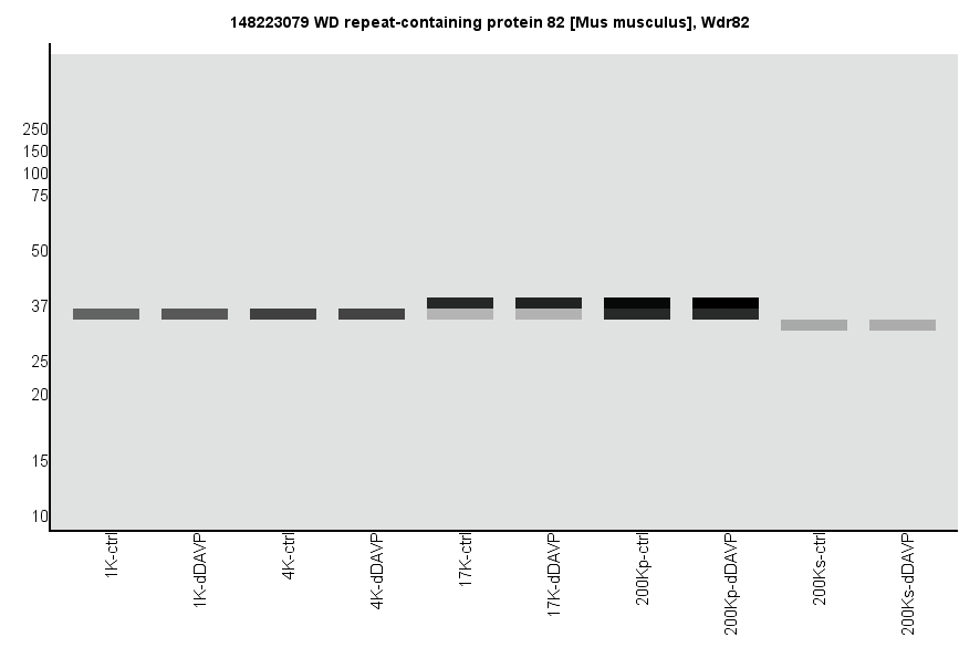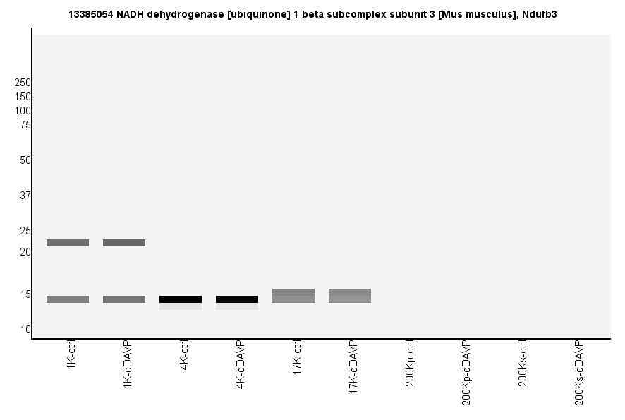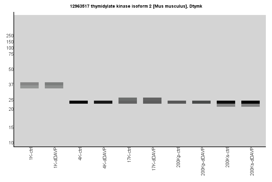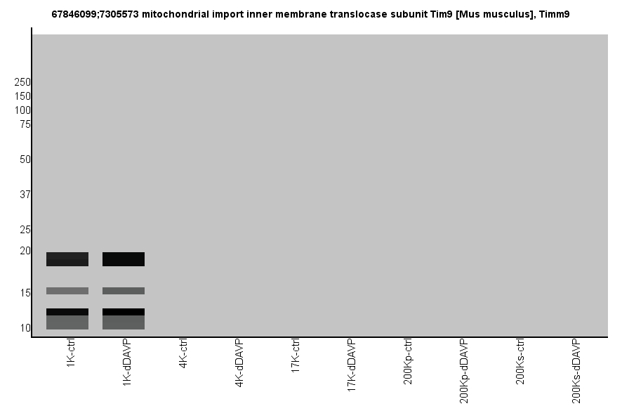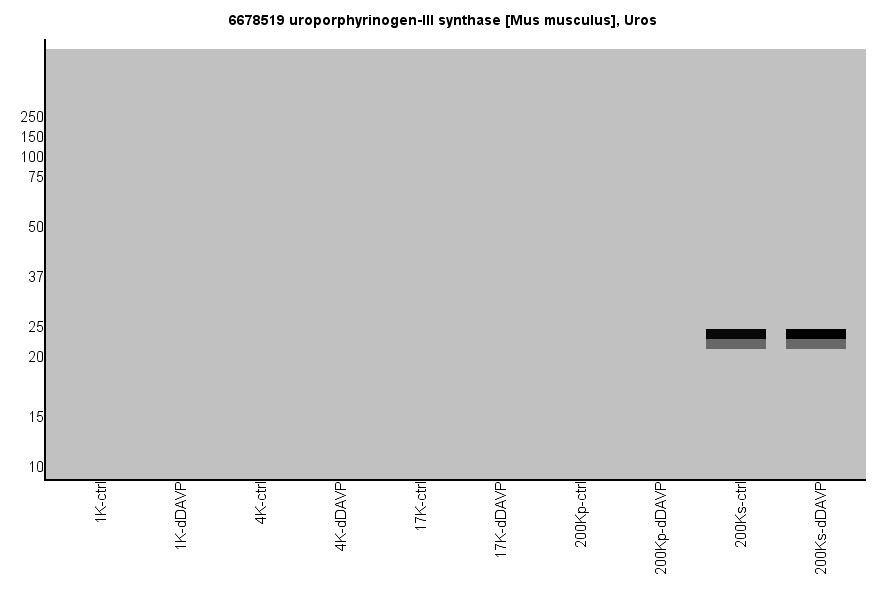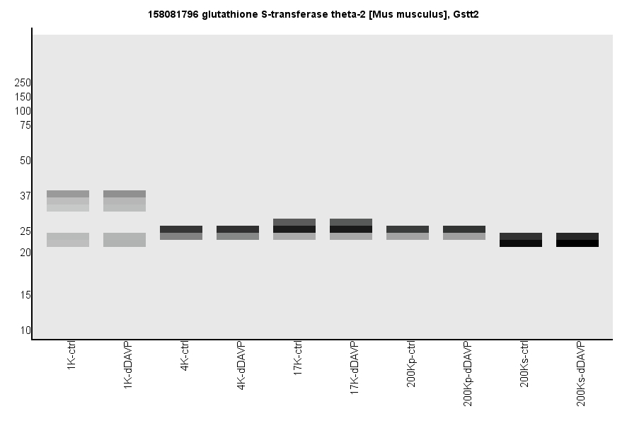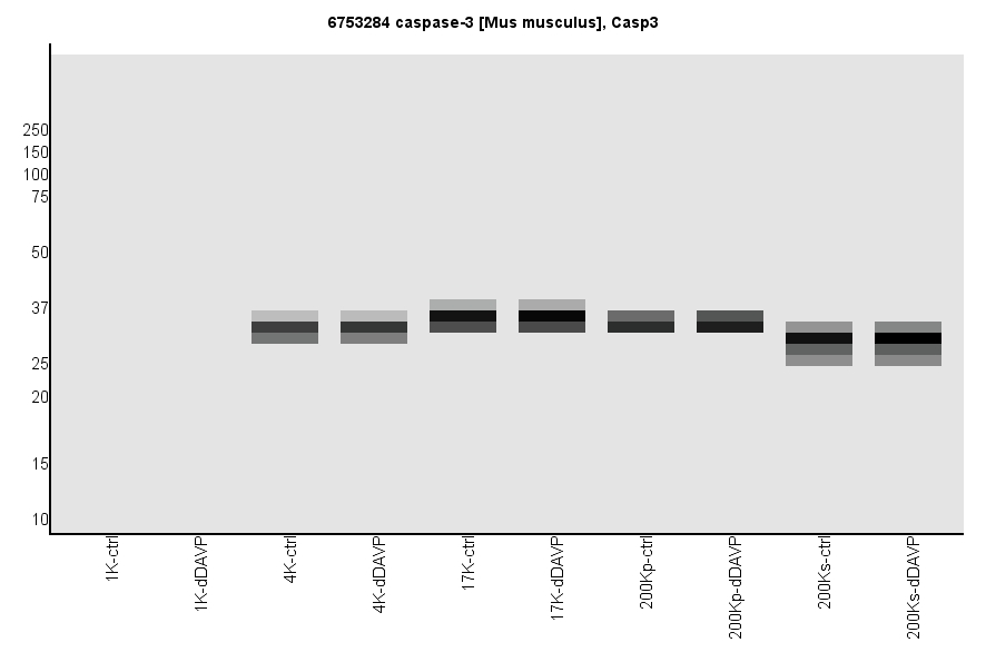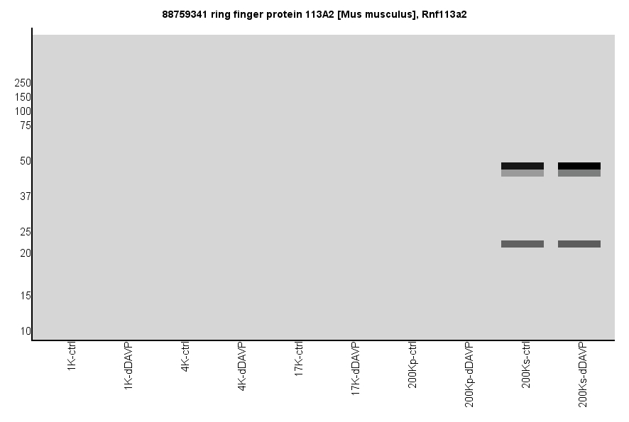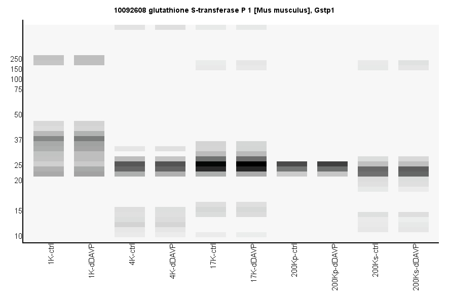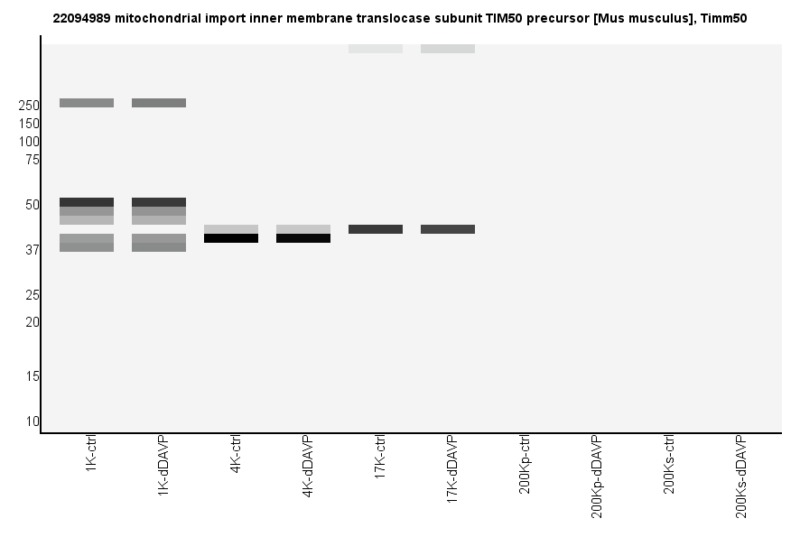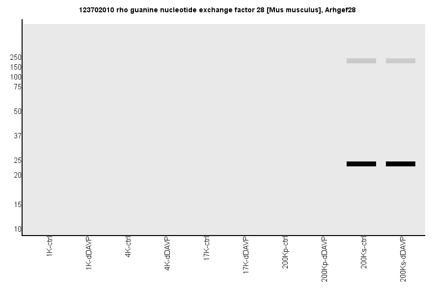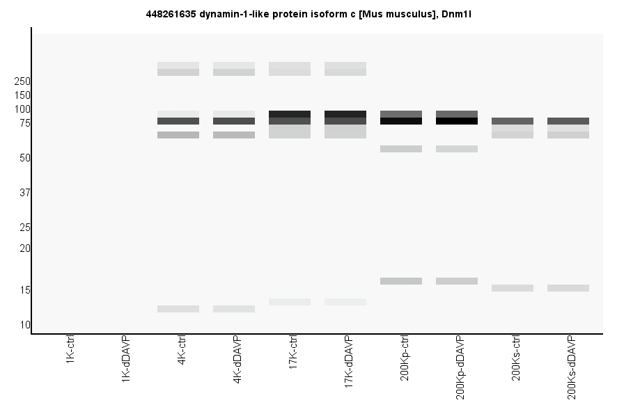 The virtual western blot images show data normalized using a logarithmic conversion scale to map peptide intensities to gray-scale levels. Using this conversion method, low-abundance peptides are generally visible in the blot images. Switch back to the default linear conversion scale database page.