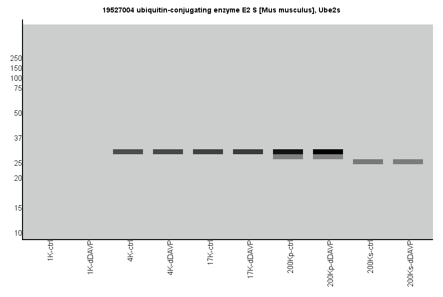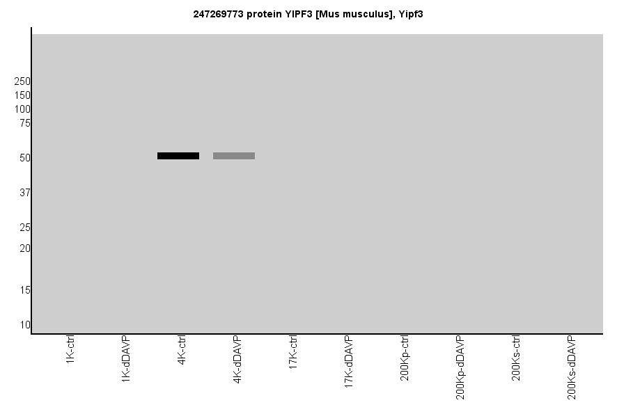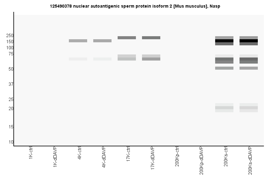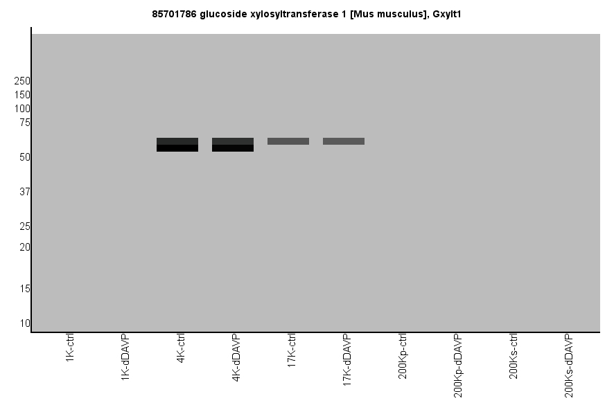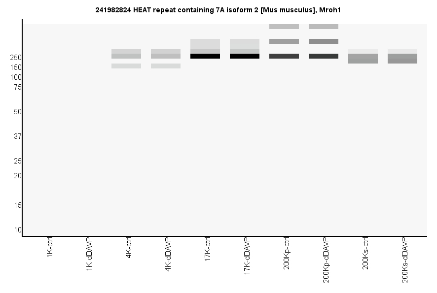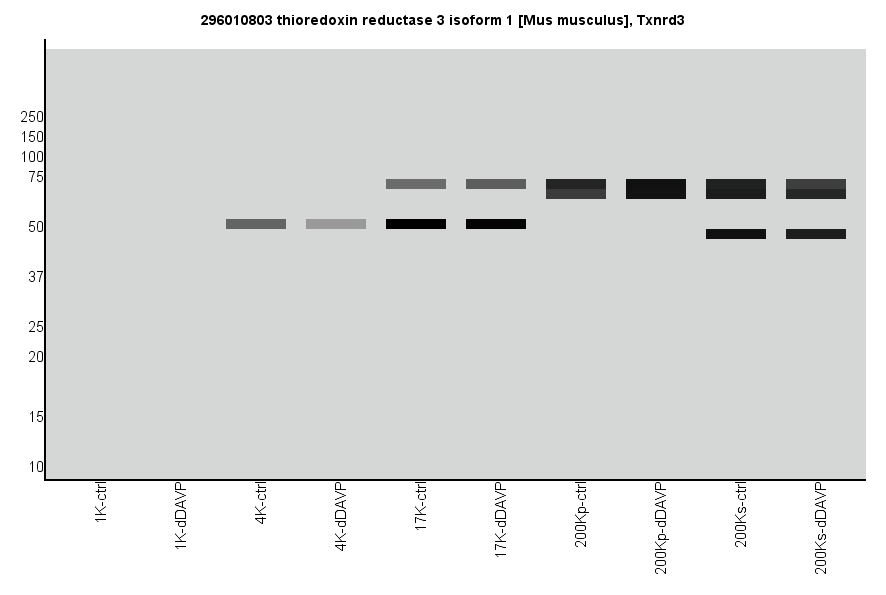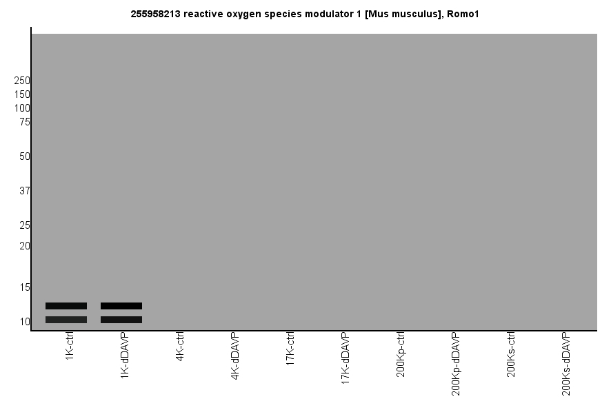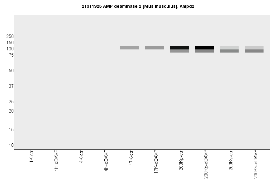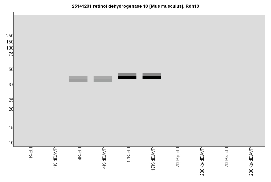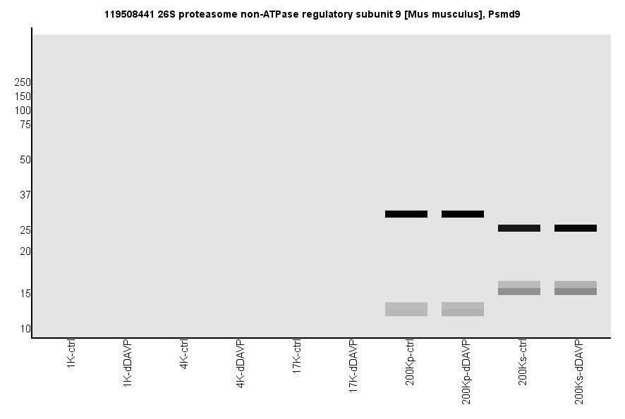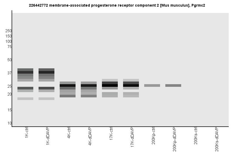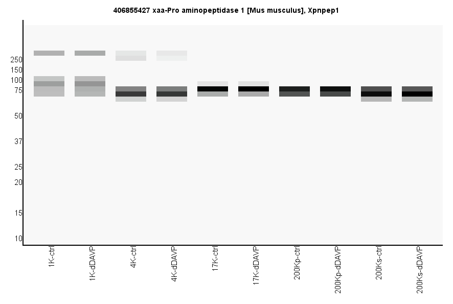 The virtual western blot images show data normalized using a logarithmic conversion scale to map peptide intensities to gray-scale levels. Using this conversion method, low-abundance peptides are generally visible in the blot images. Switch back to the default linear conversion scale database page.