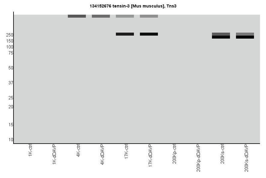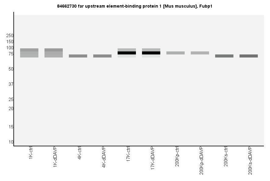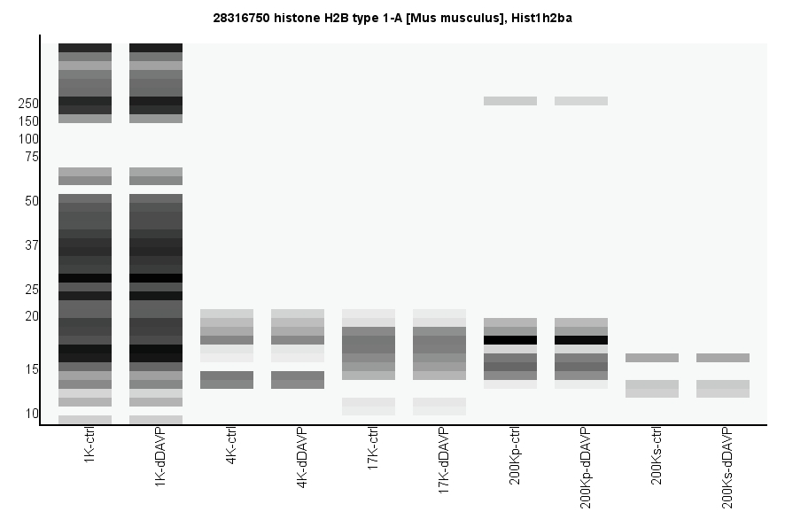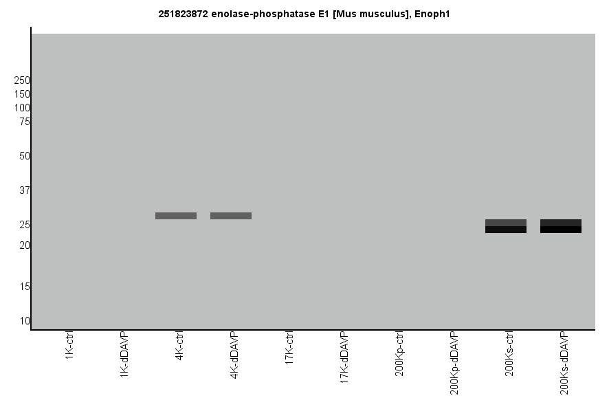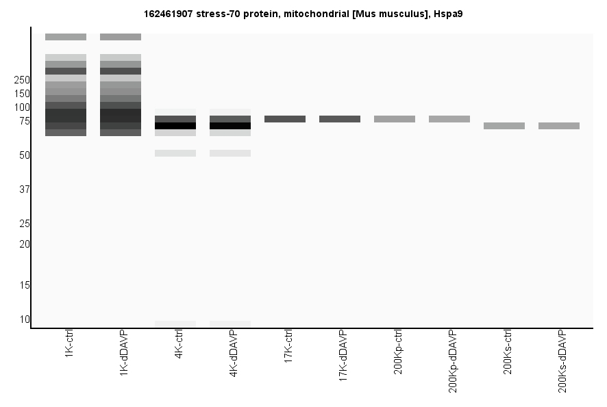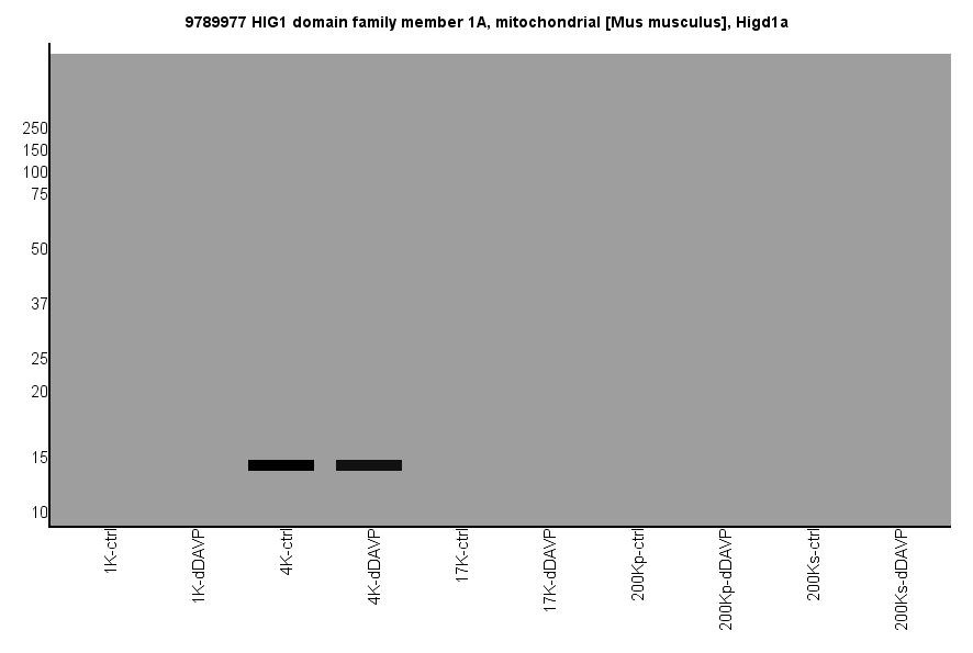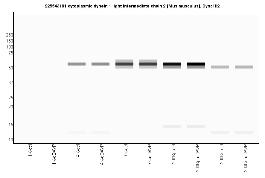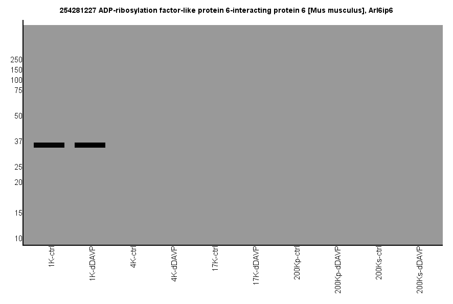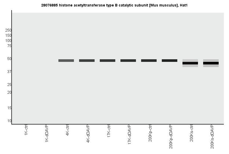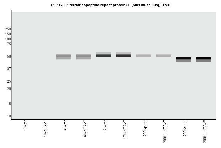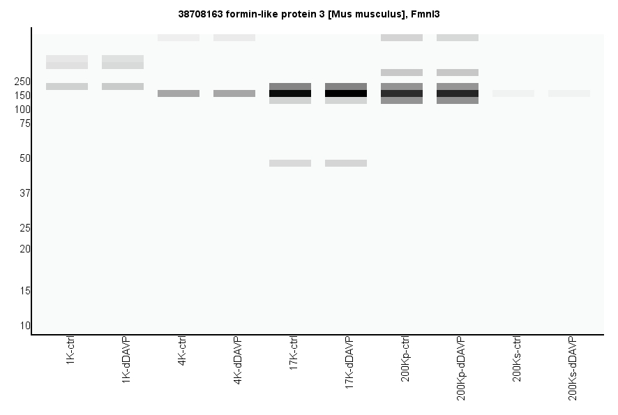The virtual western blot images show data normalized using a logarithmic conversion scale to map peptide intensities to gray-scale levels. Using this conversion method, low-abundance peptides are generally visible in the blot images. Switch back to the default linear conversion scale database page.