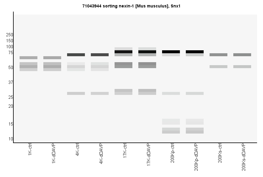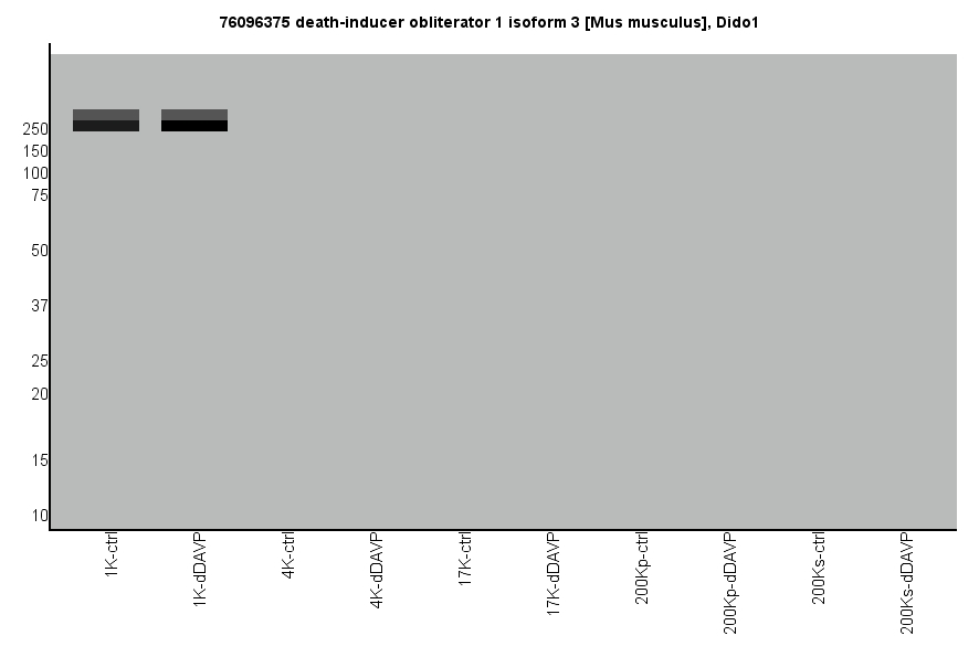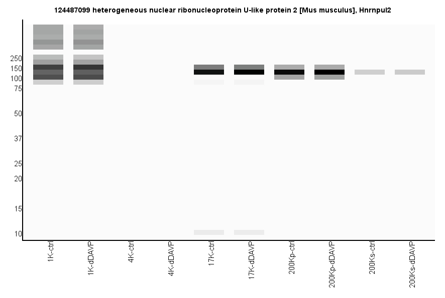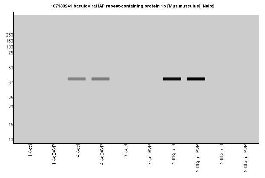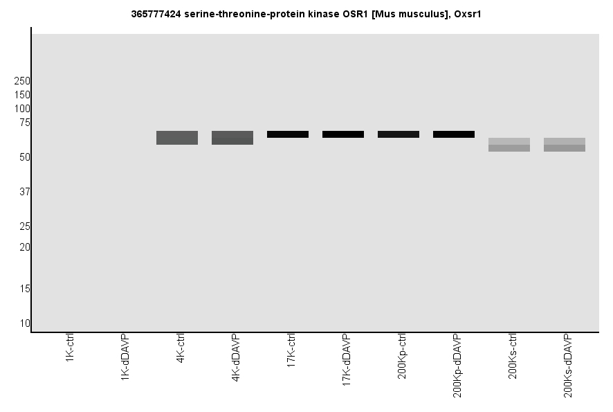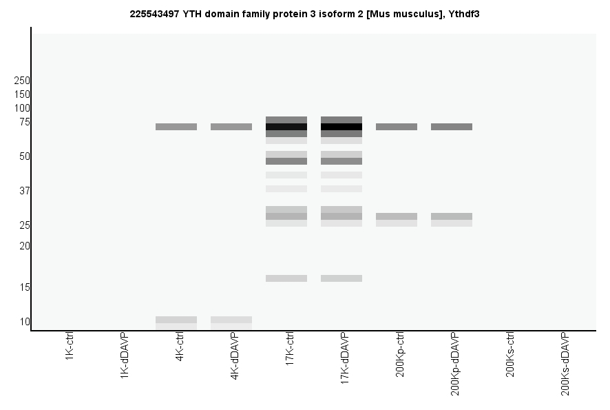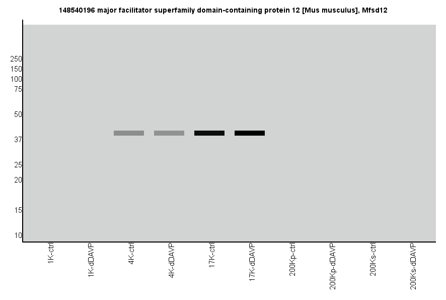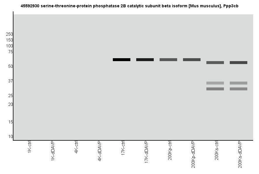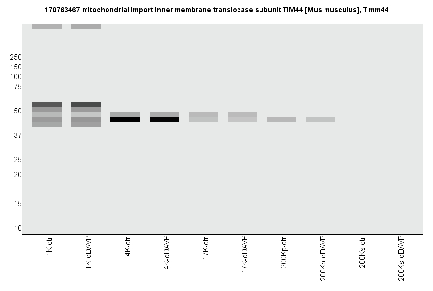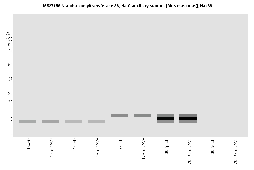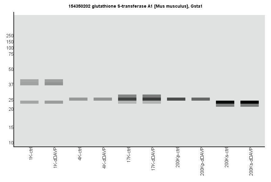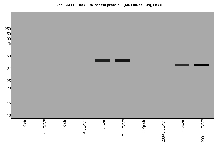 The virtual western blot images show data normalized using a logarithmic conversion scale to map peptide intensities to gray-scale levels. Using this conversion method, low-abundance peptides are generally visible in the blot images. Switch back to the default linear conversion scale database page.