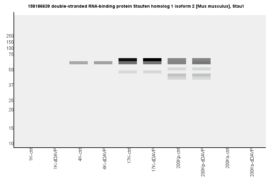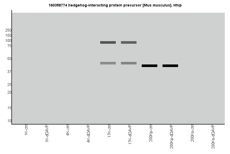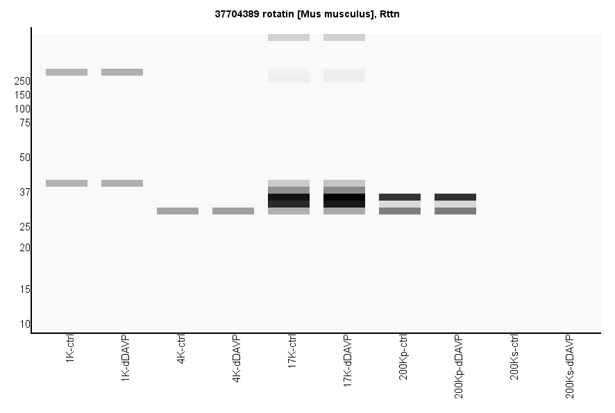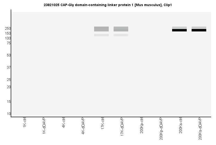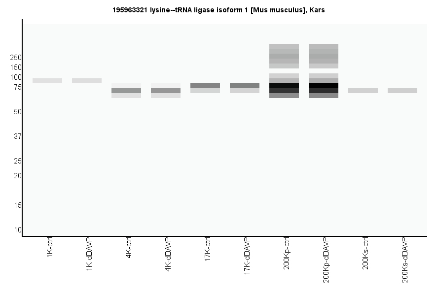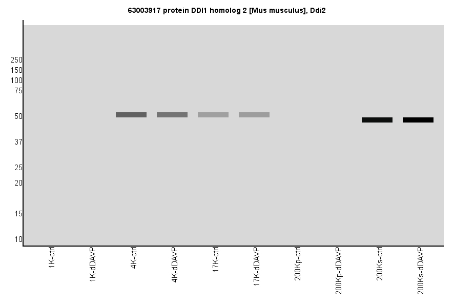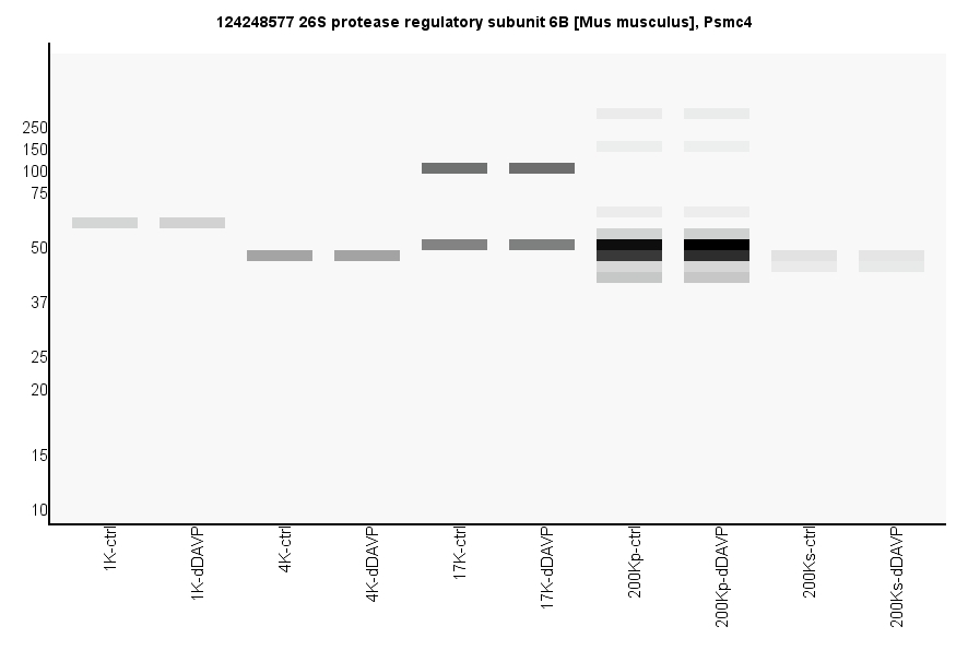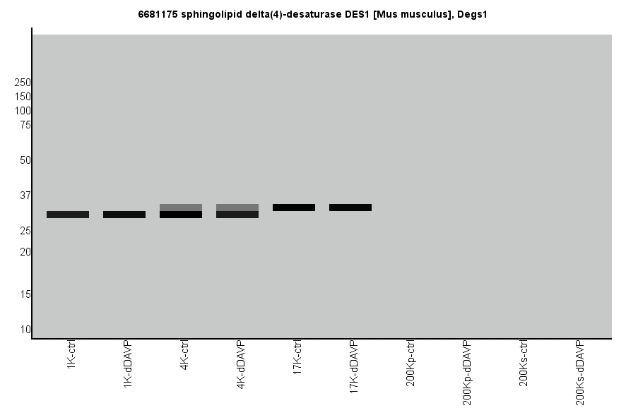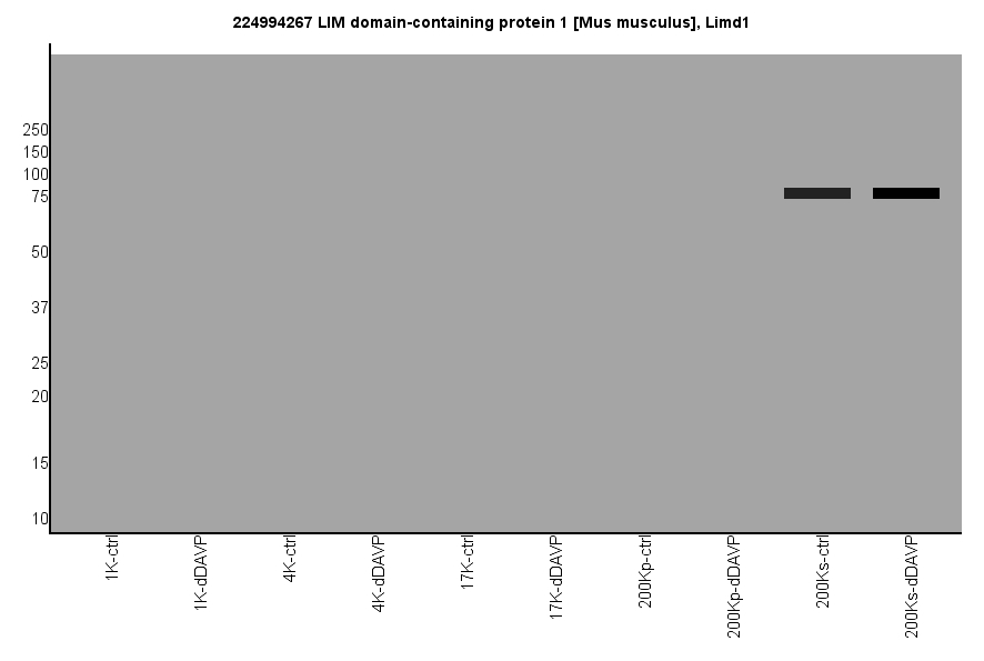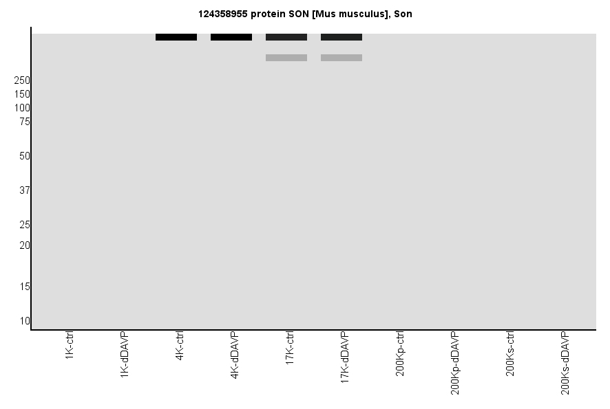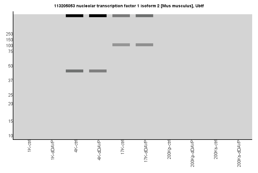The virtual western blot images show data normalized using a logarithmic conversion scale to map peptide intensities to gray-scale levels. Using this conversion method, low-abundance peptides are generally visible in the blot images. Switch back to the default linear conversion scale database page.