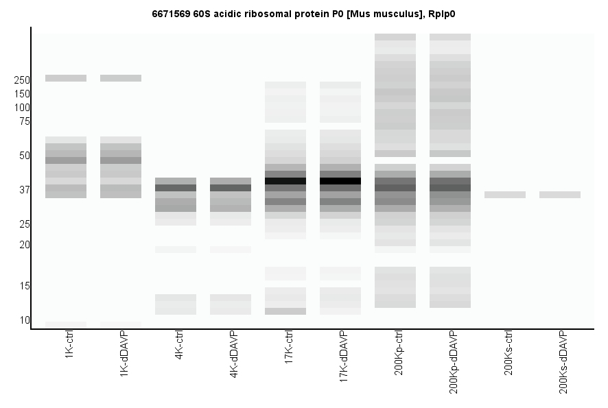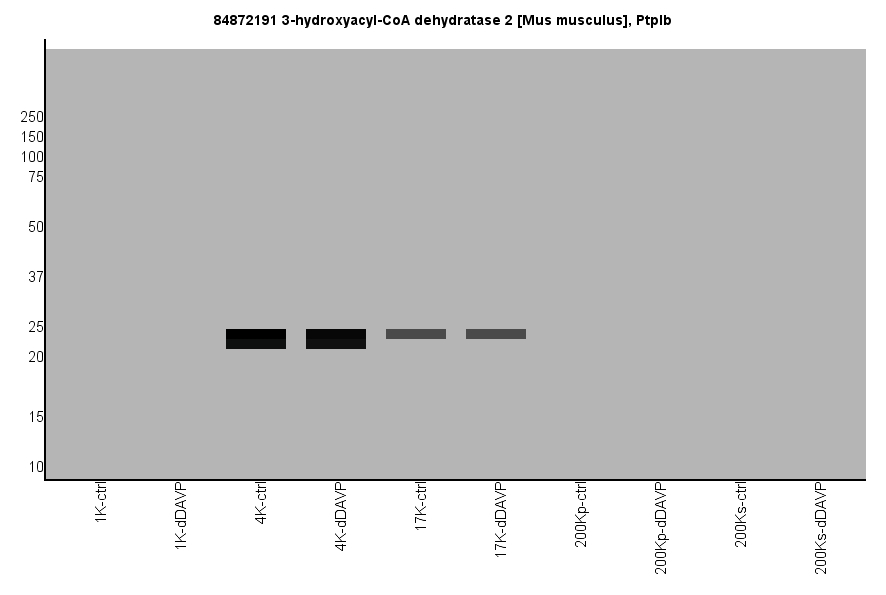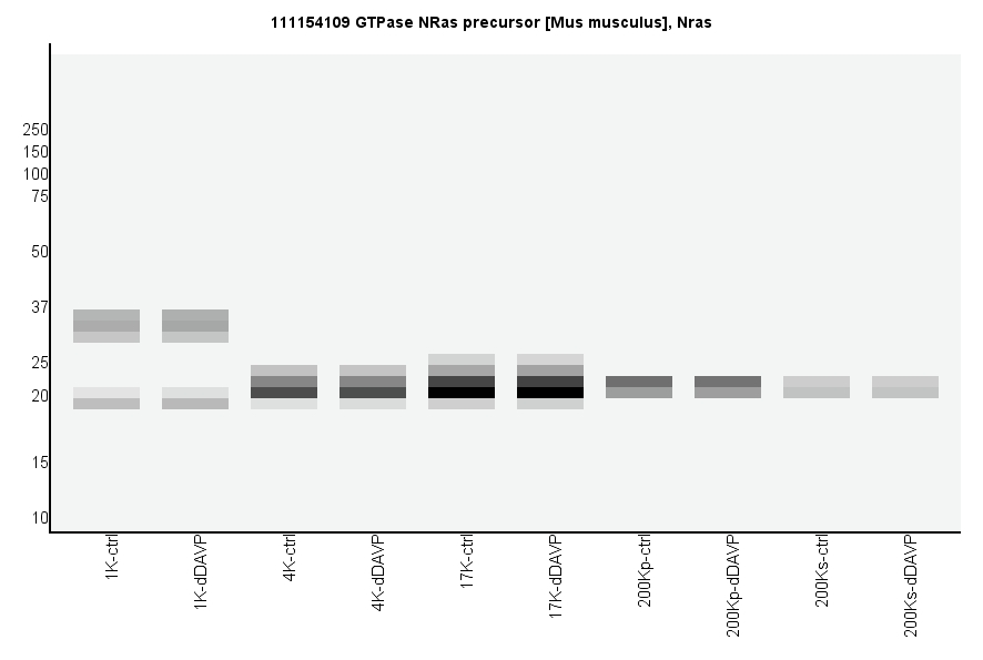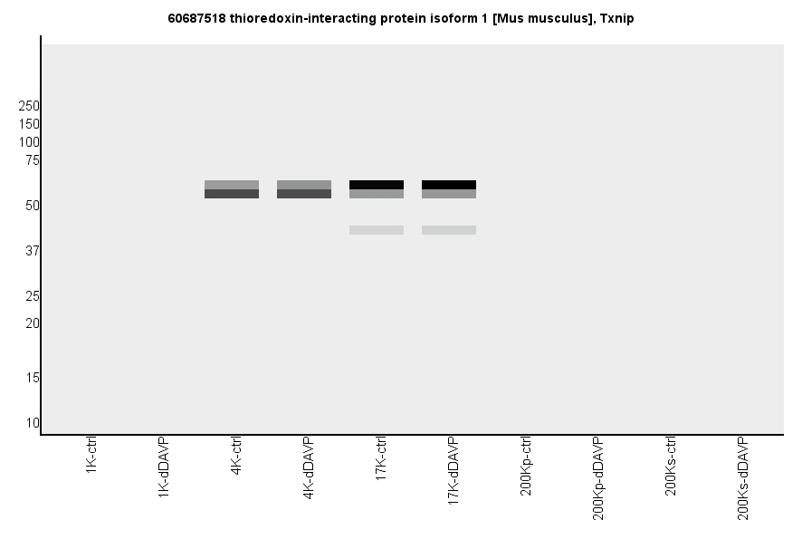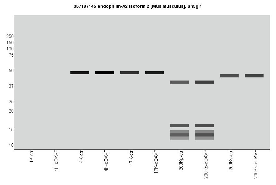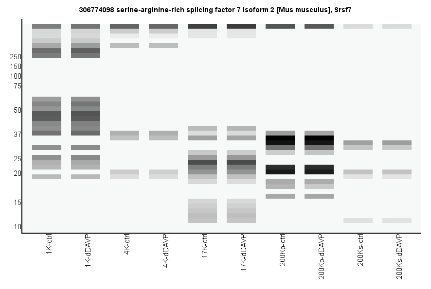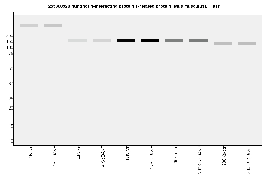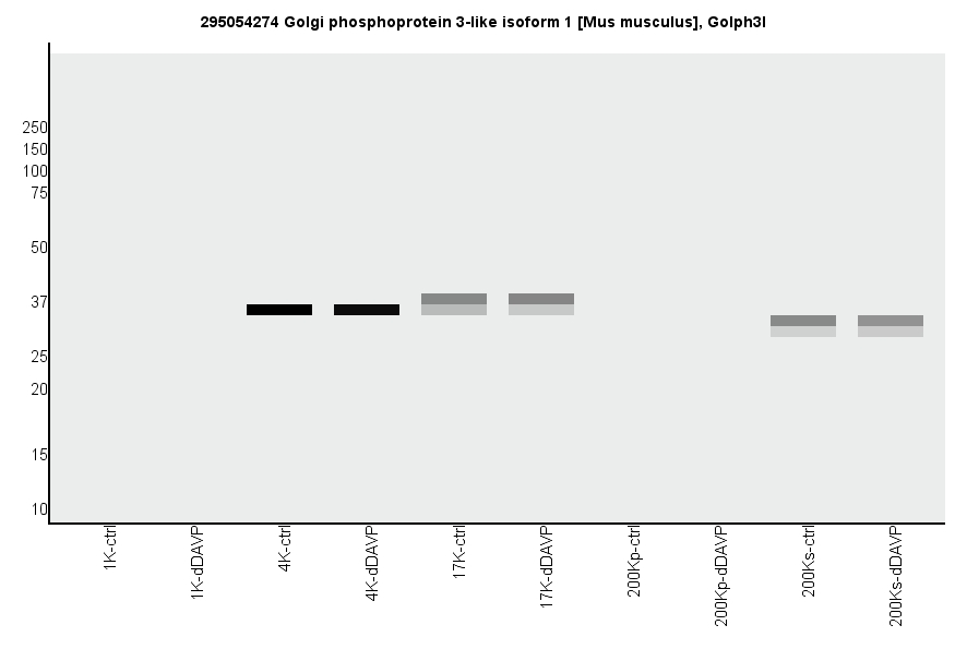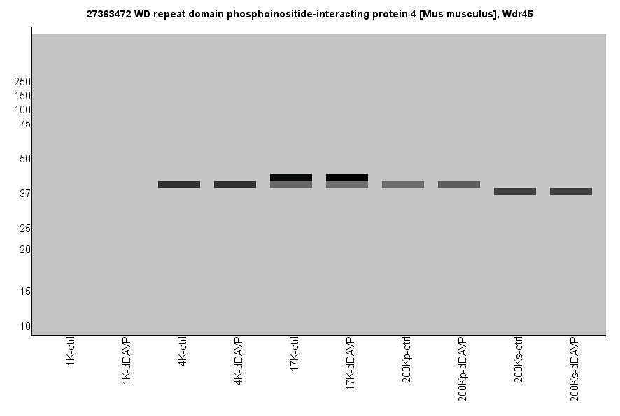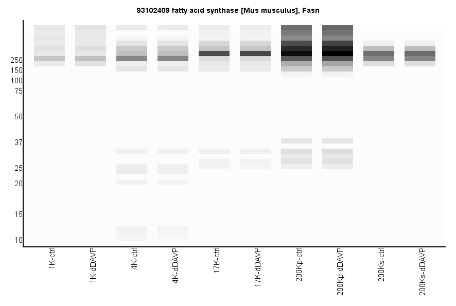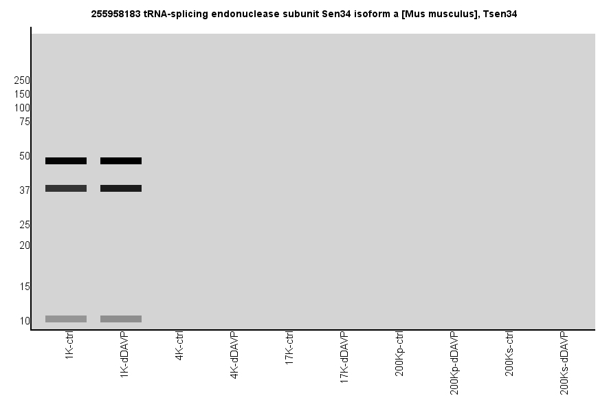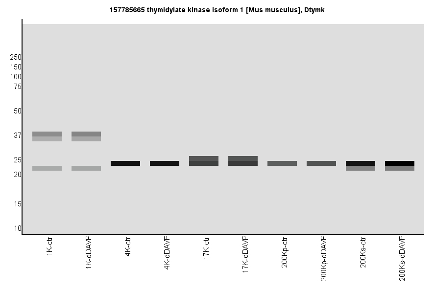 The virtual western blot images show data normalized using a logarithmic conversion scale to map peptide intensities to gray-scale levels. Using this conversion method, low-abundance peptides are generally visible in the blot images. Switch back to the default linear conversion scale database page.