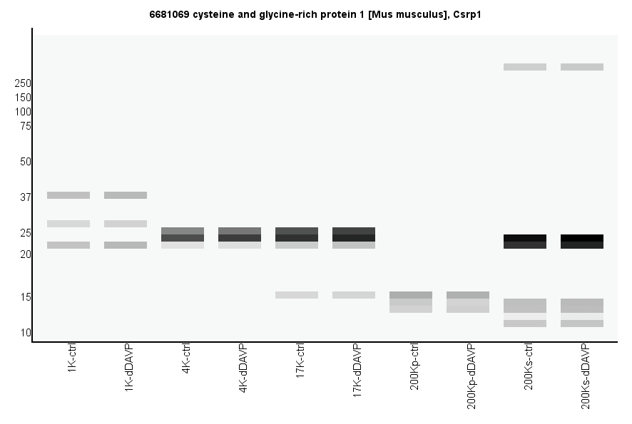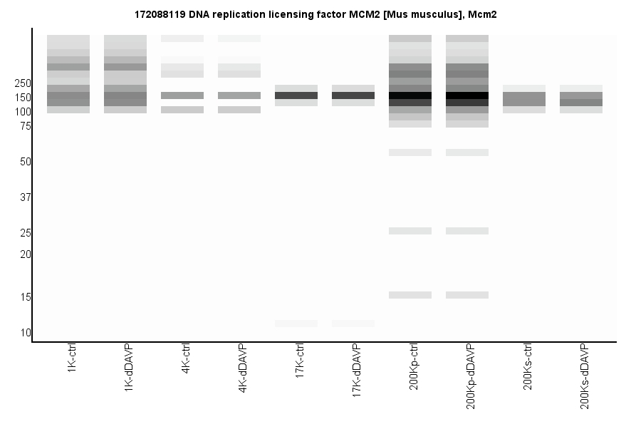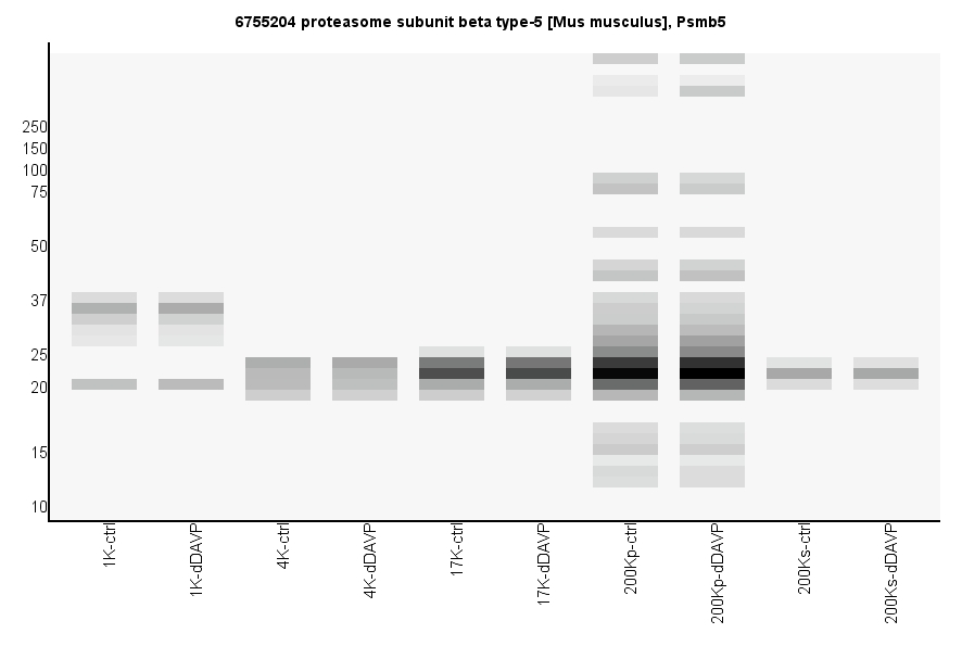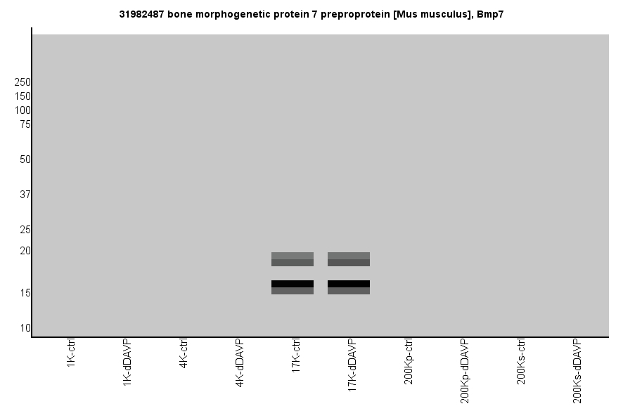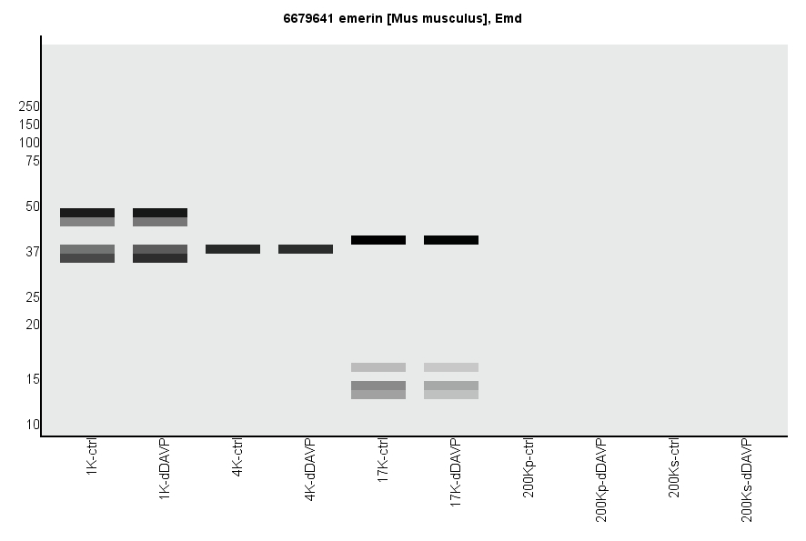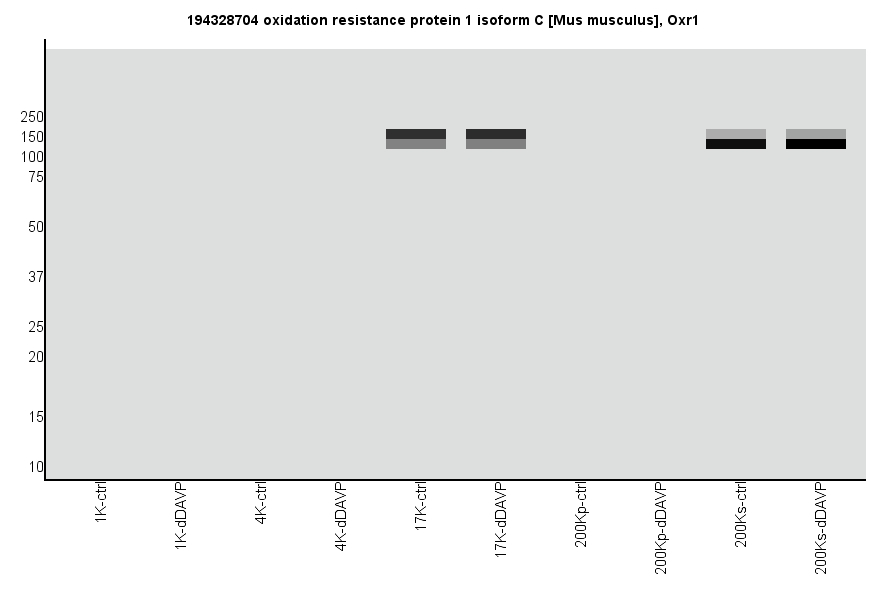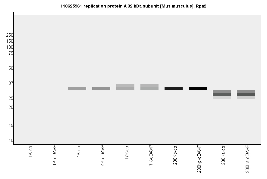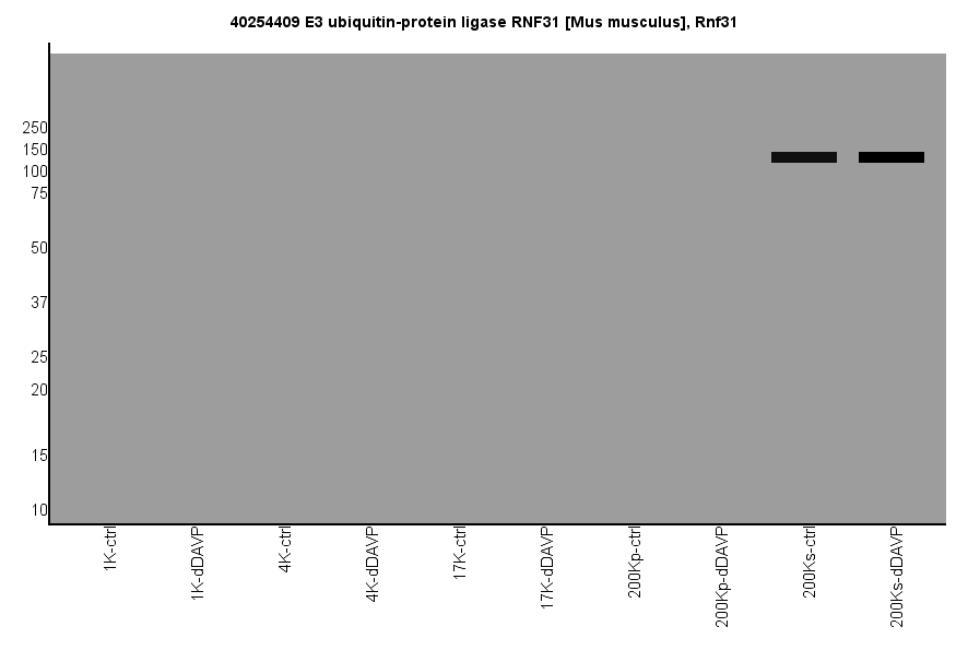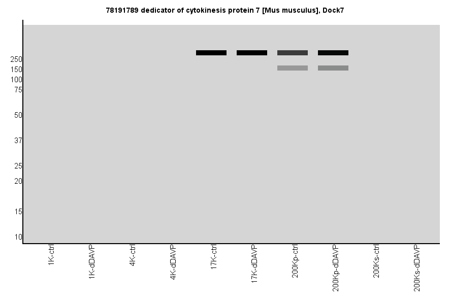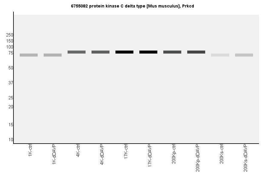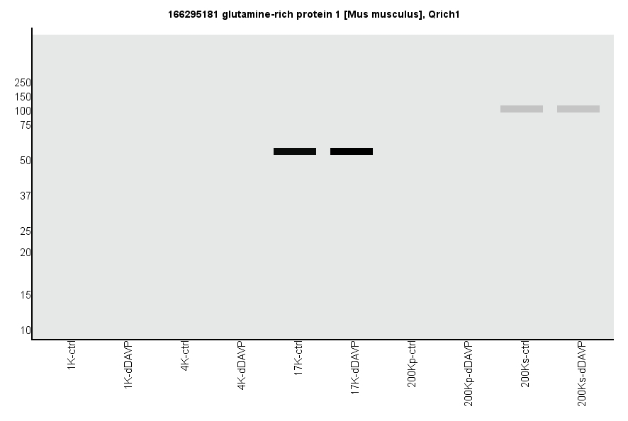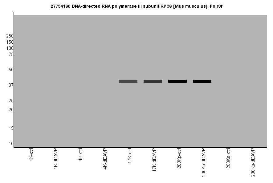 The virtual western blot images show data normalized using a logarithmic conversion scale to map peptide intensities to gray-scale levels. Using this conversion method, low-abundance peptides are generally visible in the blot images. Switch back to the default linear conversion scale database page.