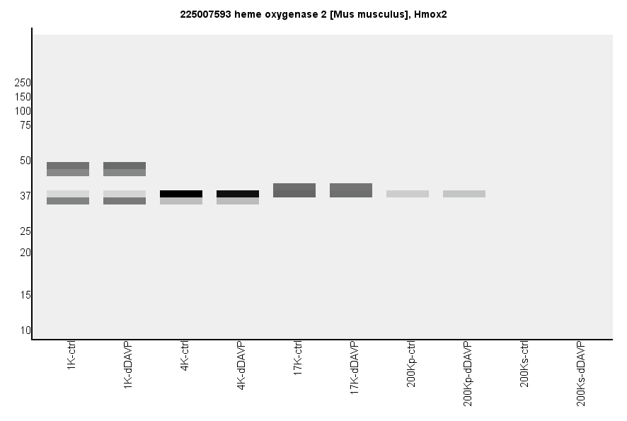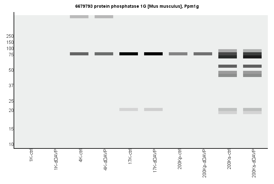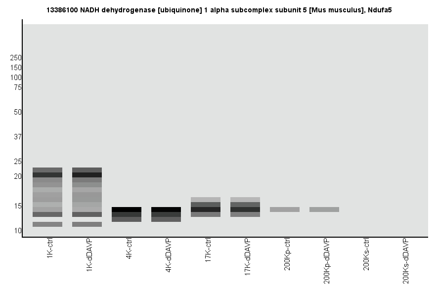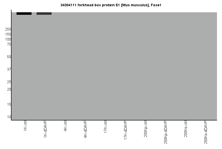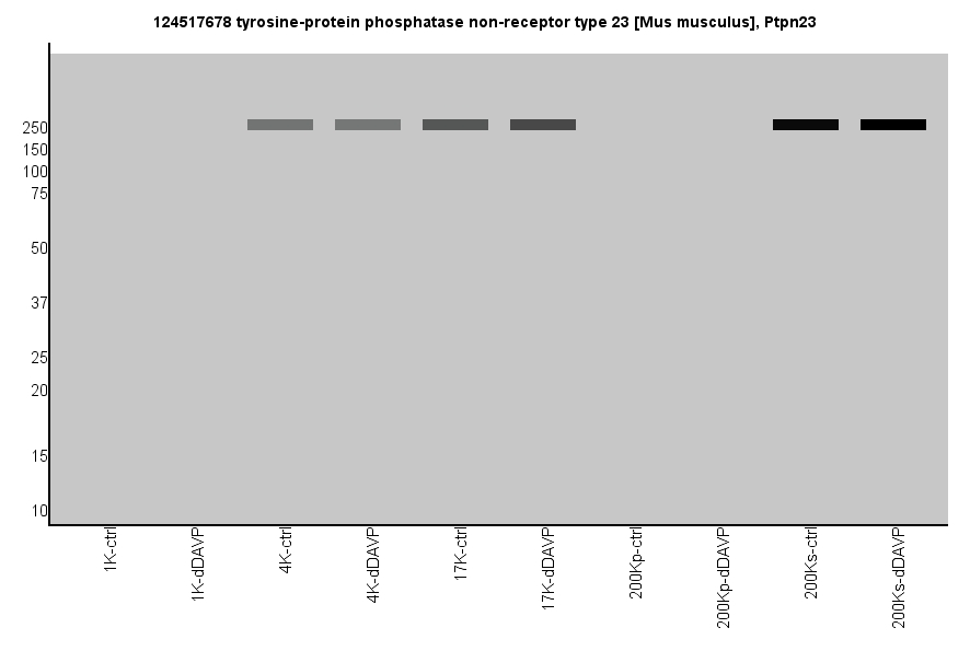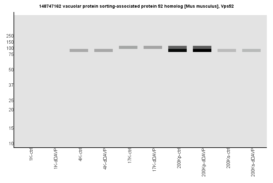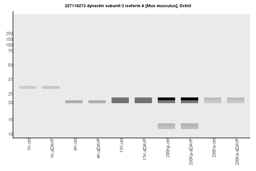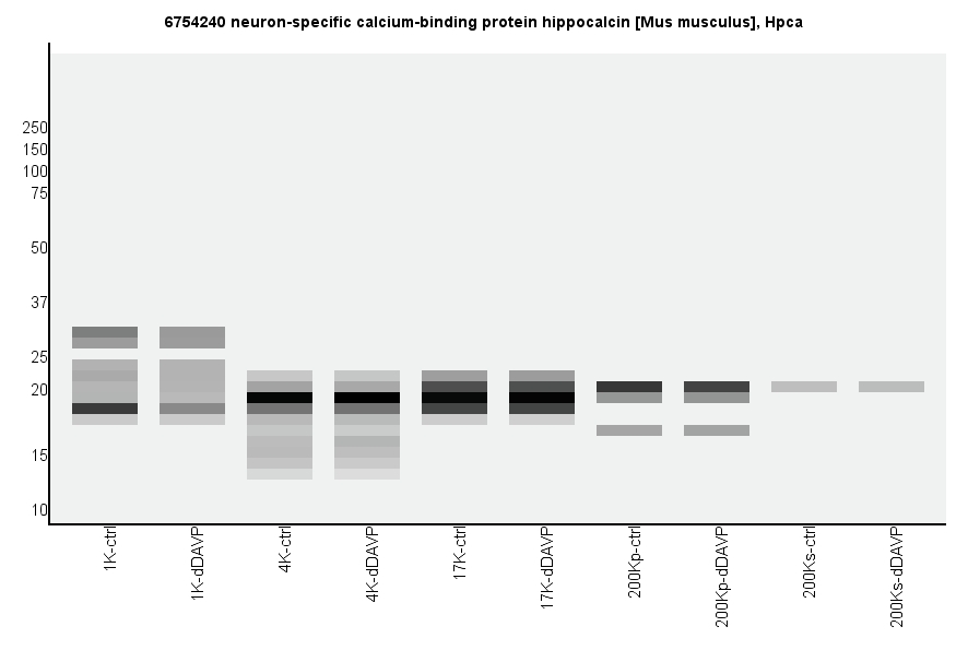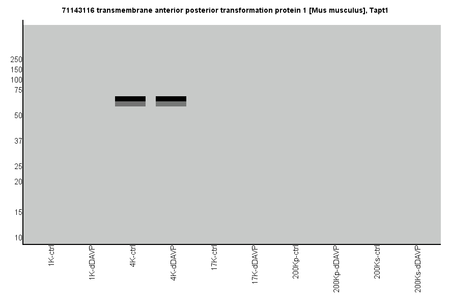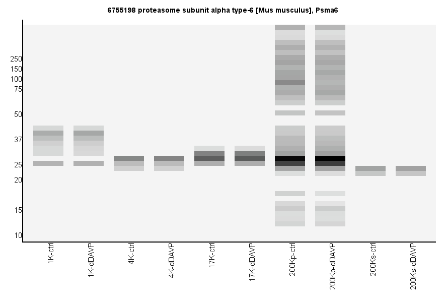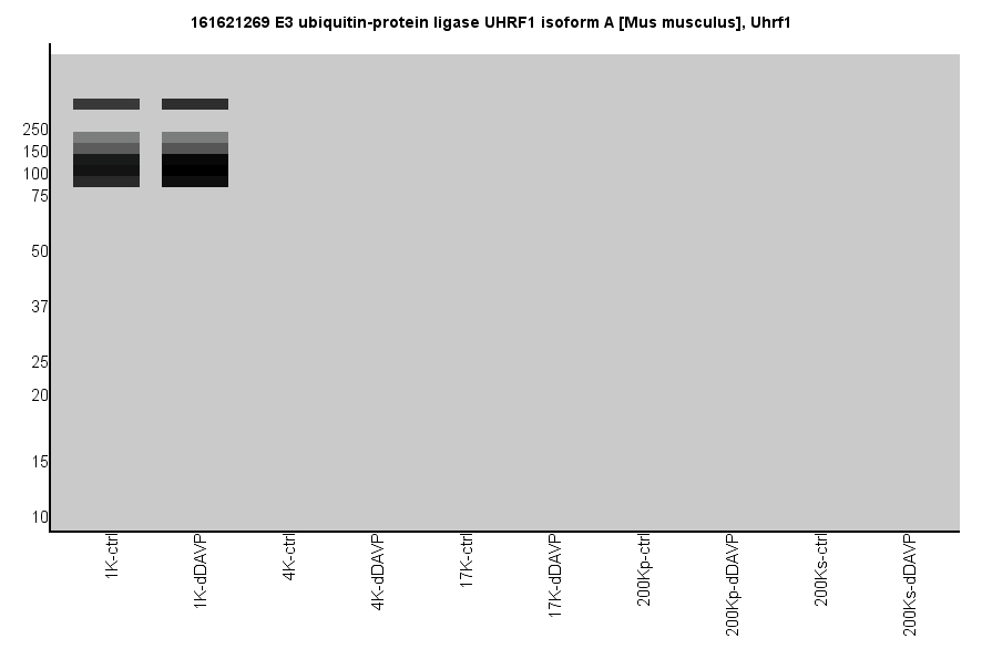 The virtual western blot images show data normalized using a logarithmic conversion scale to map peptide intensities to gray-scale levels. Using this conversion method, low-abundance peptides are generally visible in the blot images. Switch back to the default linear conversion scale database page.
