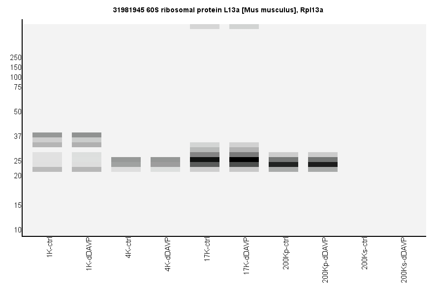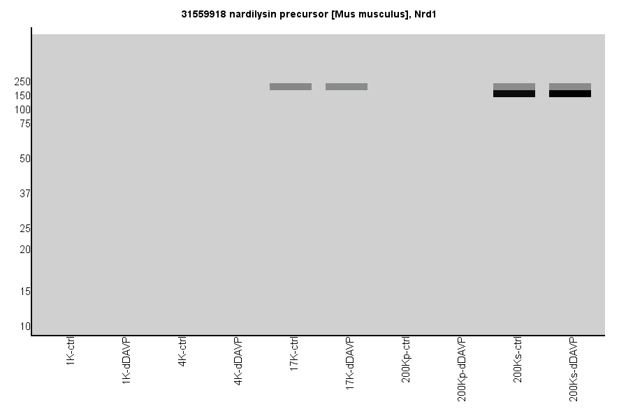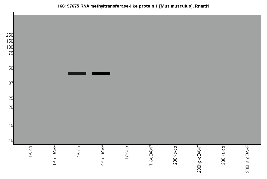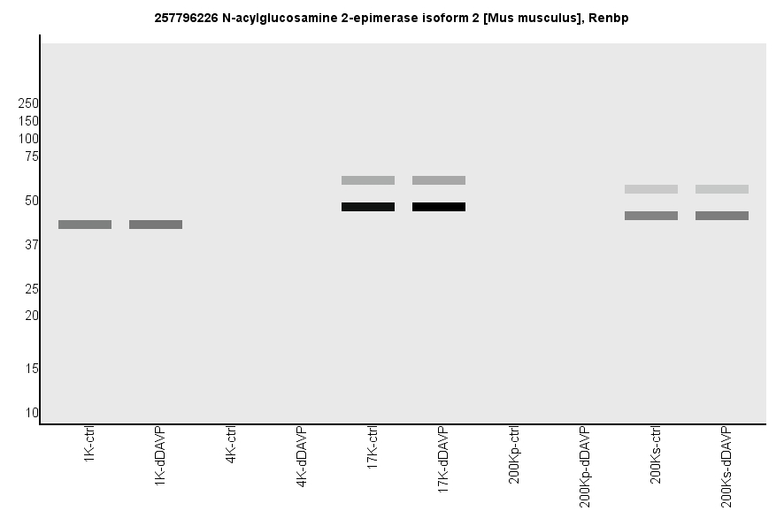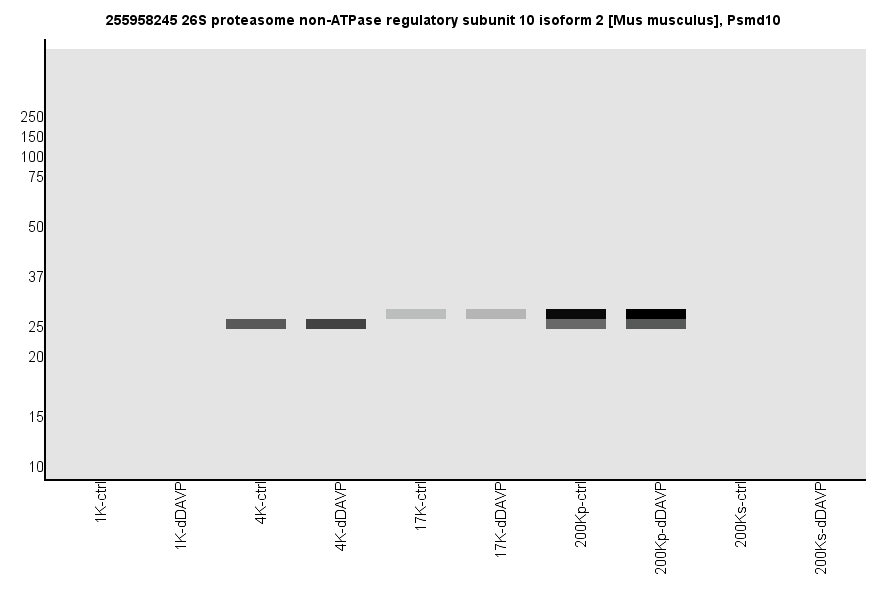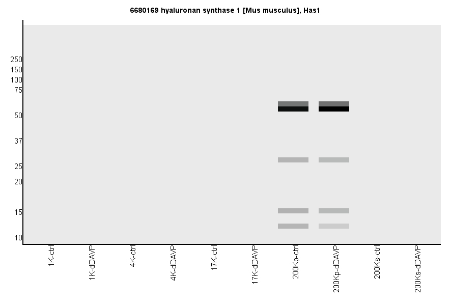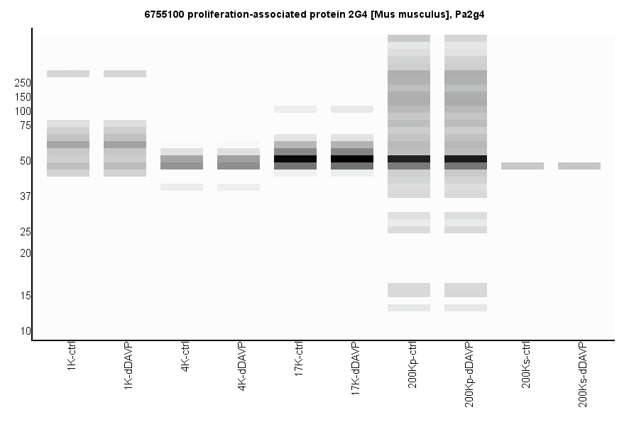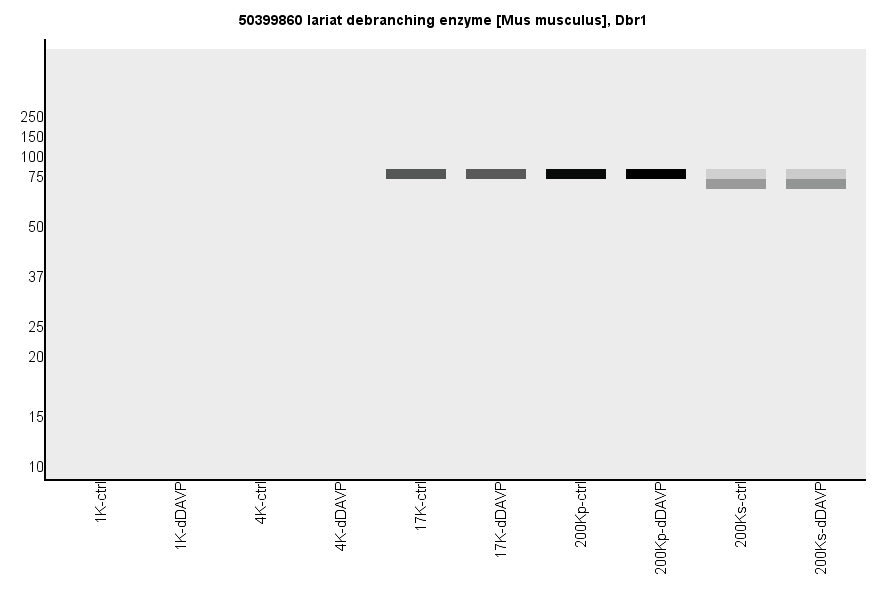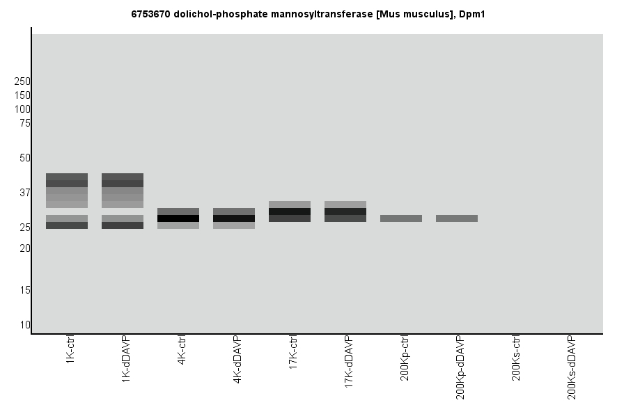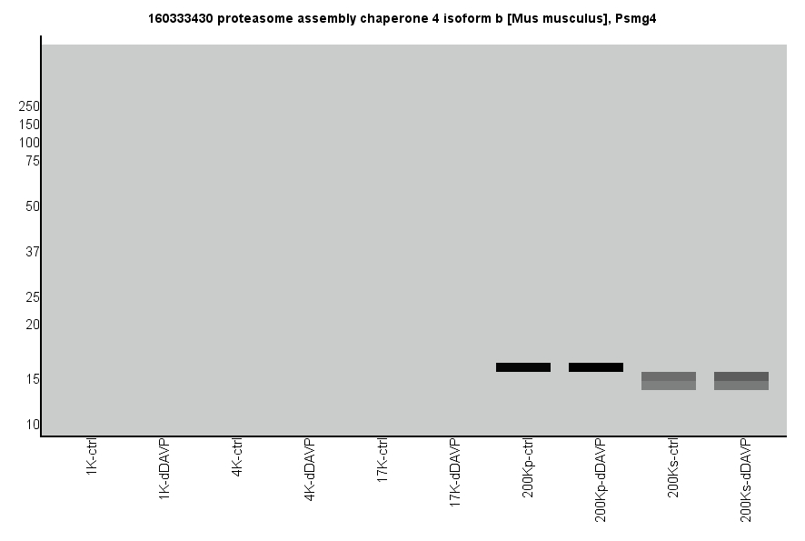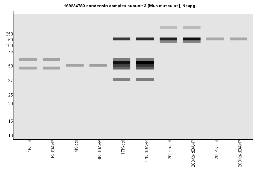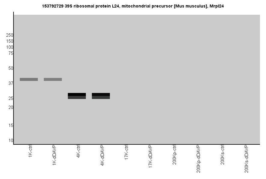 The virtual western blot images show data normalized using a logarithmic conversion scale to map peptide intensities to gray-scale levels. Using this conversion method, low-abundance peptides are generally visible in the blot images. Switch back to the default linear conversion scale database page.