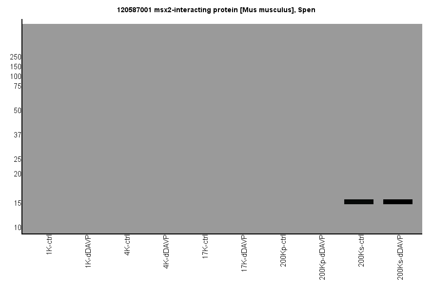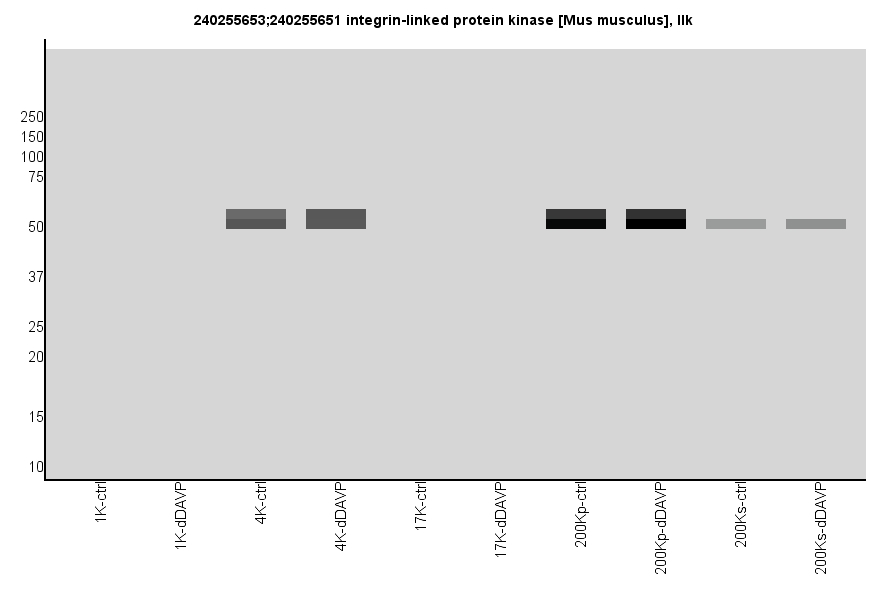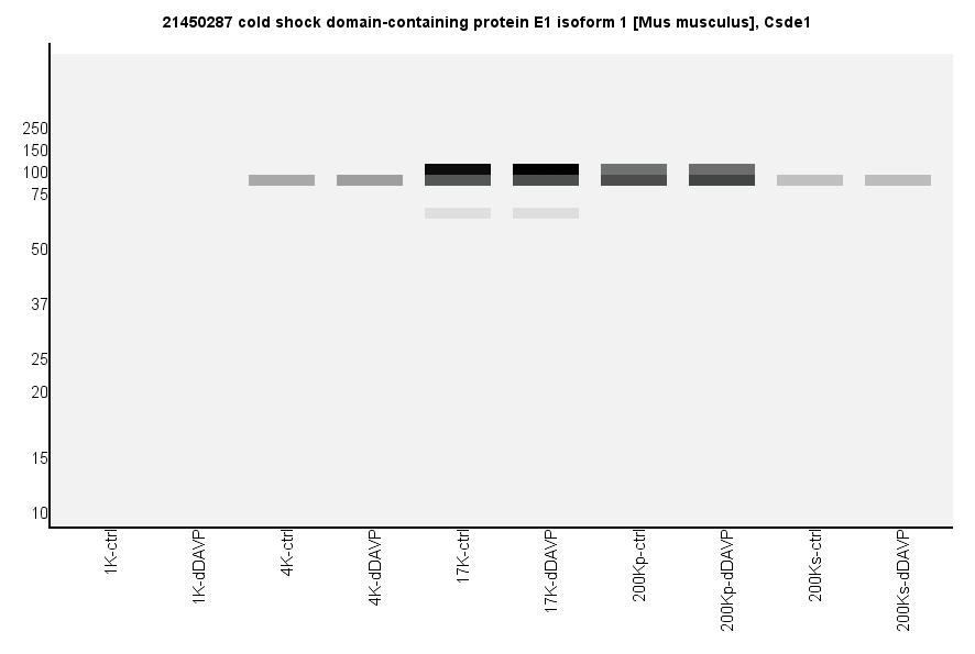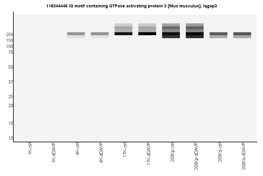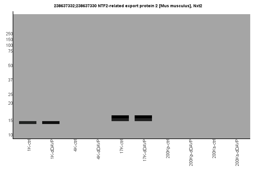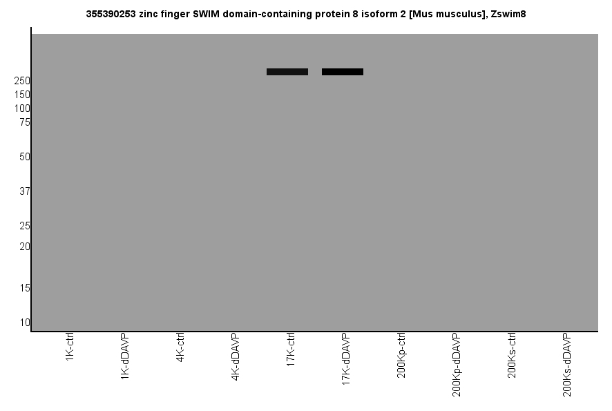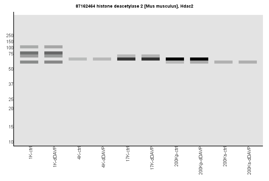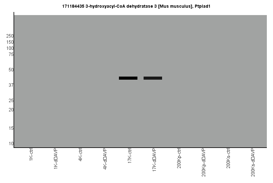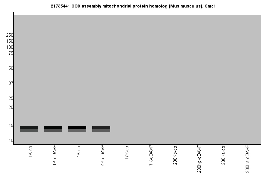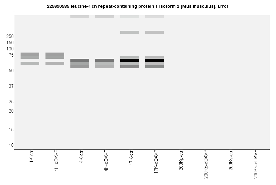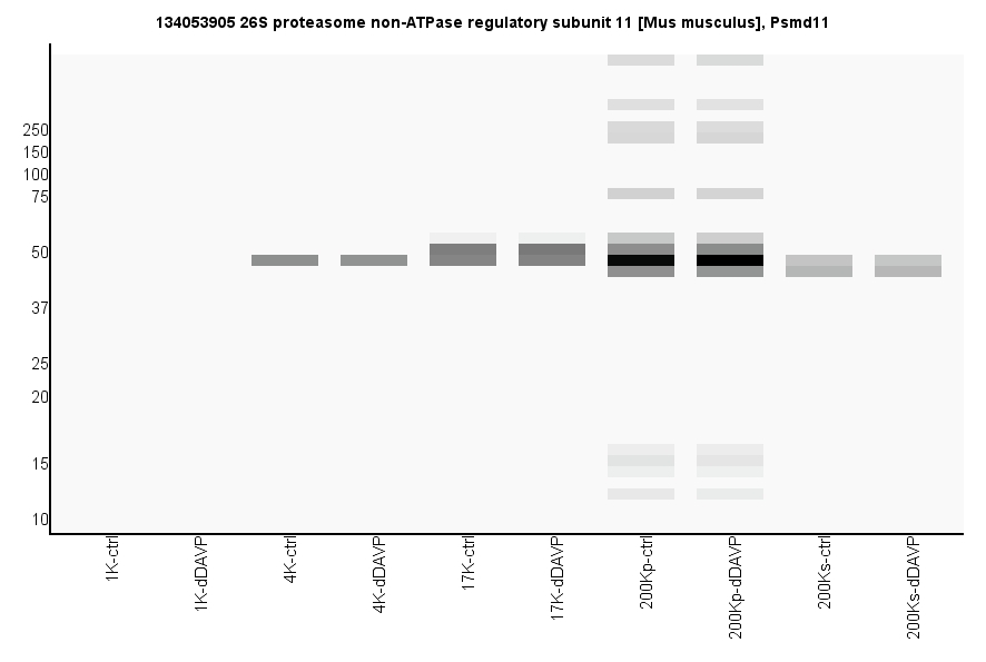 The virtual western blot images show data normalized using a logarithmic conversion scale to map peptide intensities to gray-scale levels. Using this conversion method, low-abundance peptides are generally visible in the blot images. Switch back to the default linear conversion scale database page.