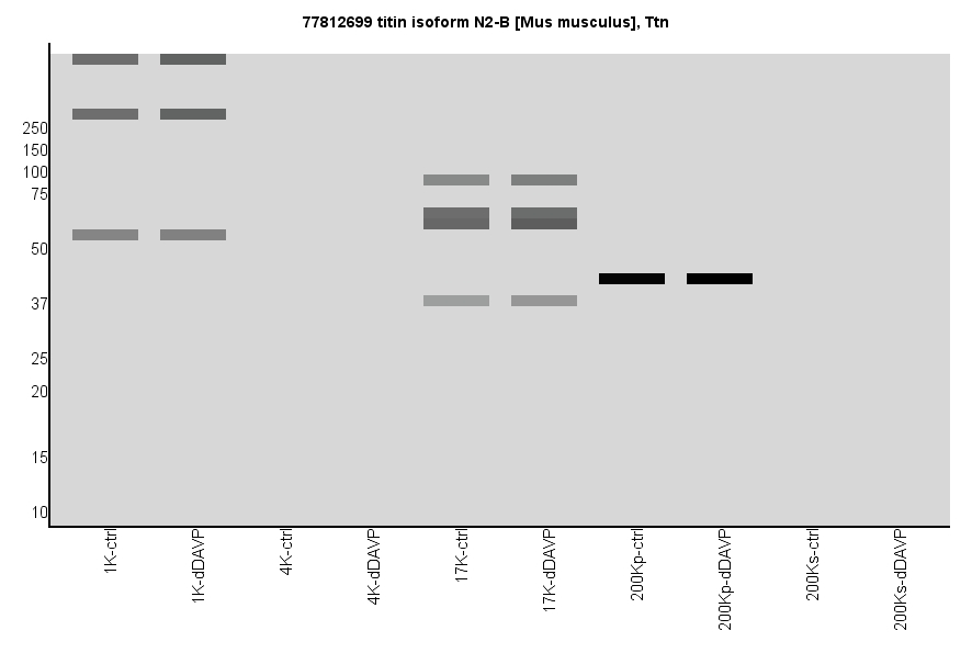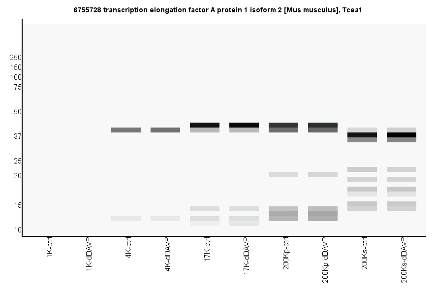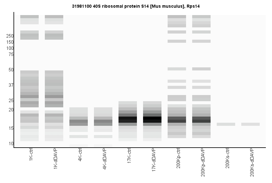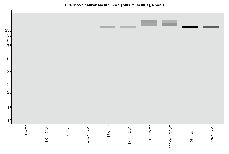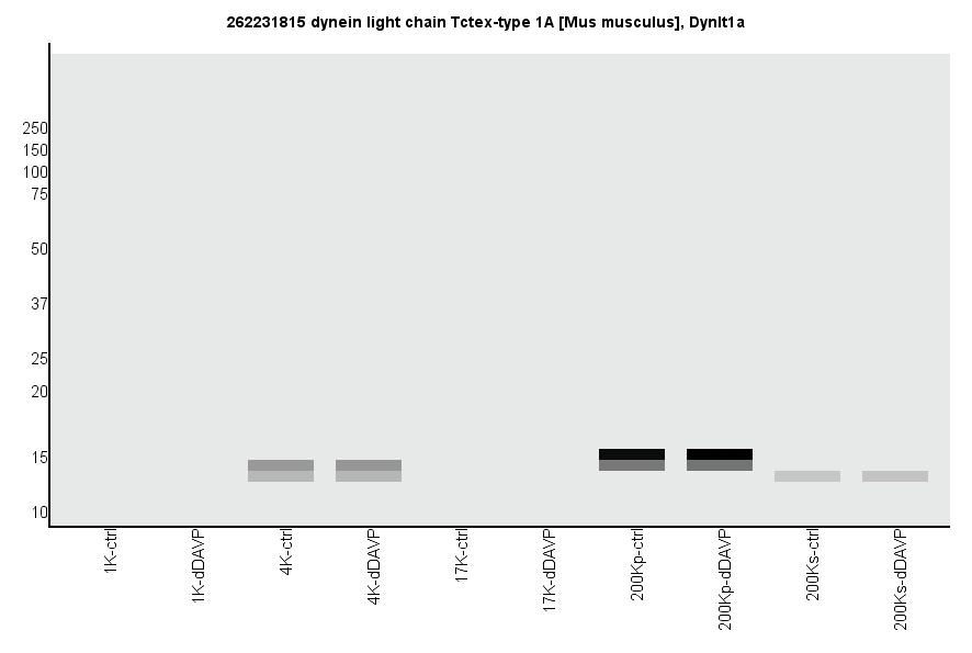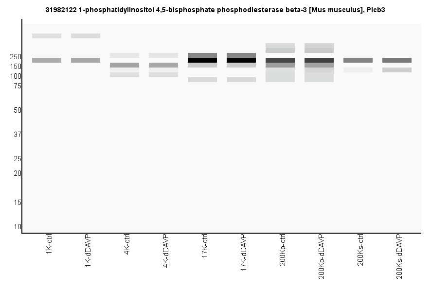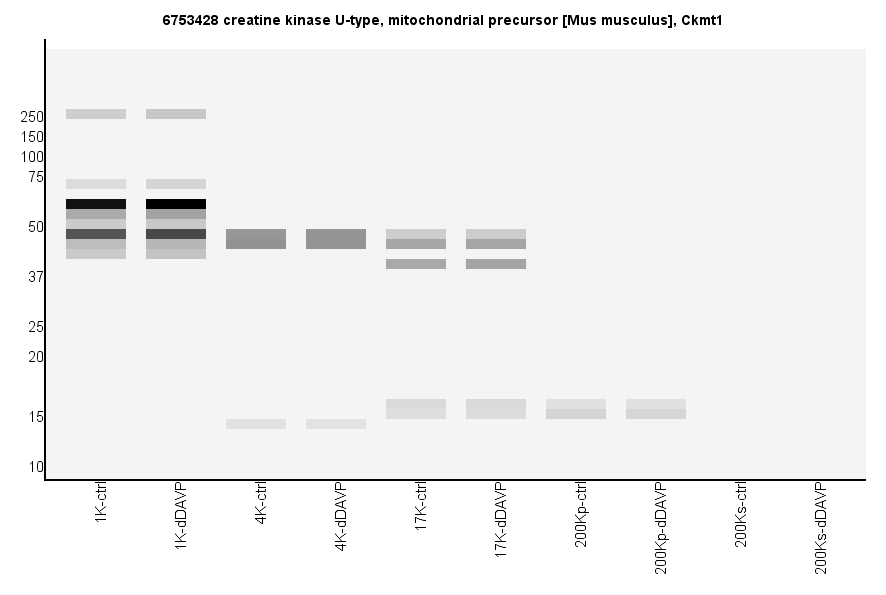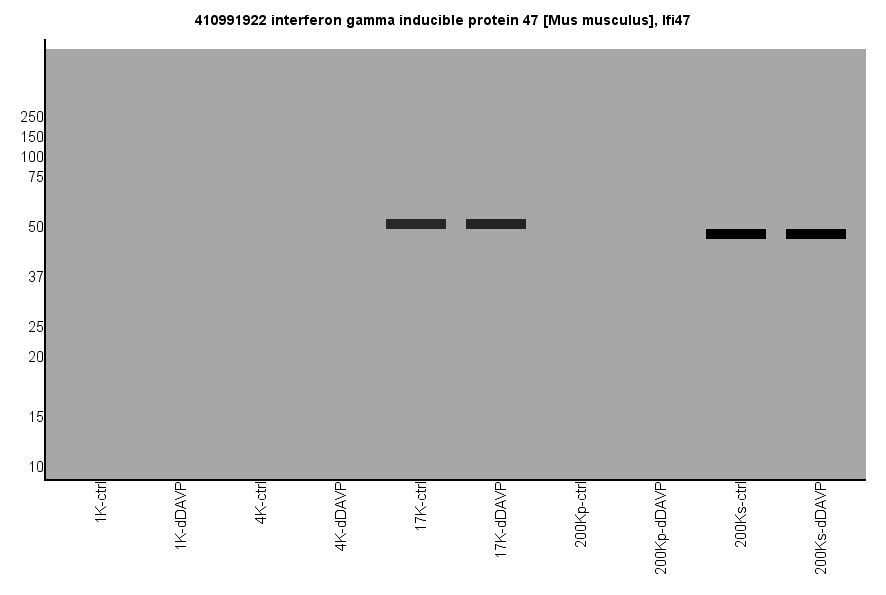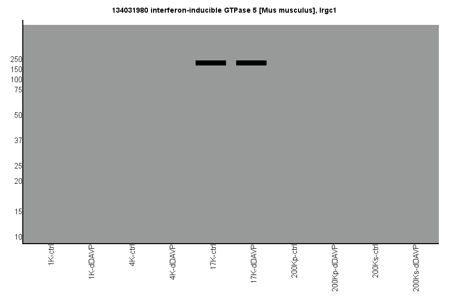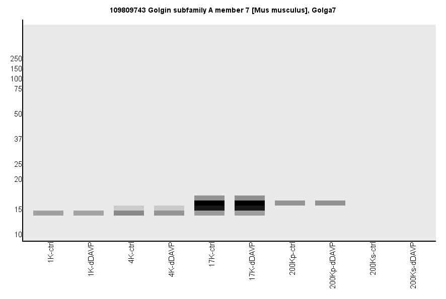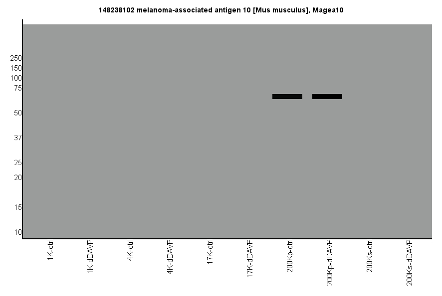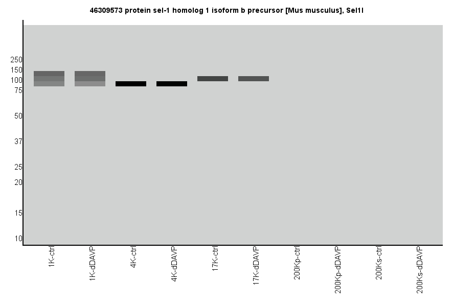 The virtual western blot images show data normalized using a logarithmic conversion scale to map peptide intensities to gray-scale levels. Using this conversion method, low-abundance peptides are generally visible in the blot images. Switch back to the default linear conversion scale database page.