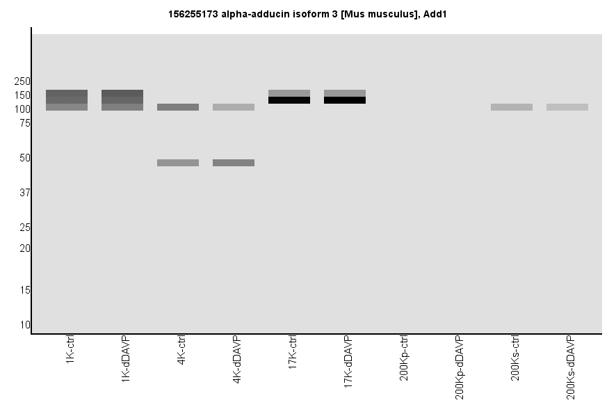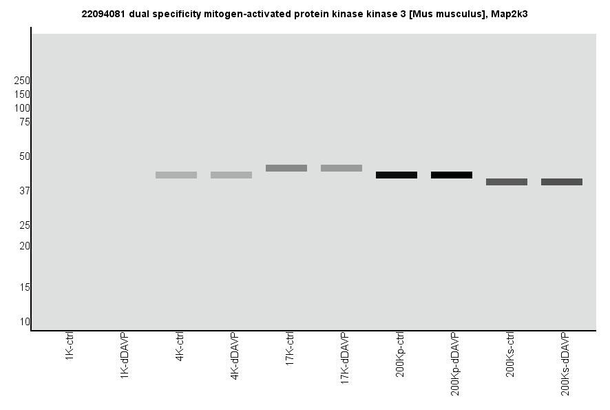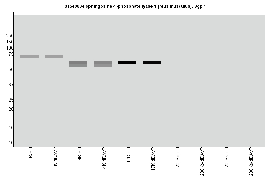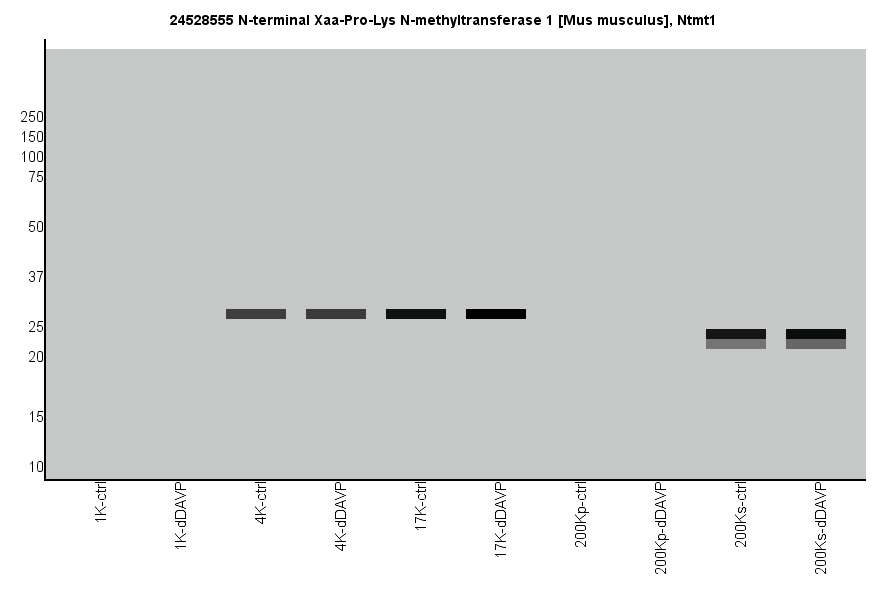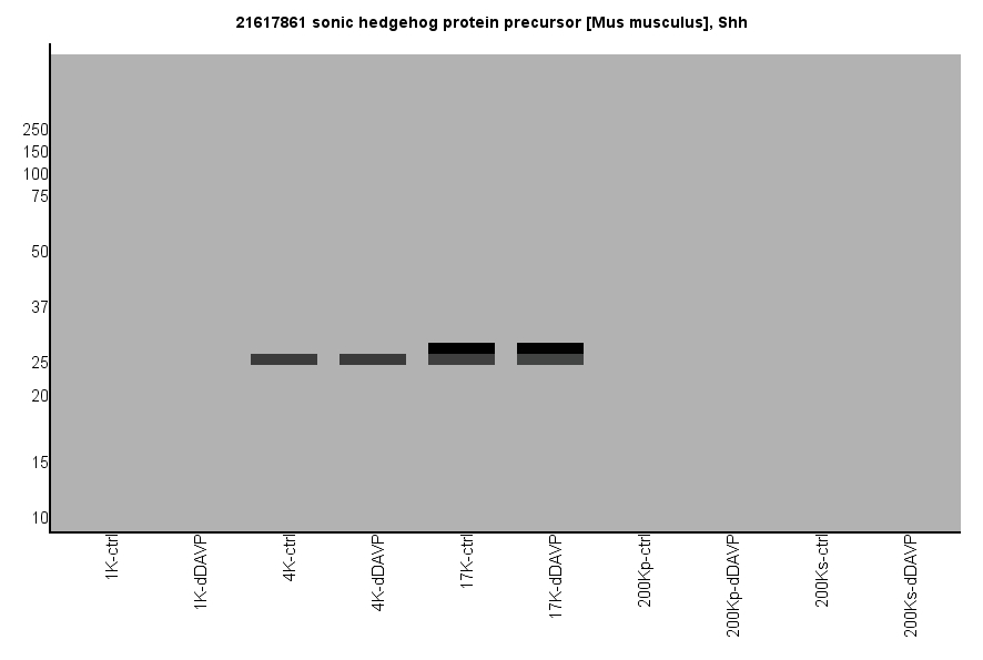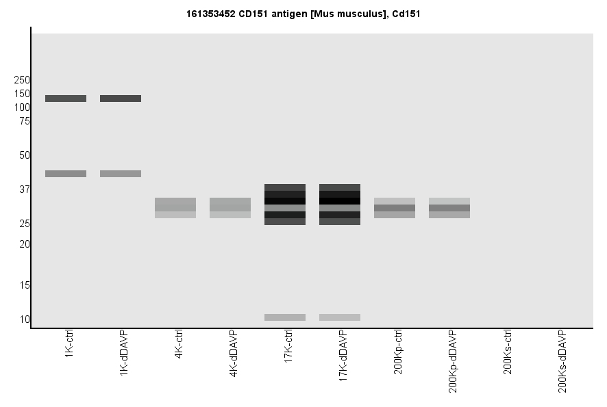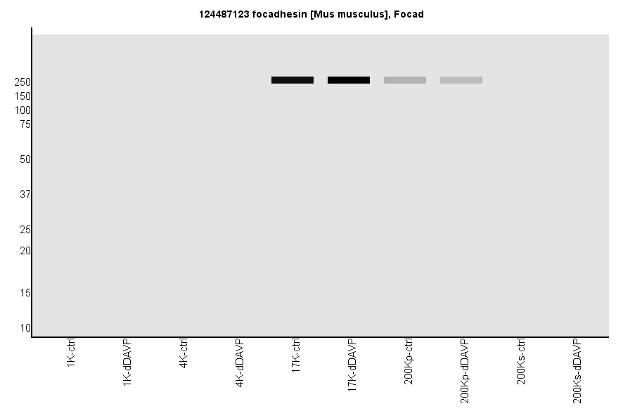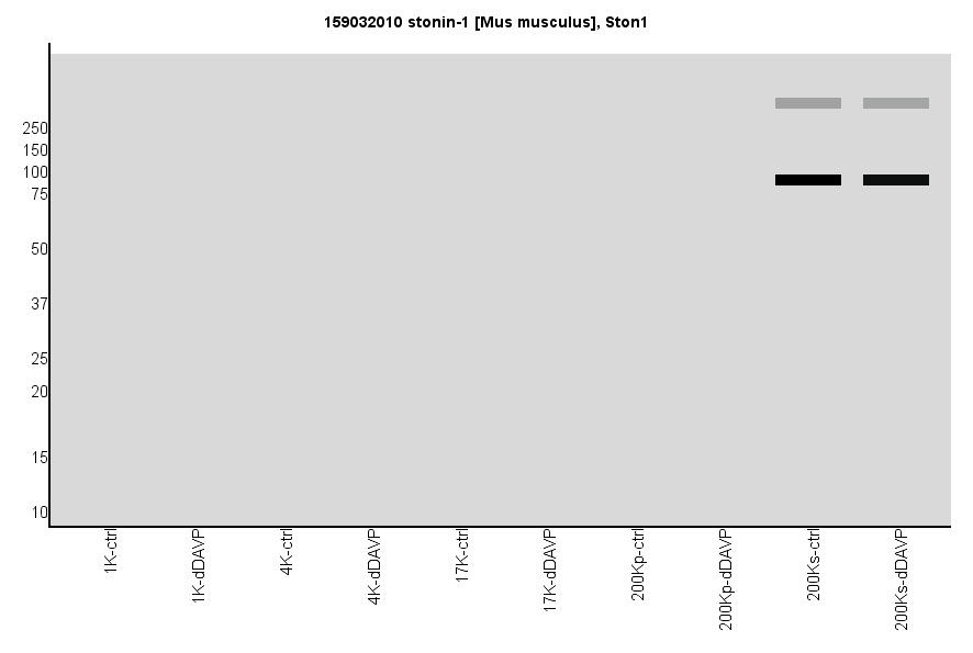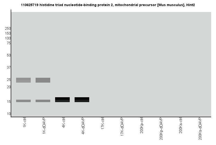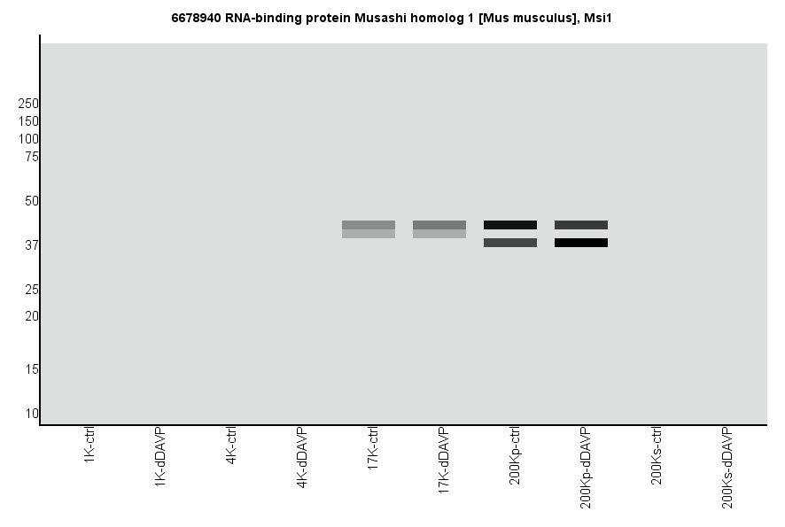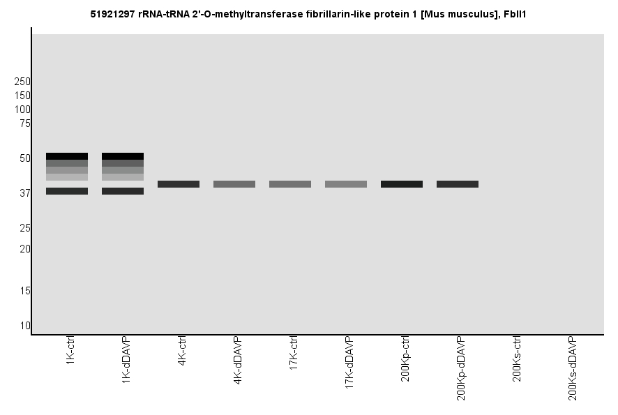 The virtual western blot images show data normalized using a logarithmic conversion scale to map peptide intensities to gray-scale levels. Using this conversion method, low-abundance peptides are generally visible in the blot images. Switch back to the default linear conversion scale database page.