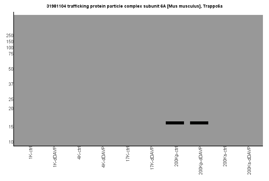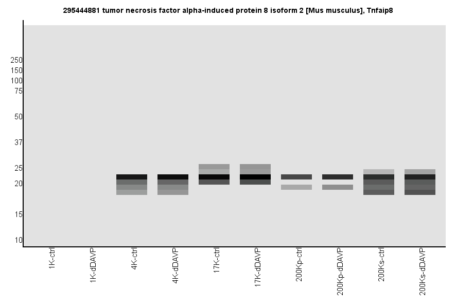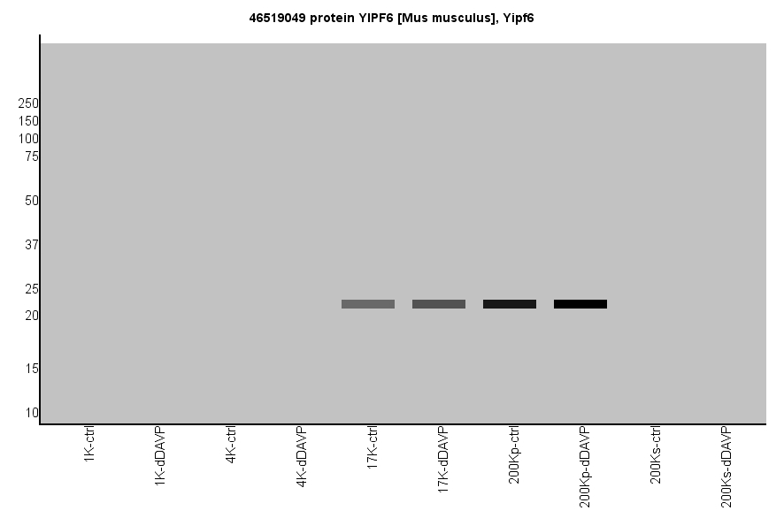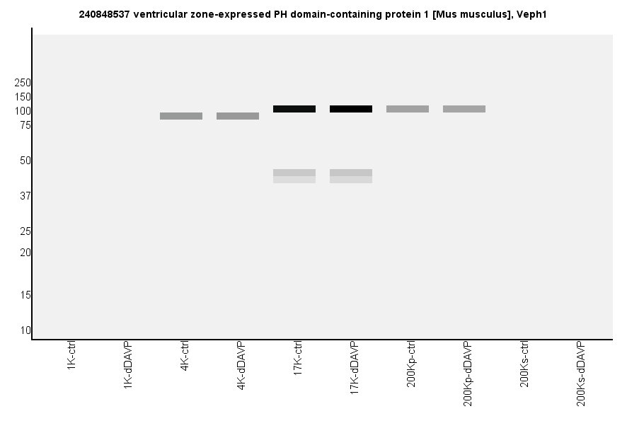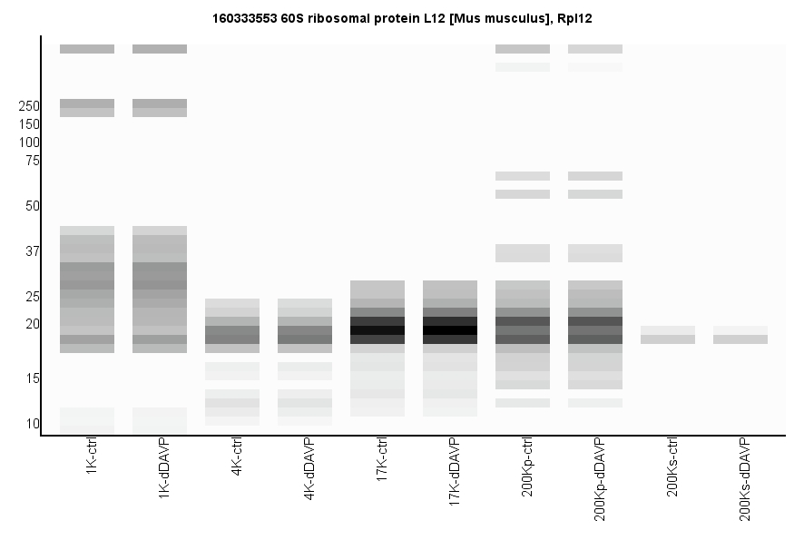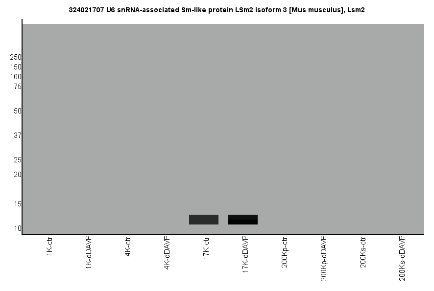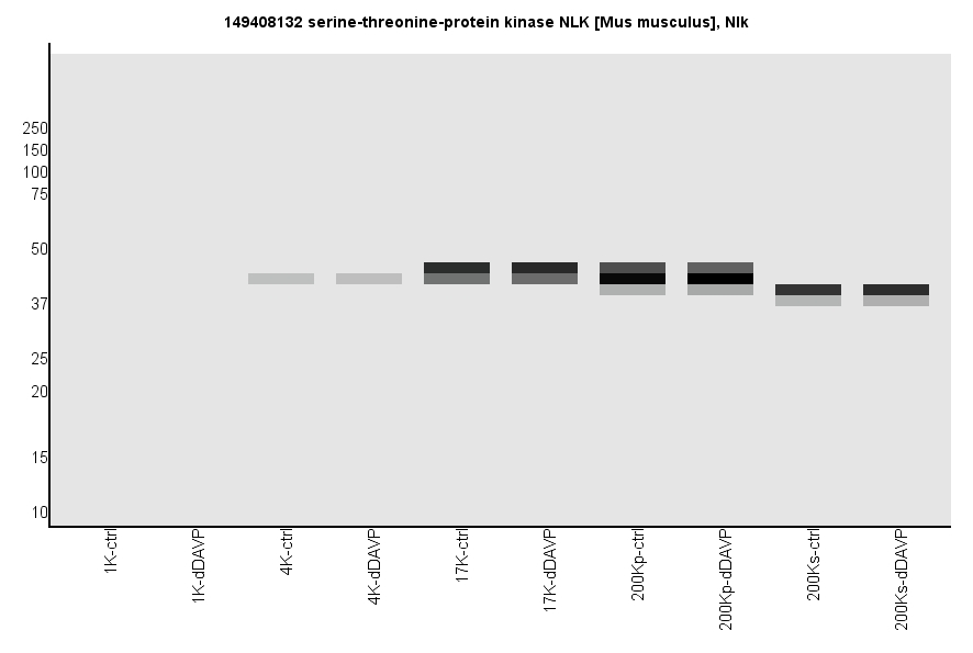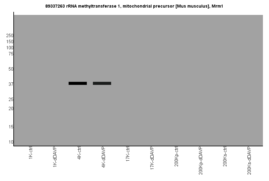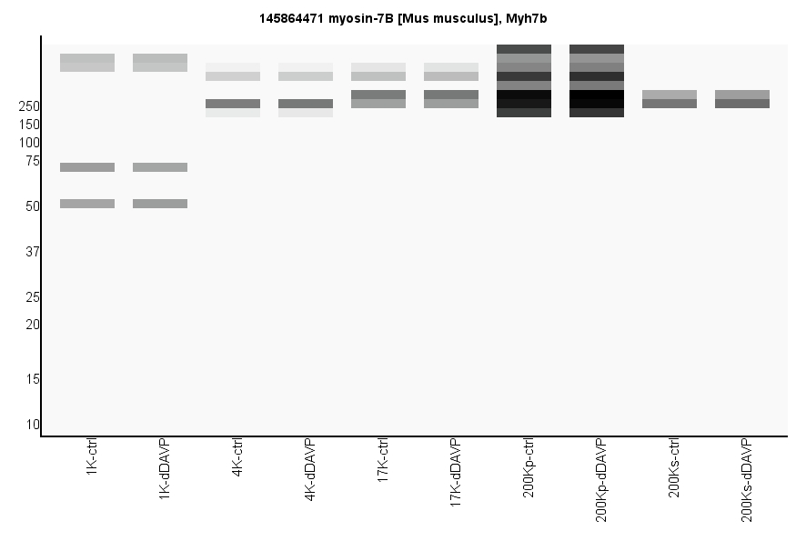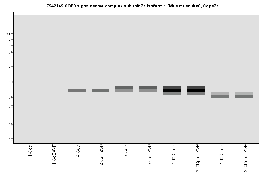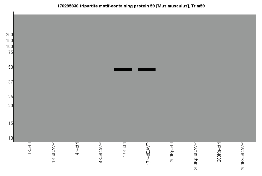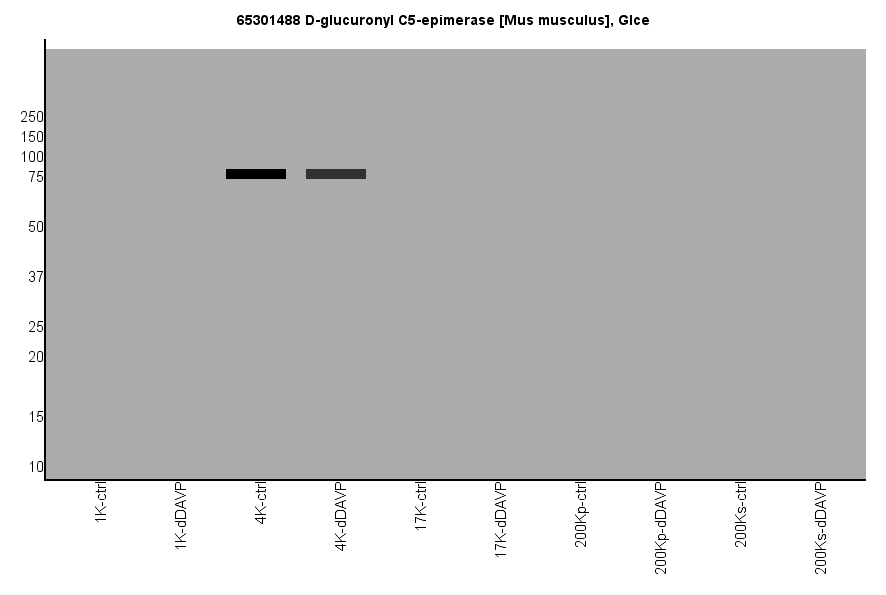 The virtual western blot images show data normalized using a logarithmic conversion scale to map peptide intensities to gray-scale levels. Using this conversion method, low-abundance peptides are generally visible in the blot images. Switch back to the default linear conversion scale database page.