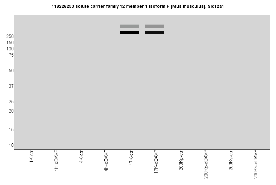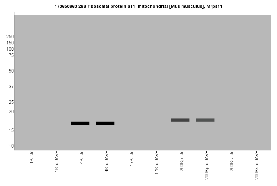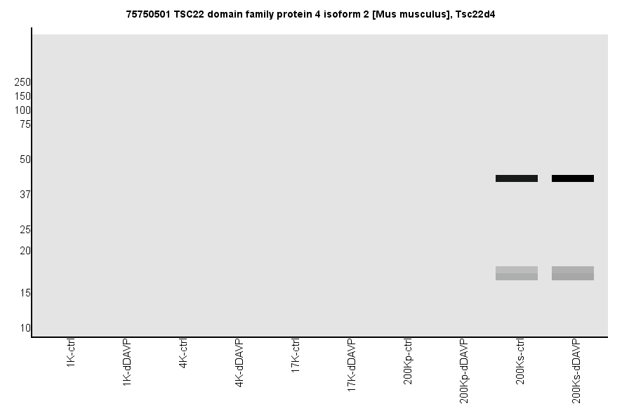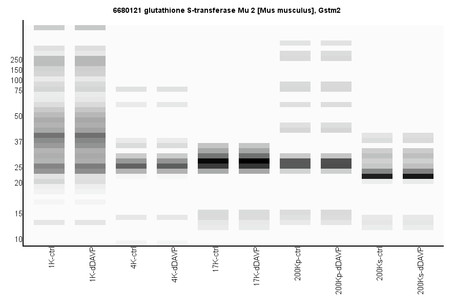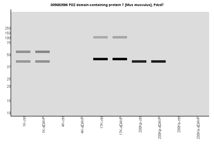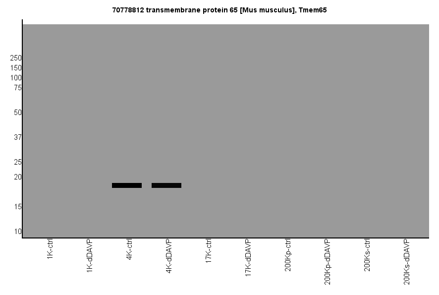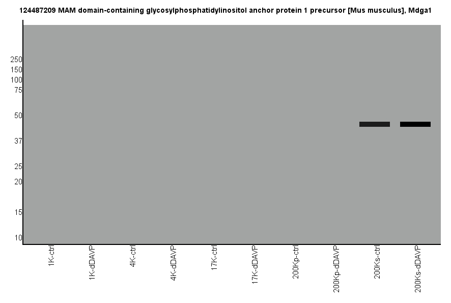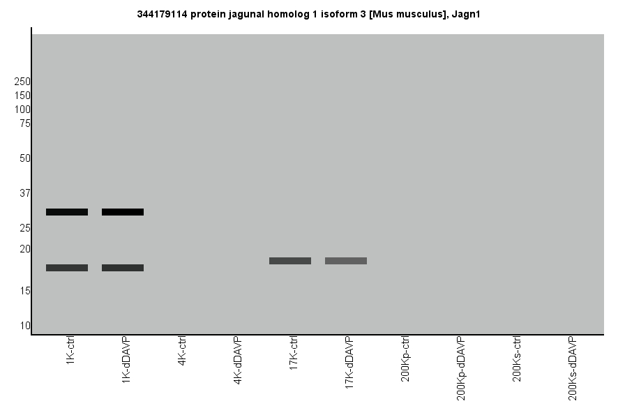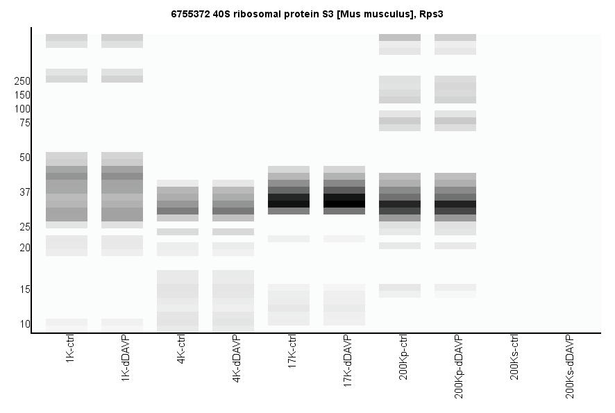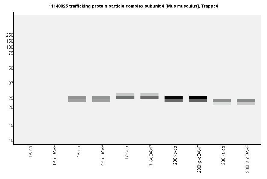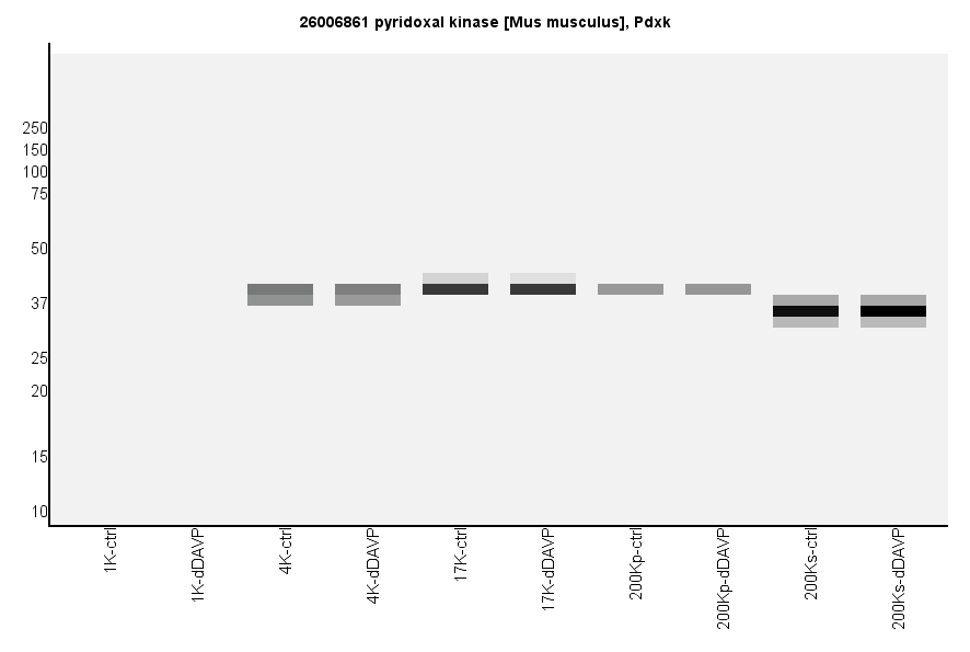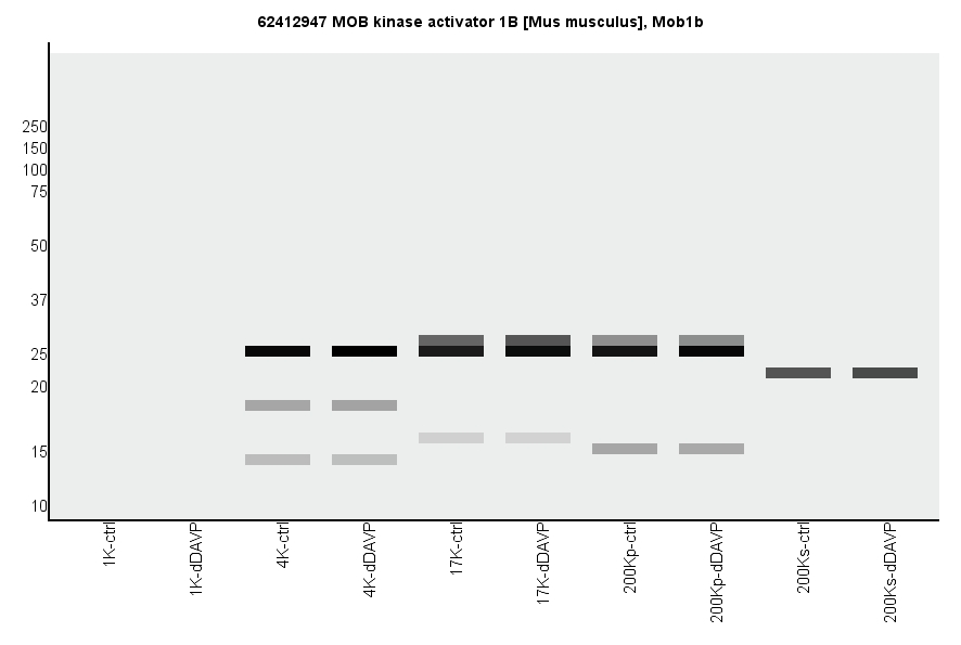 The virtual western blot images show data normalized using a logarithmic conversion scale to map peptide intensities to gray-scale levels. Using this conversion method, low-abundance peptides are generally visible in the blot images. Switch back to the default linear conversion scale database page.
