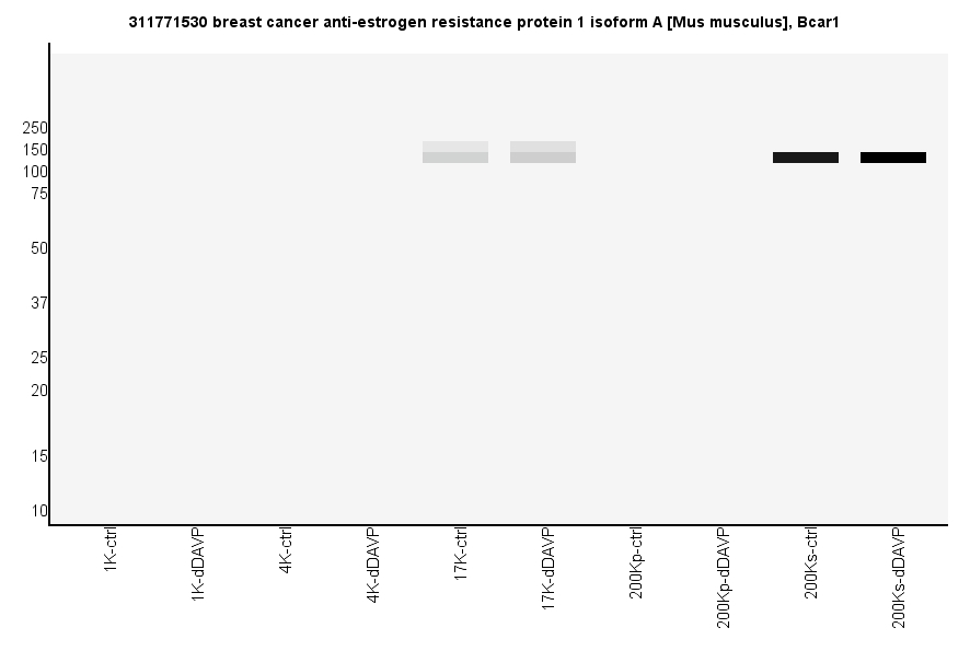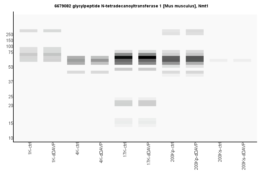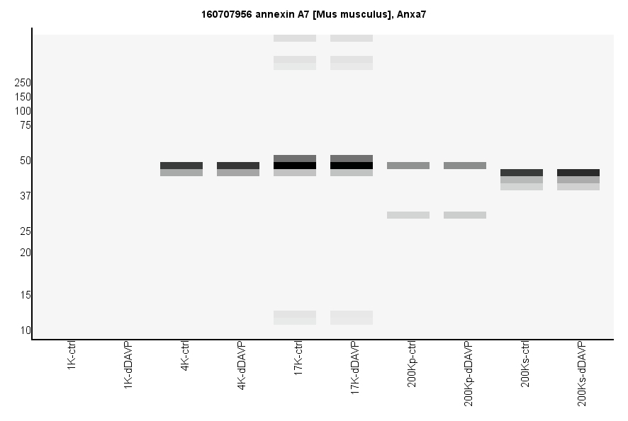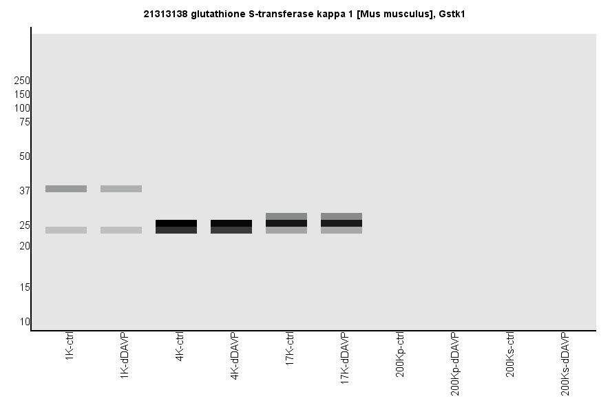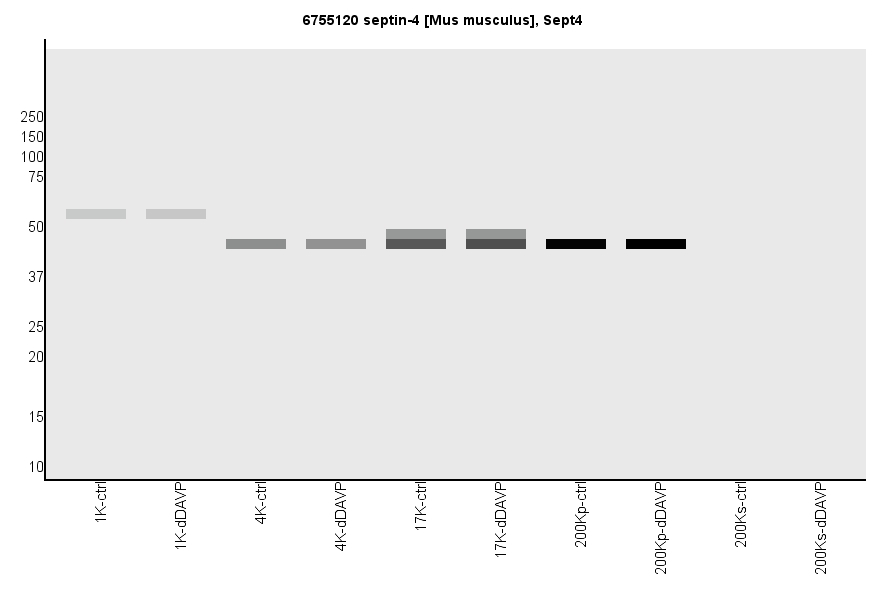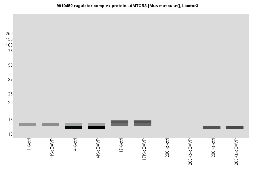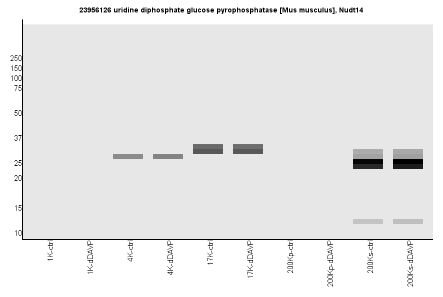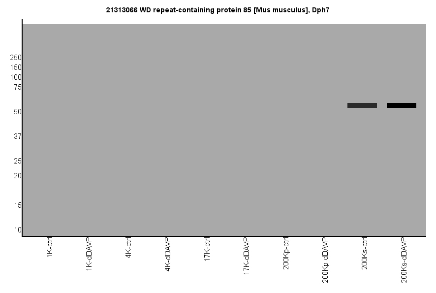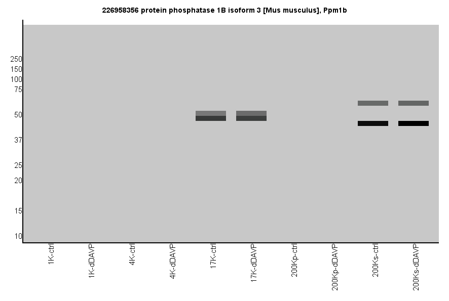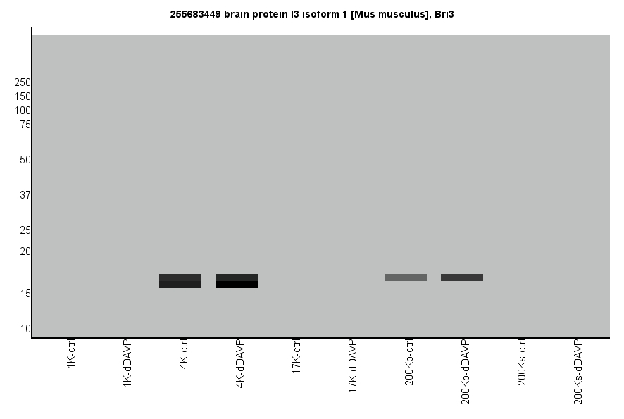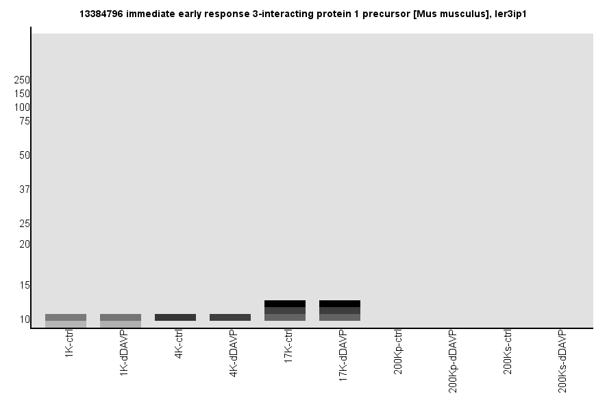 The virtual western blot images show data normalized using a logarithmic conversion scale to map peptide intensities to gray-scale levels. Using this conversion method, low-abundance peptides are generally visible in the blot images. Switch back to the default linear conversion scale database page.