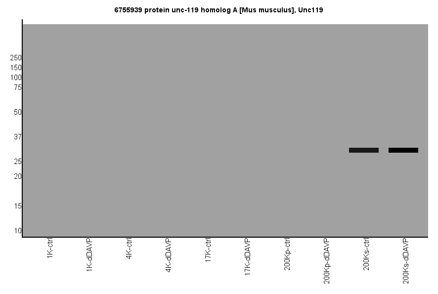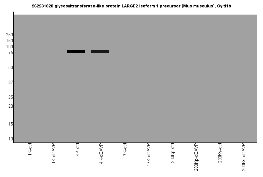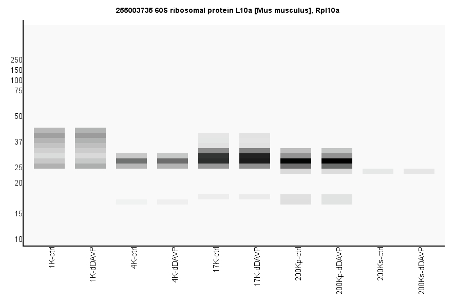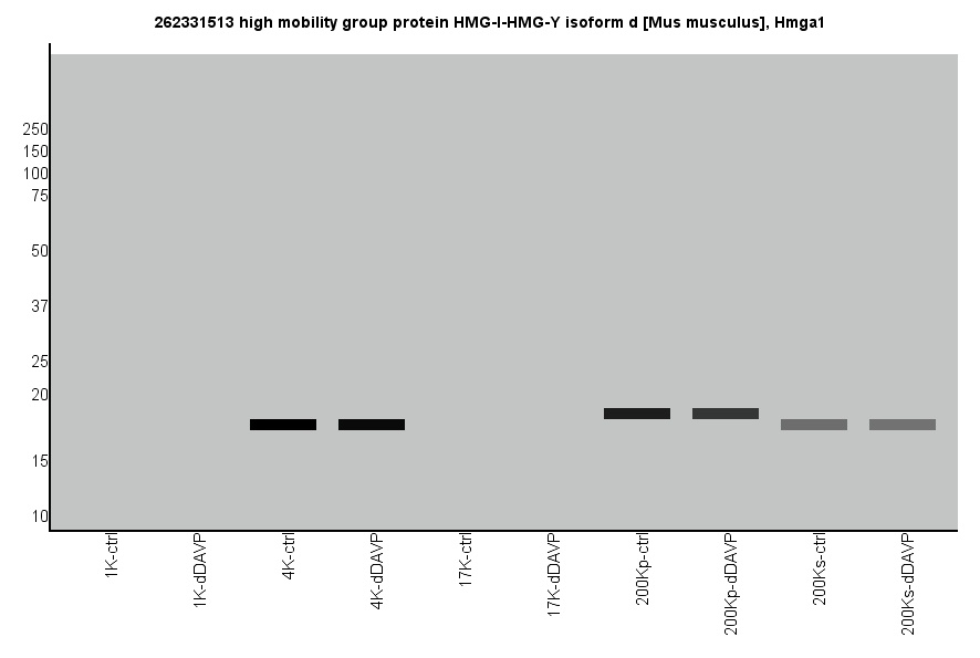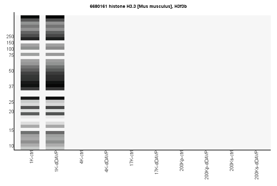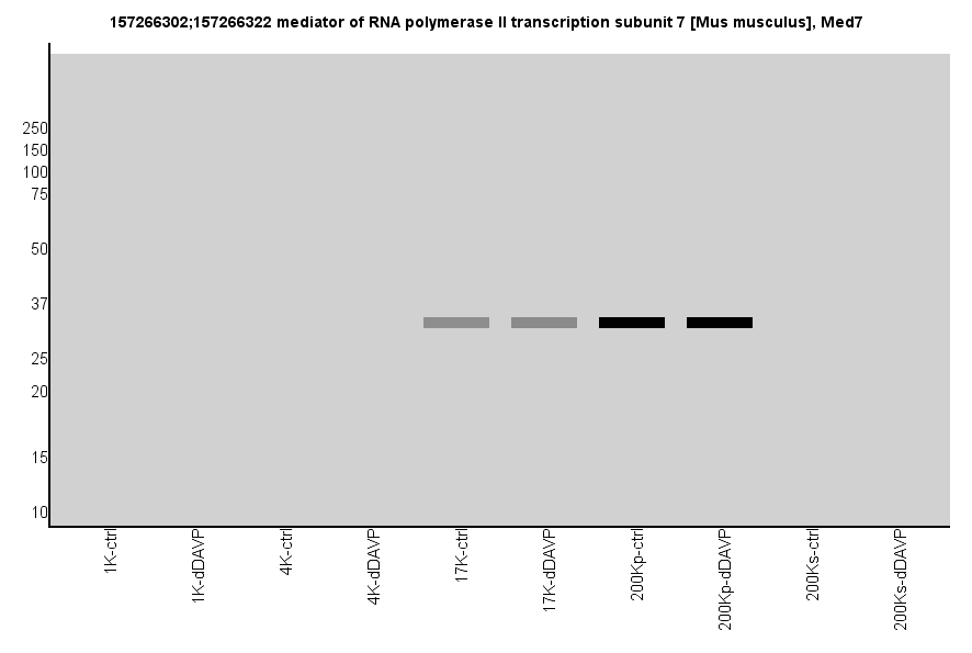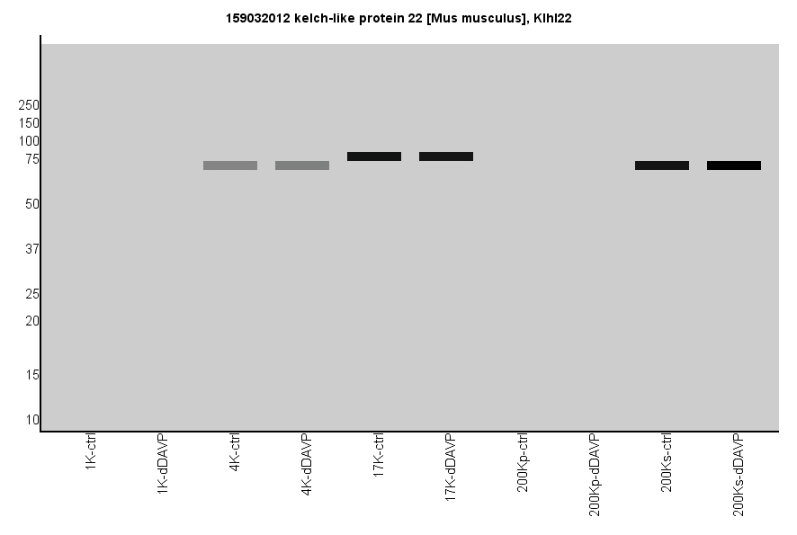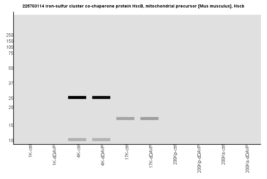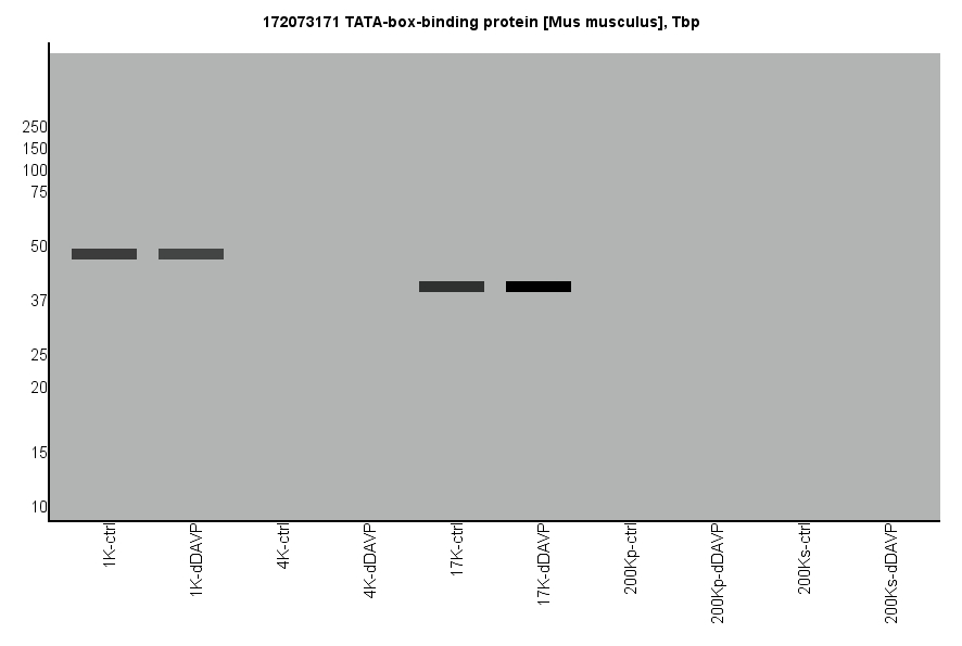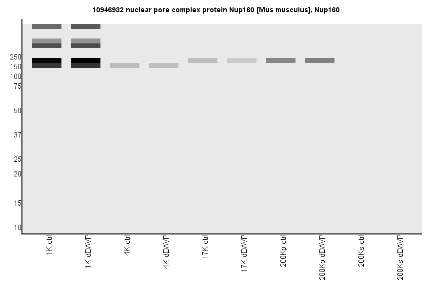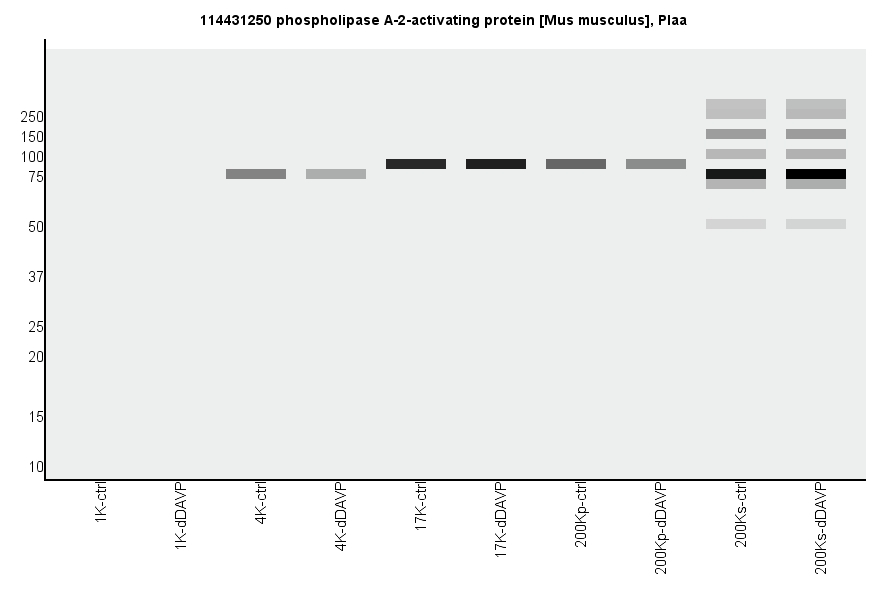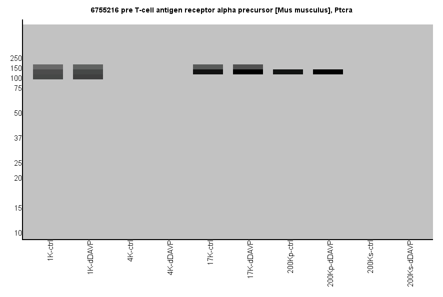 The virtual western blot images show data normalized using a logarithmic conversion scale to map peptide intensities to gray-scale levels. Using this conversion method, low-abundance peptides are generally visible in the blot images. Switch back to the default linear conversion scale database page.