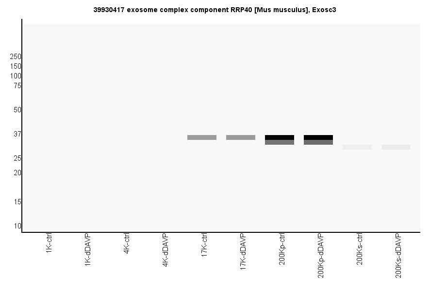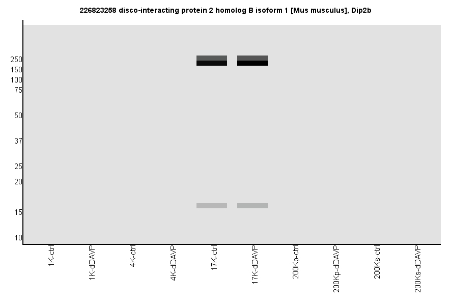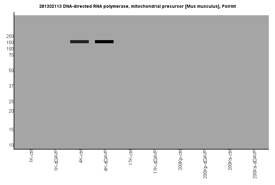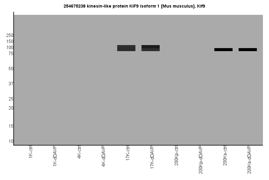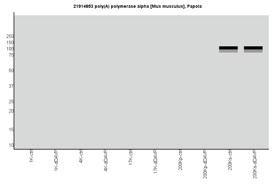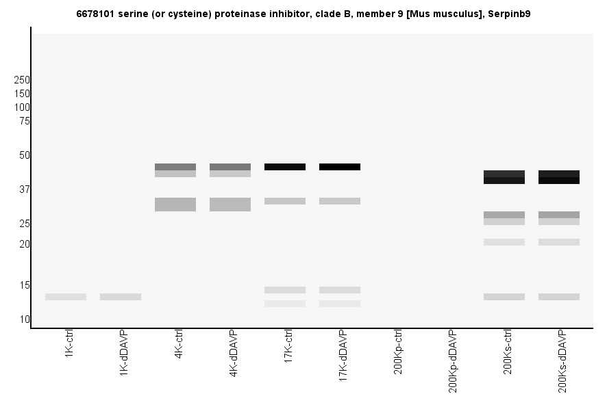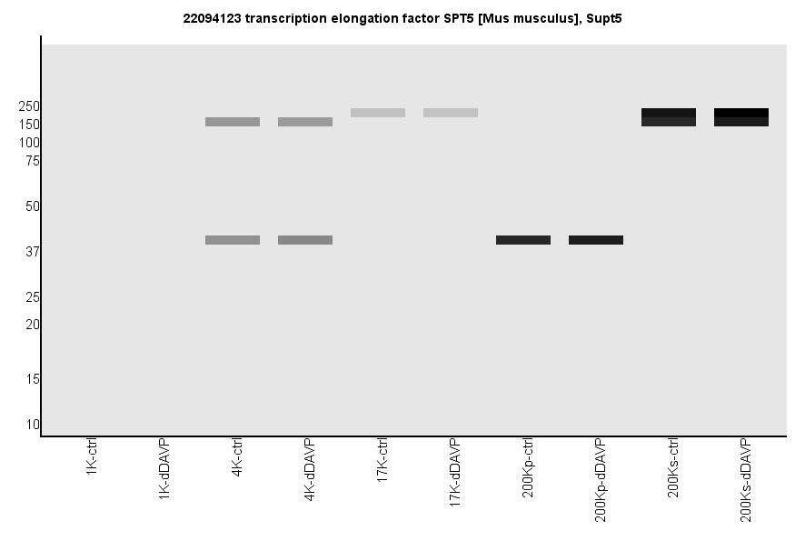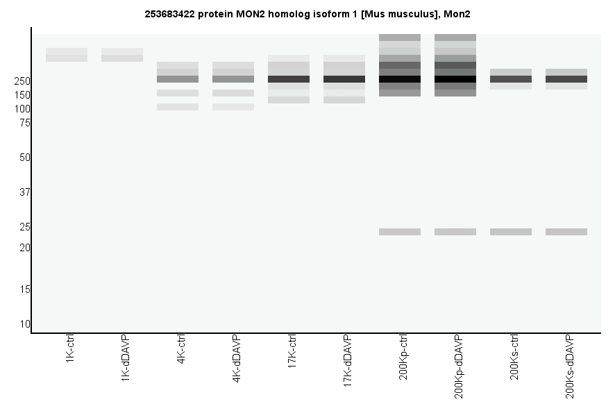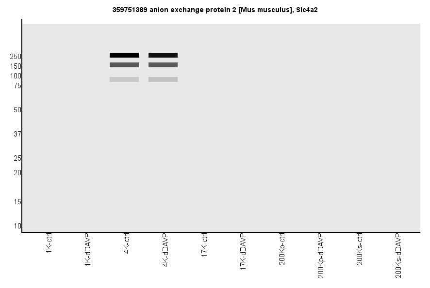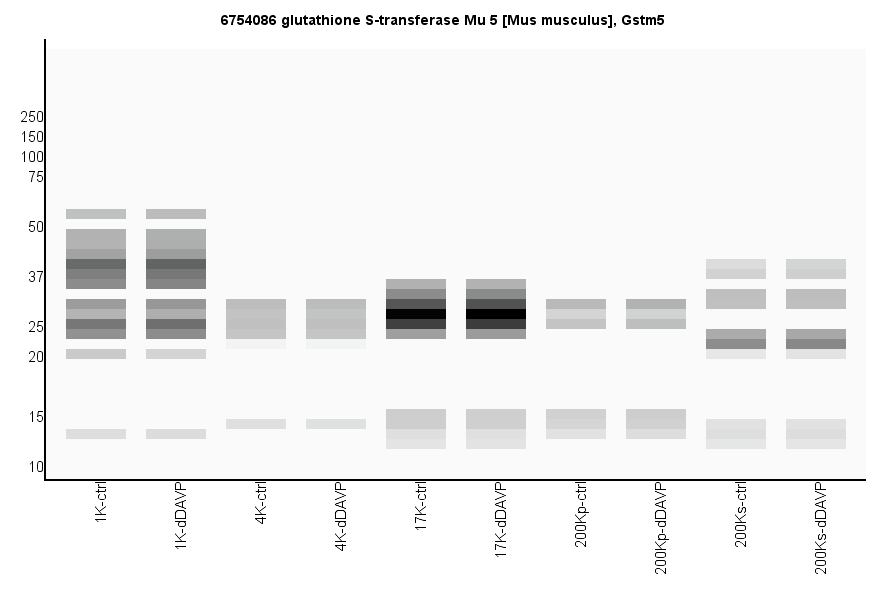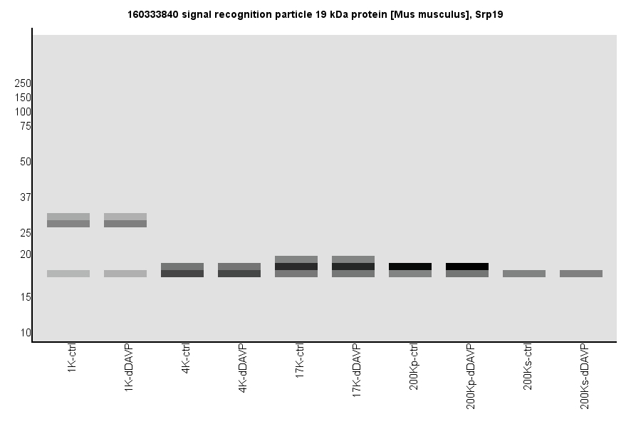 The virtual western blot images show data normalized using a logarithmic conversion scale to map peptide intensities to gray-scale levels. Using this conversion method, low-abundance peptides are generally visible in the blot images. Switch back to the default linear conversion scale database page.