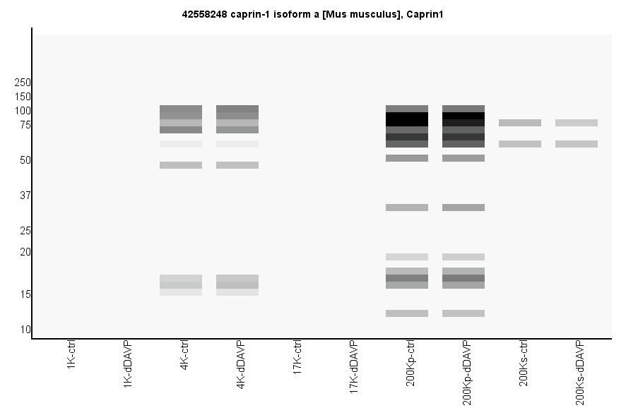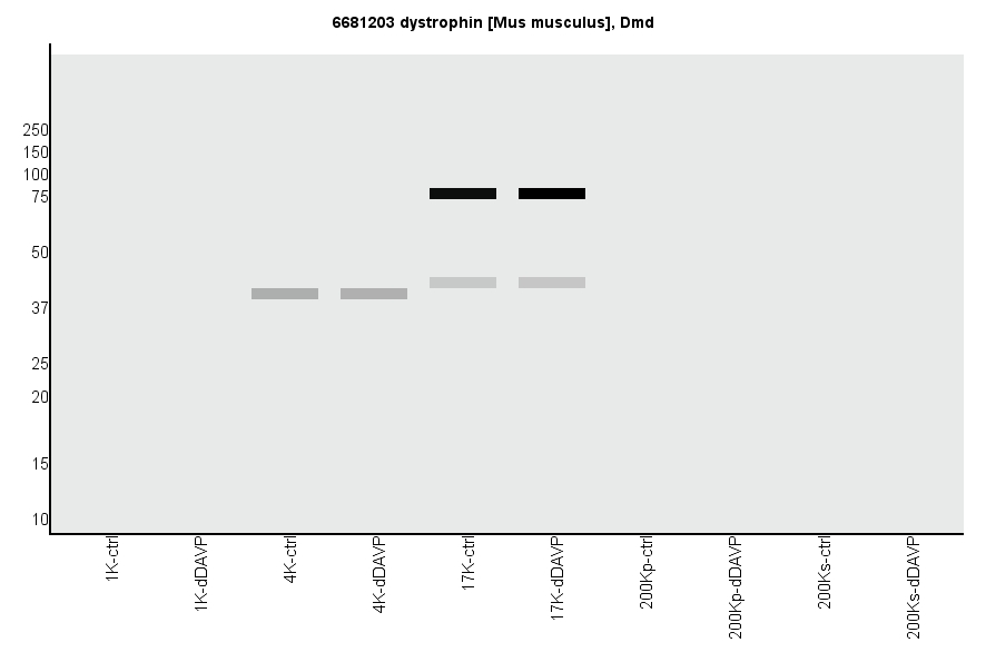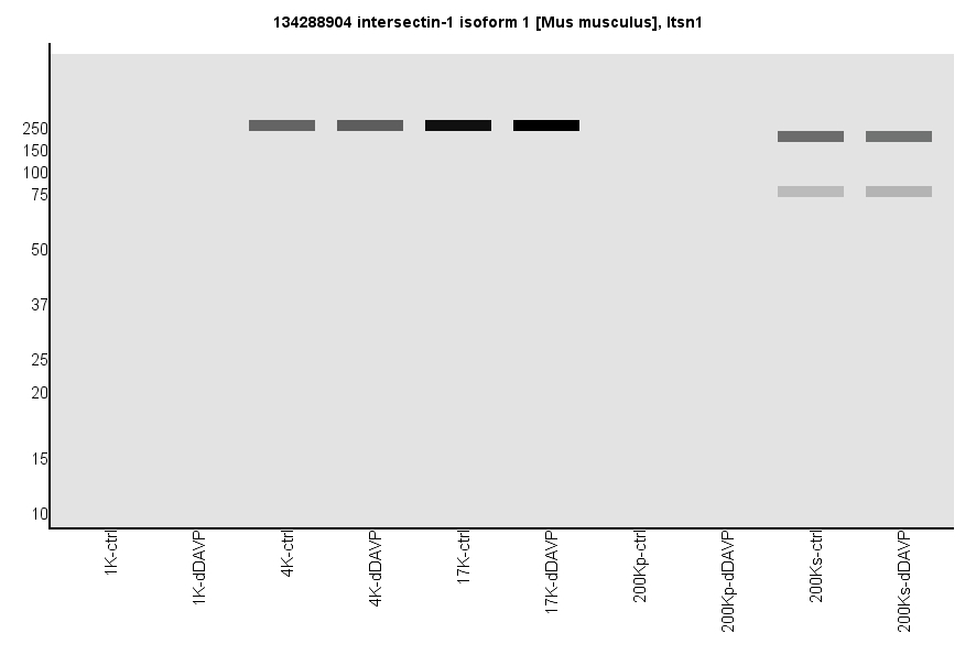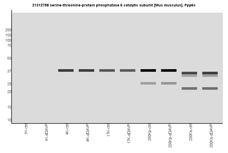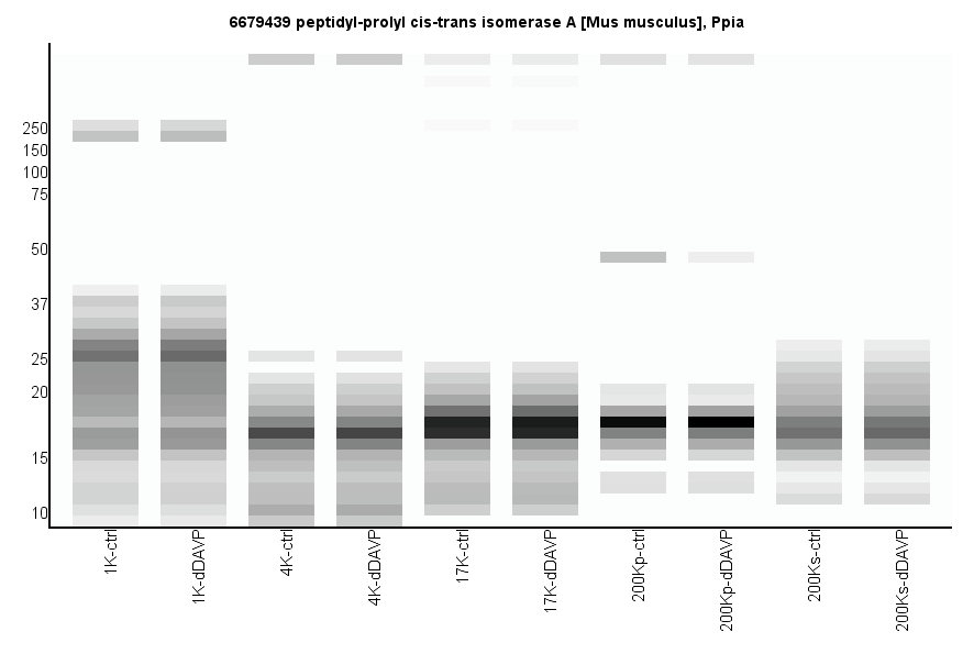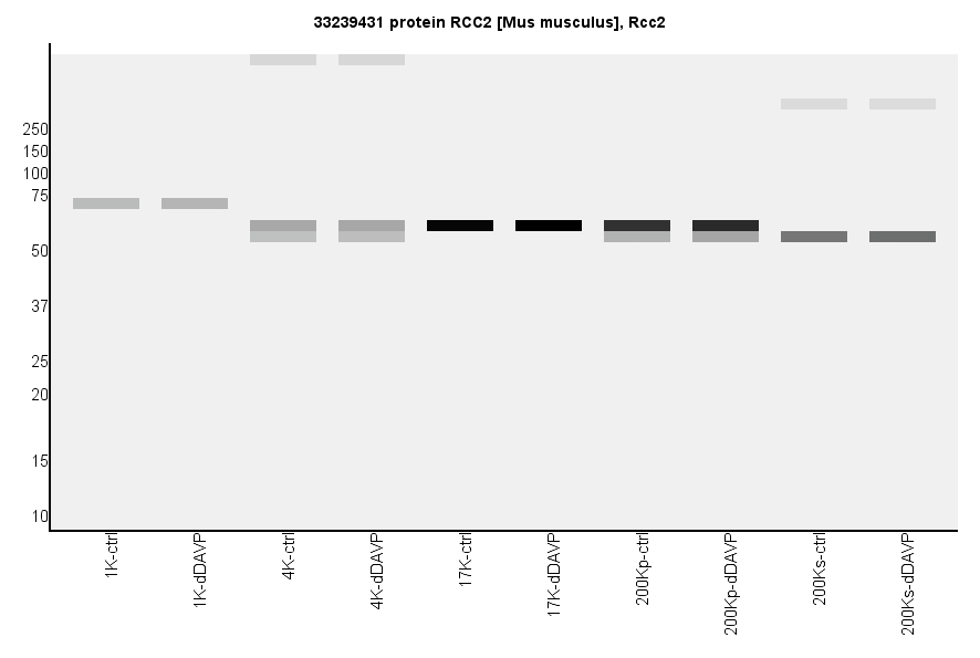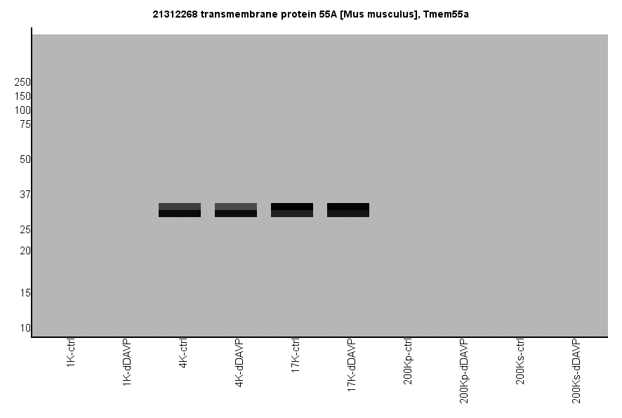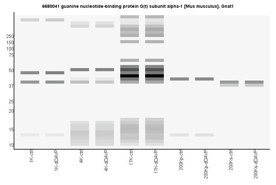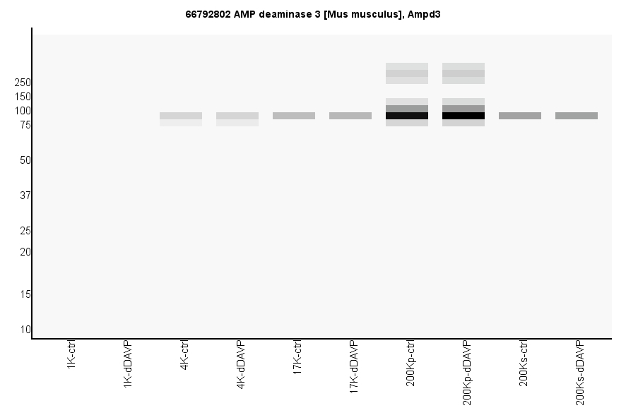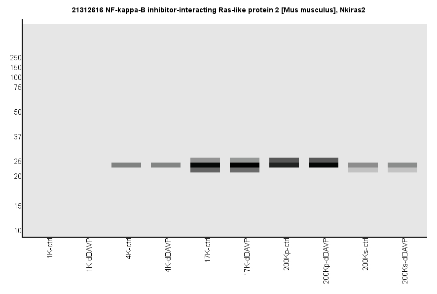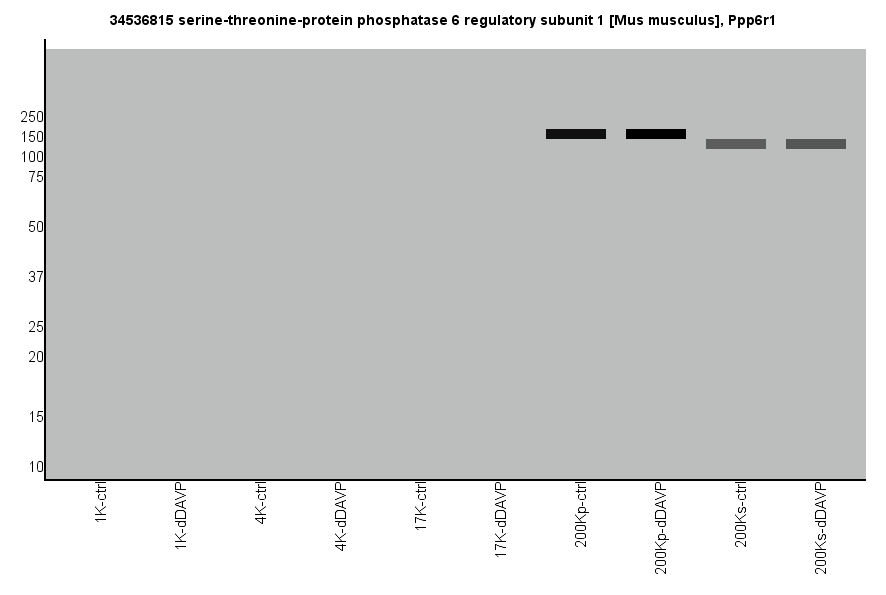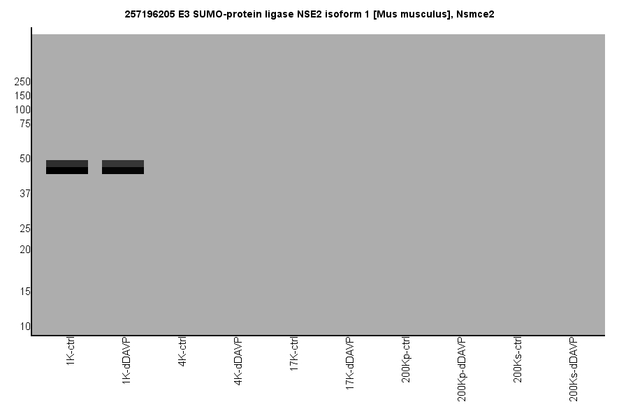 The virtual western blot images show data normalized using a logarithmic conversion scale to map peptide intensities to gray-scale levels. Using this conversion method, low-abundance peptides are generally visible in the blot images. Switch back to the default linear conversion scale database page.