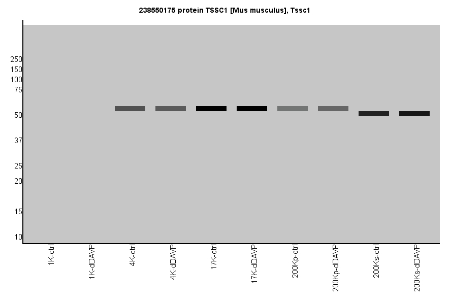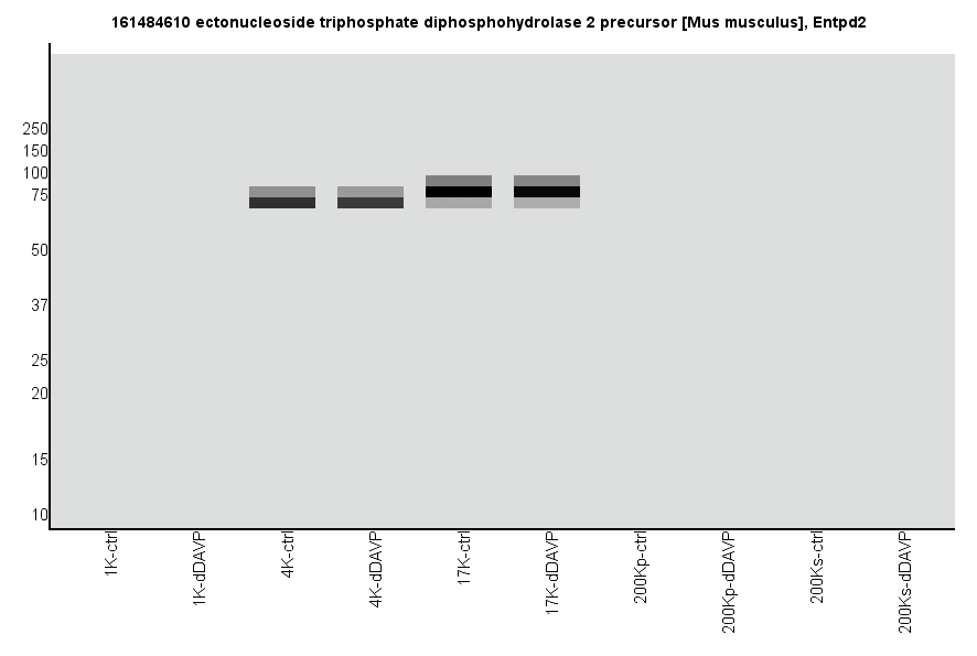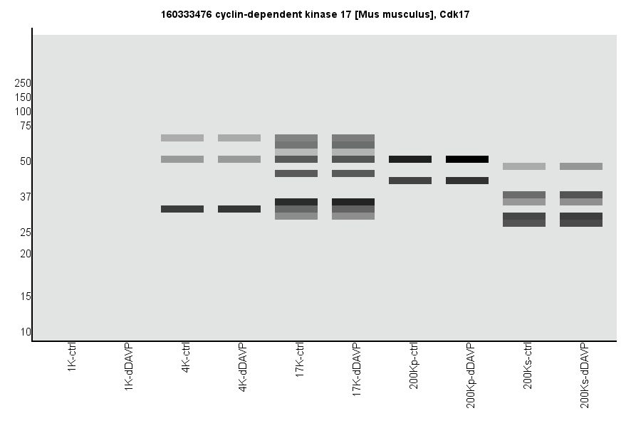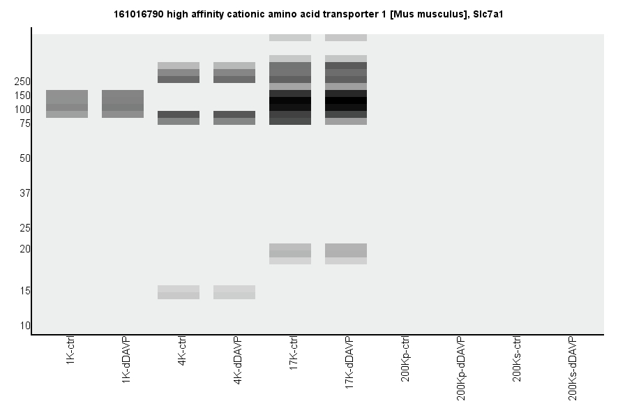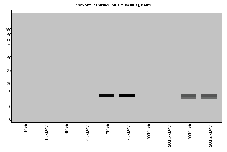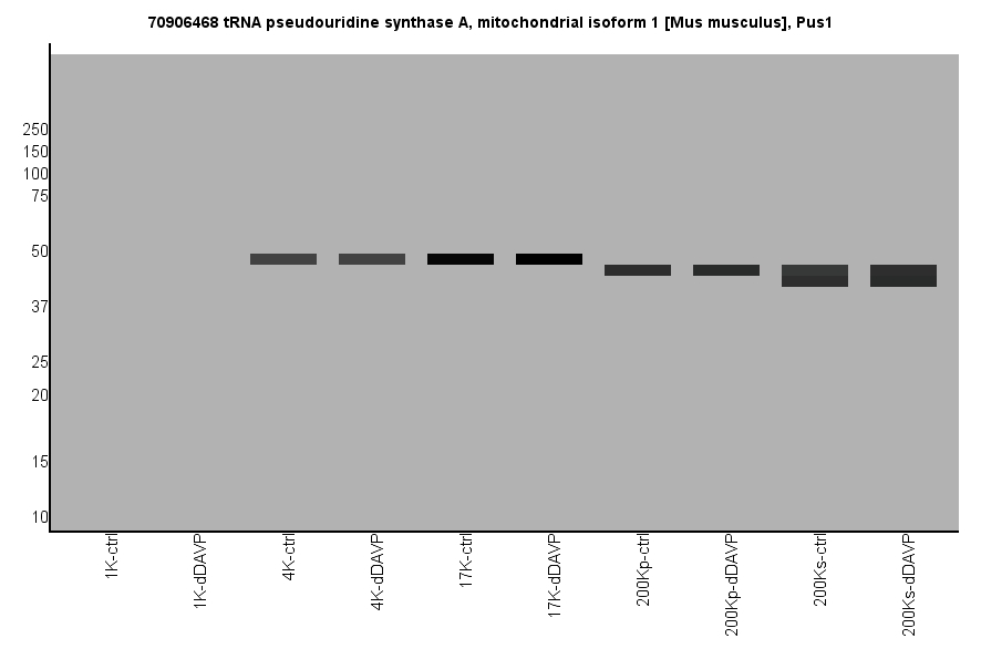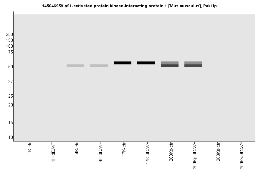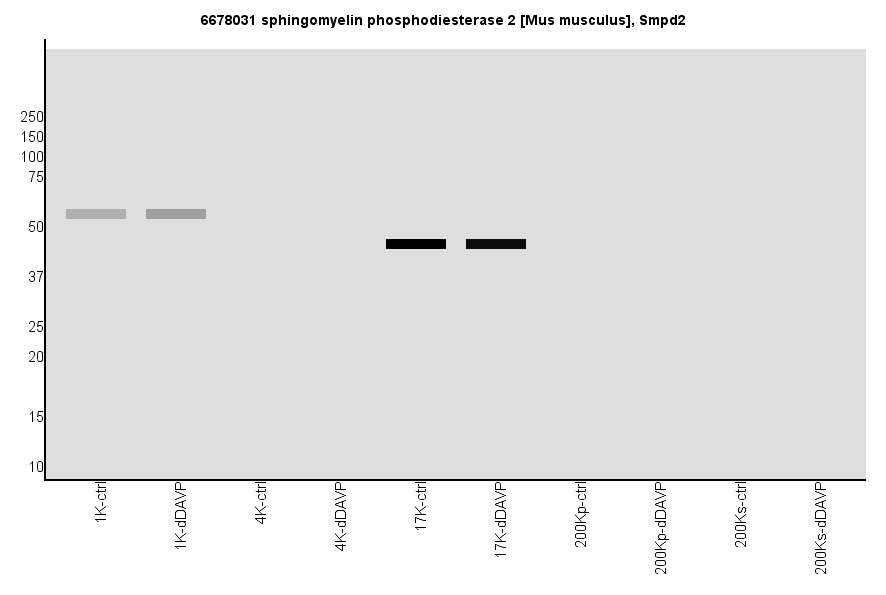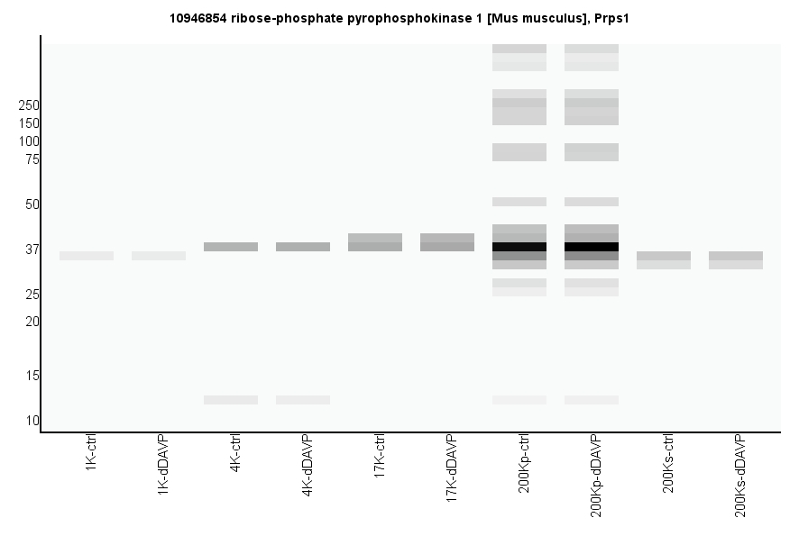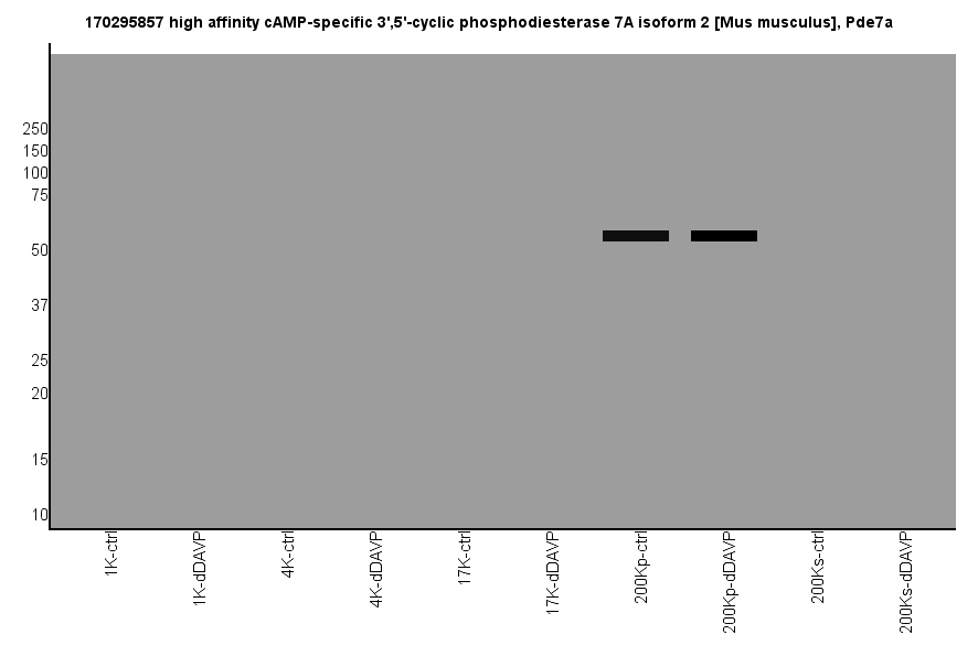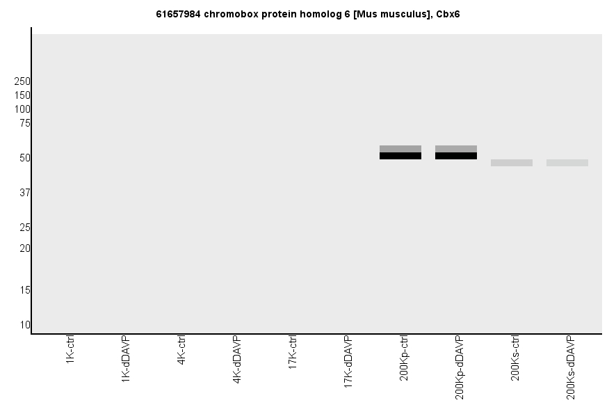 The virtual western blot images show data normalized using a logarithmic conversion scale to map peptide intensities to gray-scale levels. Using this conversion method, low-abundance peptides are generally visible in the blot images. Switch back to the default linear conversion scale database page.