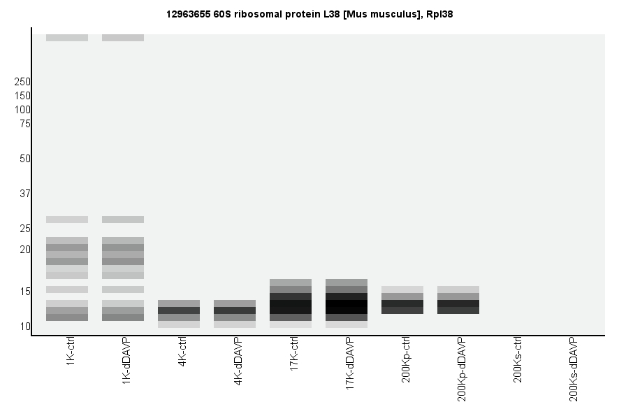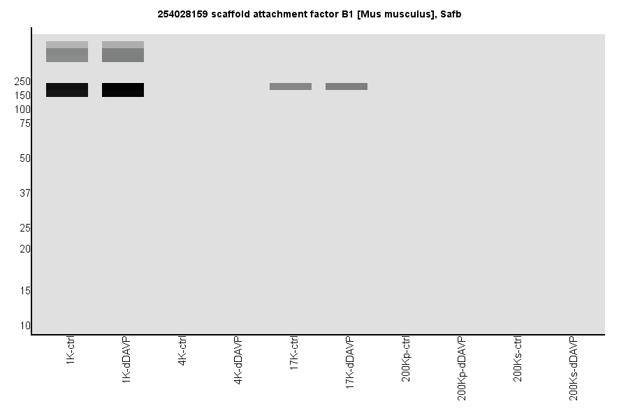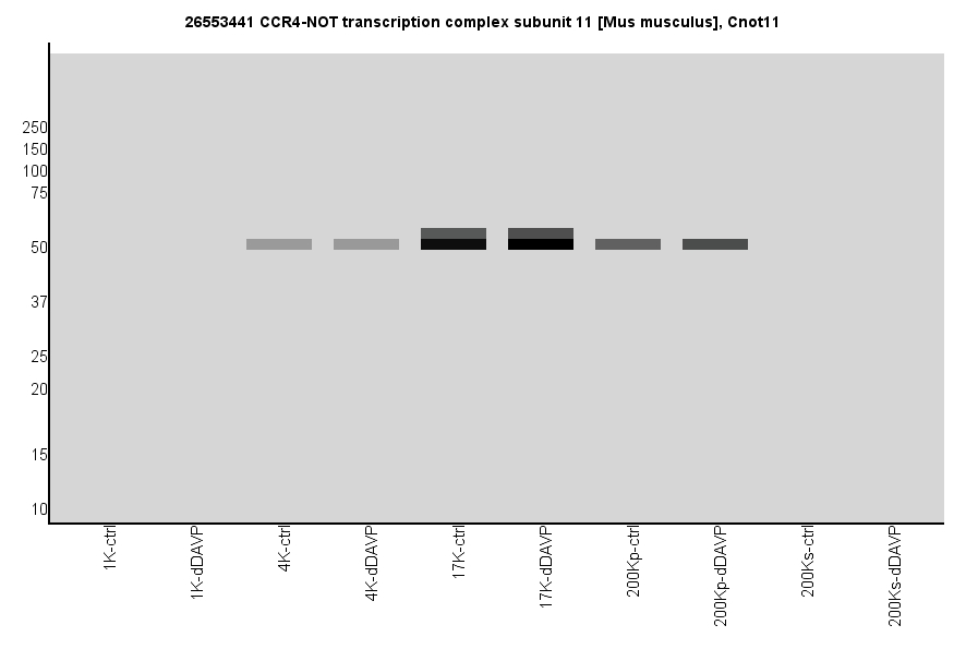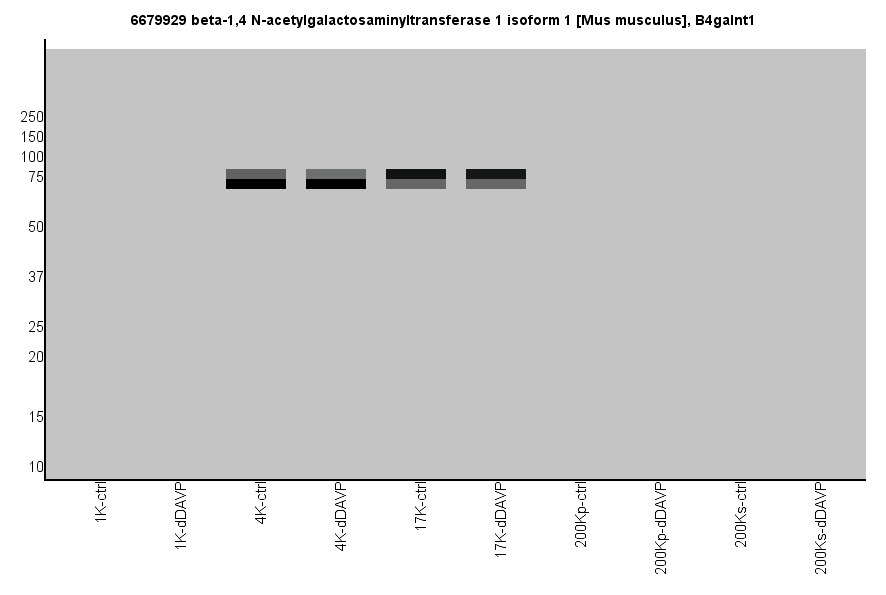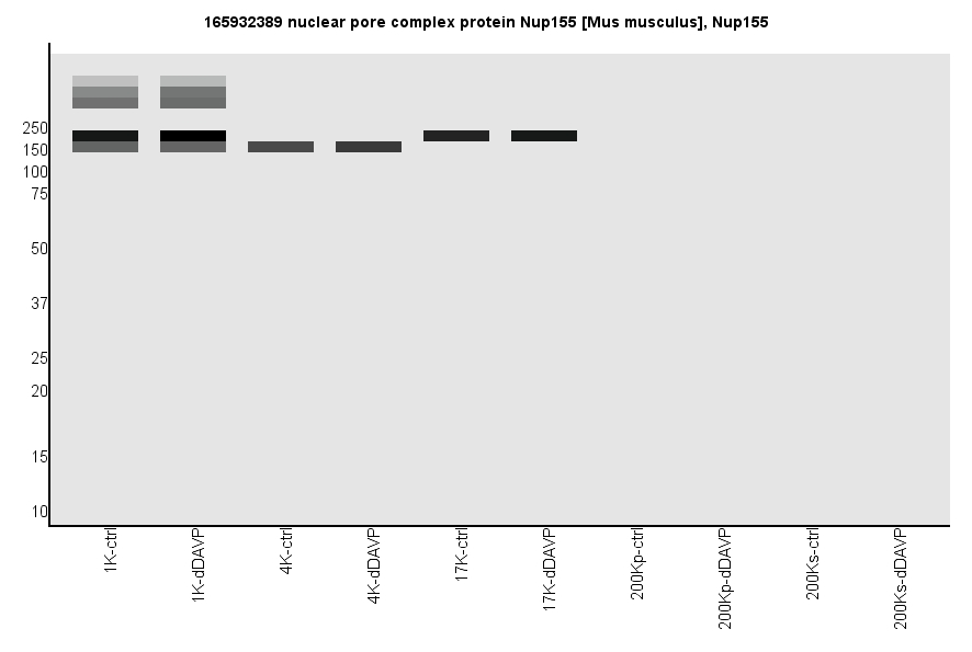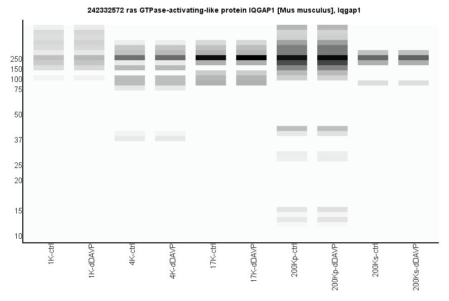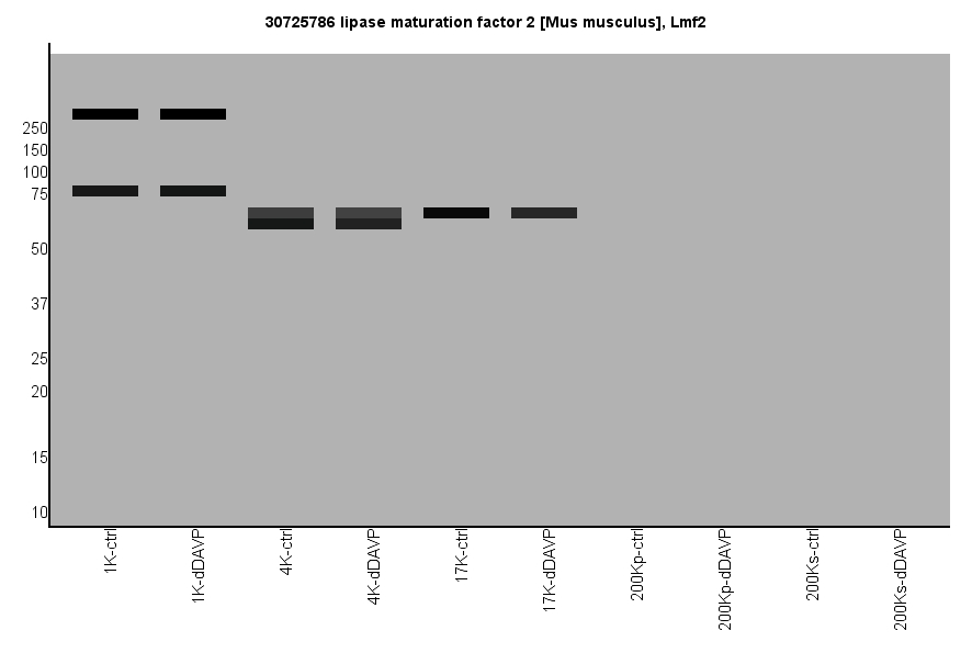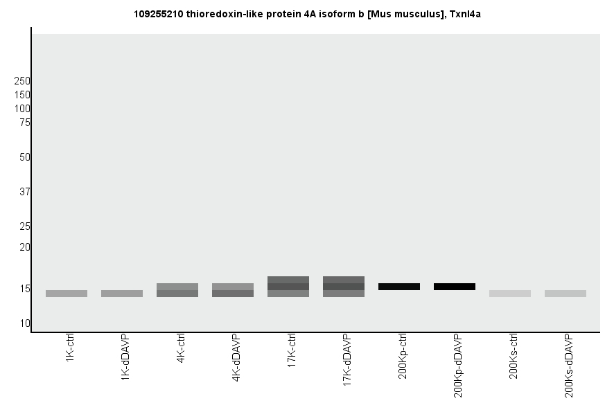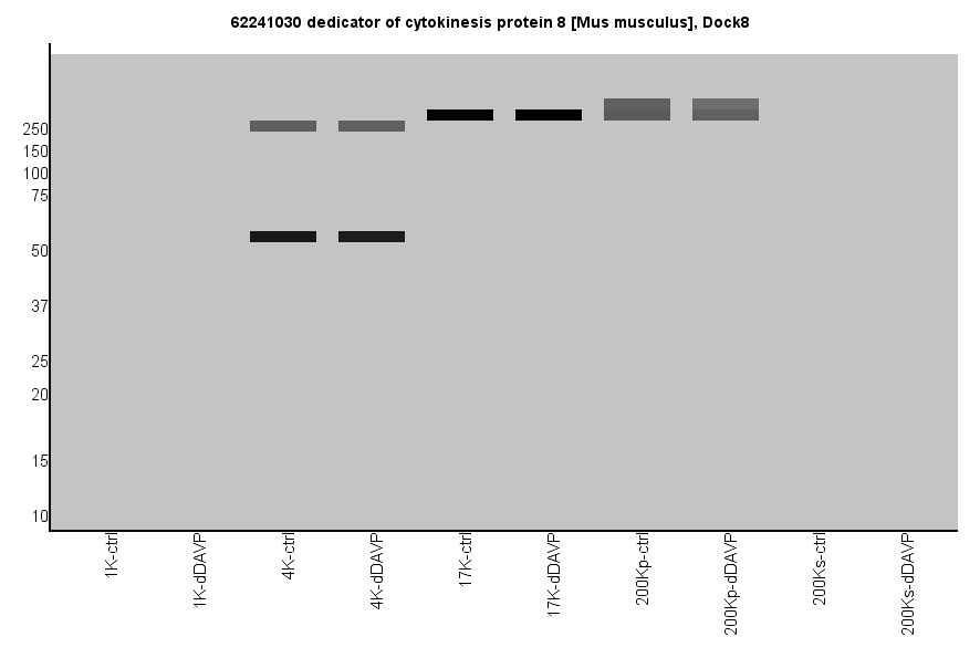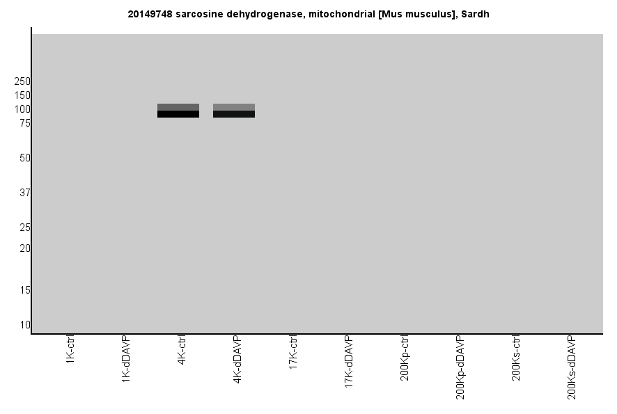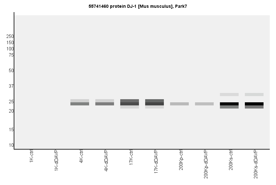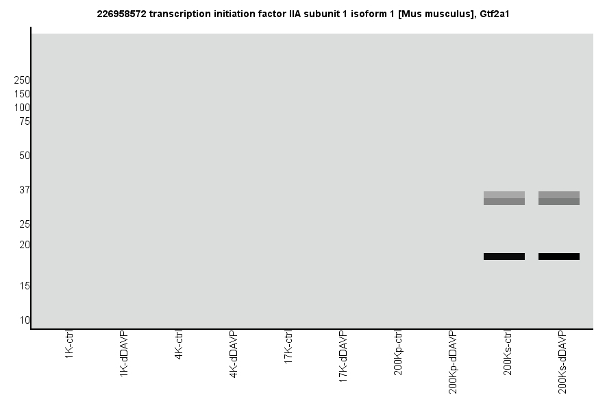 The virtual western blot images show data normalized using a logarithmic conversion scale to map peptide intensities to gray-scale levels. Using this conversion method, low-abundance peptides are generally visible in the blot images. Switch back to the default linear conversion scale database page.