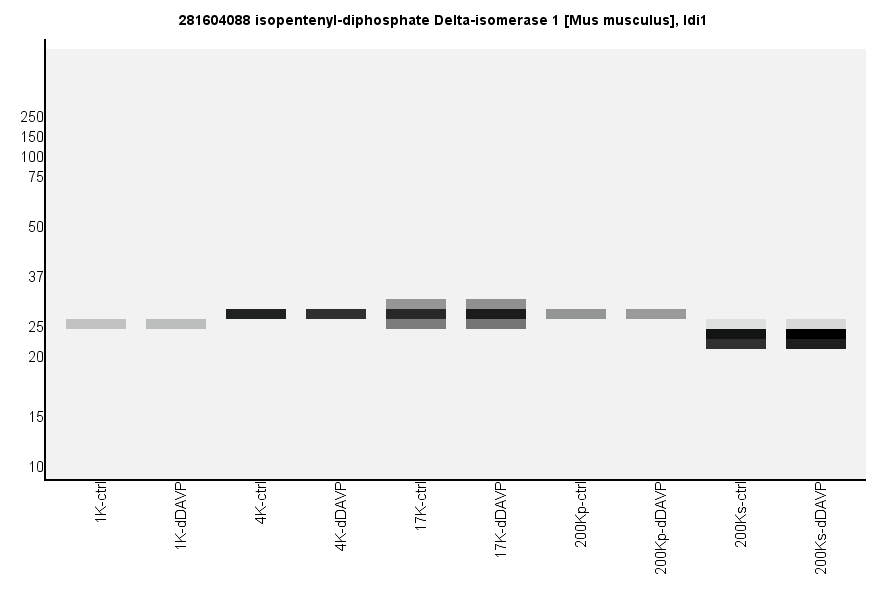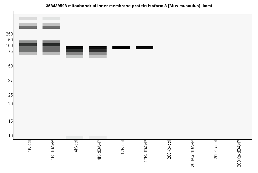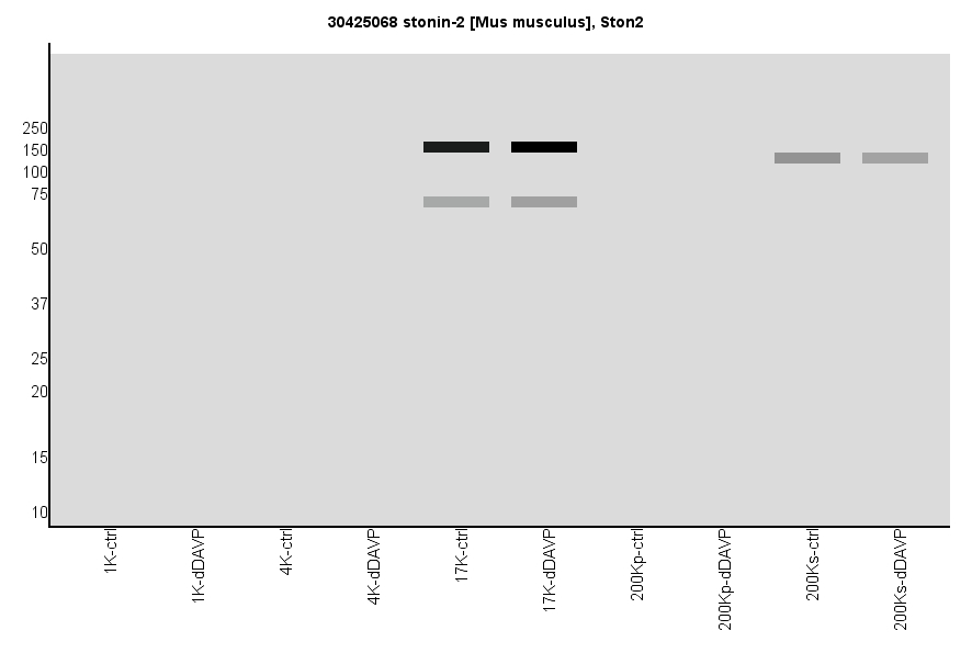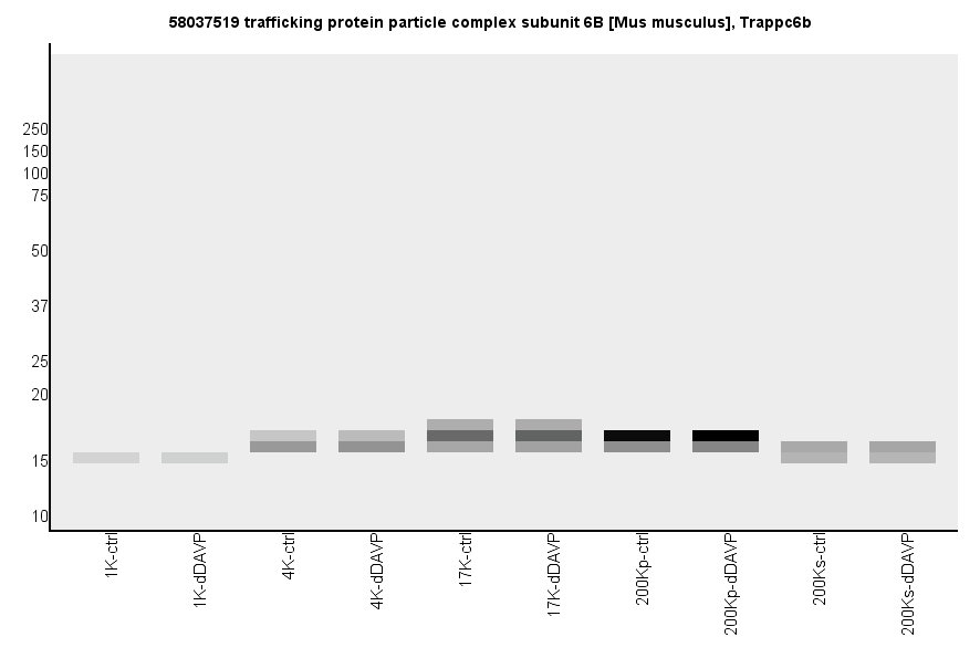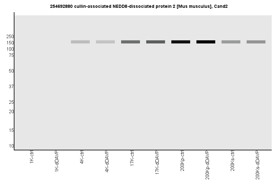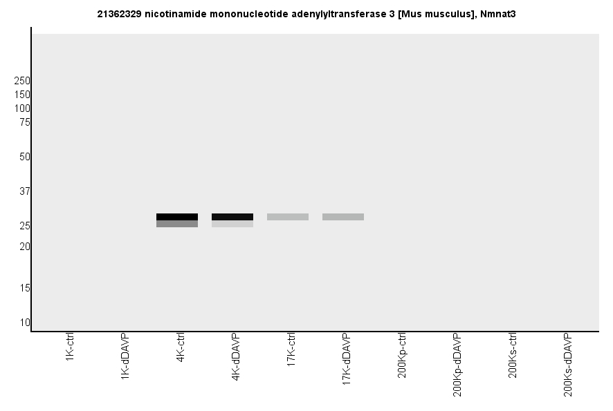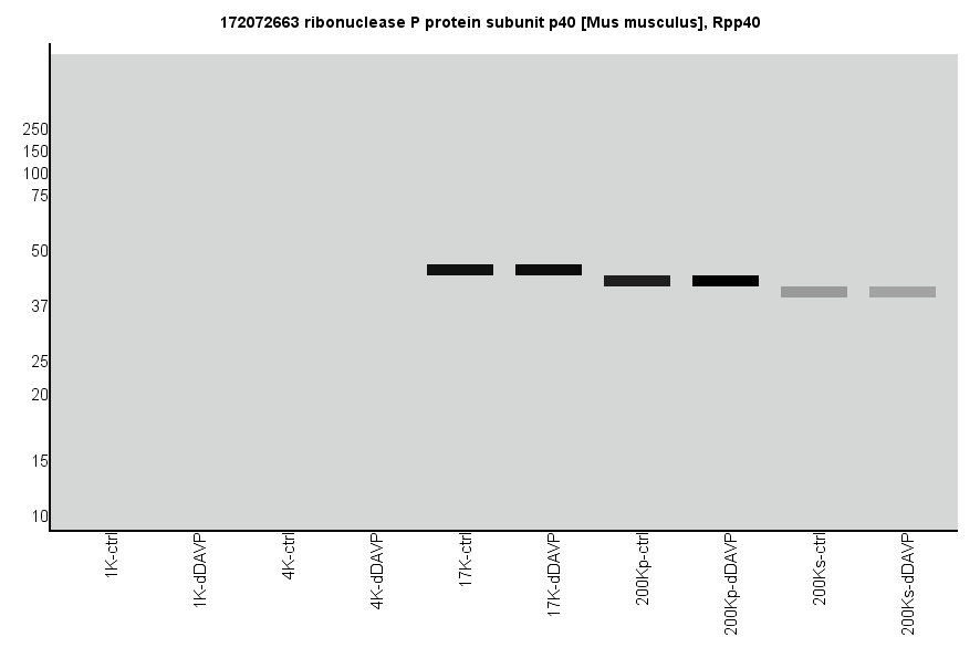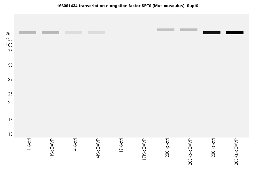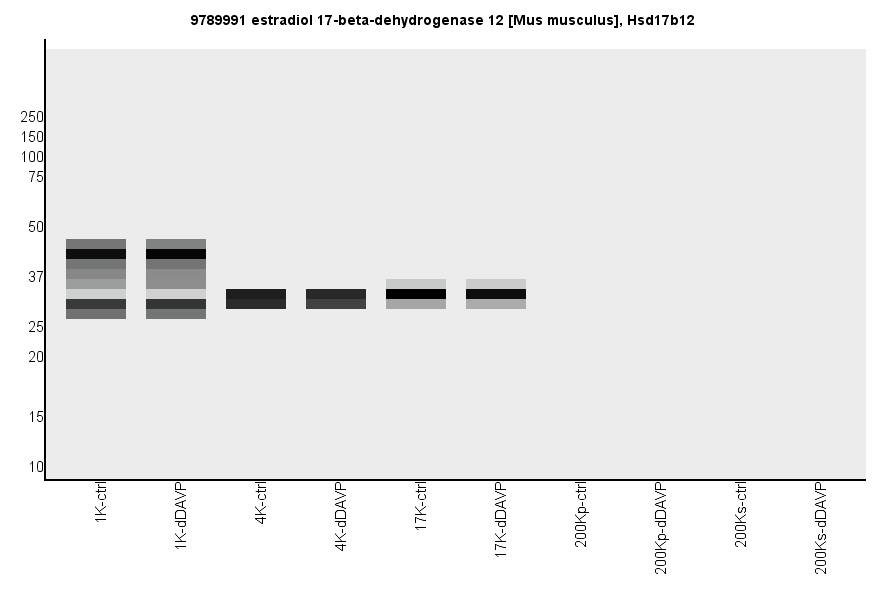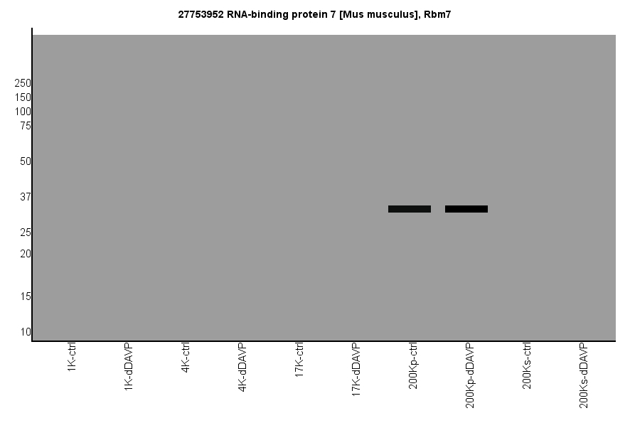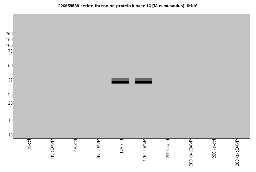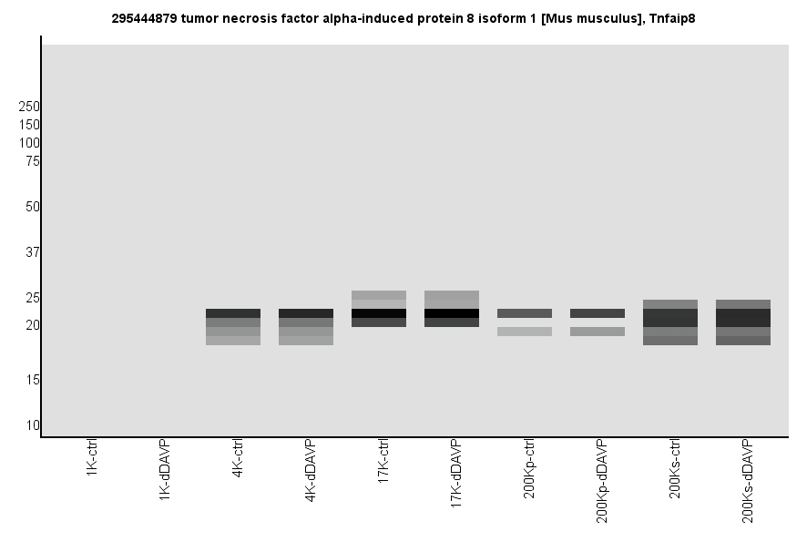 The virtual western blot images show data normalized using a logarithmic conversion scale to map peptide intensities to gray-scale levels. Using this conversion method, low-abundance peptides are generally visible in the blot images. Switch back to the default linear conversion scale database page.