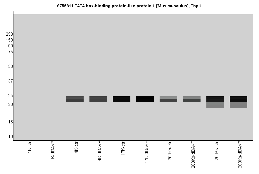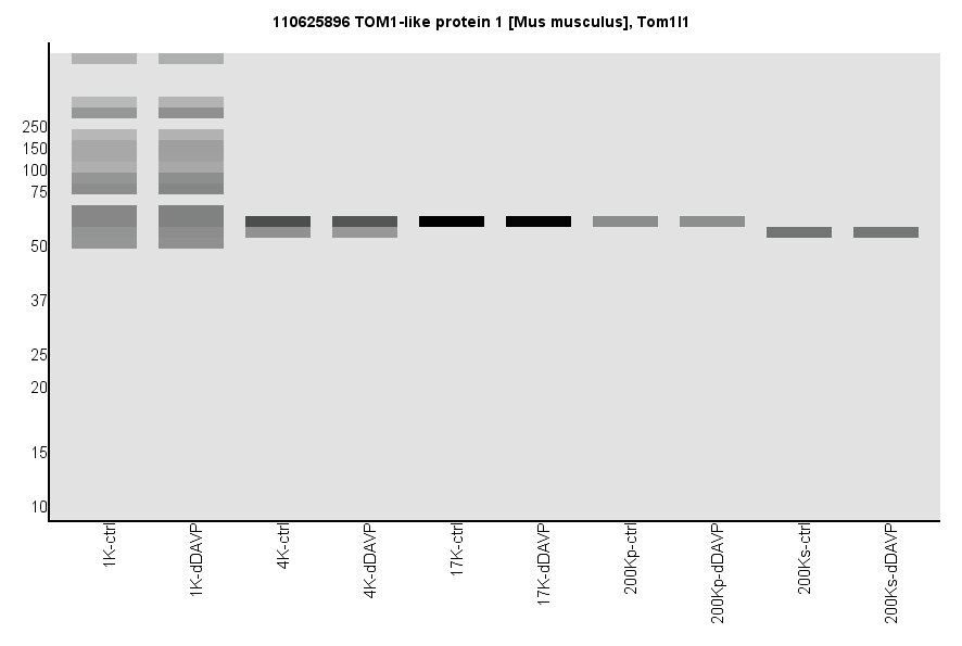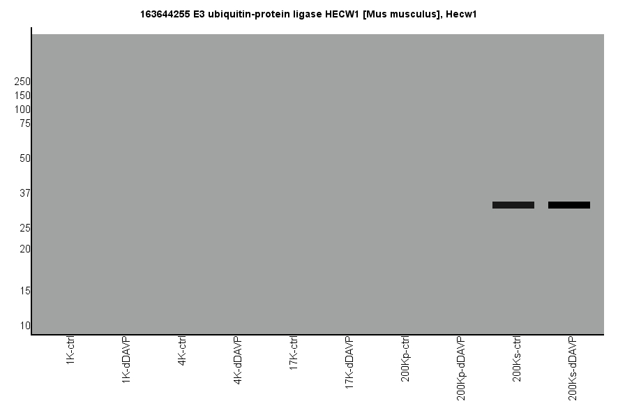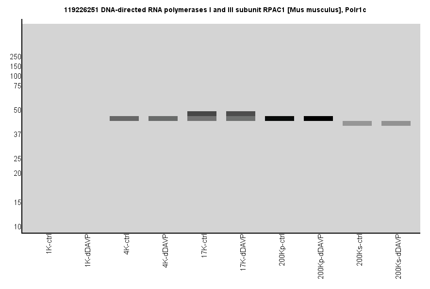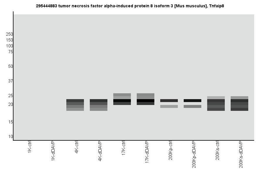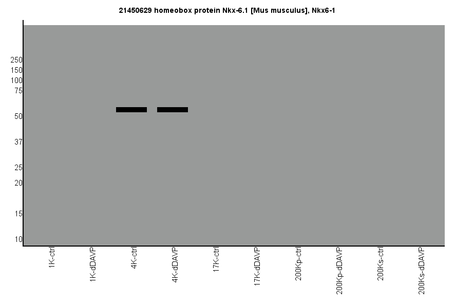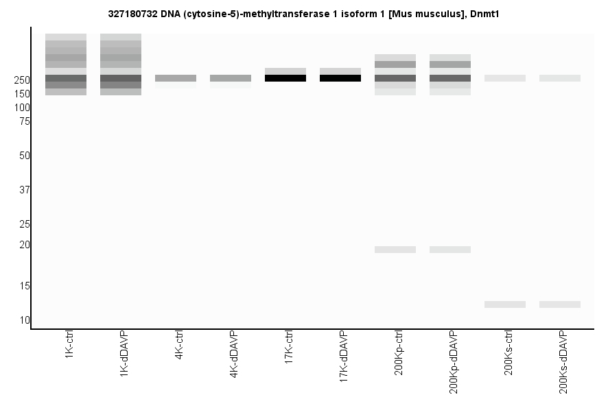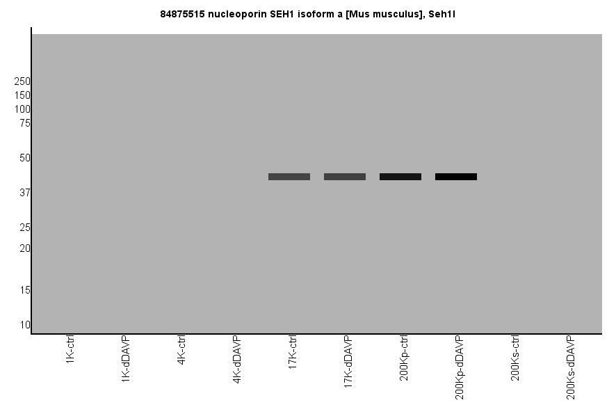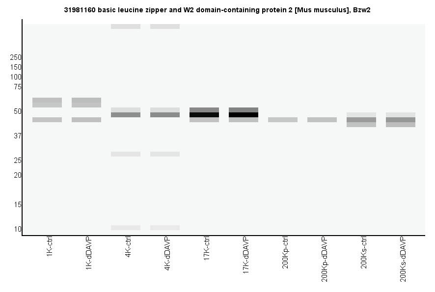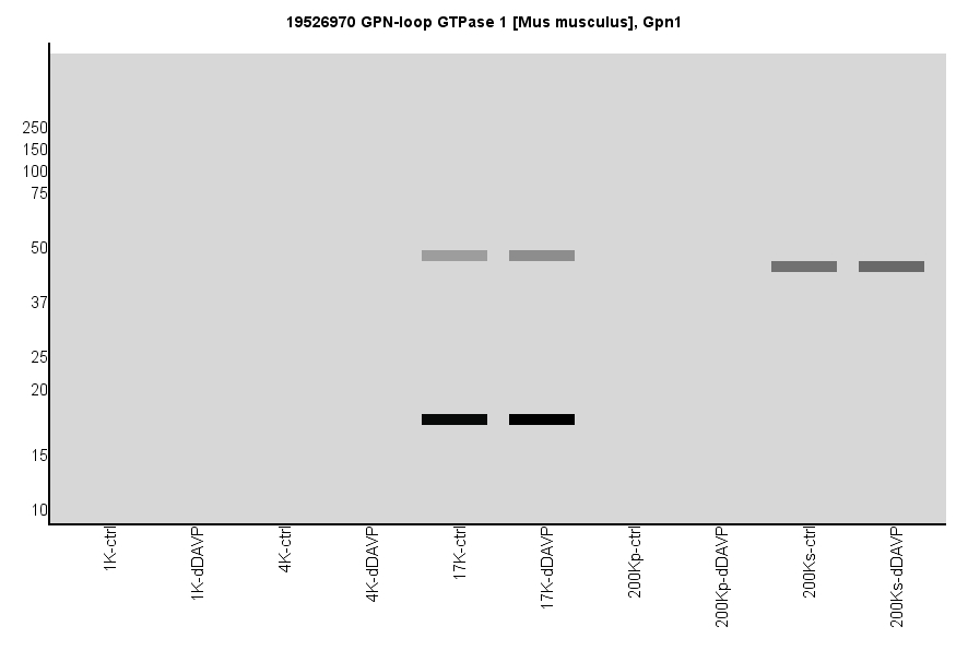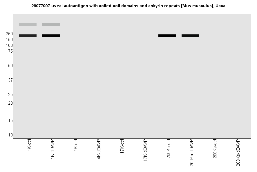 The virtual western blot images show data normalized using a logarithmic conversion scale to map peptide intensities to gray-scale levels. Using this conversion method, low-abundance peptides are generally visible in the blot images. Switch back to the default linear conversion scale database page.