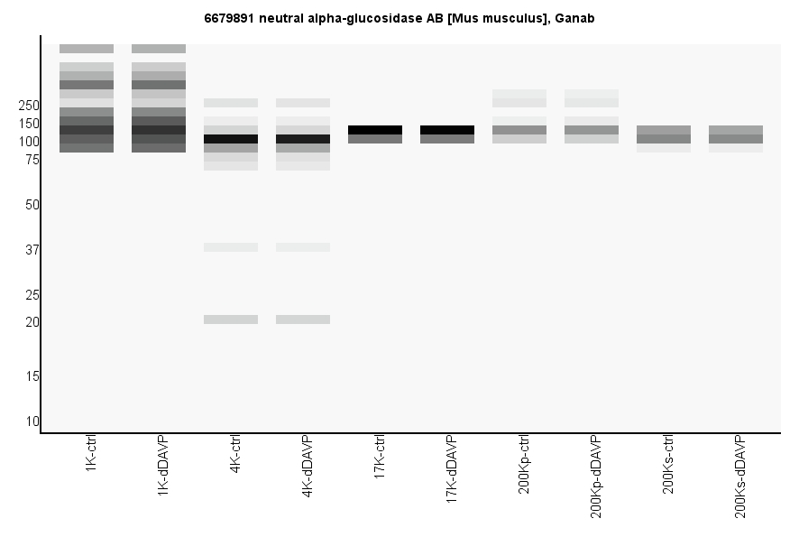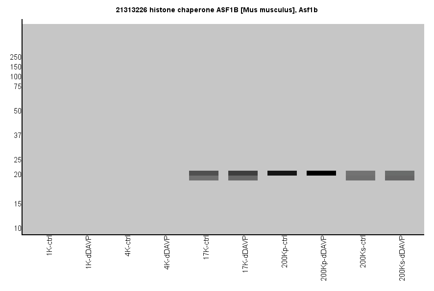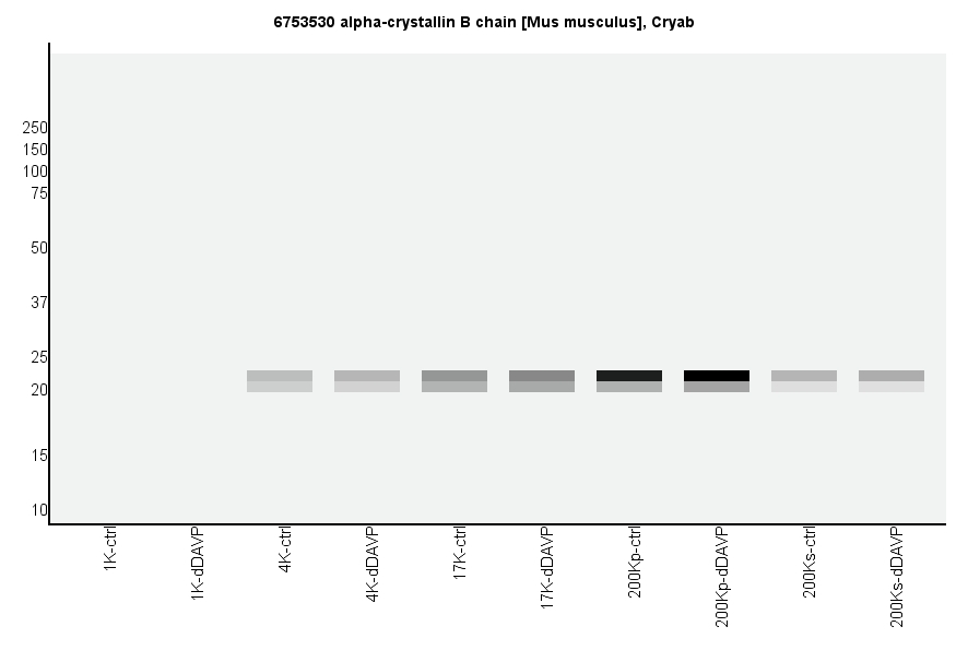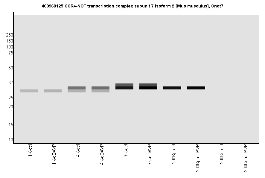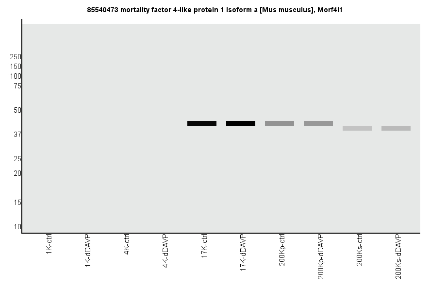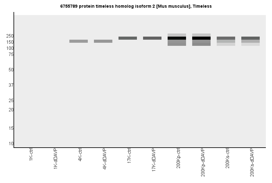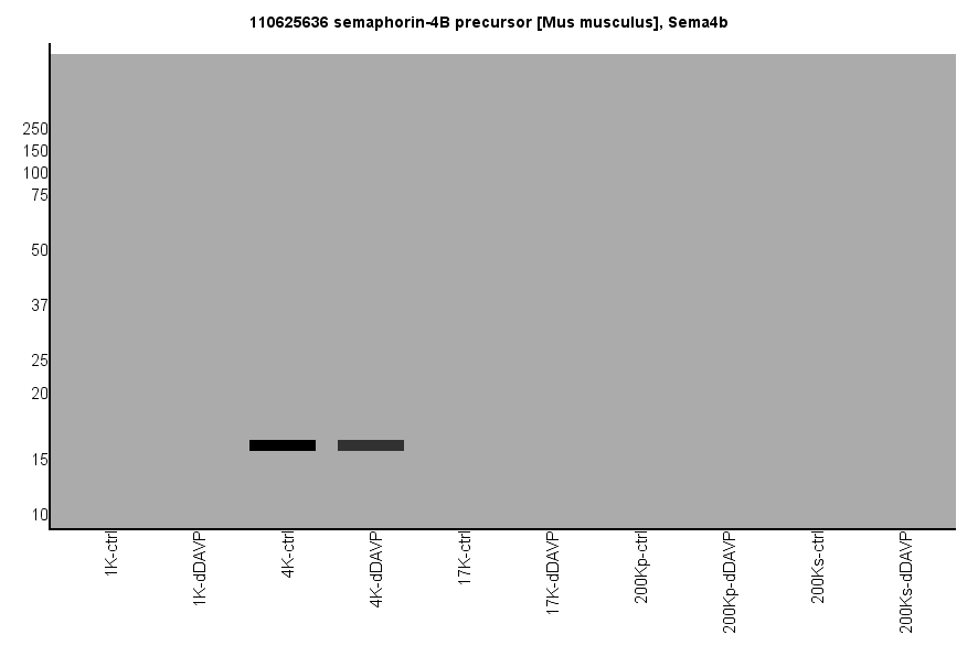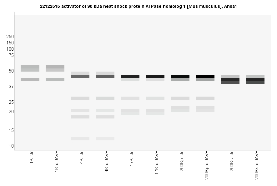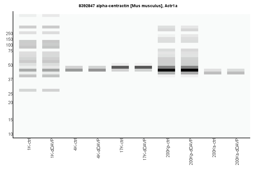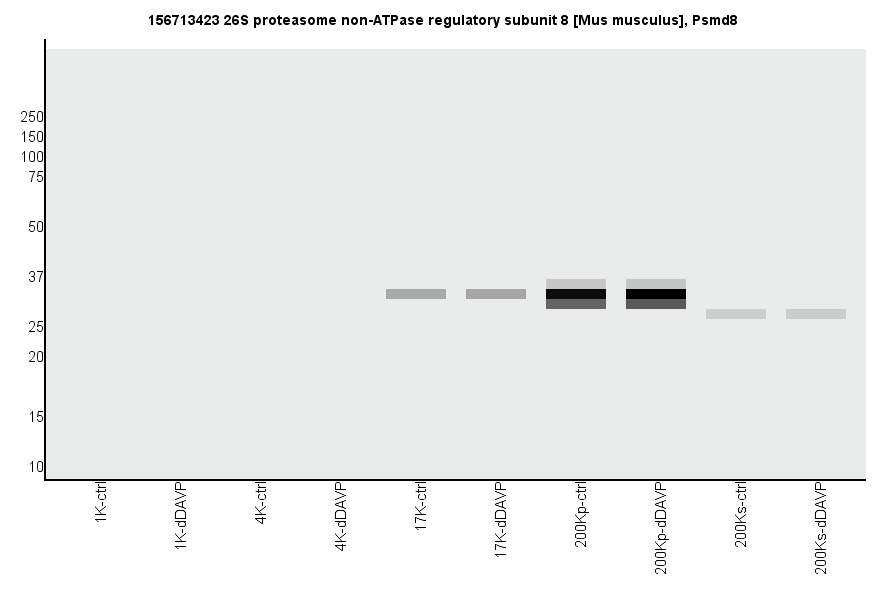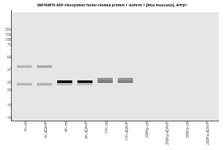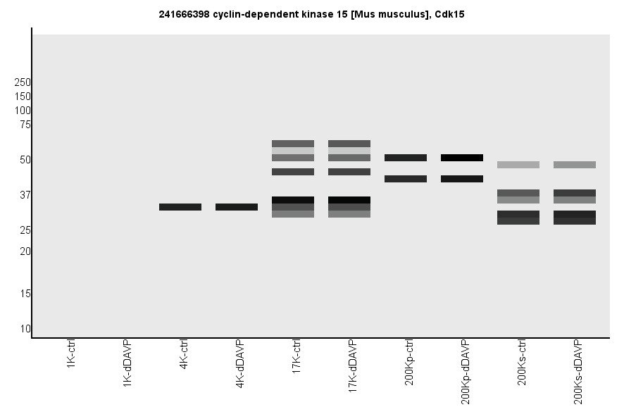 The virtual western blot images show data normalized using a logarithmic conversion scale to map peptide intensities to gray-scale levels. Using this conversion method, low-abundance peptides are generally visible in the blot images. Switch back to the default linear conversion scale database page.