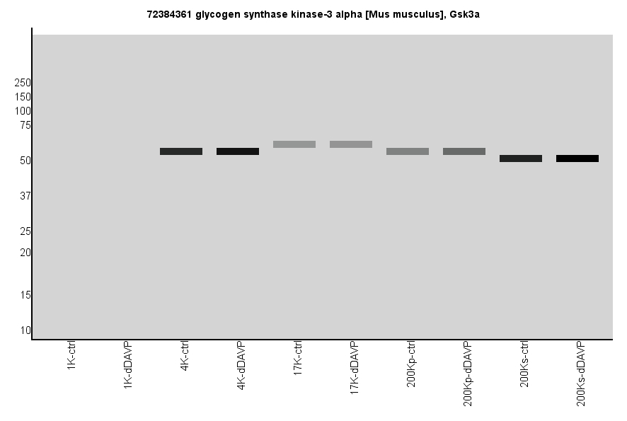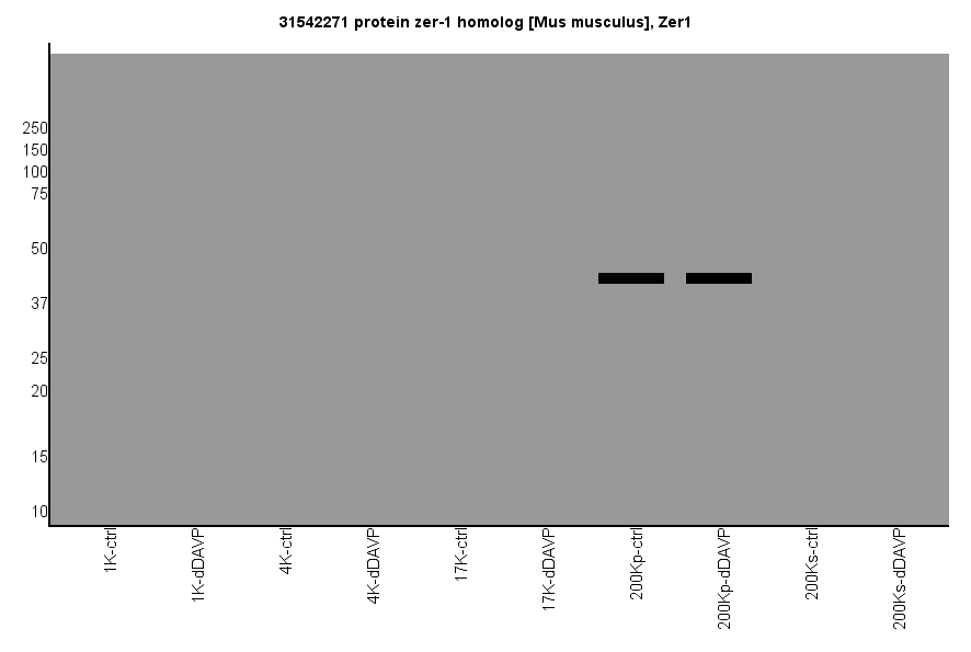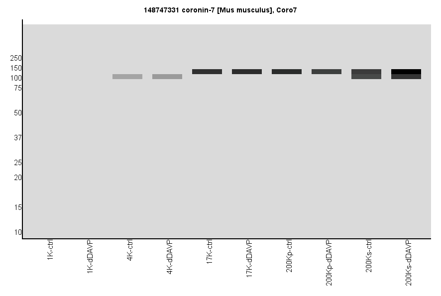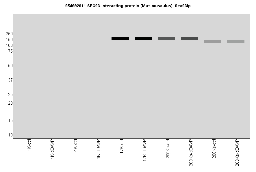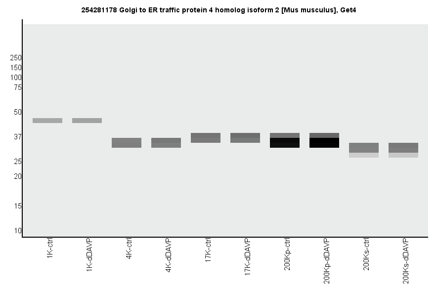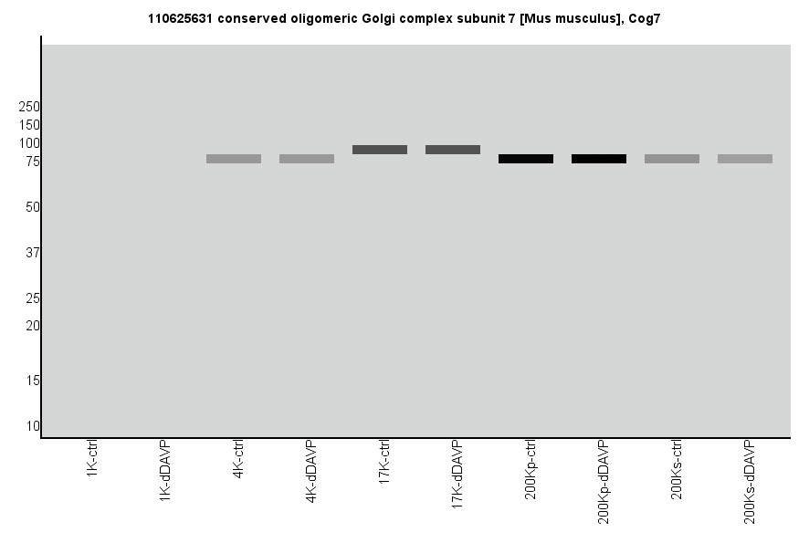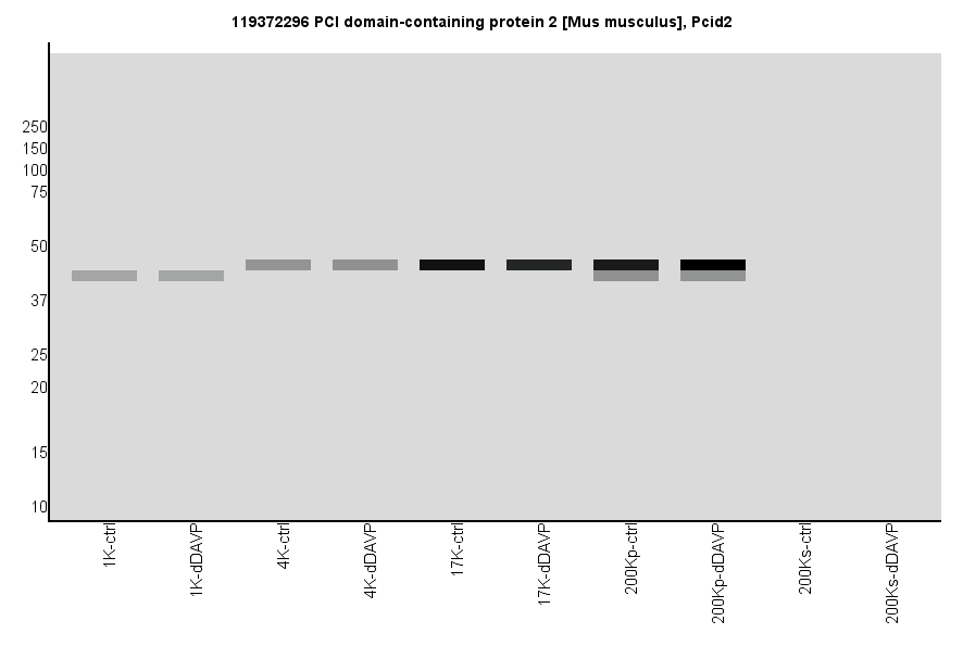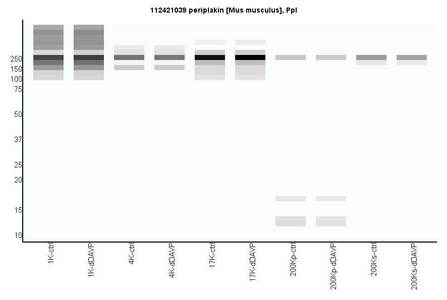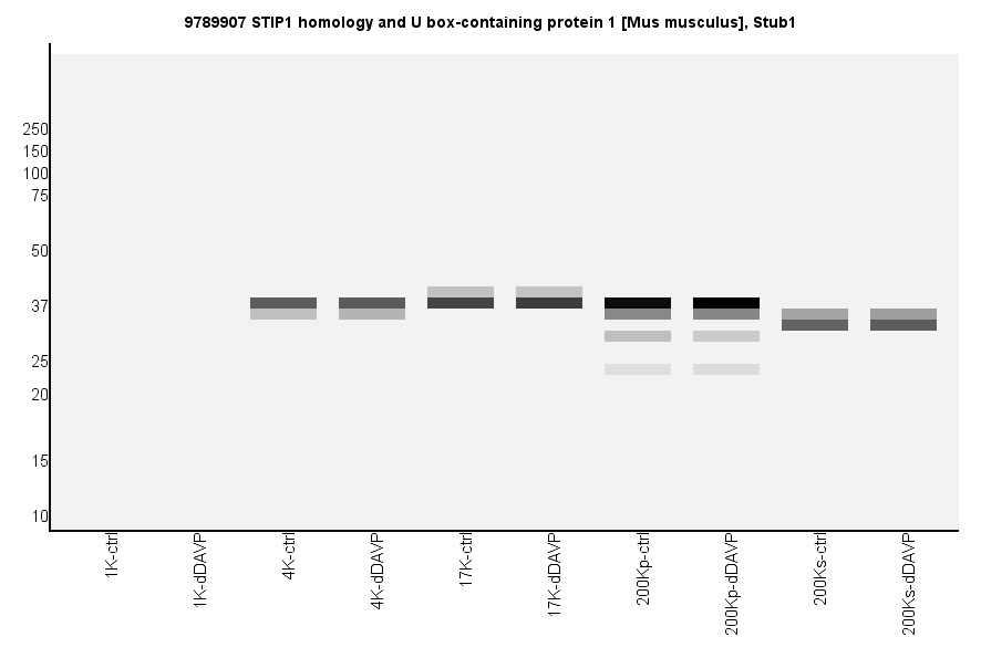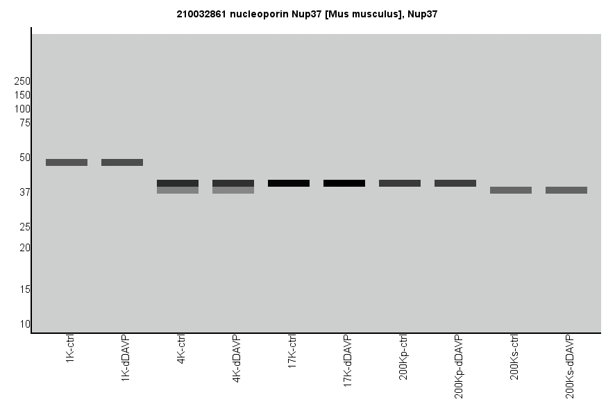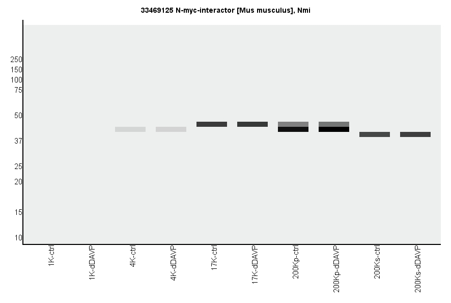 The virtual western blot images show data normalized using a logarithmic conversion scale to map peptide intensities to gray-scale levels. Using this conversion method, low-abundance peptides are generally visible in the blot images. Switch back to the default linear conversion scale database page.