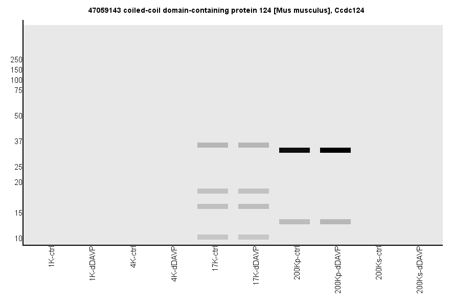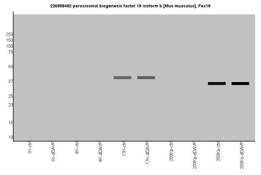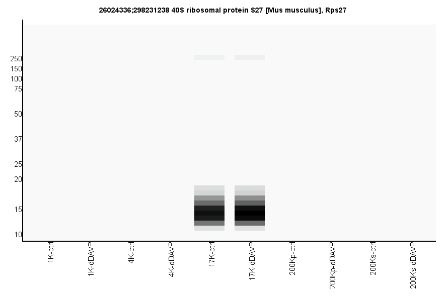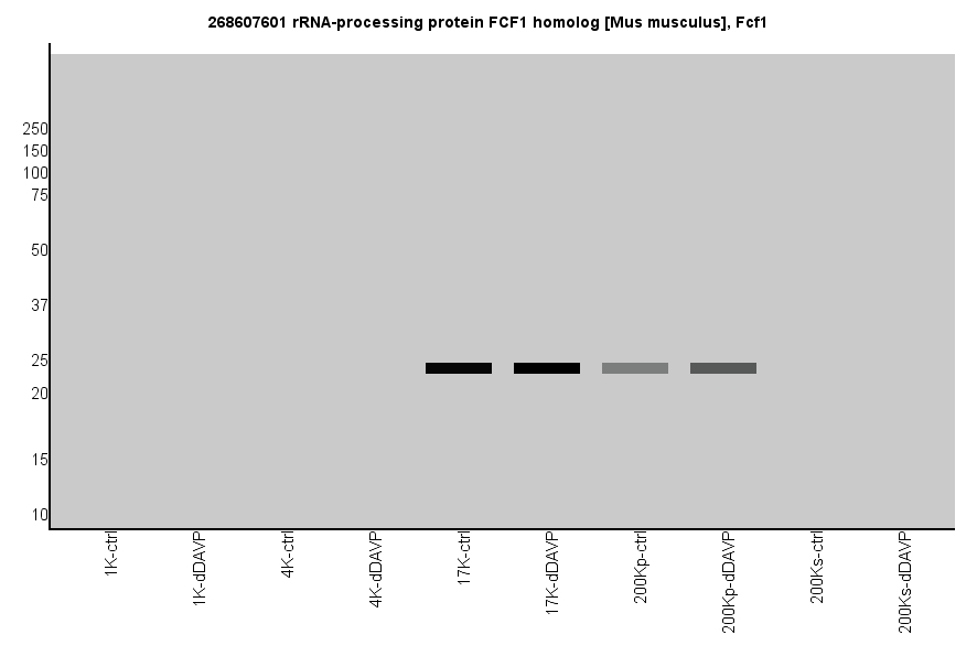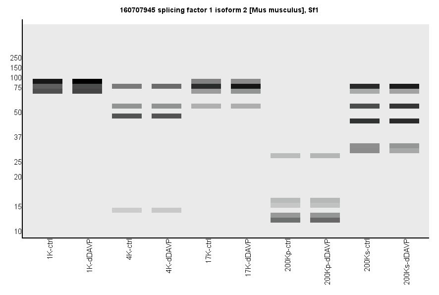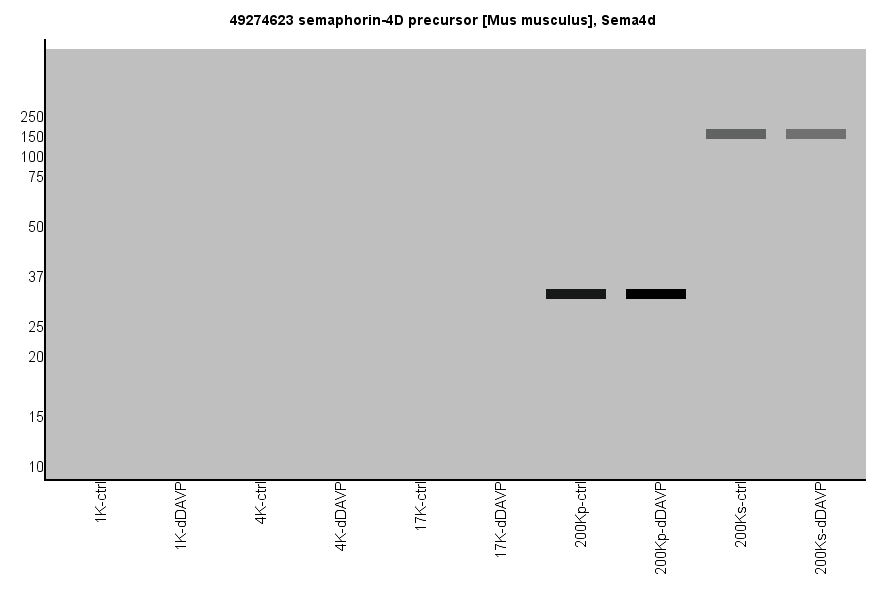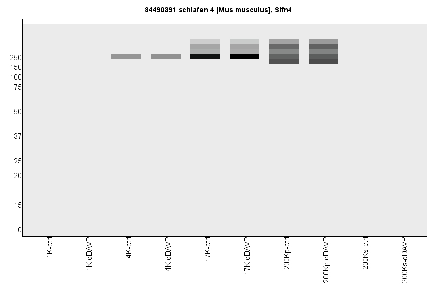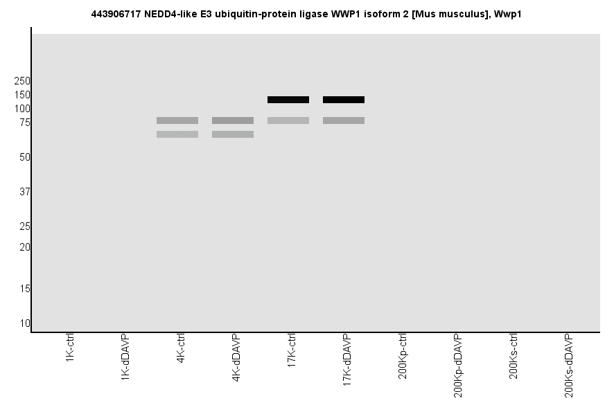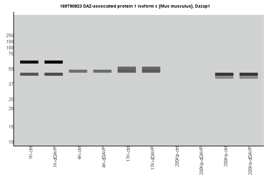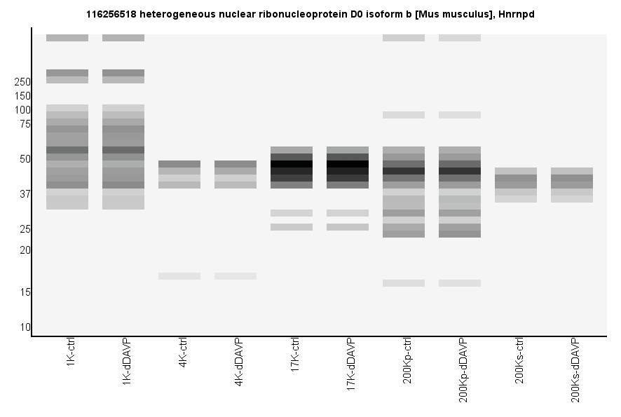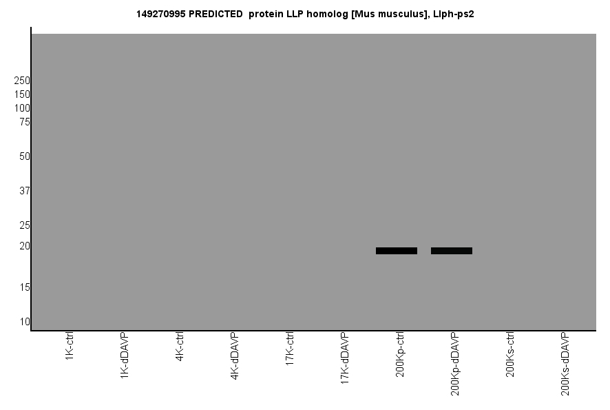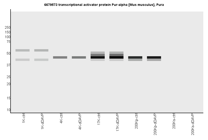 The virtual western blot images show data normalized using a logarithmic conversion scale to map peptide intensities to gray-scale levels. Using this conversion method, low-abundance peptides are generally visible in the blot images. Switch back to the default linear conversion scale database page.