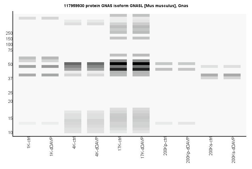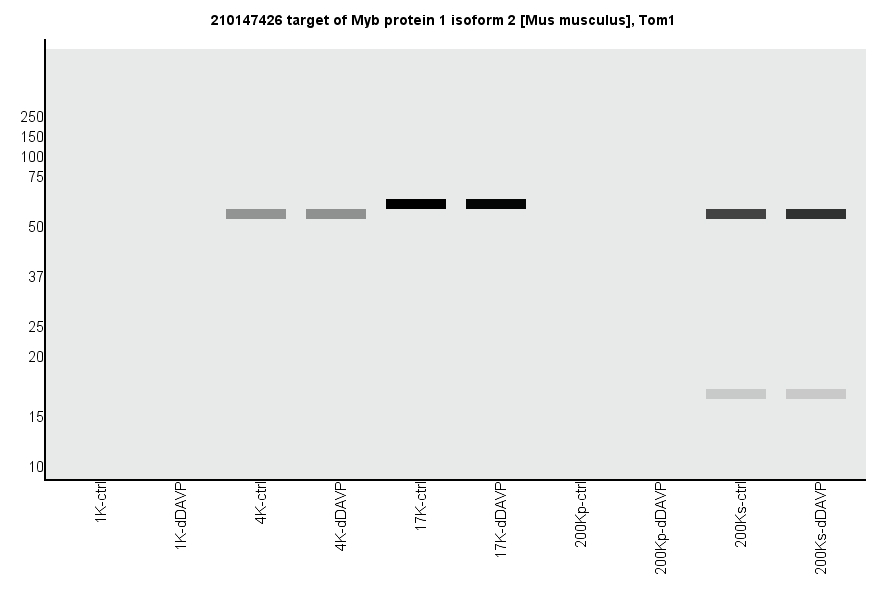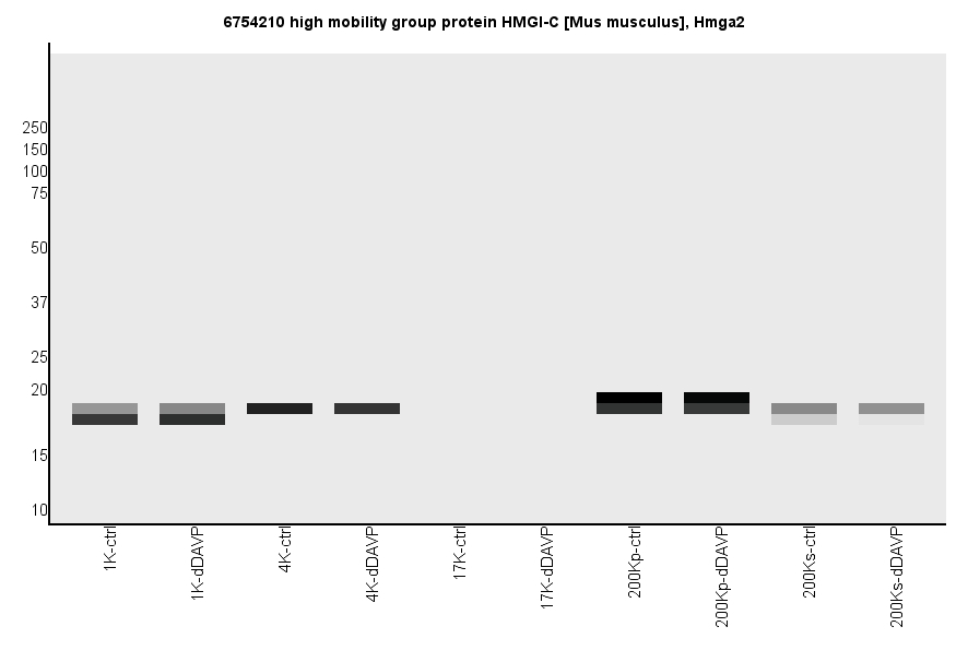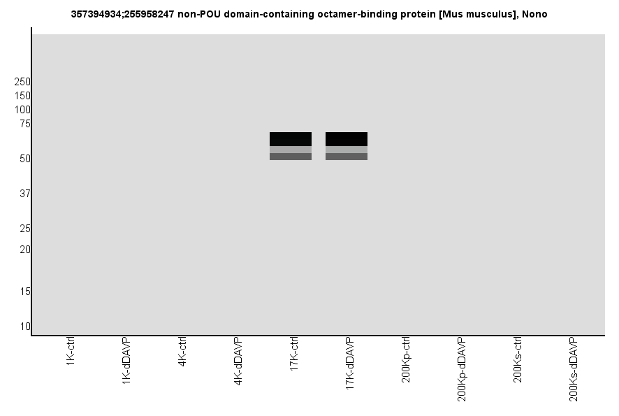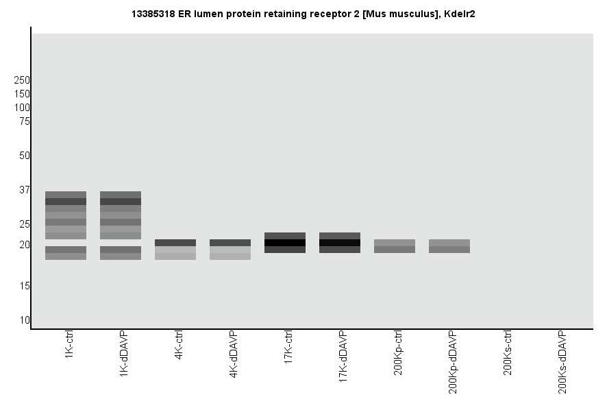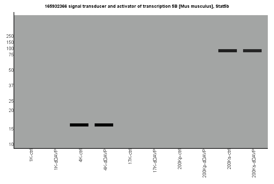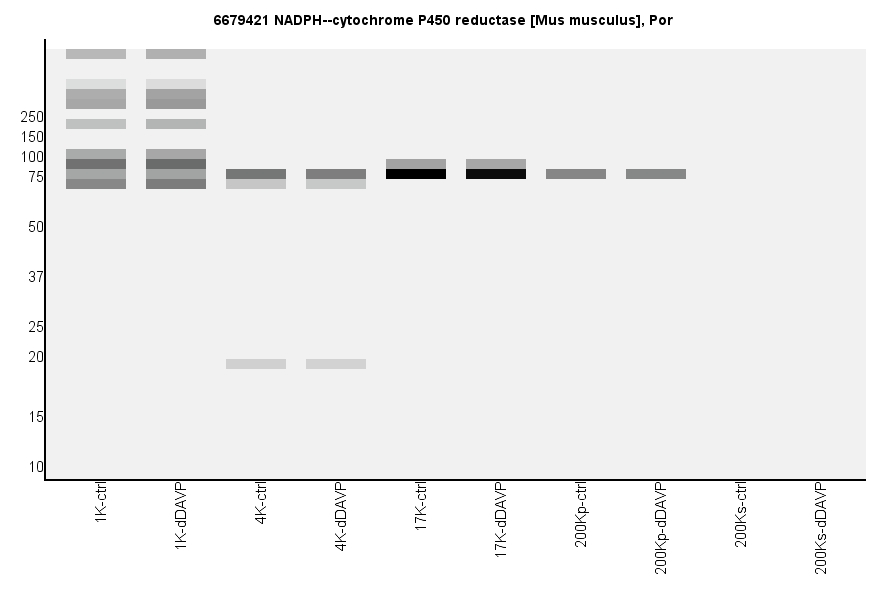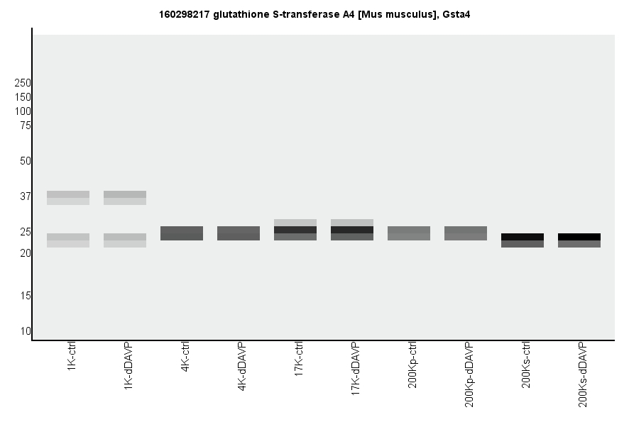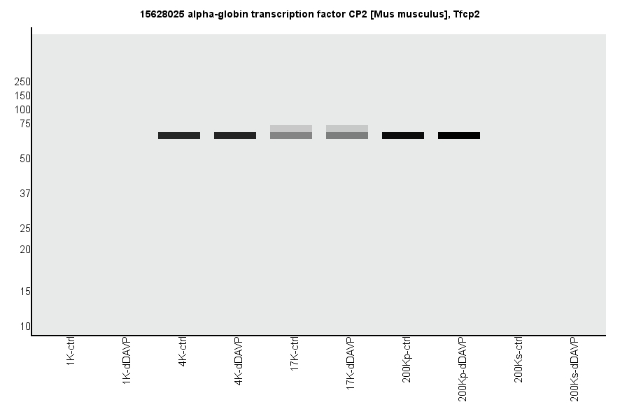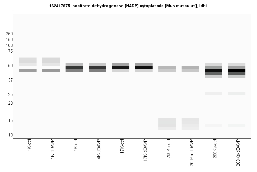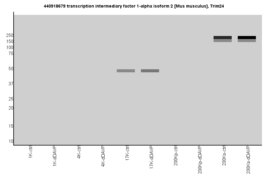 The virtual western blot images show data normalized using a logarithmic conversion scale to map peptide intensities to gray-scale levels. Using this conversion method, low-abundance peptides are generally visible in the blot images. Switch back to the default linear conversion scale database page.