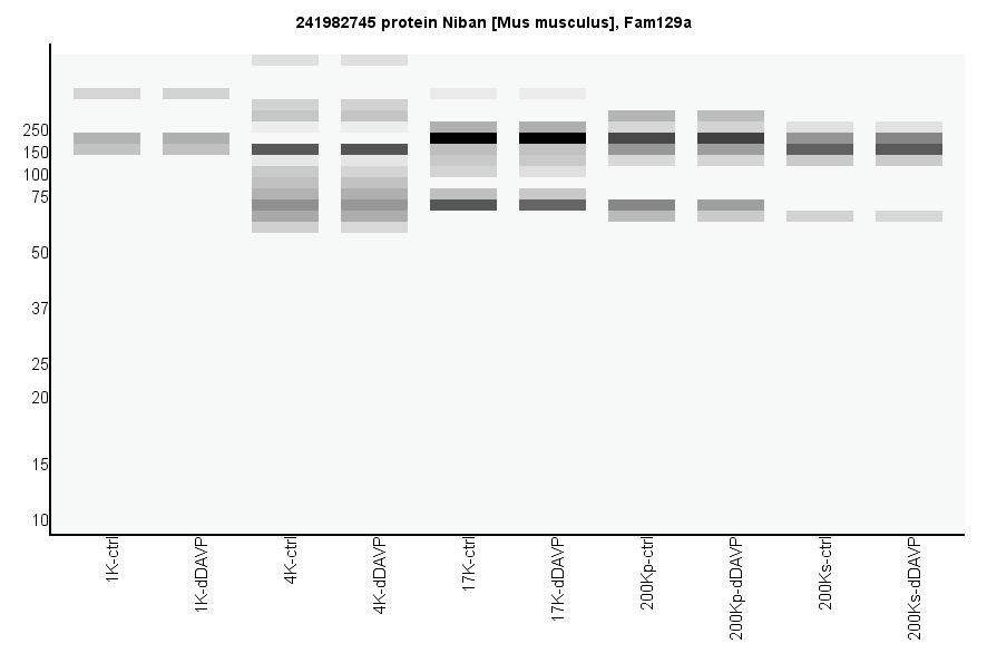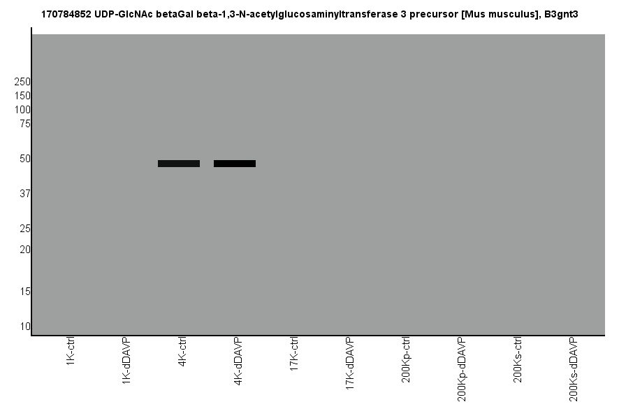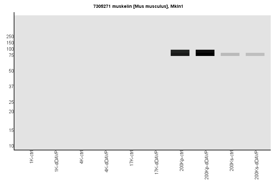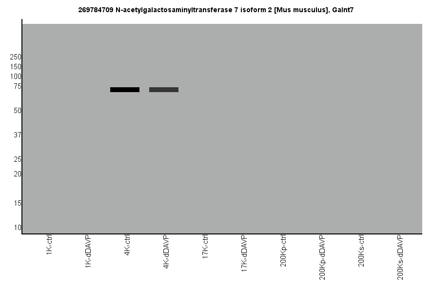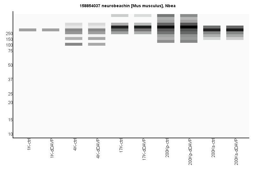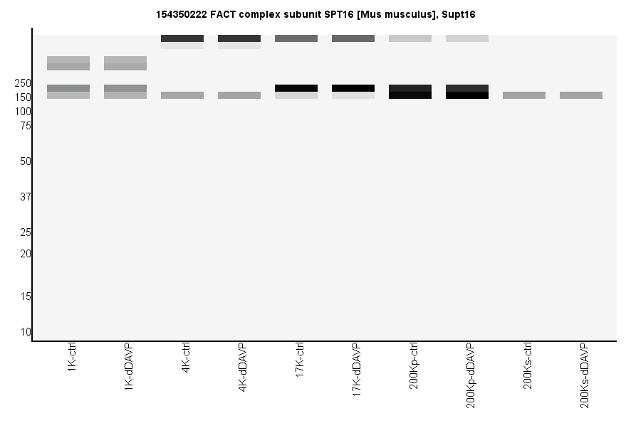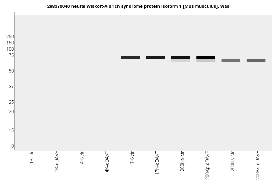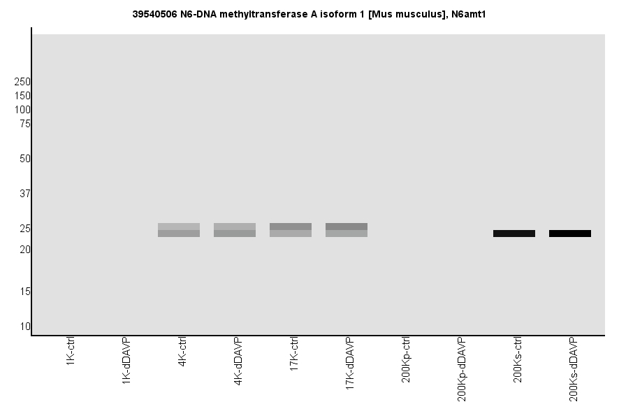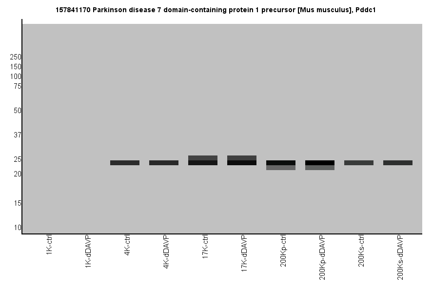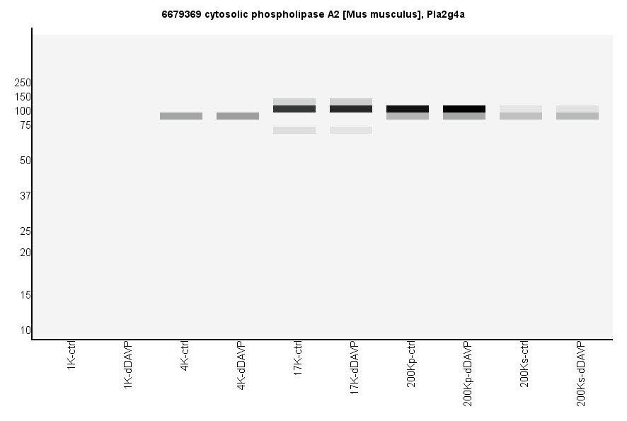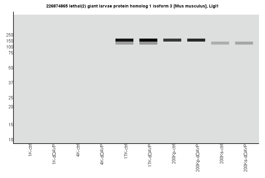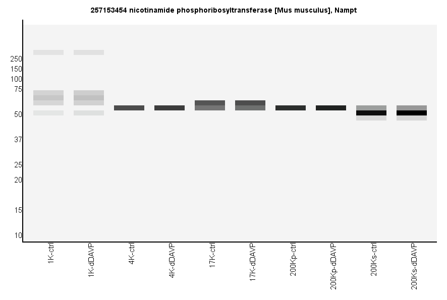 The virtual western blot images show data normalized using a logarithmic conversion scale to map peptide intensities to gray-scale levels. Using this conversion method, low-abundance peptides are generally visible in the blot images. Switch back to the default linear conversion scale database page.