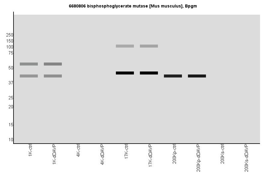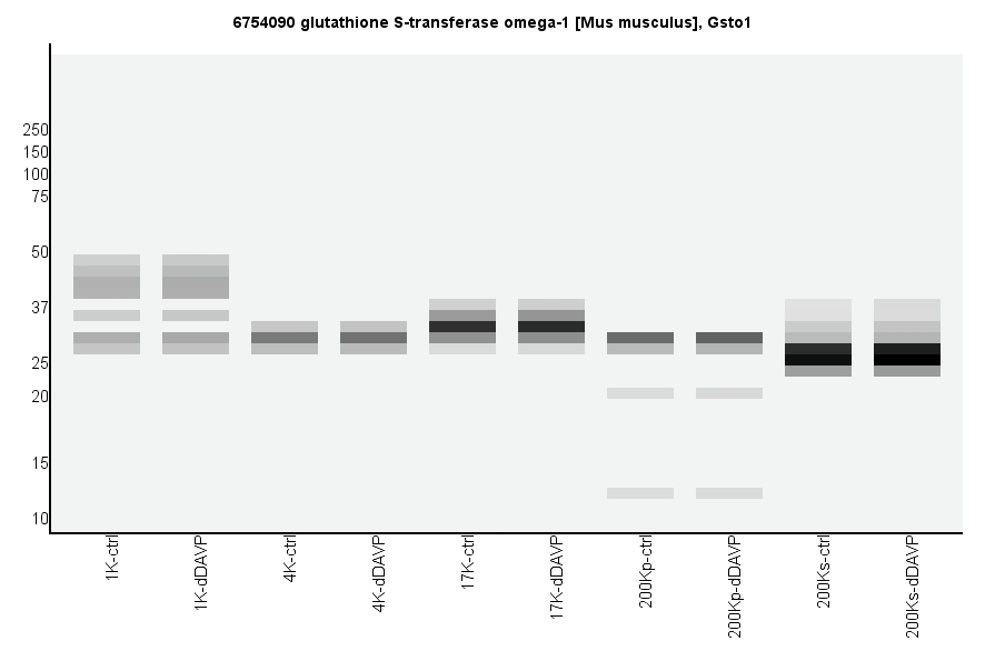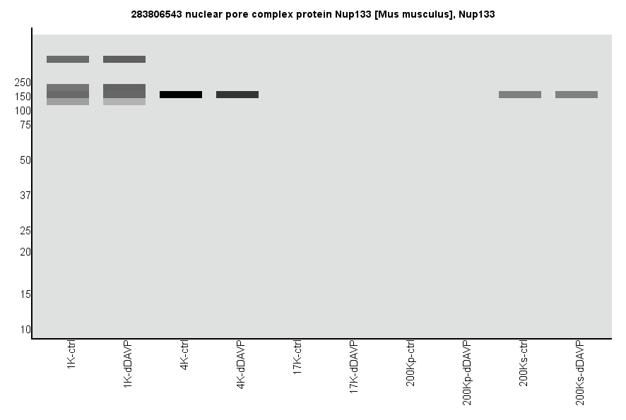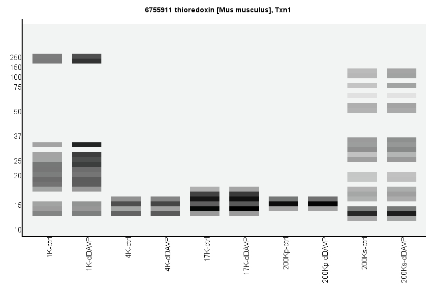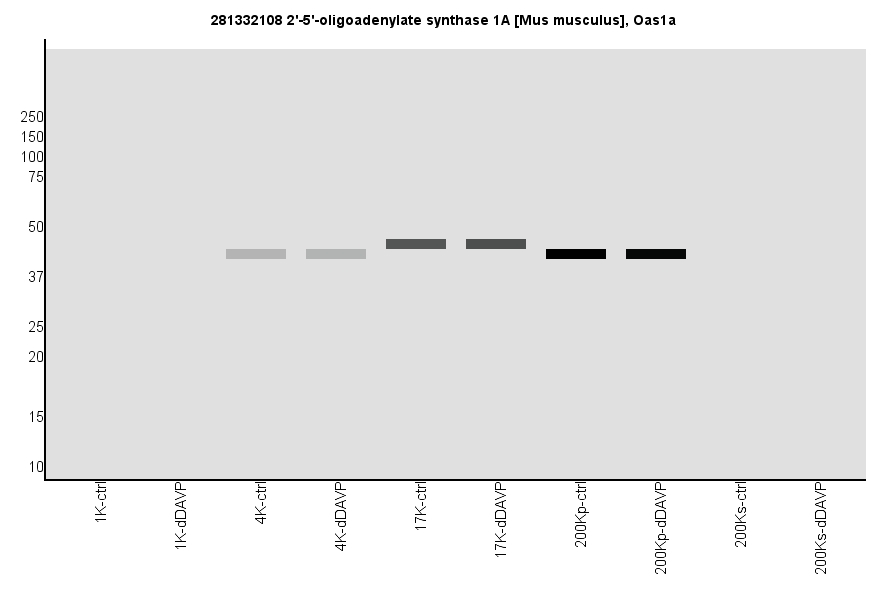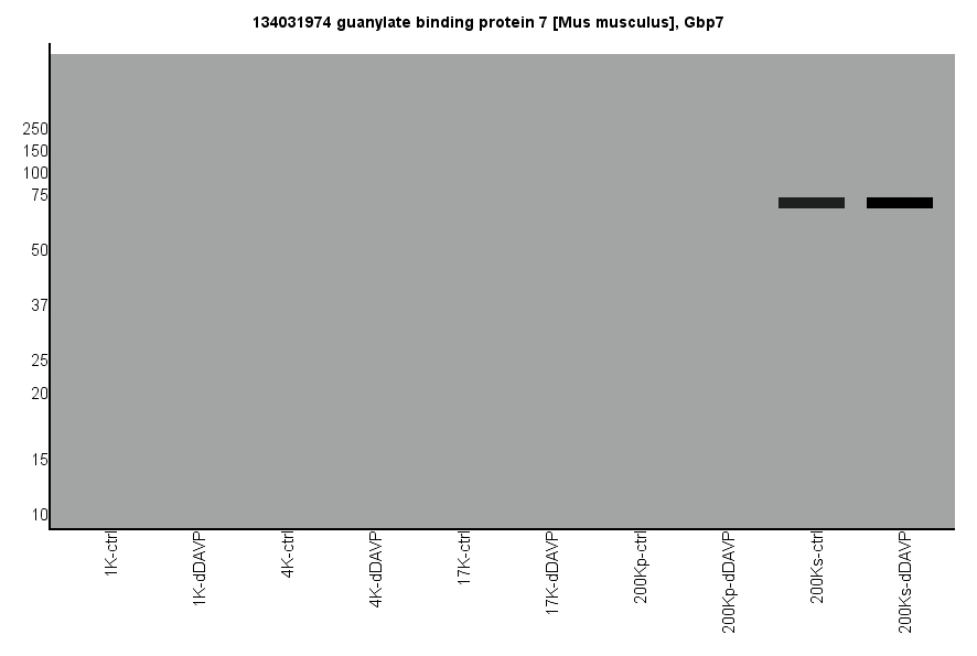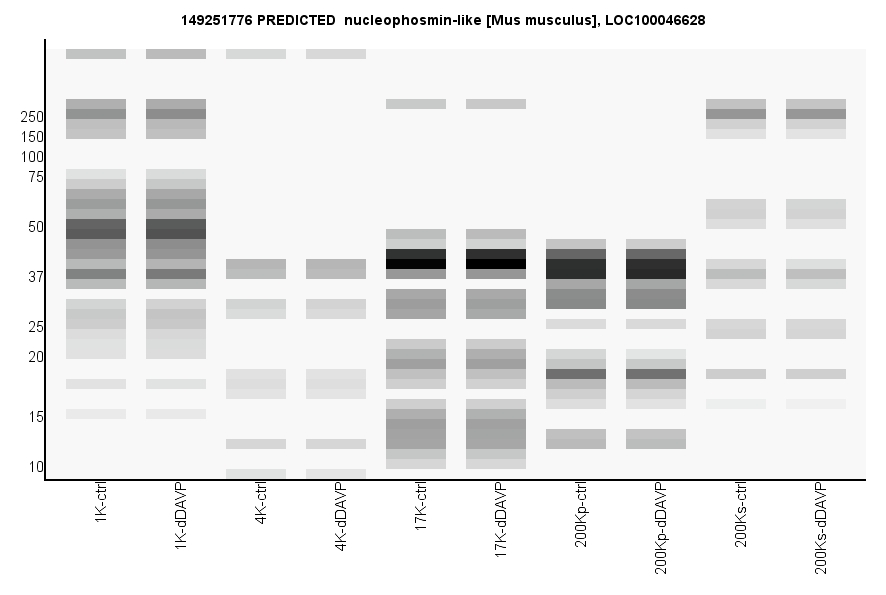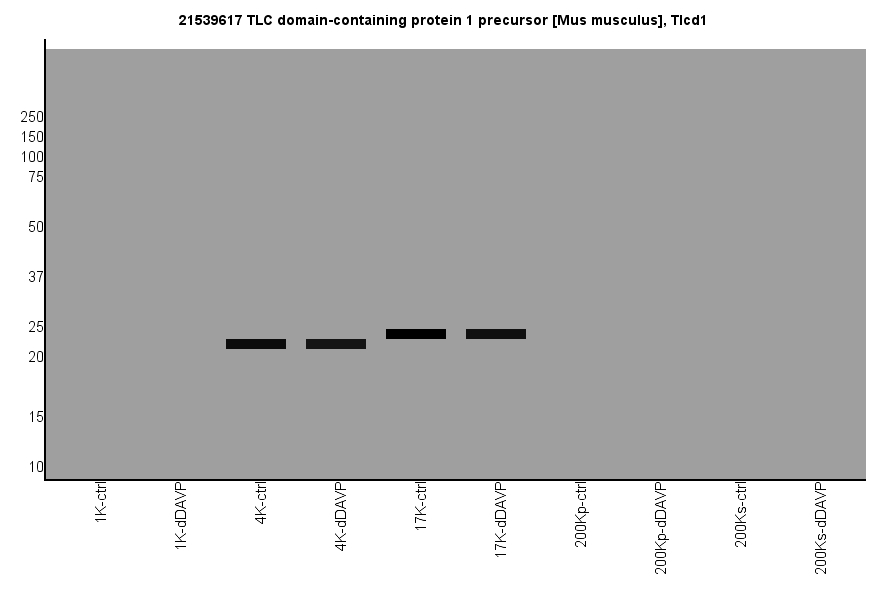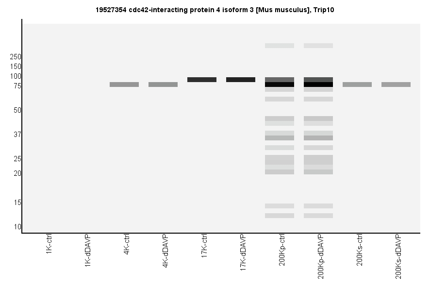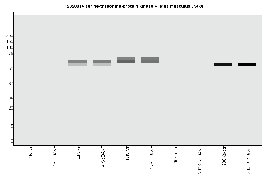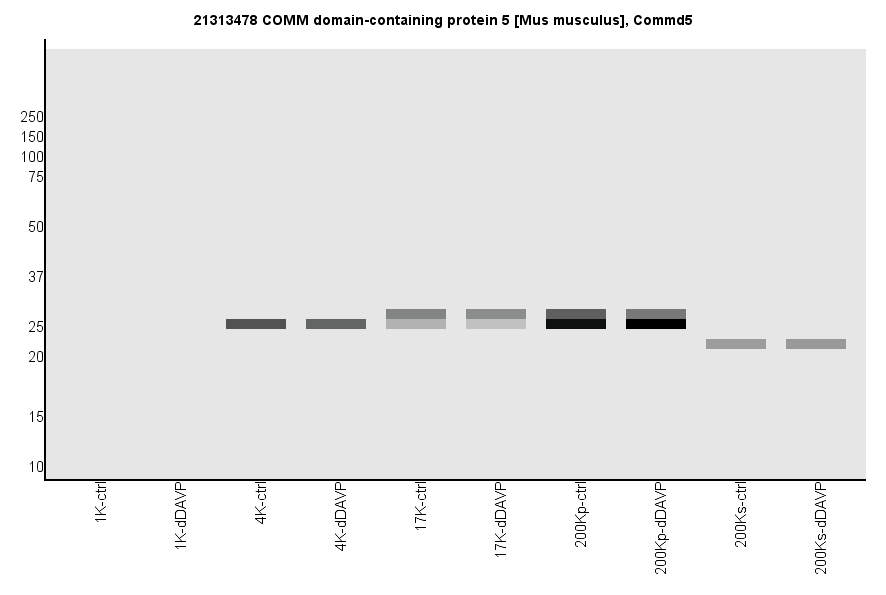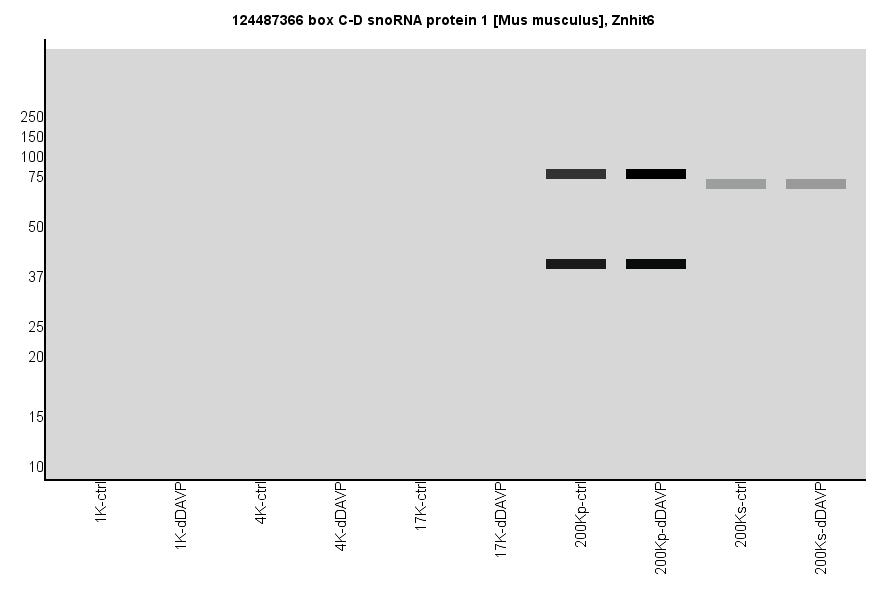 The virtual western blot images show data normalized using a logarithmic conversion scale to map peptide intensities to gray-scale levels. Using this conversion method, low-abundance peptides are generally visible in the blot images. Switch back to the default linear conversion scale database page.