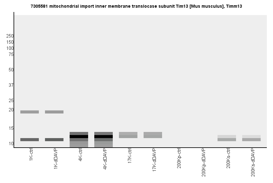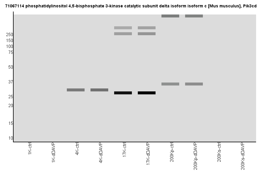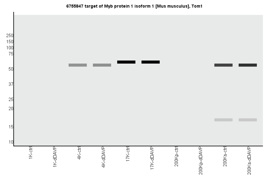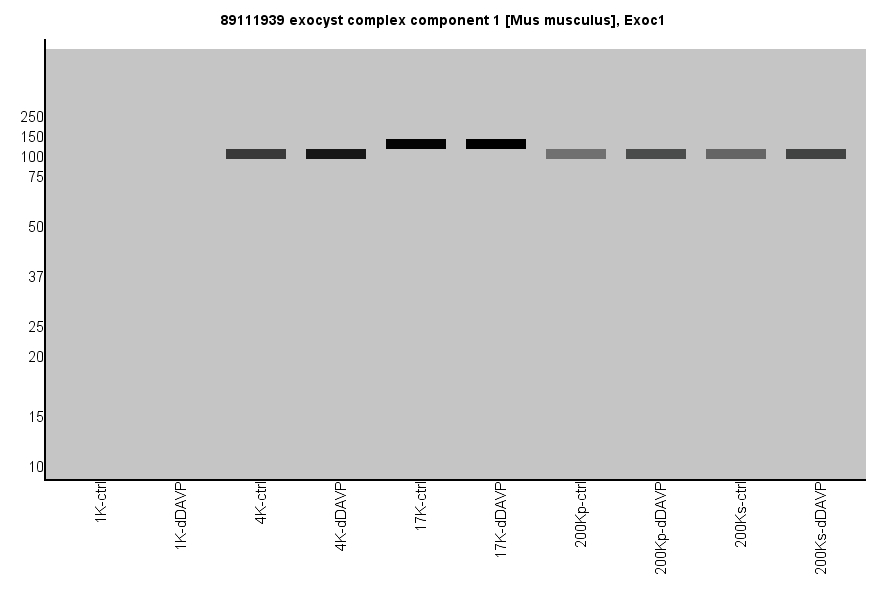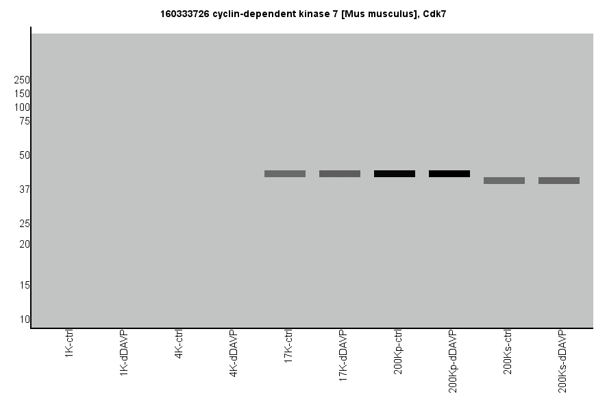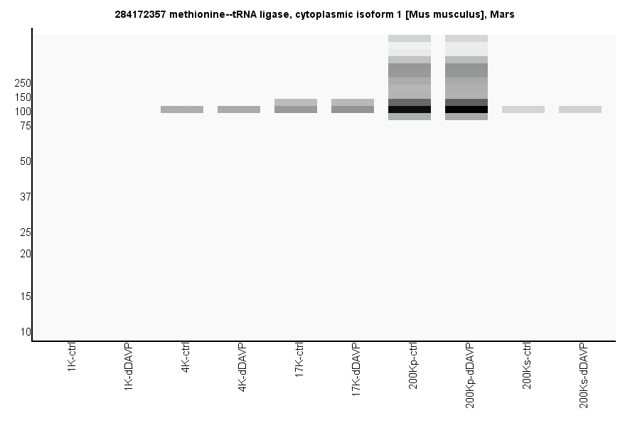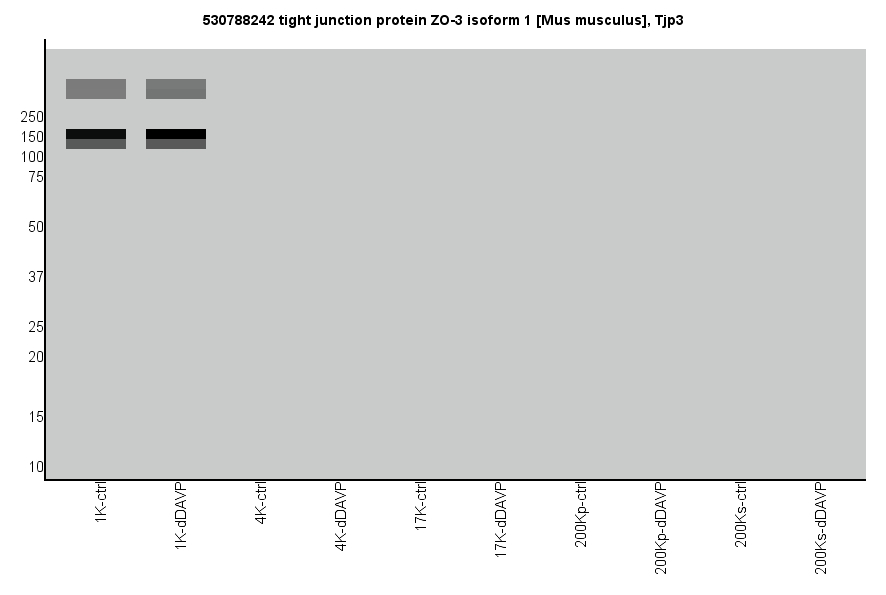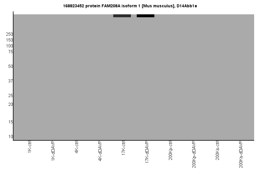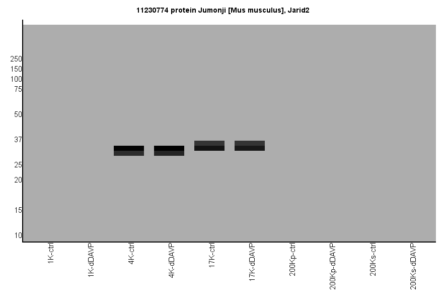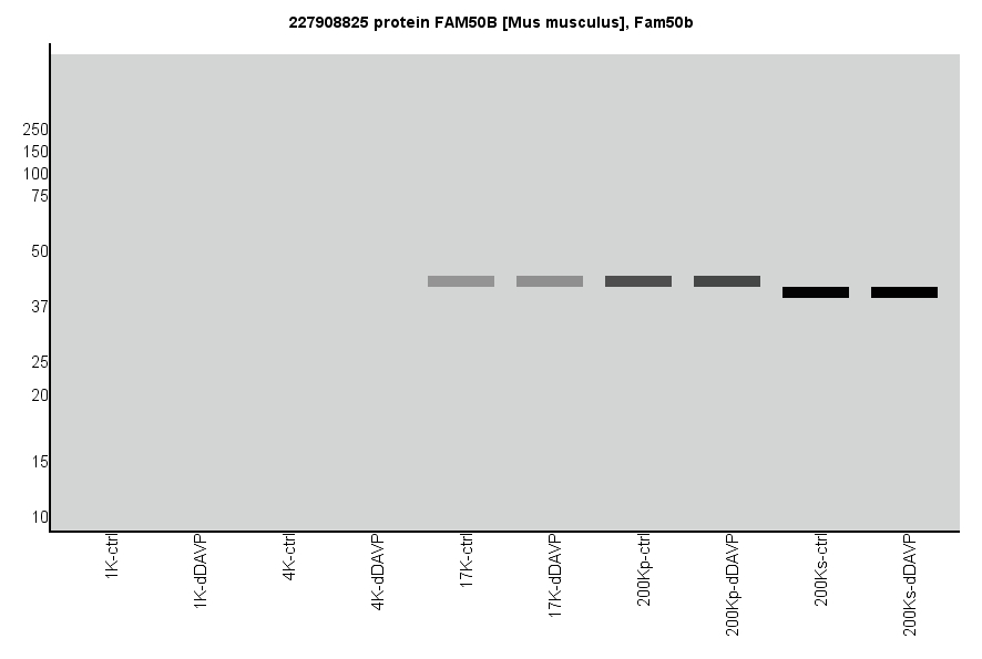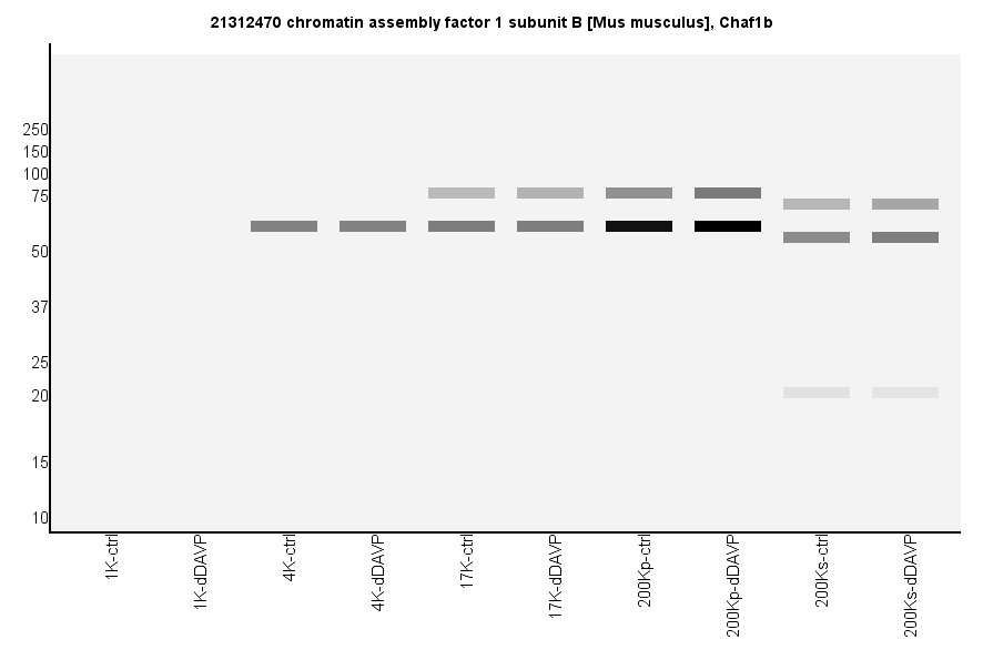 The virtual western blot images show data normalized using a logarithmic conversion scale to map peptide intensities to gray-scale levels. Using this conversion method, low-abundance peptides are generally visible in the blot images. Switch back to the default linear conversion scale database page.