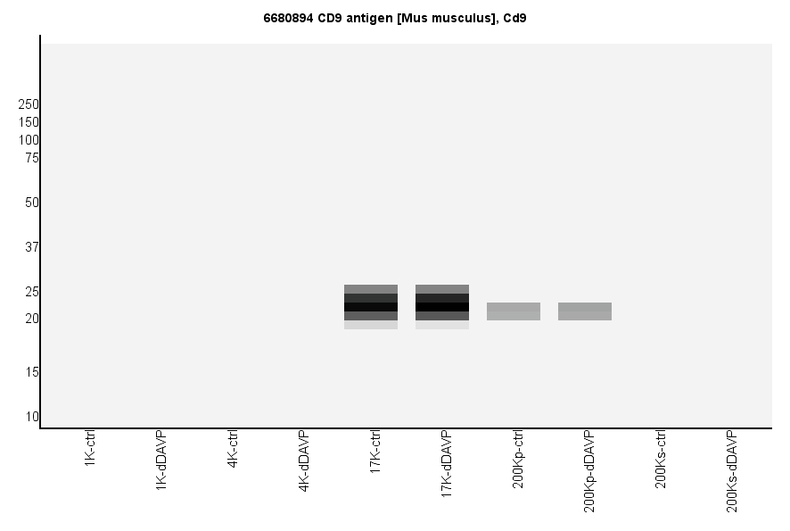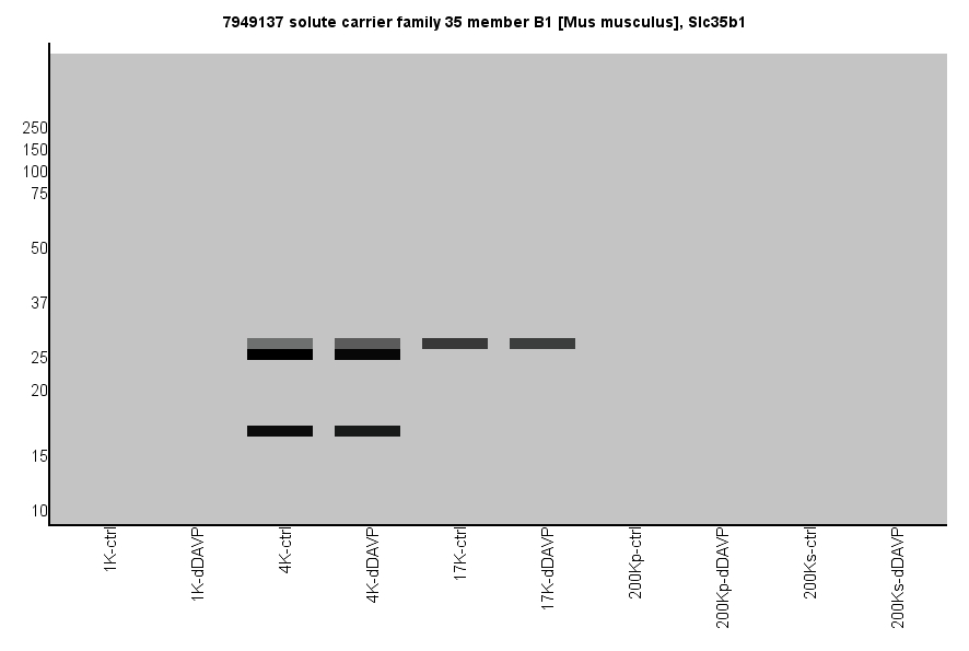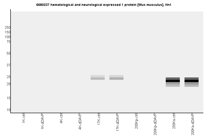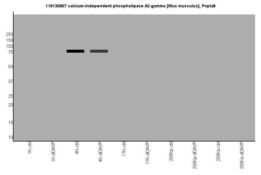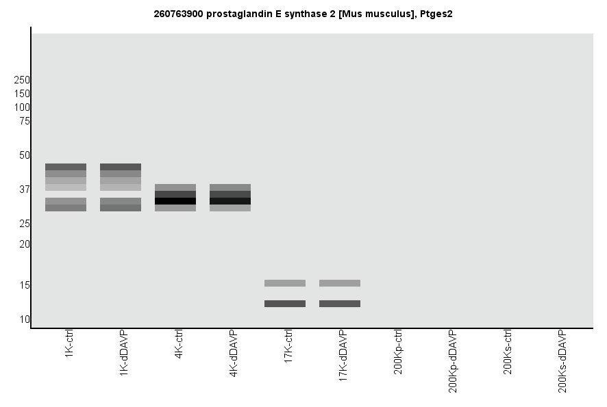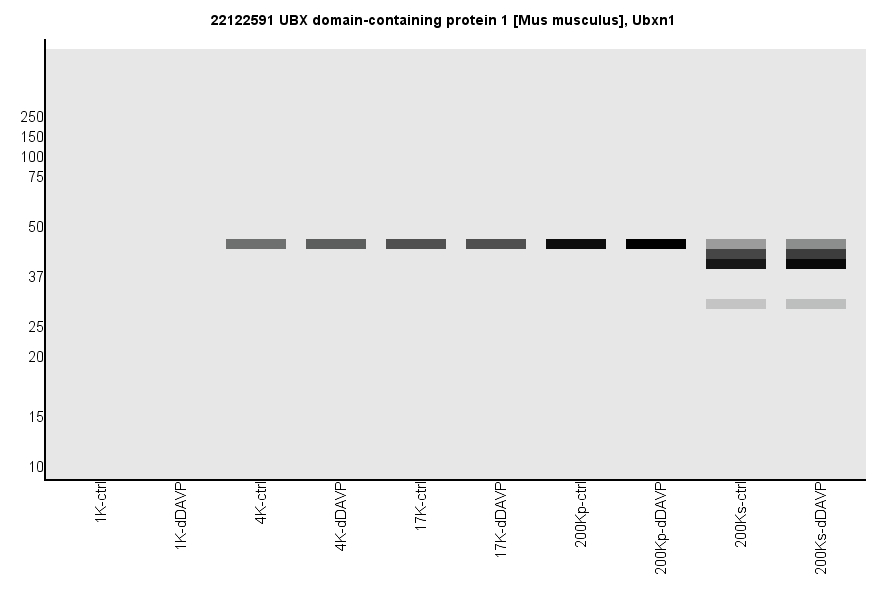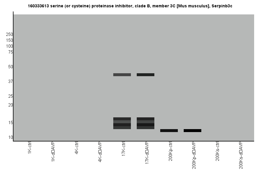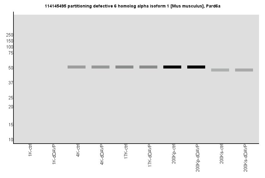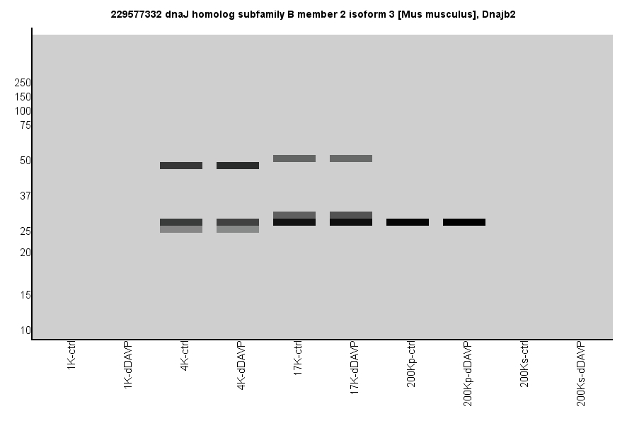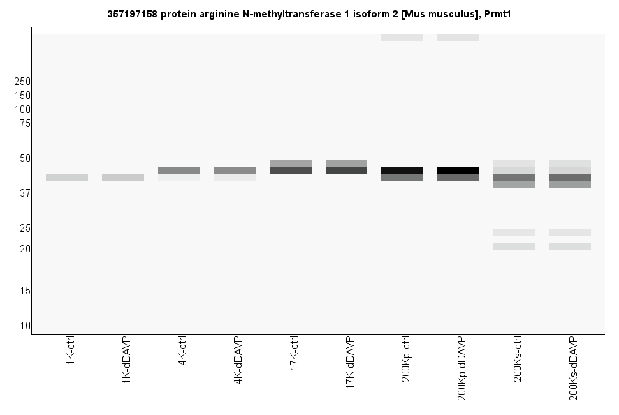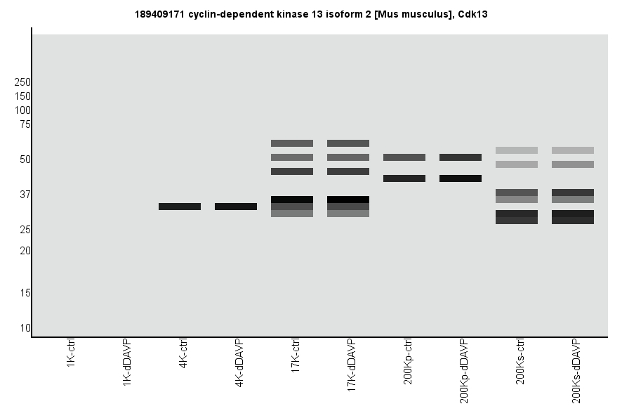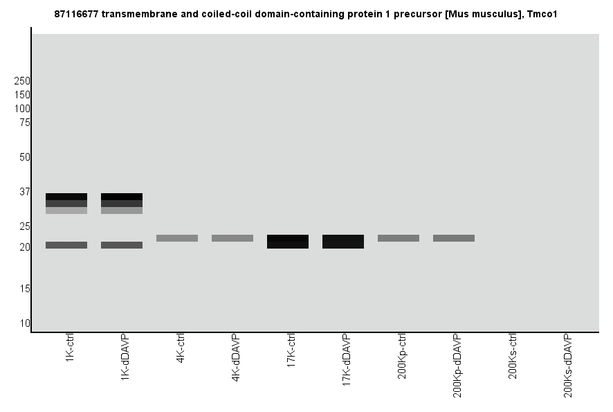 The virtual western blot images show data normalized using a logarithmic conversion scale to map peptide intensities to gray-scale levels. Using this conversion method, low-abundance peptides are generally visible in the blot images. Switch back to the default linear conversion scale database page.