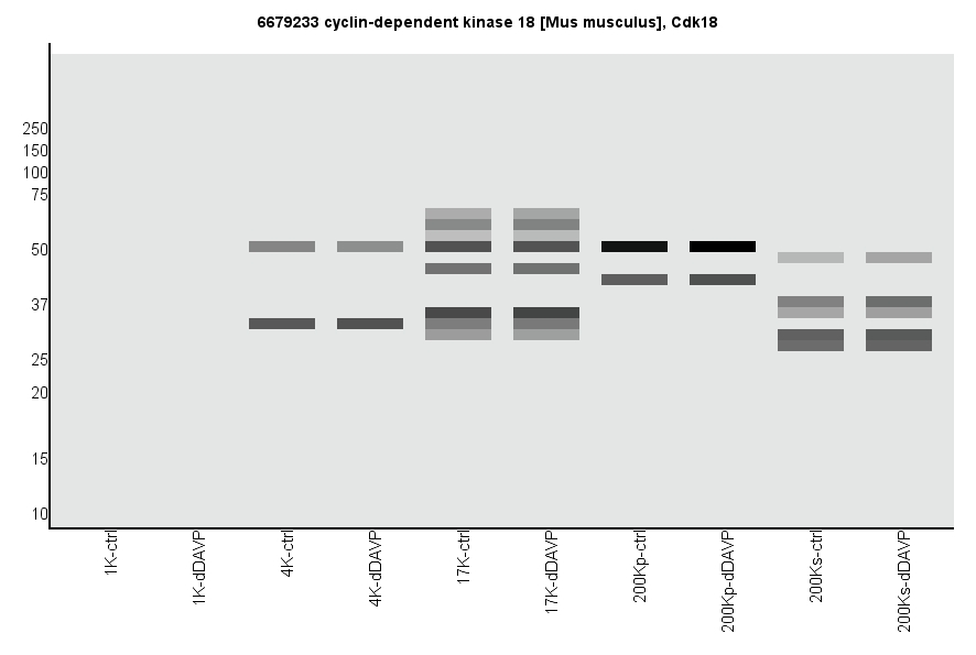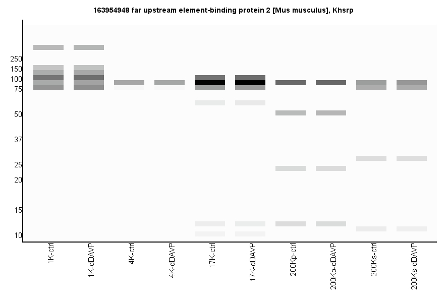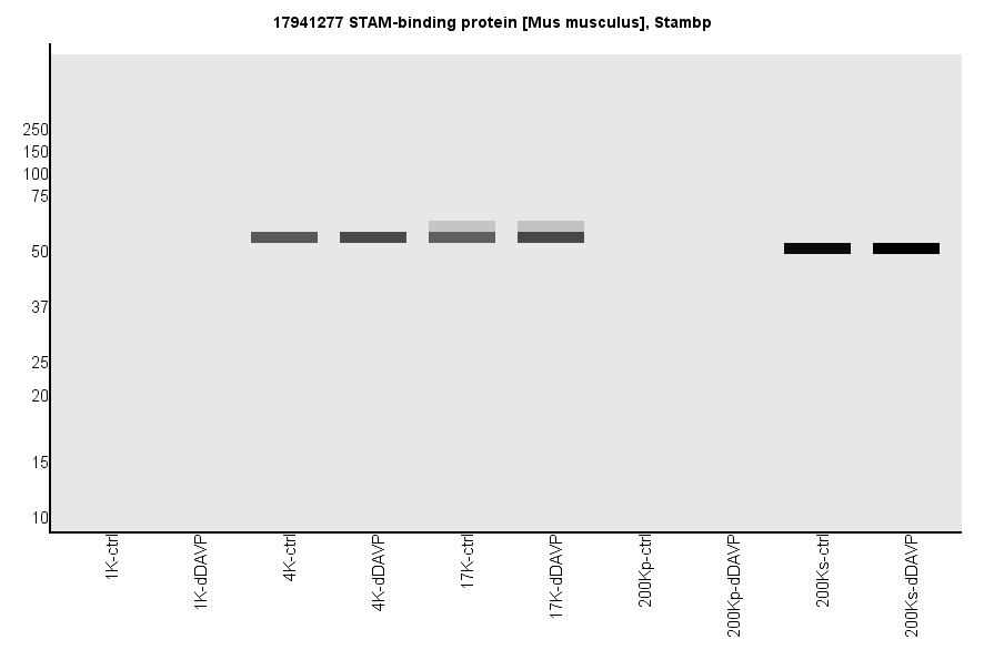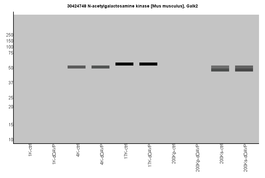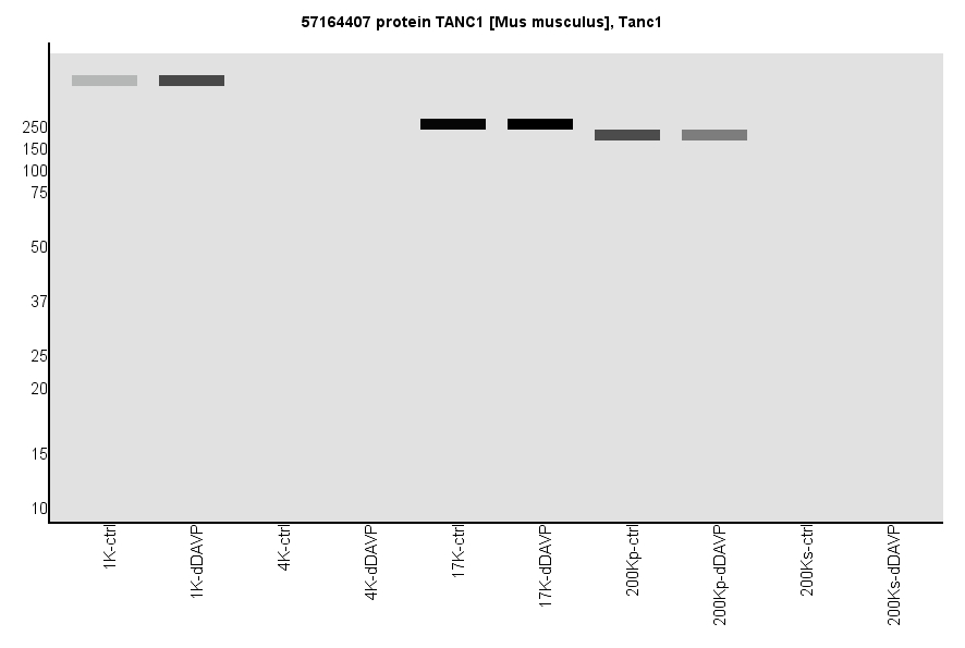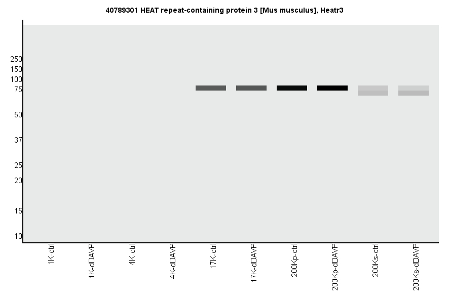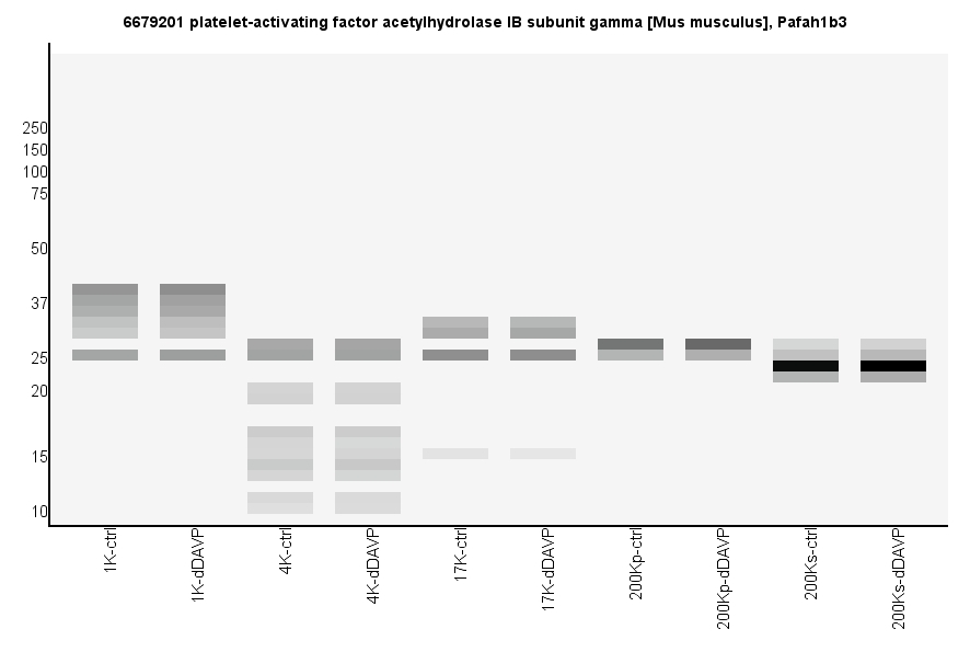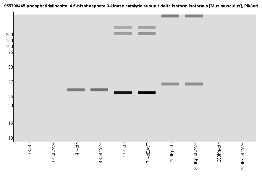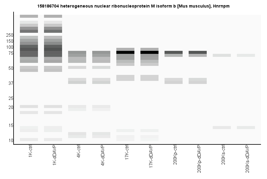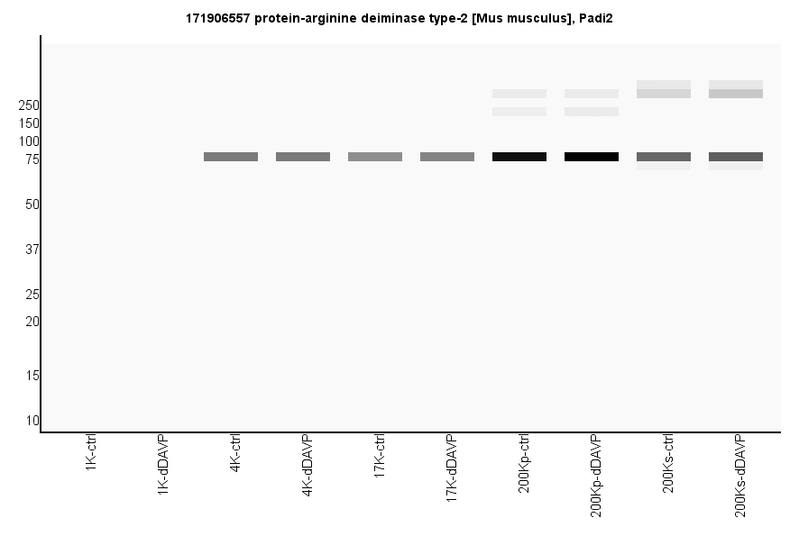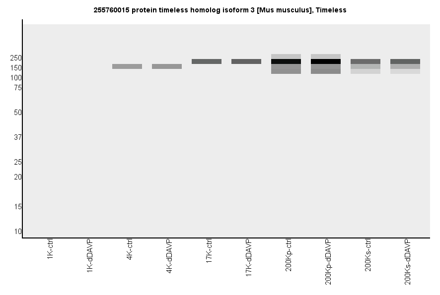 The virtual western blot images show data normalized using a logarithmic conversion scale to map peptide intensities to gray-scale levels. Using this conversion method, low-abundance peptides are generally visible in the blot images. Switch back to the default linear conversion scale database page.