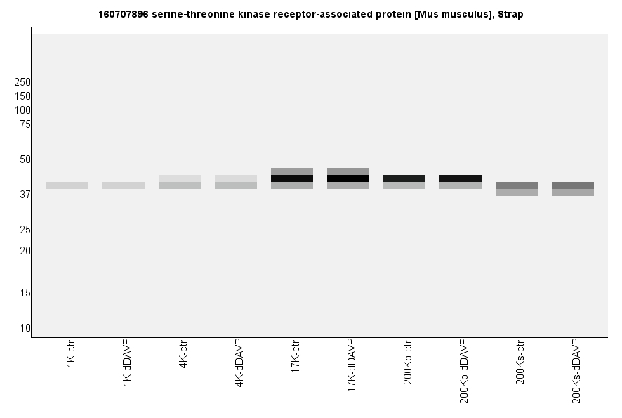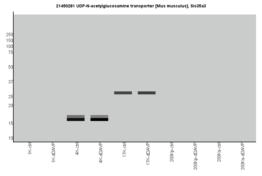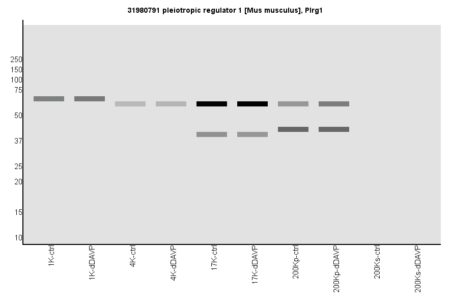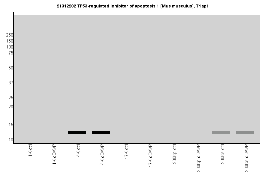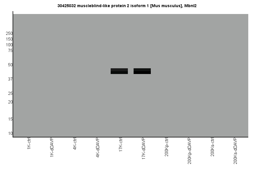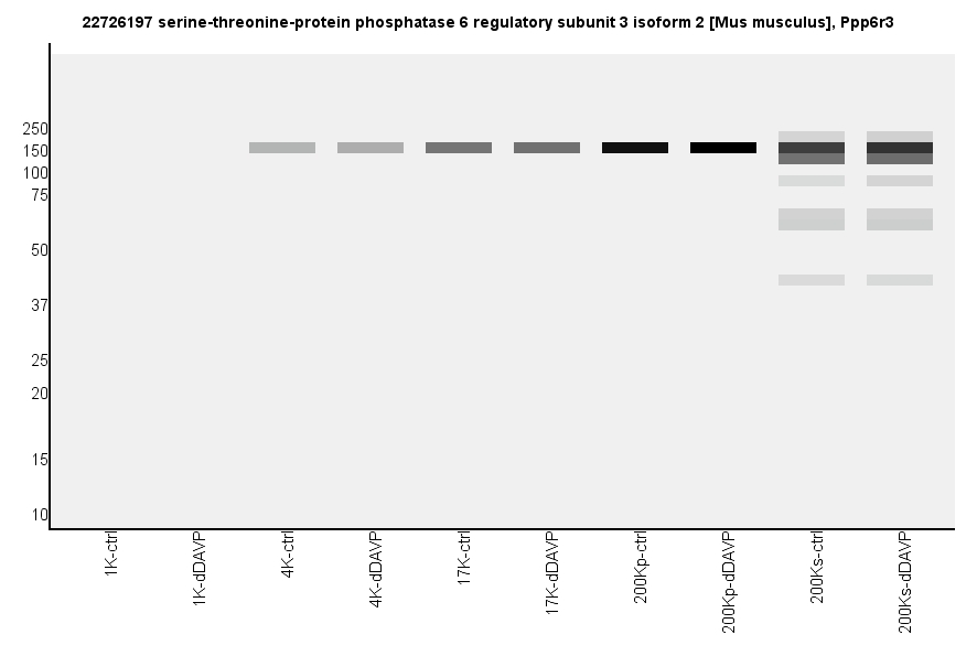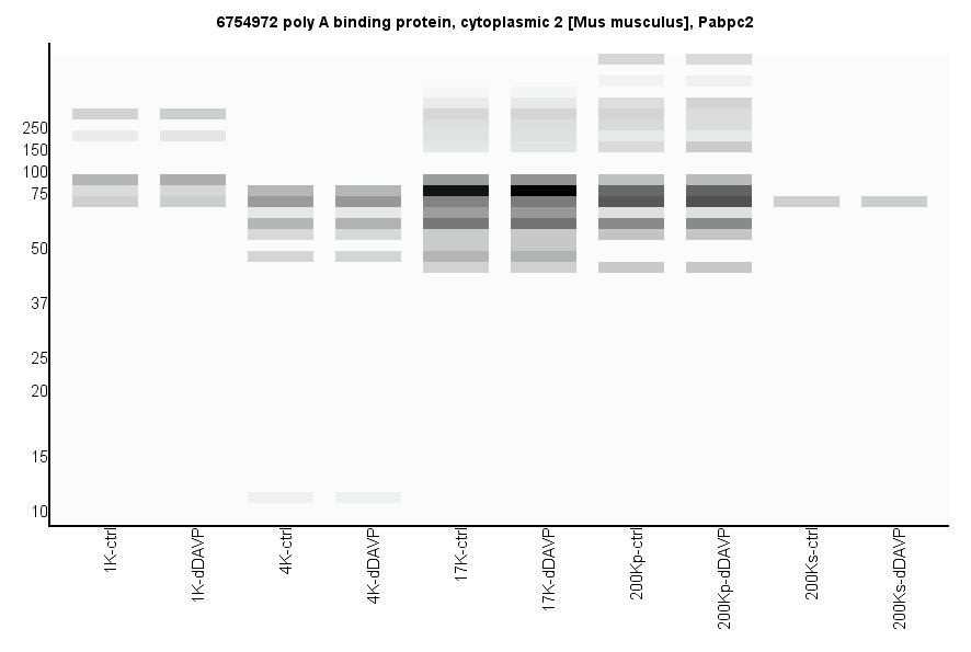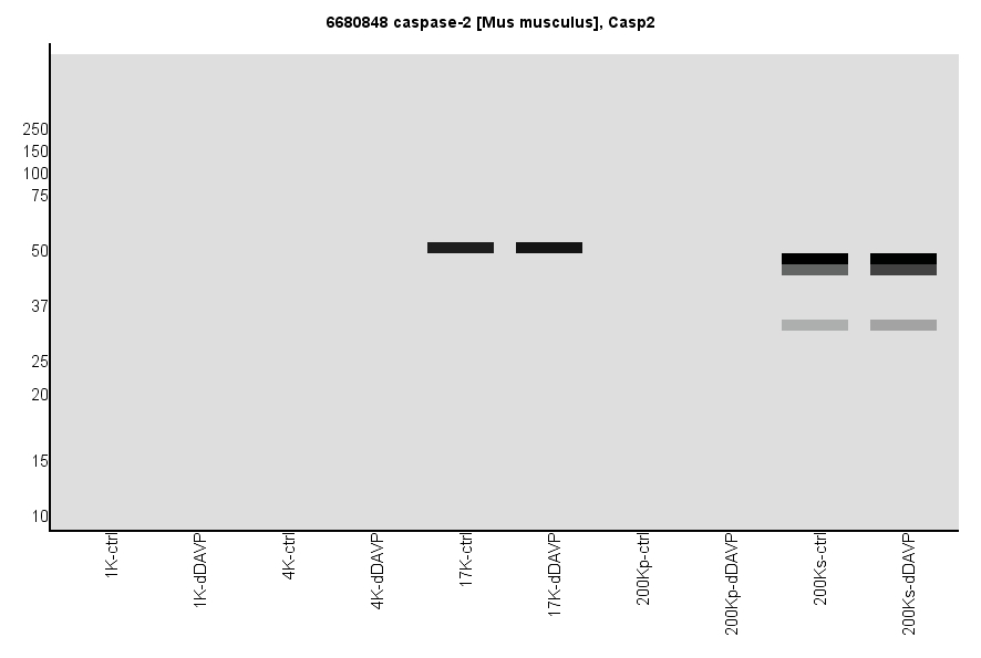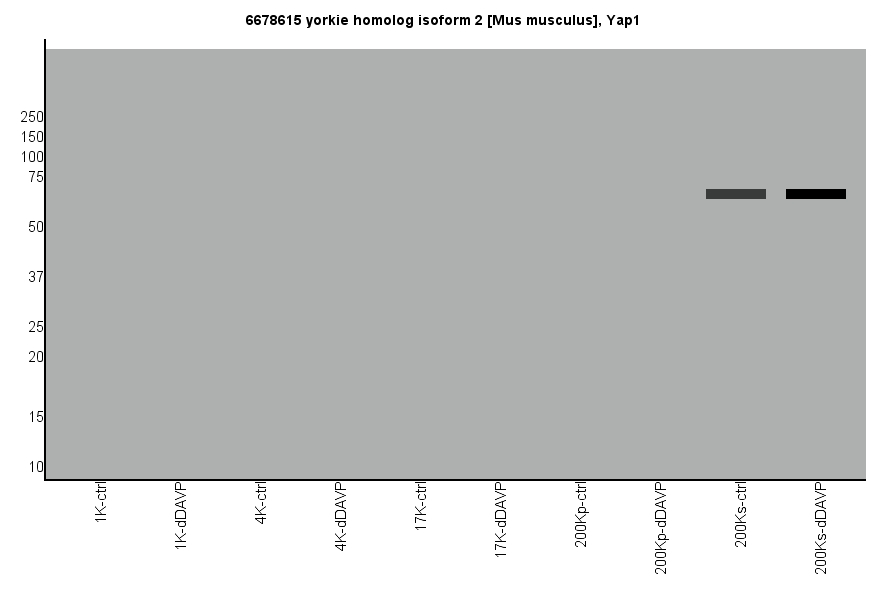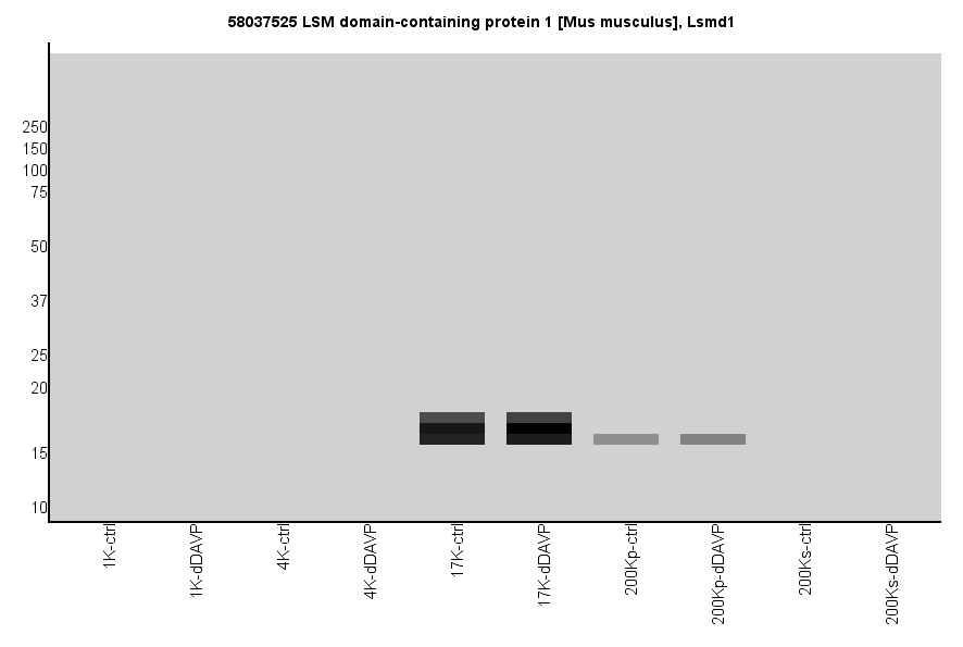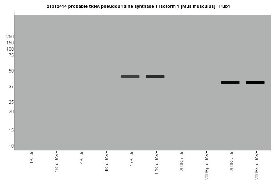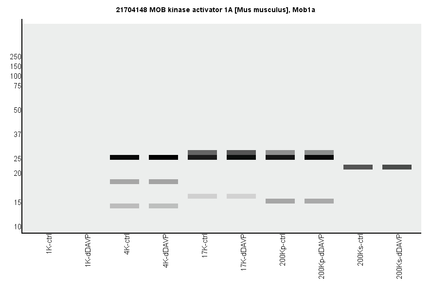 The virtual western blot images show data normalized using a logarithmic conversion scale to map peptide intensities to gray-scale levels. Using this conversion method, low-abundance peptides are generally visible in the blot images. Switch back to the default linear conversion scale database page.