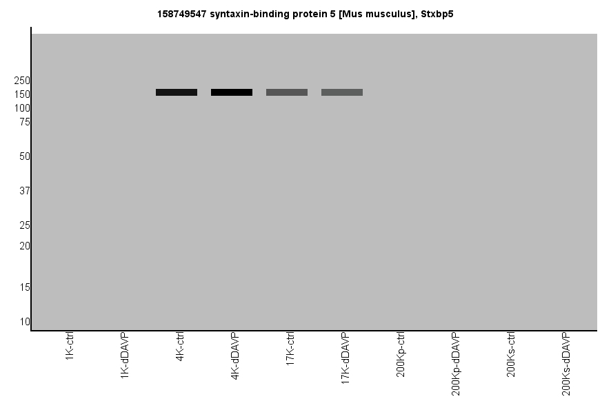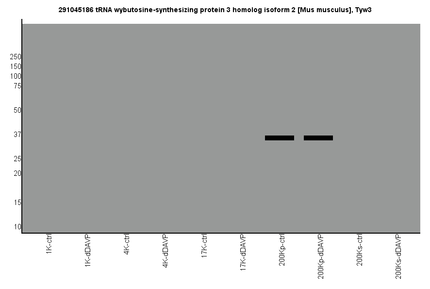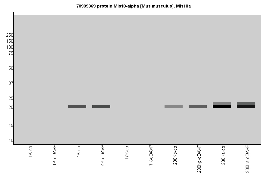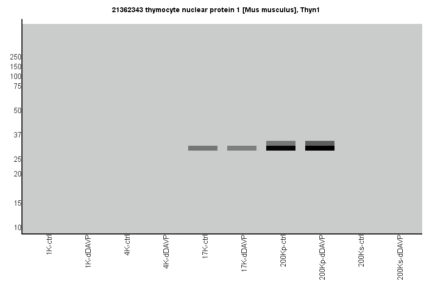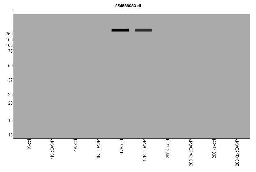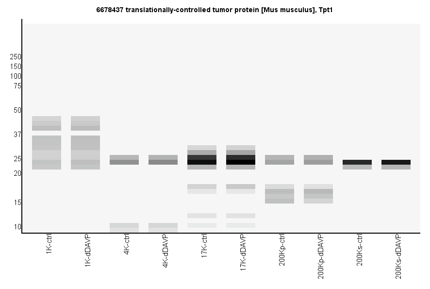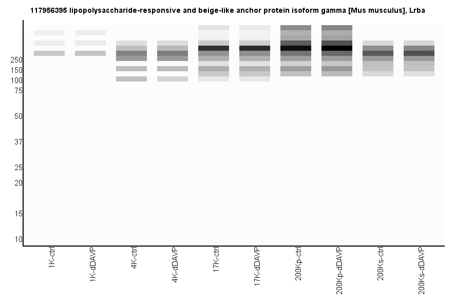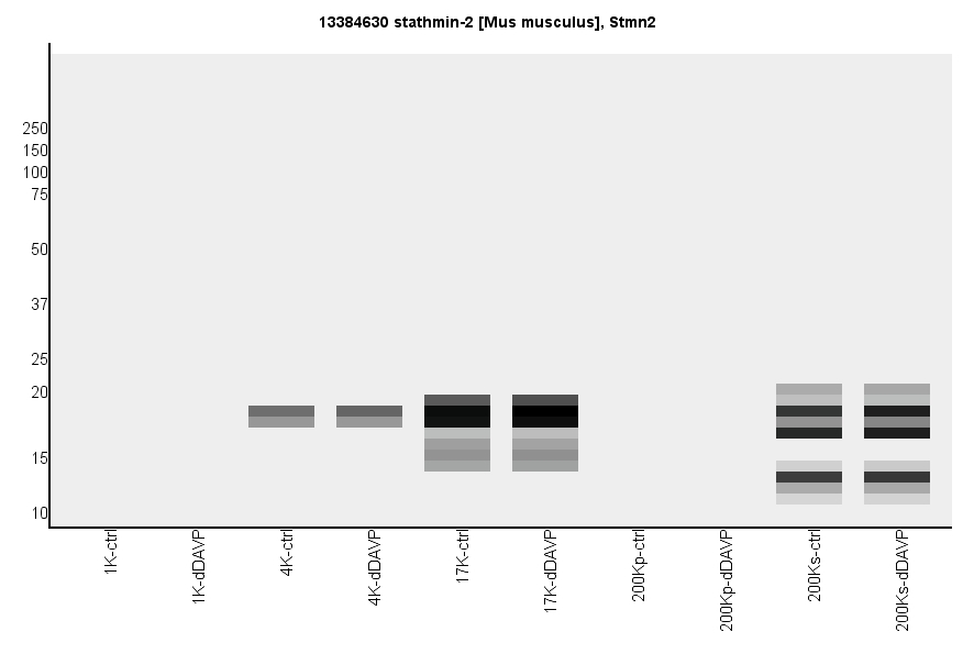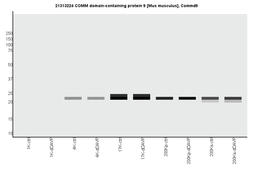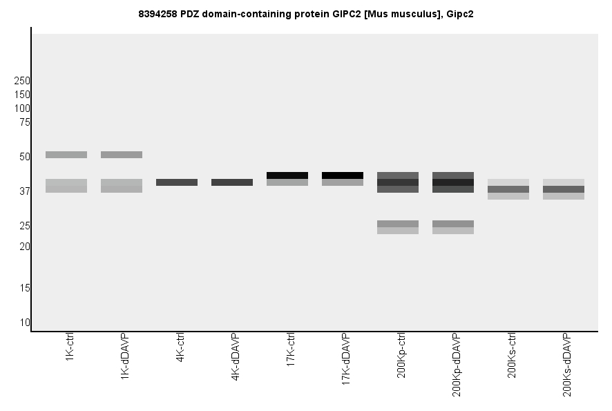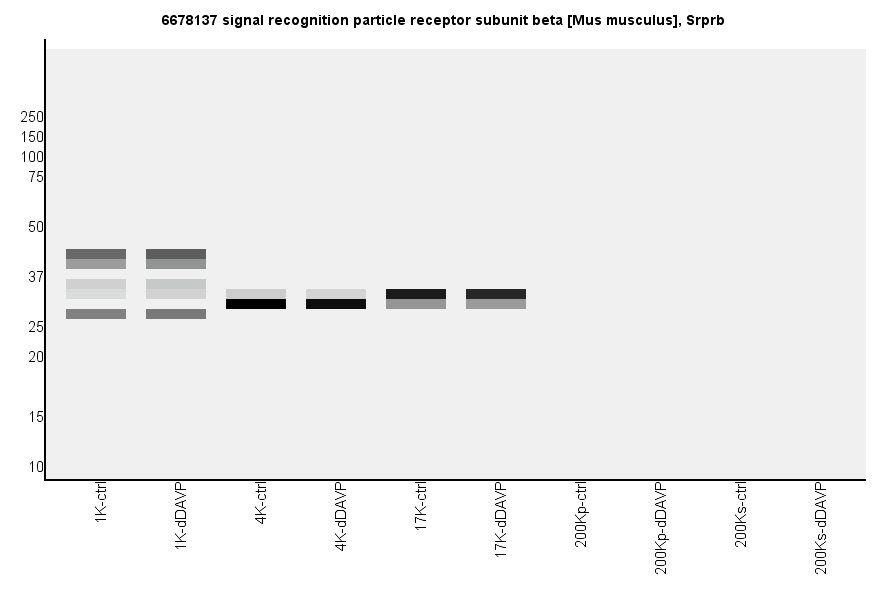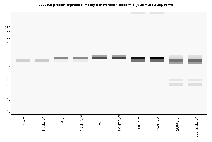 The virtual western blot images show data normalized using a logarithmic conversion scale to map peptide intensities to gray-scale levels. Using this conversion method, low-abundance peptides are generally visible in the blot images. Switch back to the default linear conversion scale database page.