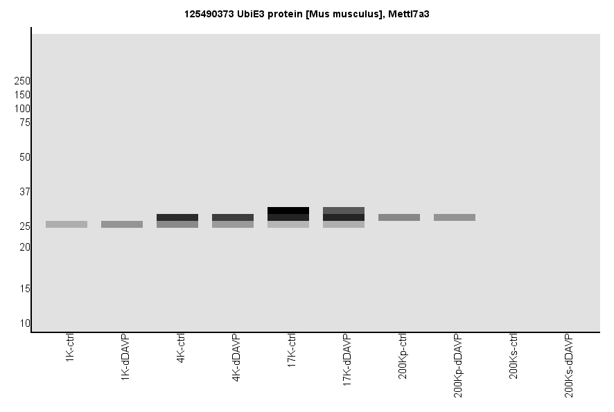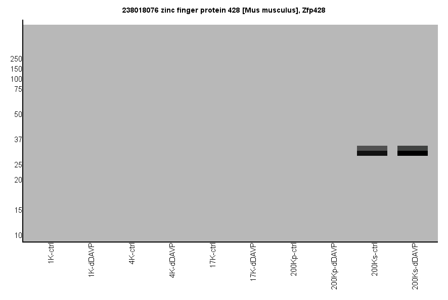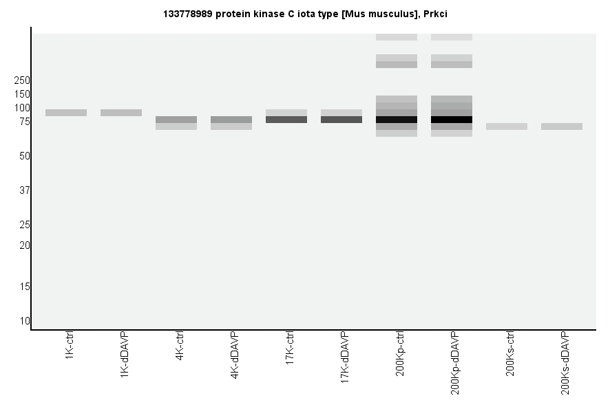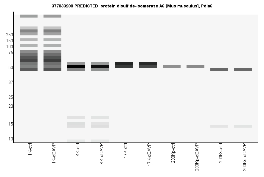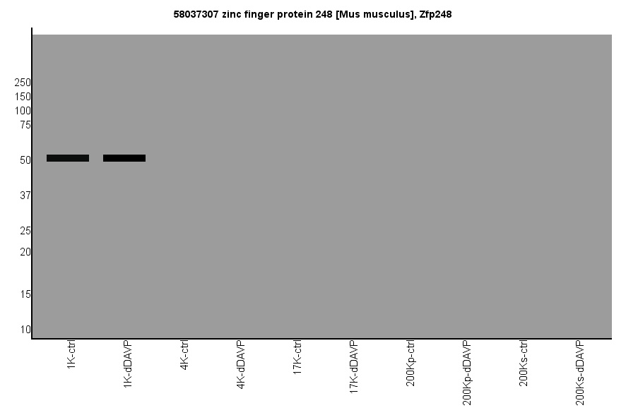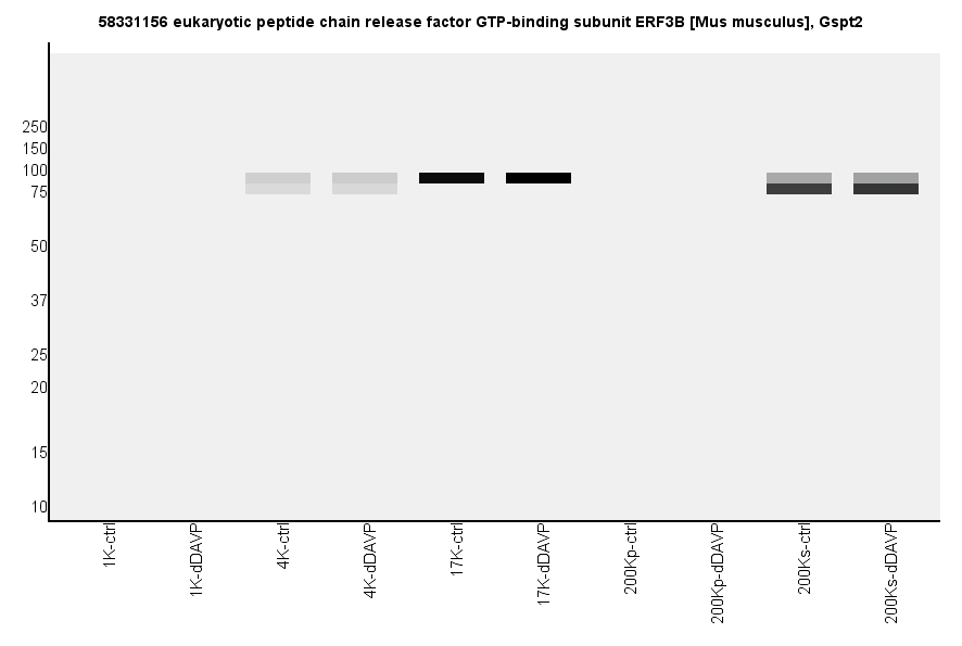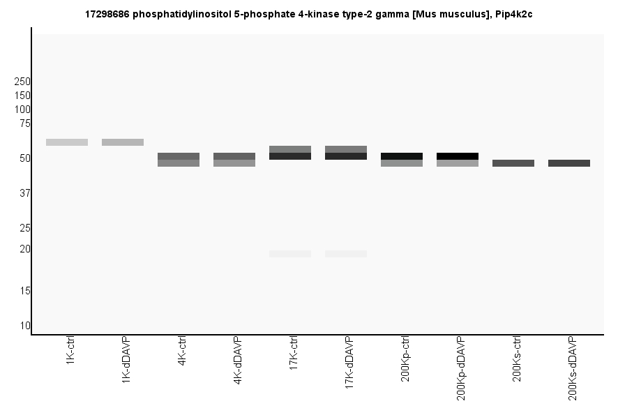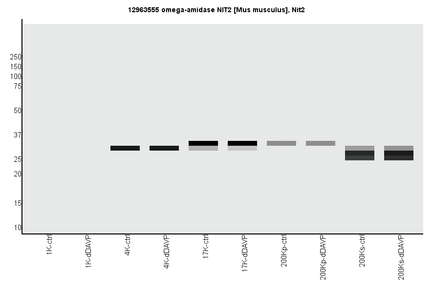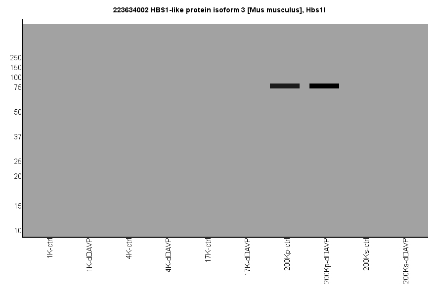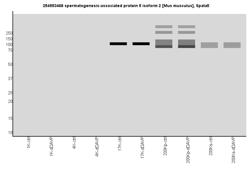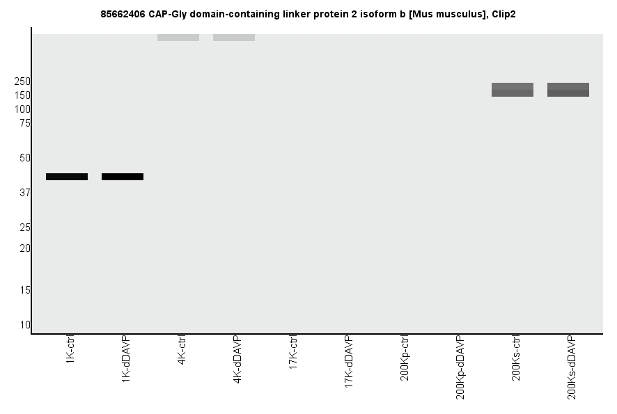 The virtual western blot images show data normalized using a logarithmic conversion scale to map peptide intensities to gray-scale levels. Using this conversion method, low-abundance peptides are generally visible in the blot images. Switch back to the default linear conversion scale database page.