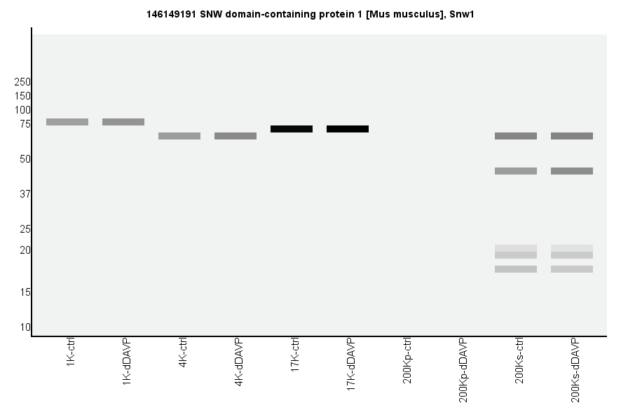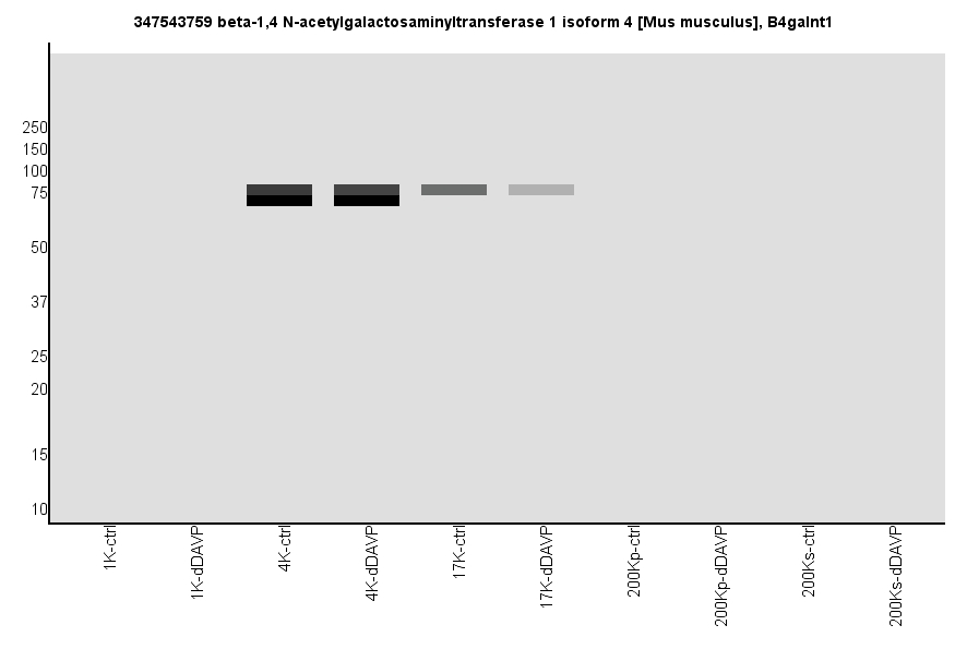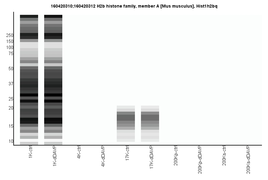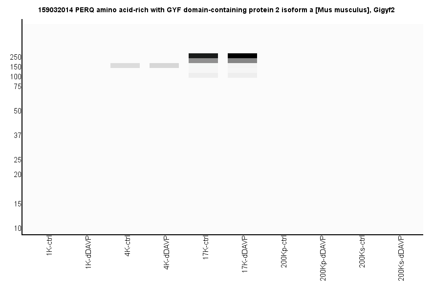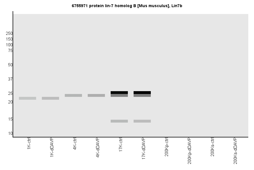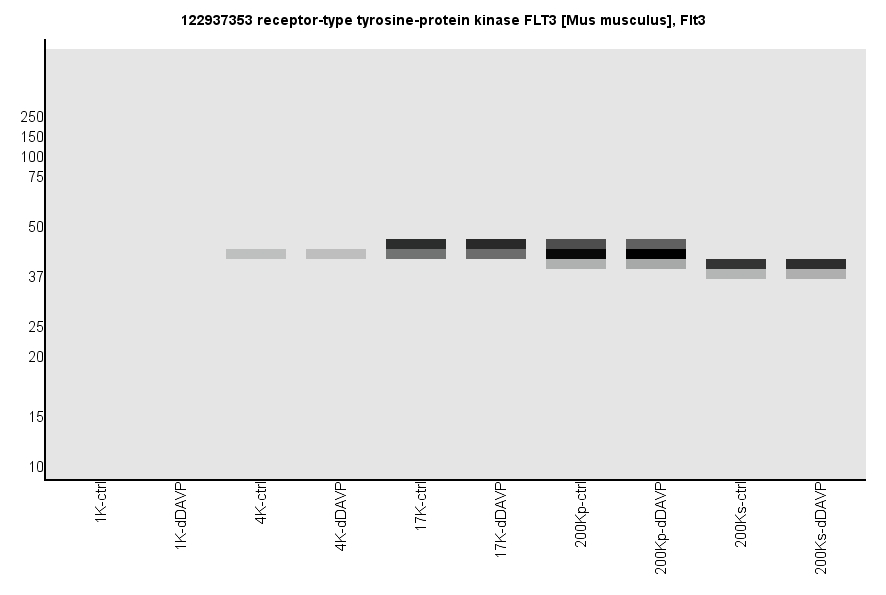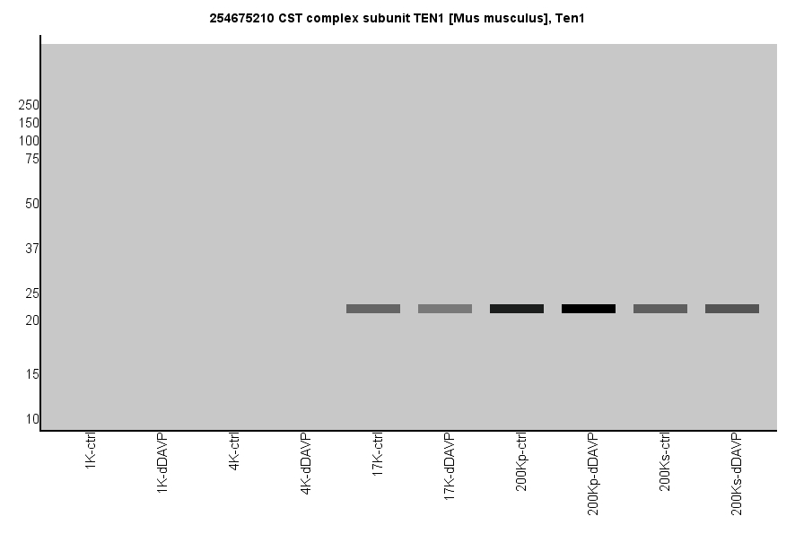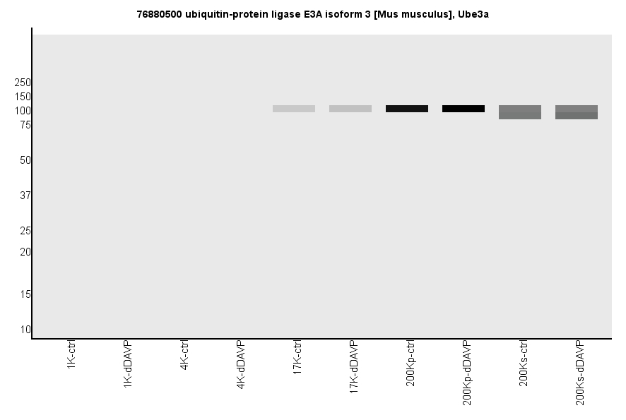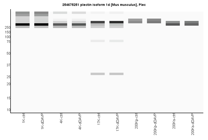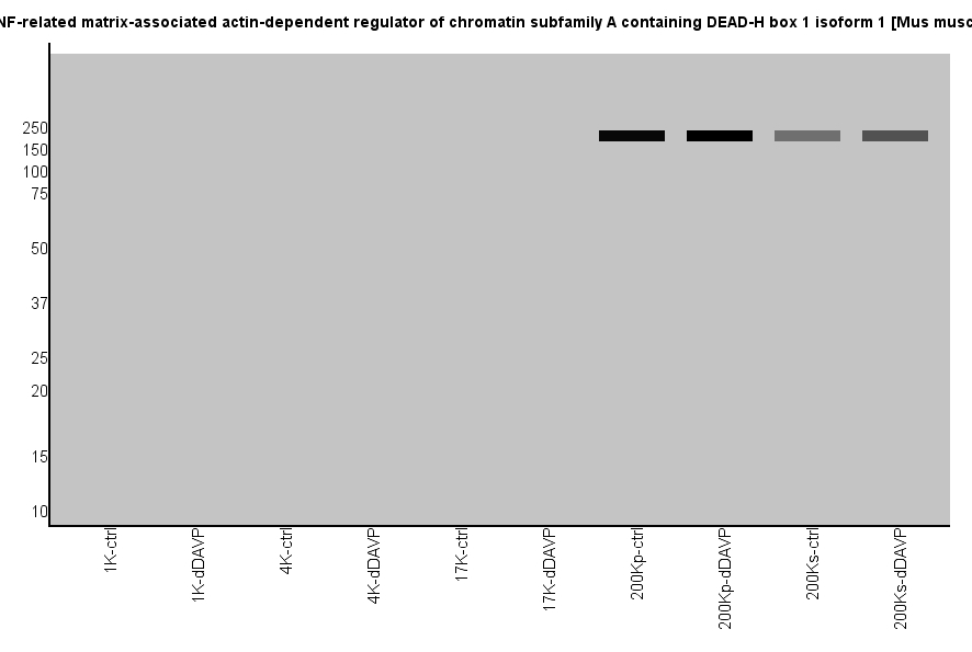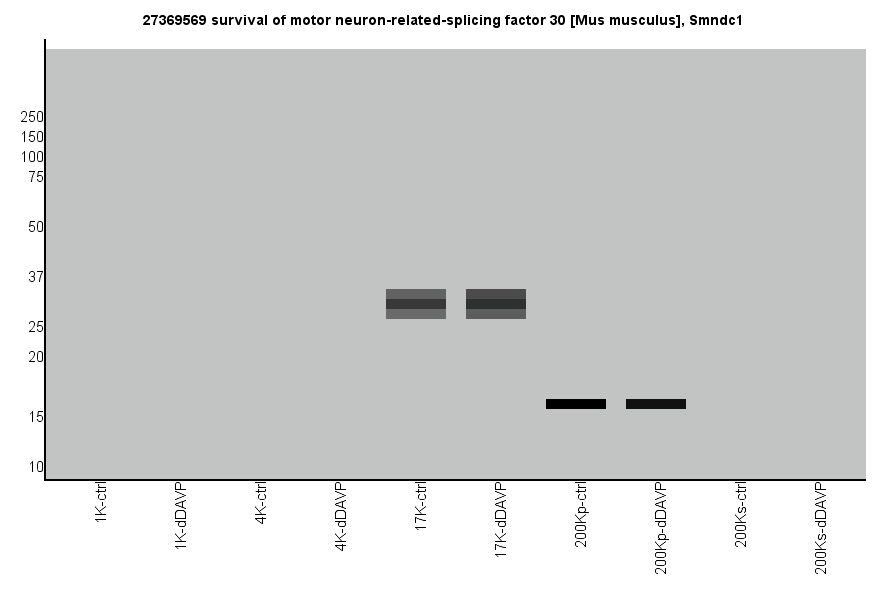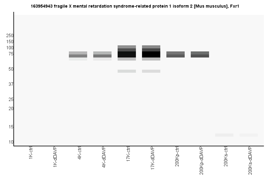 The virtual western blot images show data normalized using a logarithmic conversion scale to map peptide intensities to gray-scale levels. Using this conversion method, low-abundance peptides are generally visible in the blot images. Switch back to the default linear conversion scale database page.