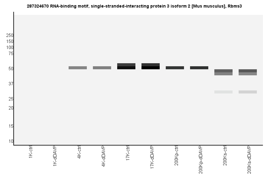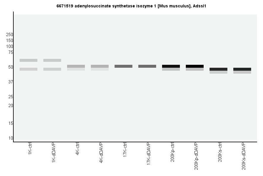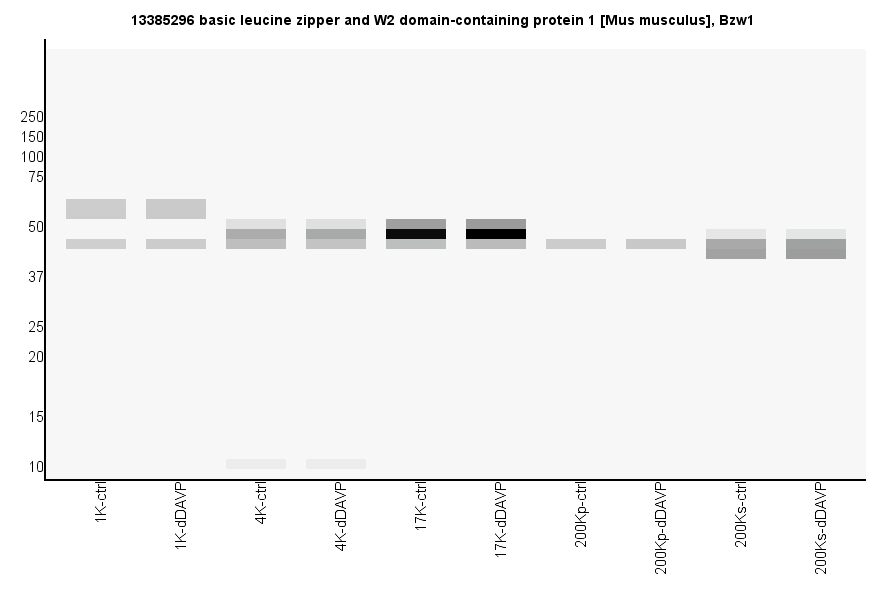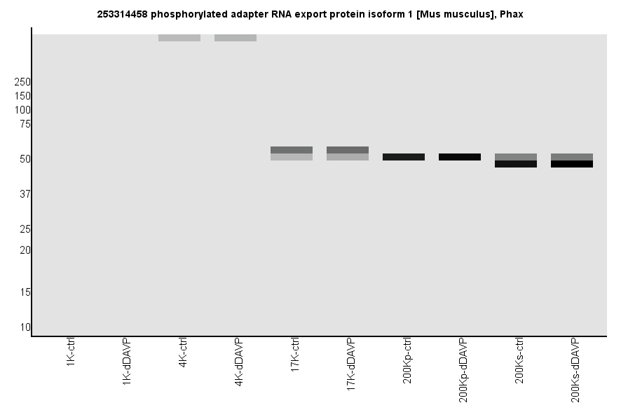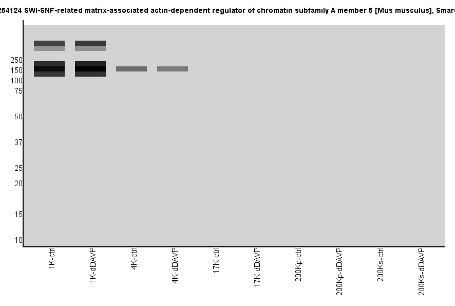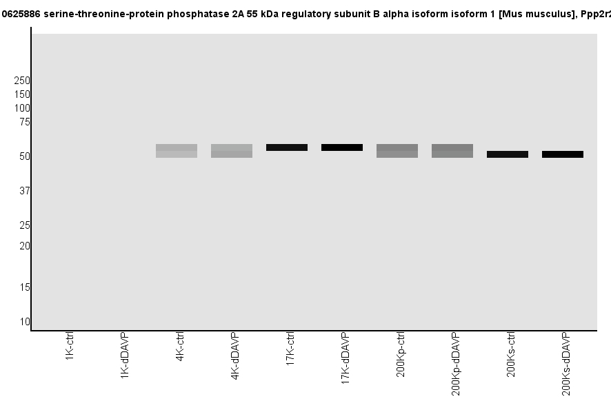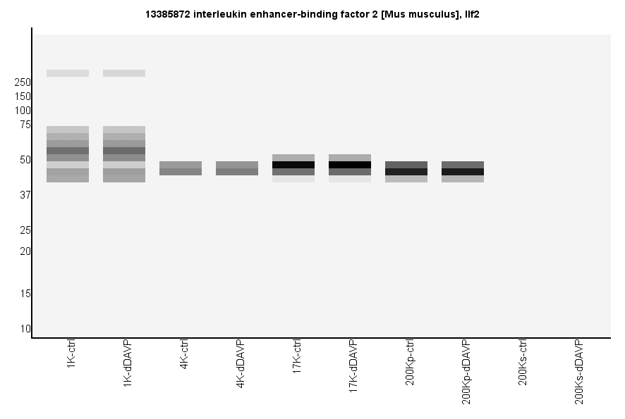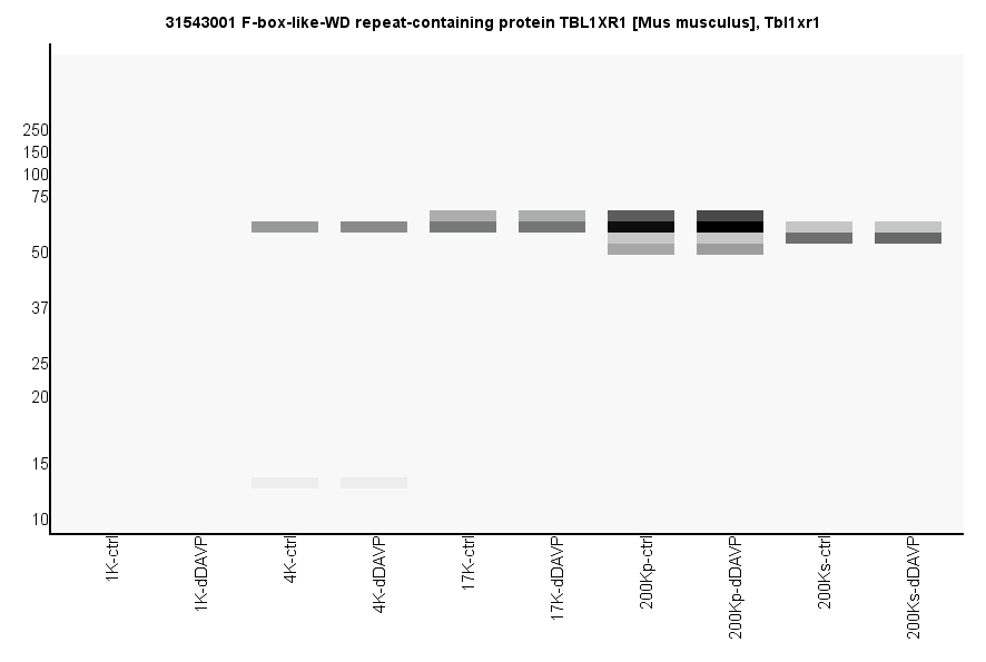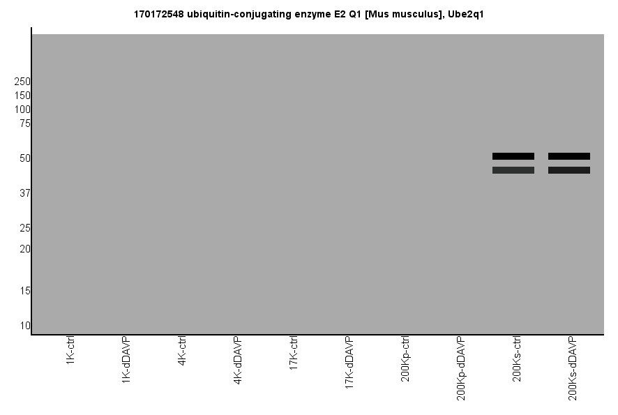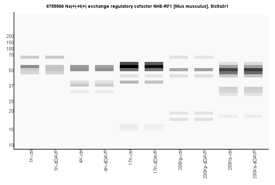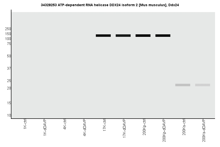 The virtual western blot images show data normalized using a logarithmic conversion scale to map peptide intensities to gray-scale levels. Using this conversion method, low-abundance peptides are generally visible in the blot images. Switch back to the default linear conversion scale database page.
